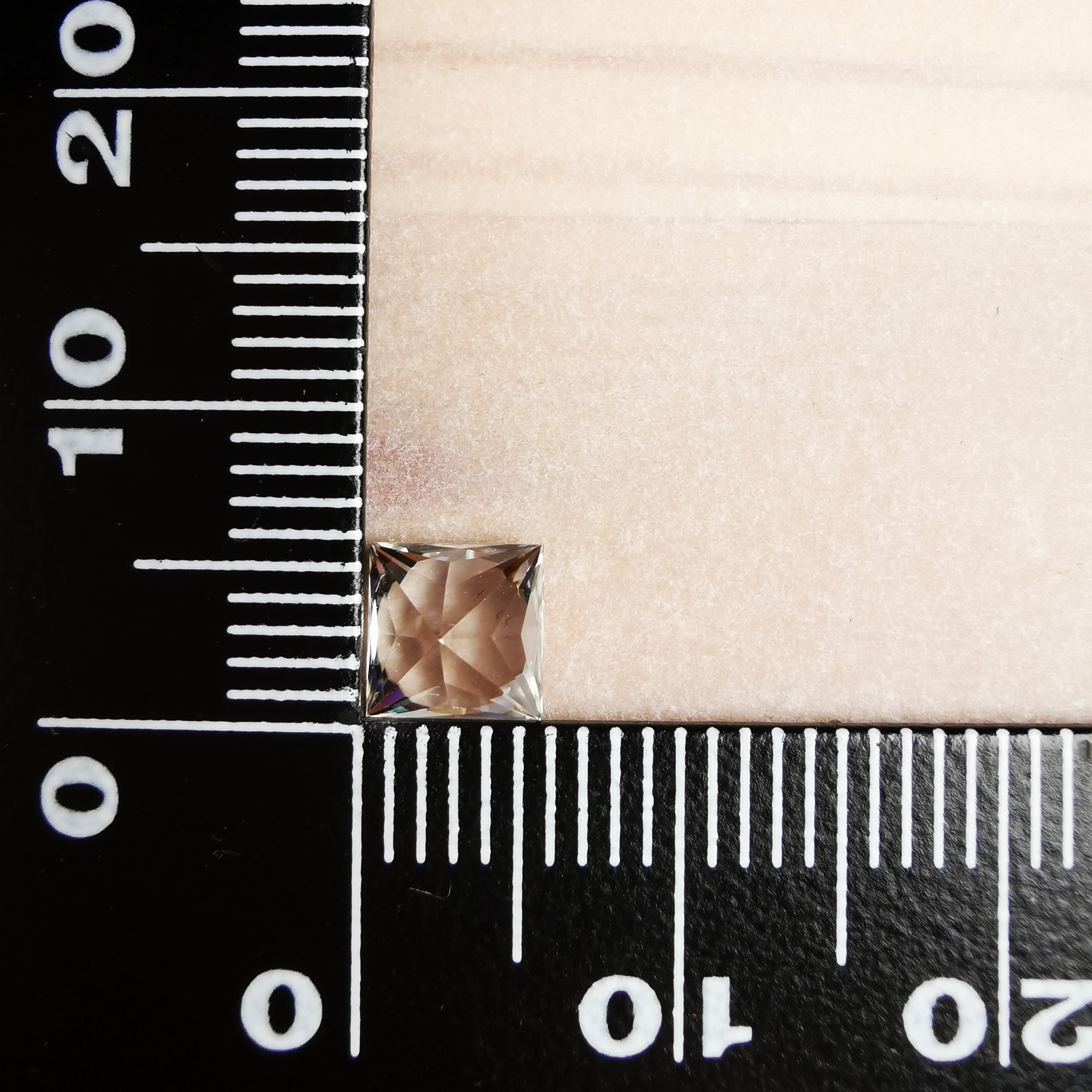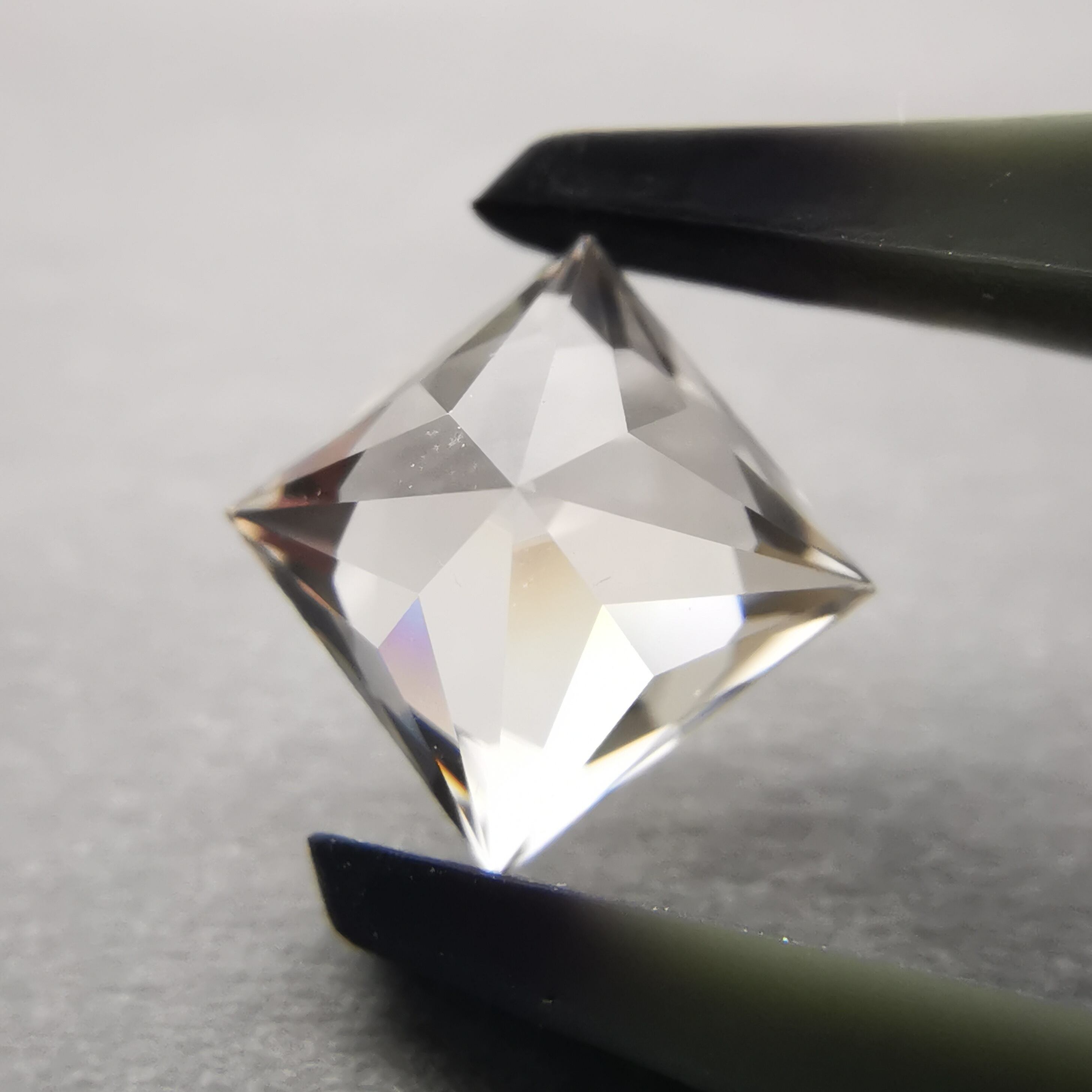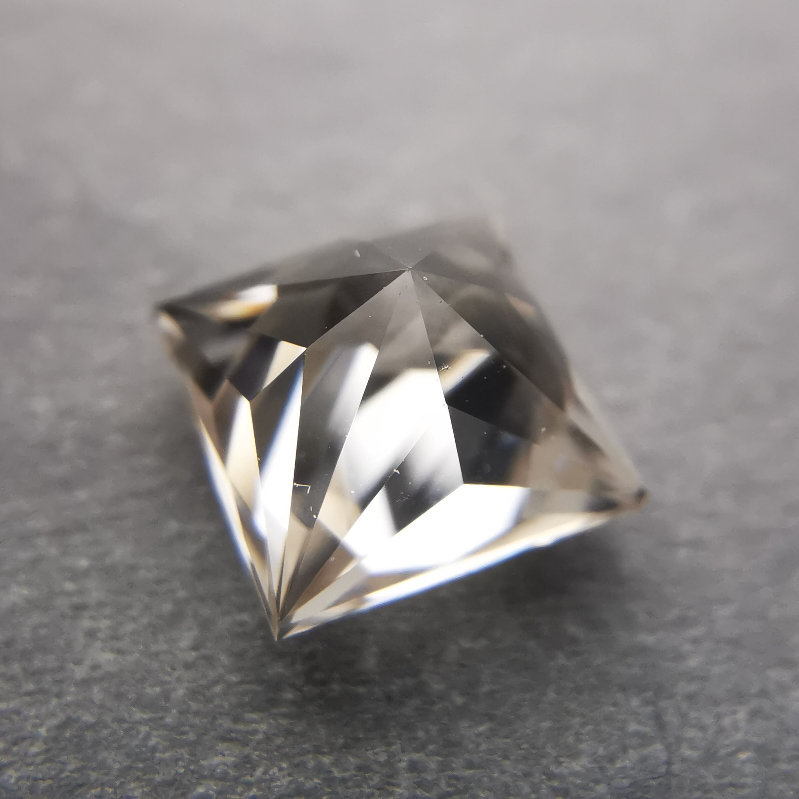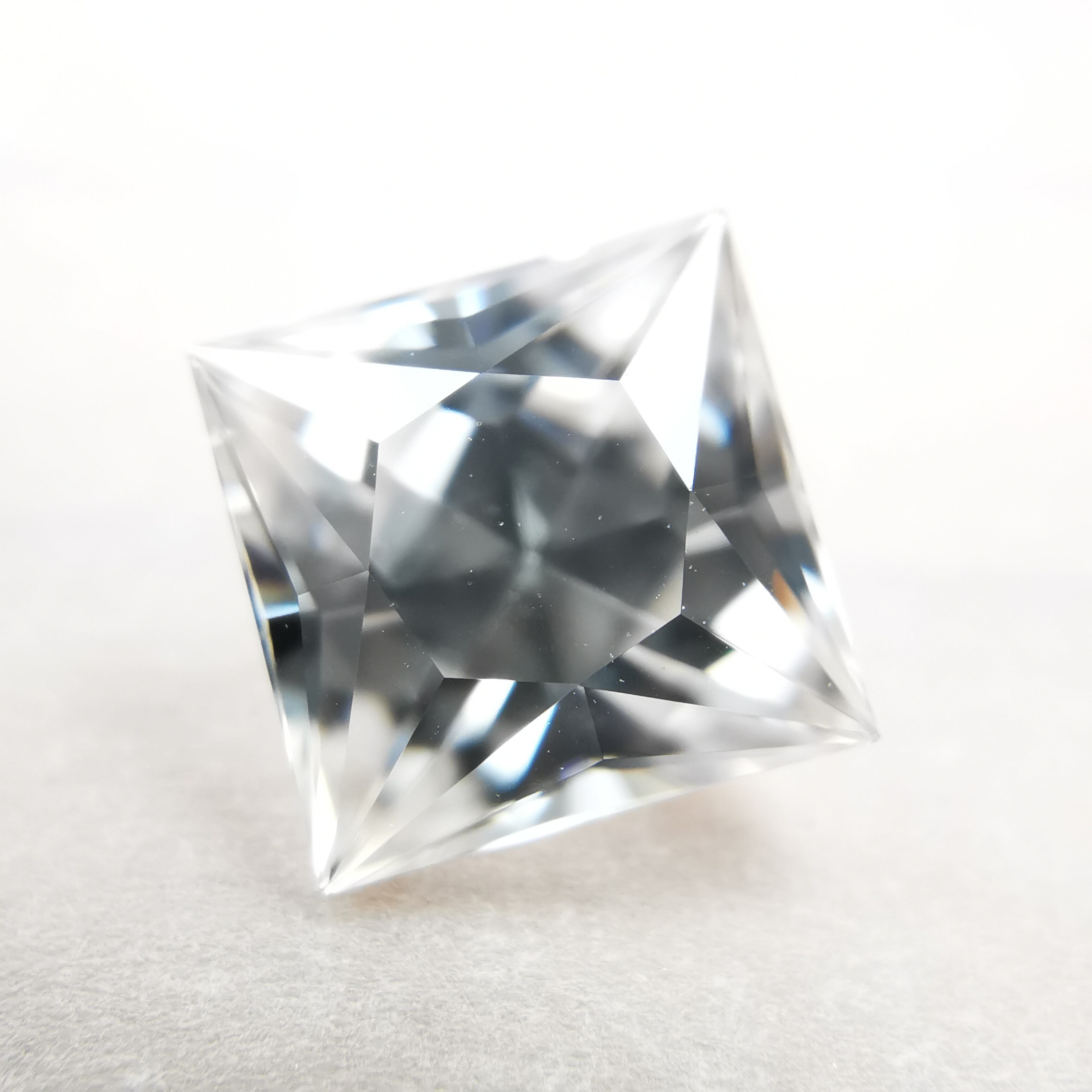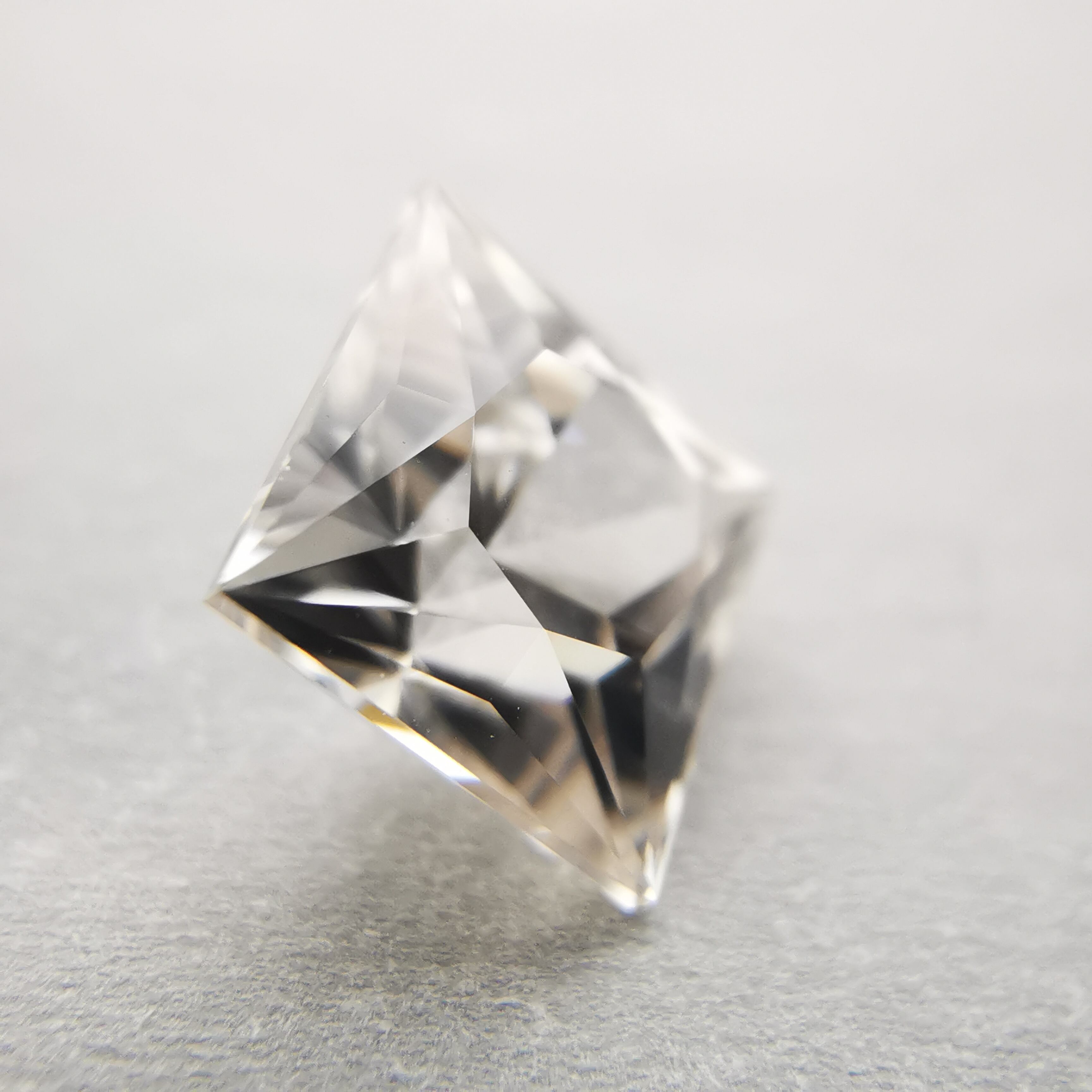 自然光の日陰では、わずかにベージュがかったしっとりとしたカラー、照明の下では虹色のファイアがきらめくメリーゴーランドのようなホワイトジルコンです。