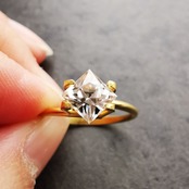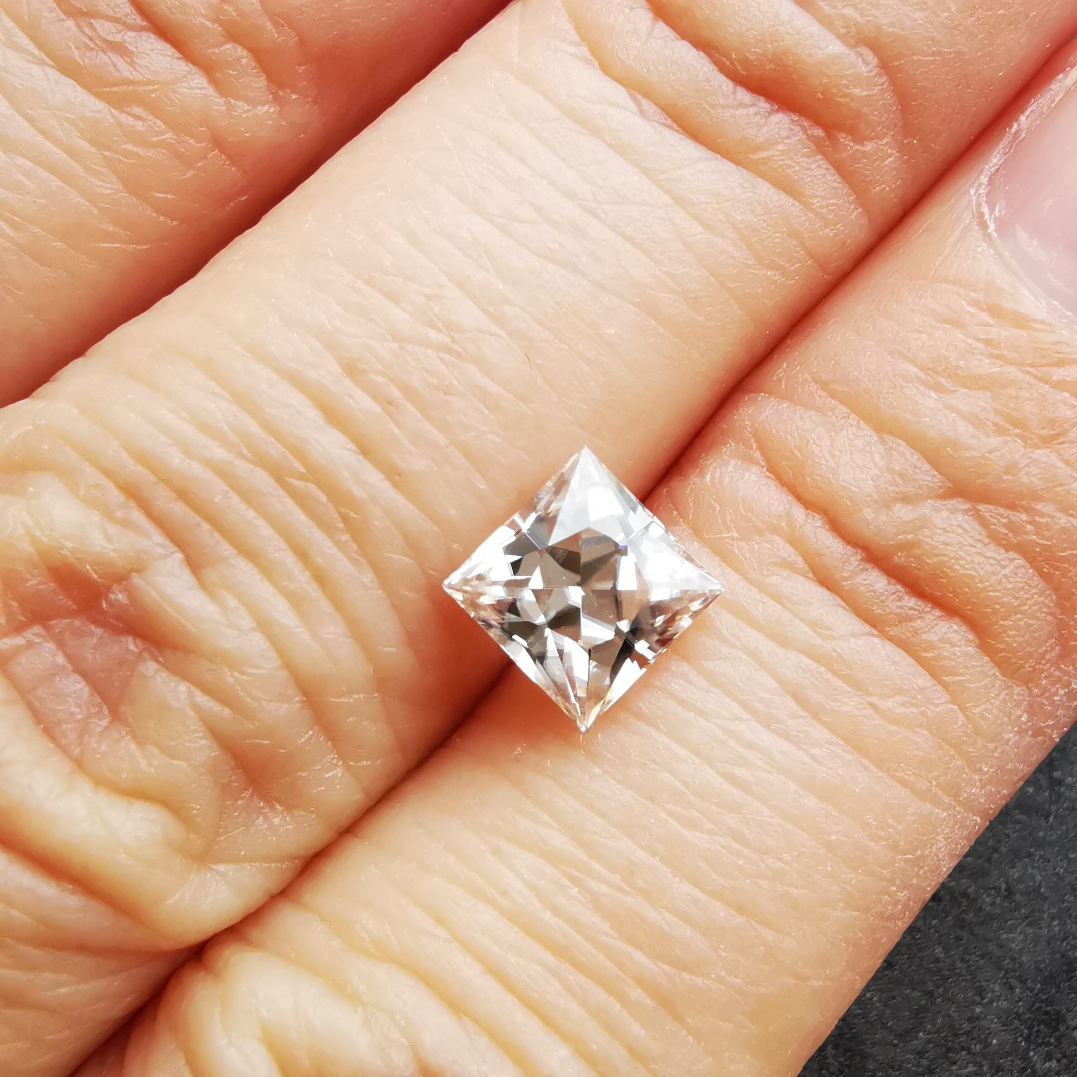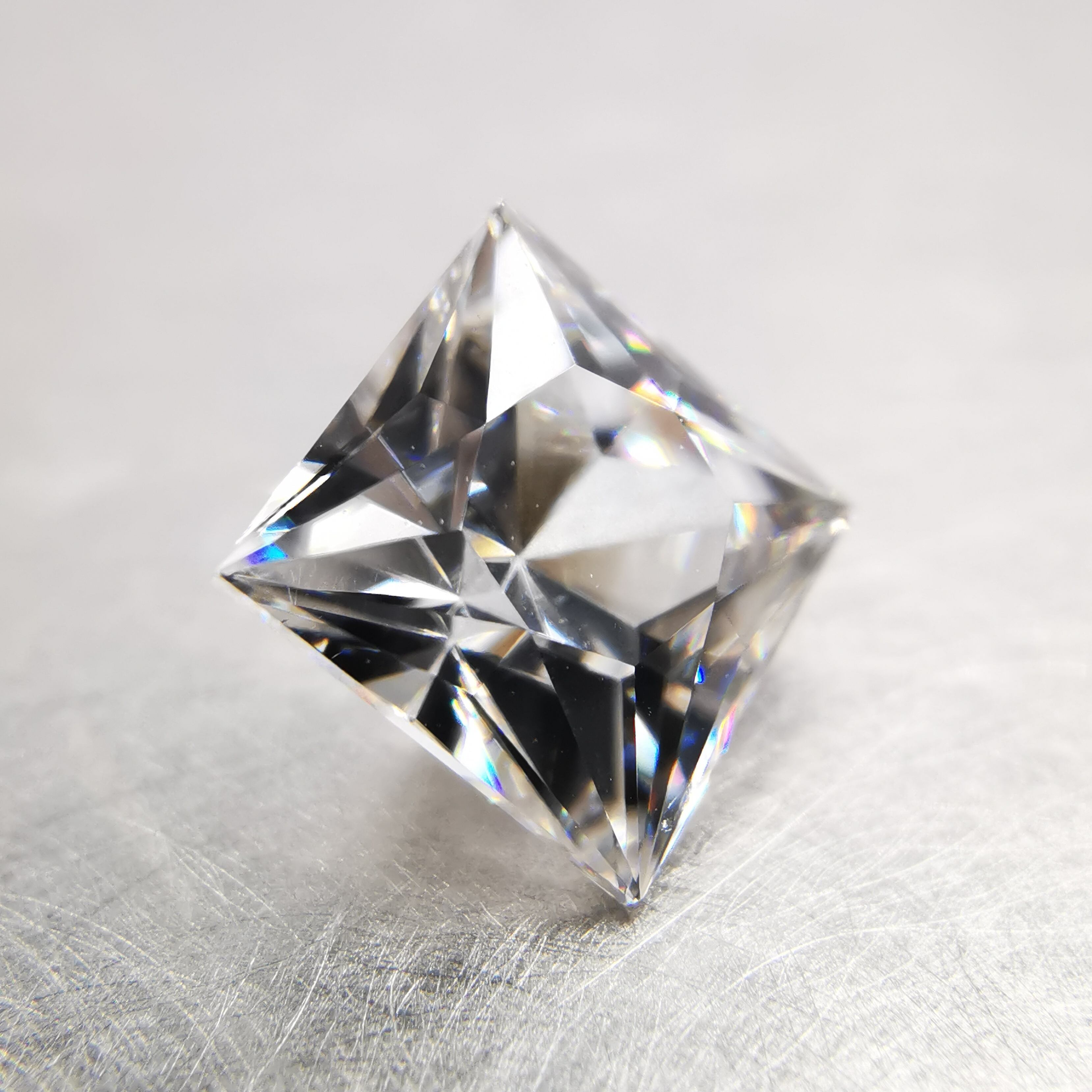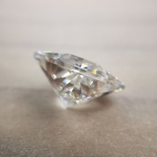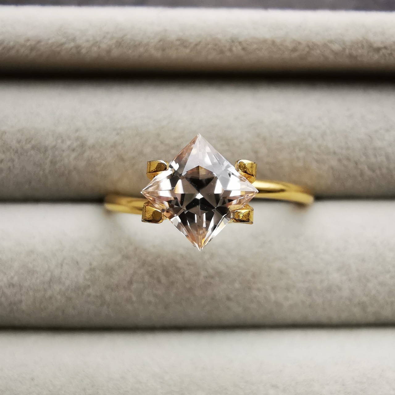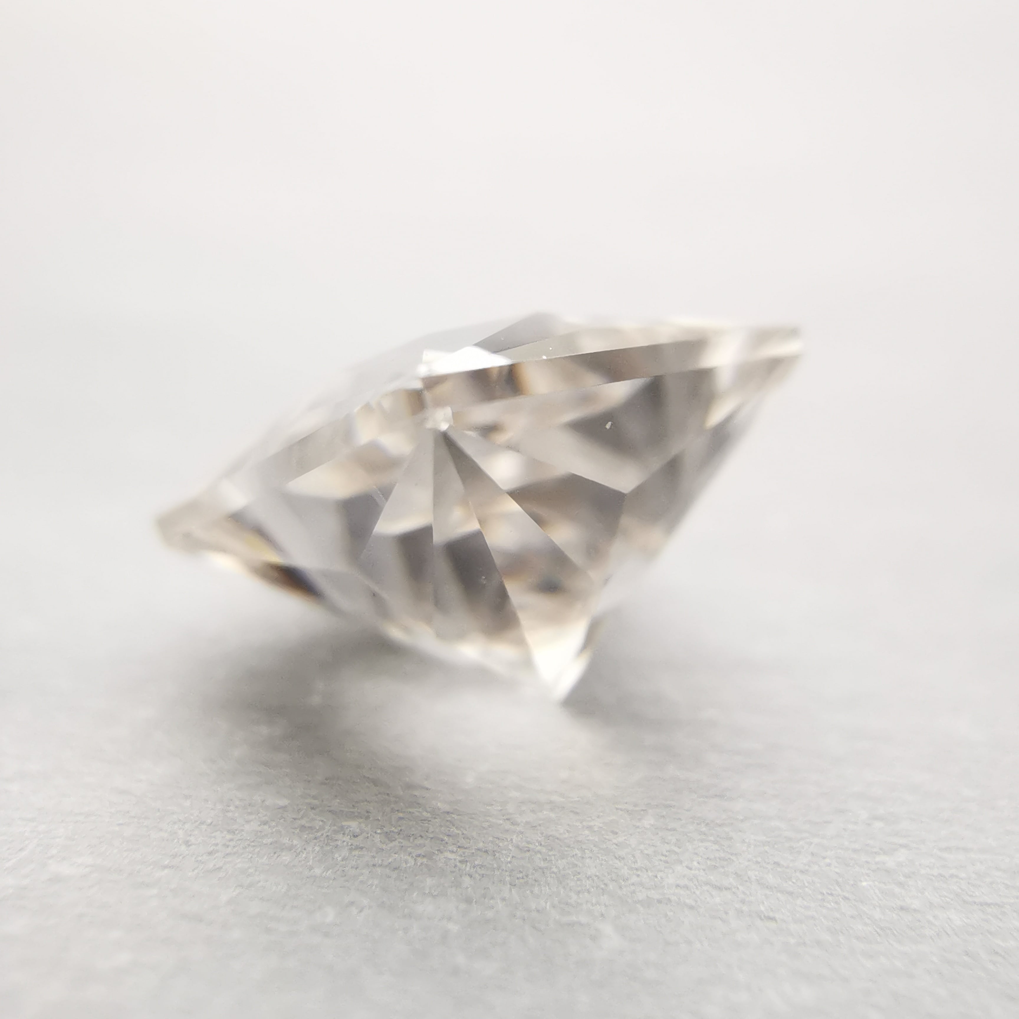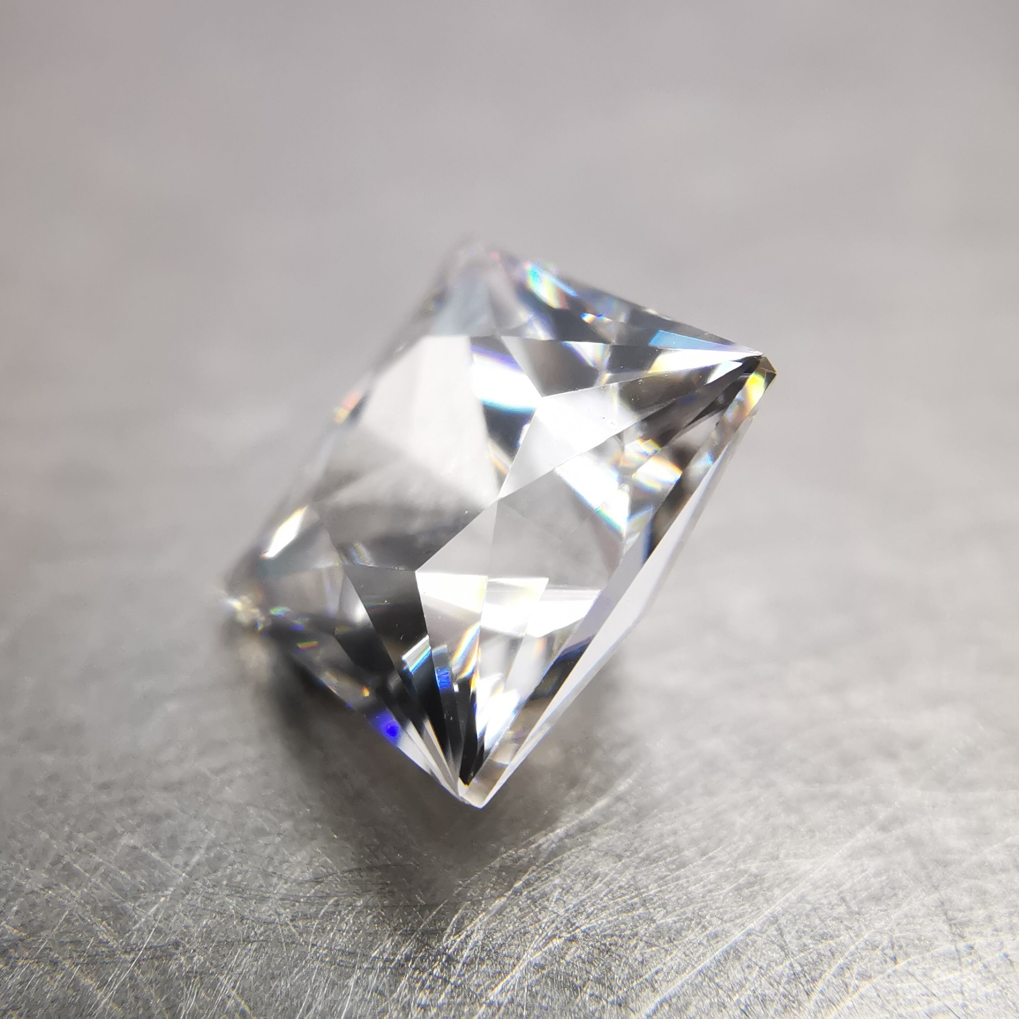 自然光の日陰では、わずかにベージュがかったしっとりとしたカラー、照明の下では虹色のファイアがきらめくメリーゴーランドのようなホワイトジルコンです。