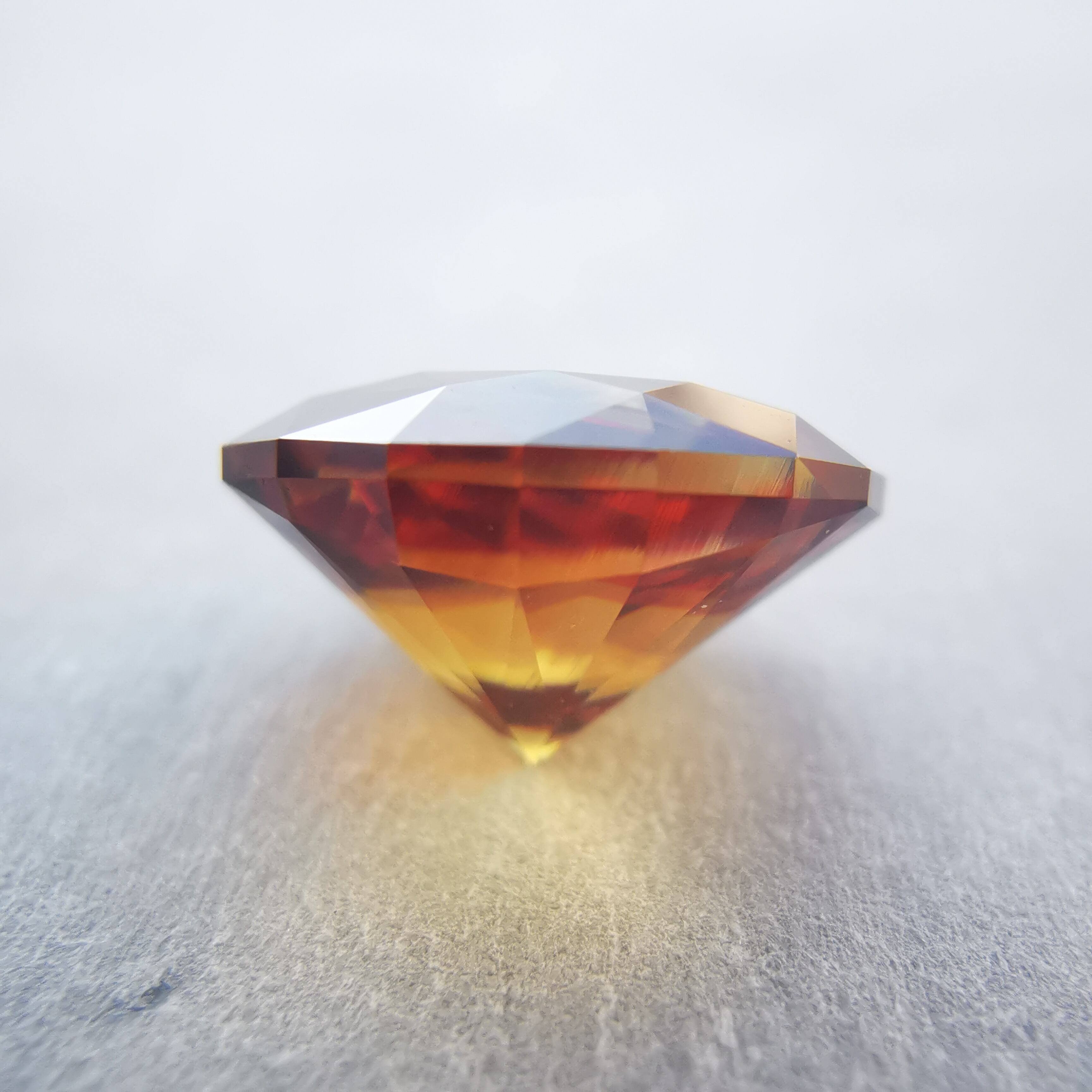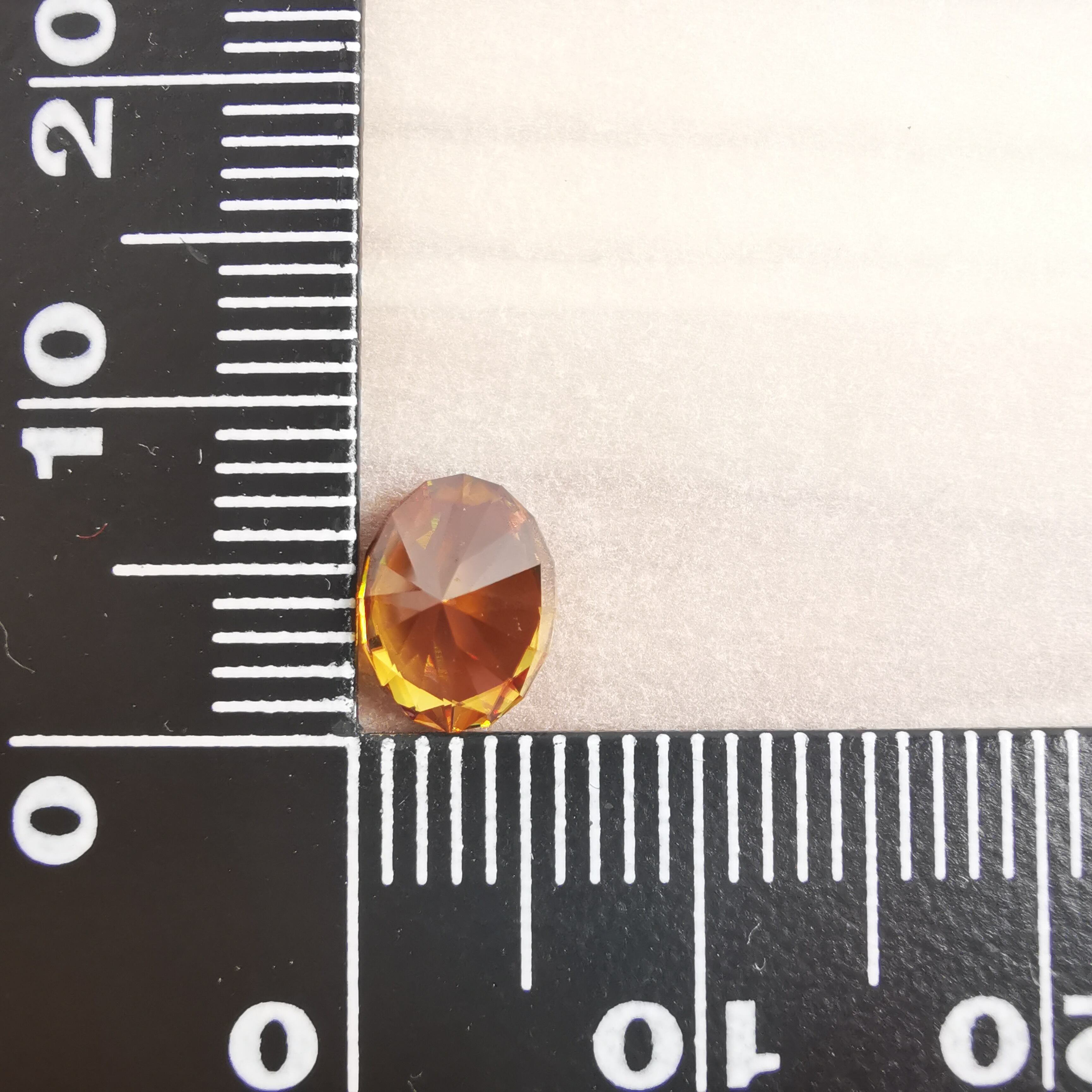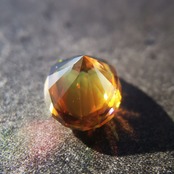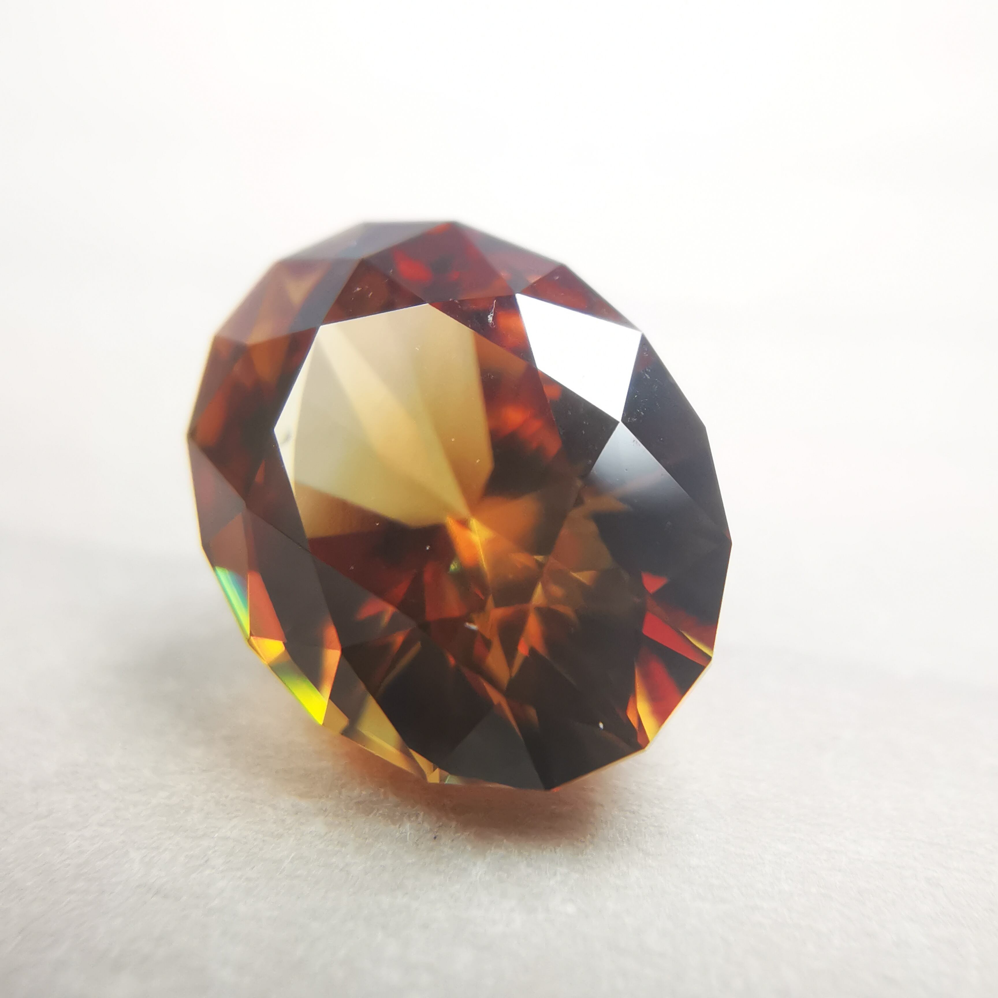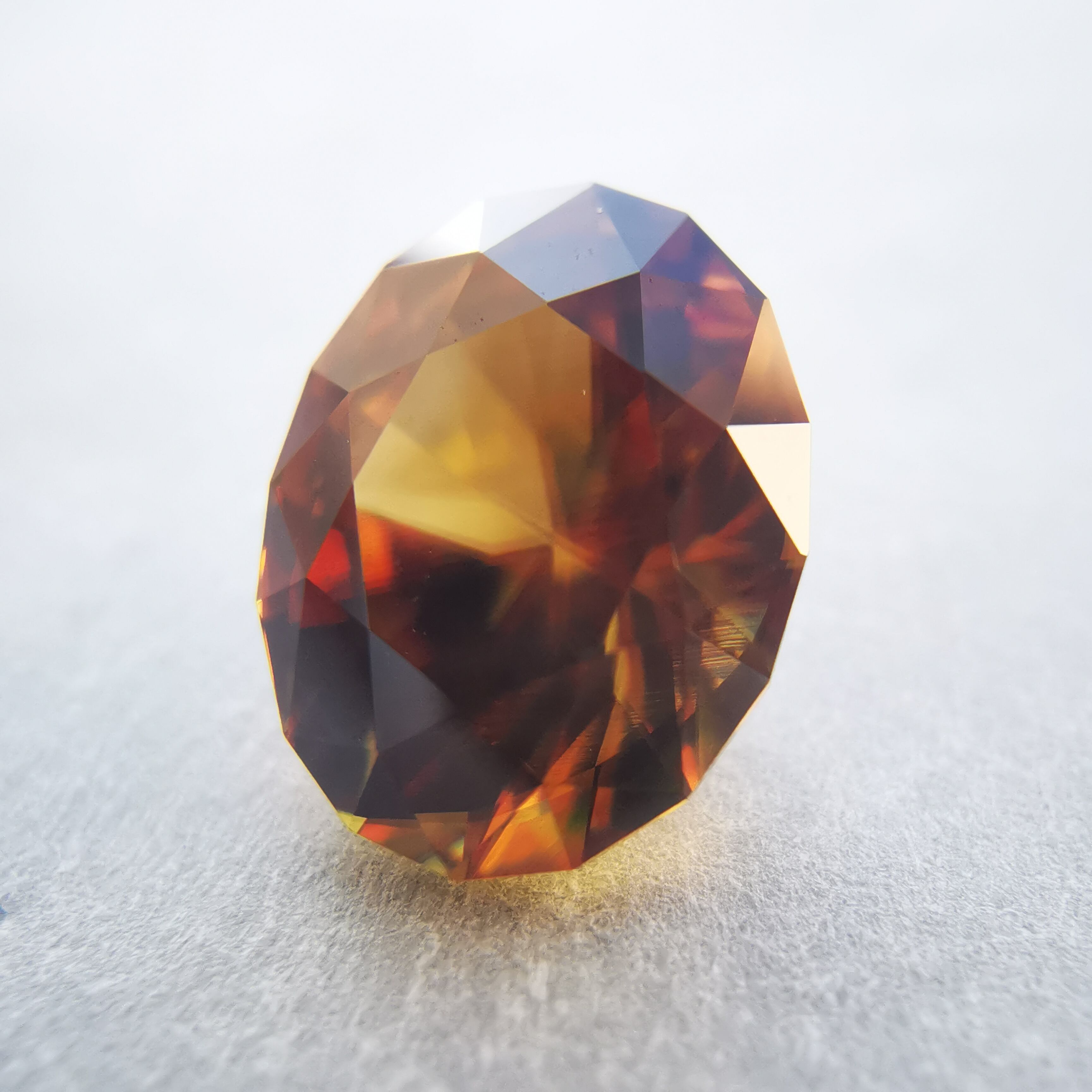 ブラウン系の石の中から、鮮やかなイエローオレンジがきらめき、虹色のファイアが溢れるように輝くスフェーンです。