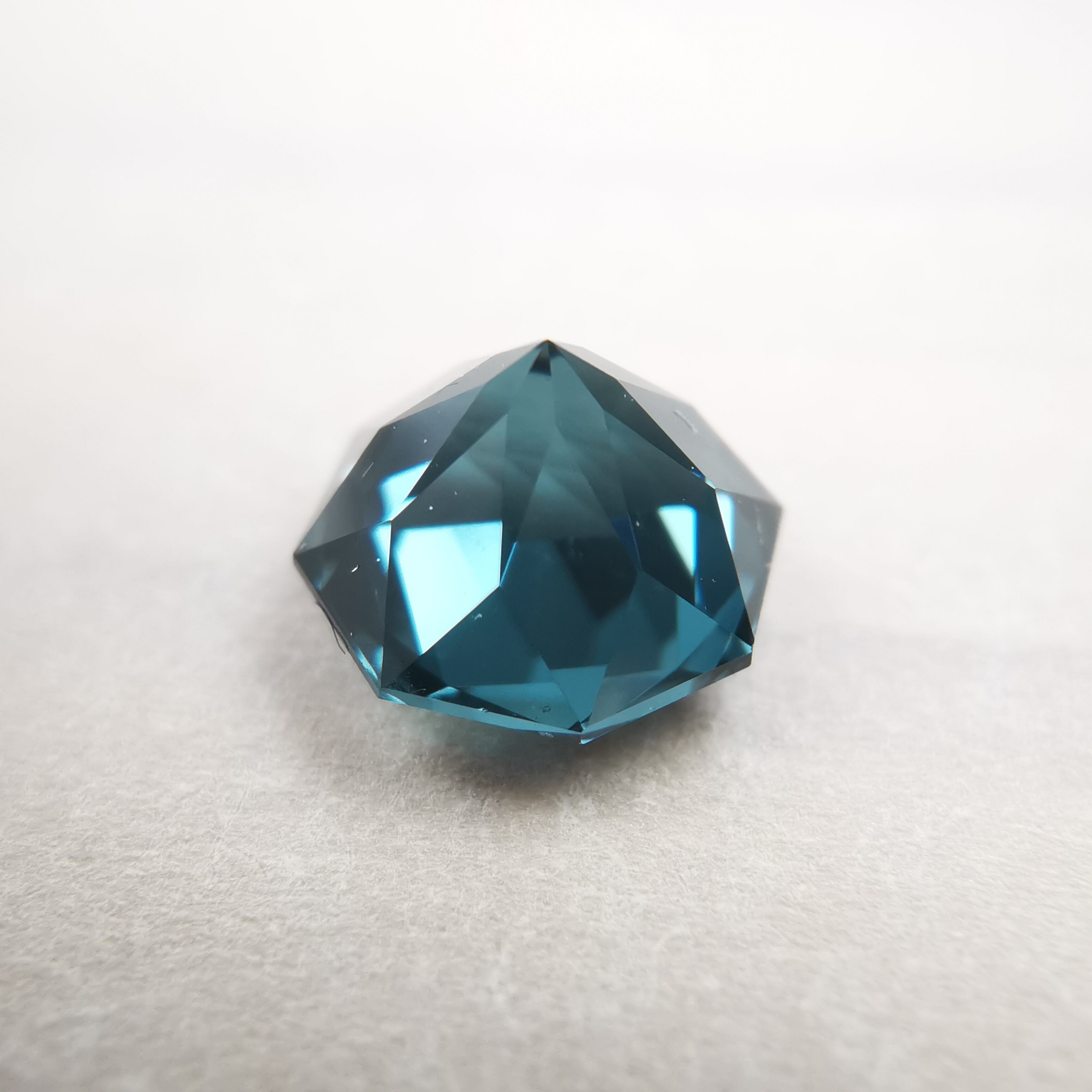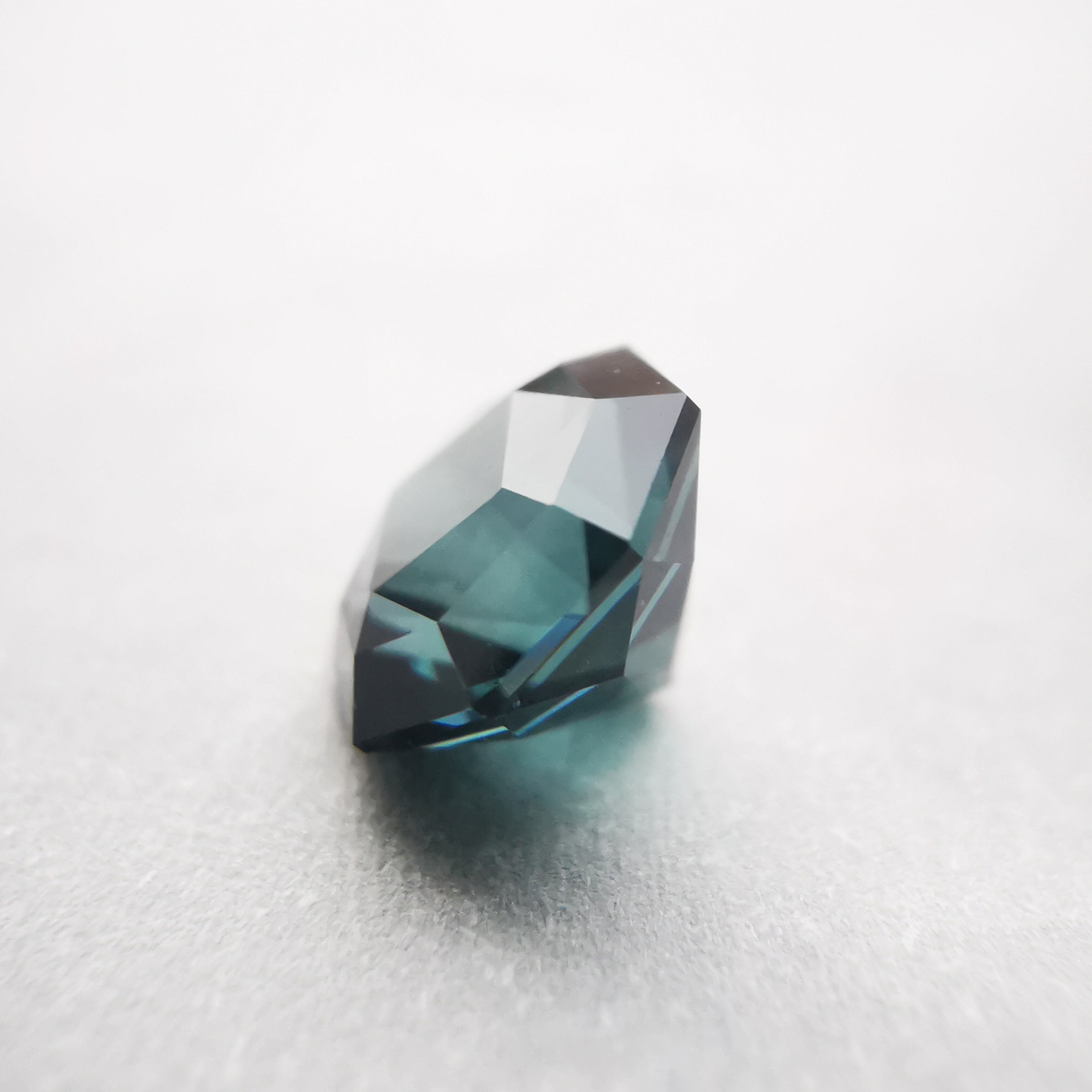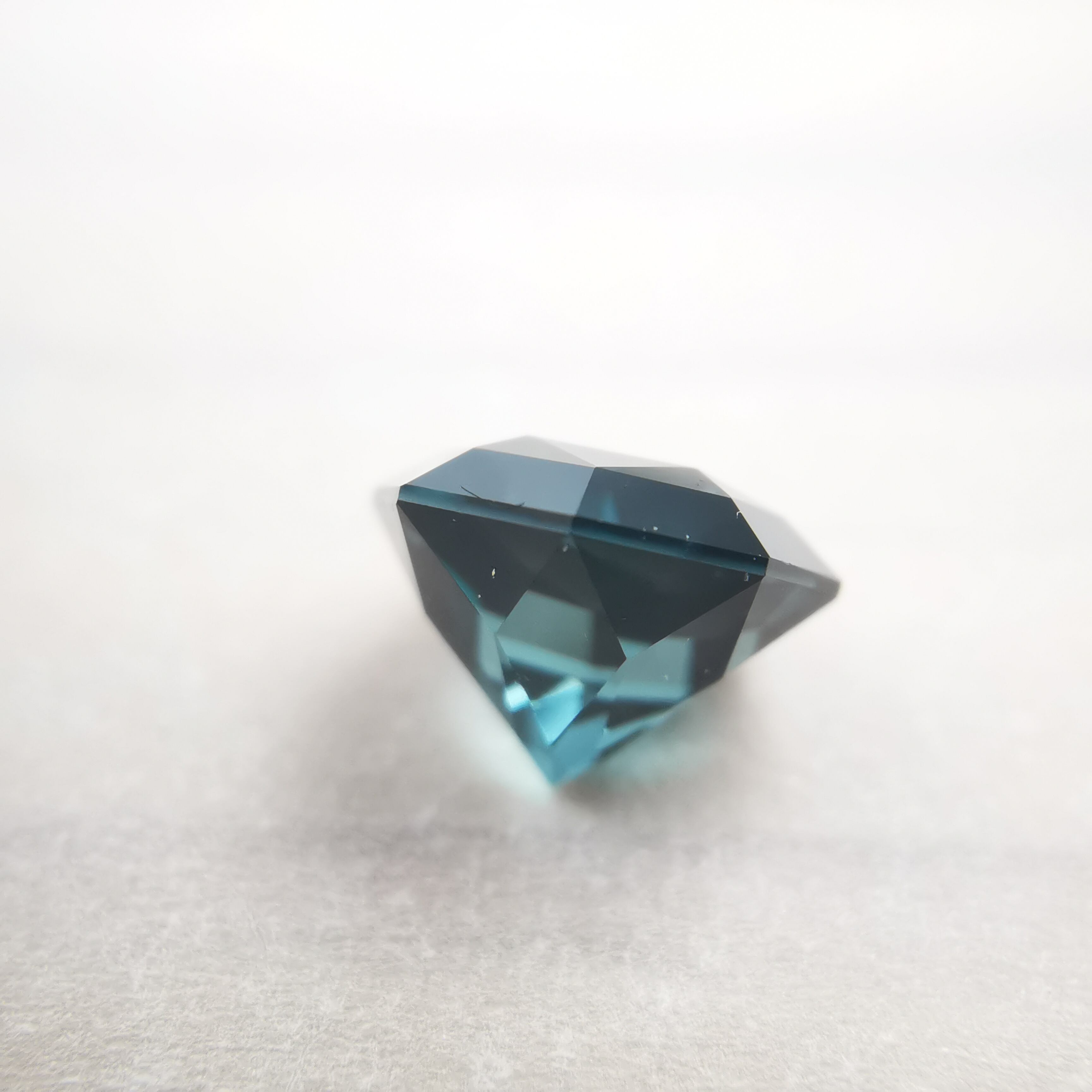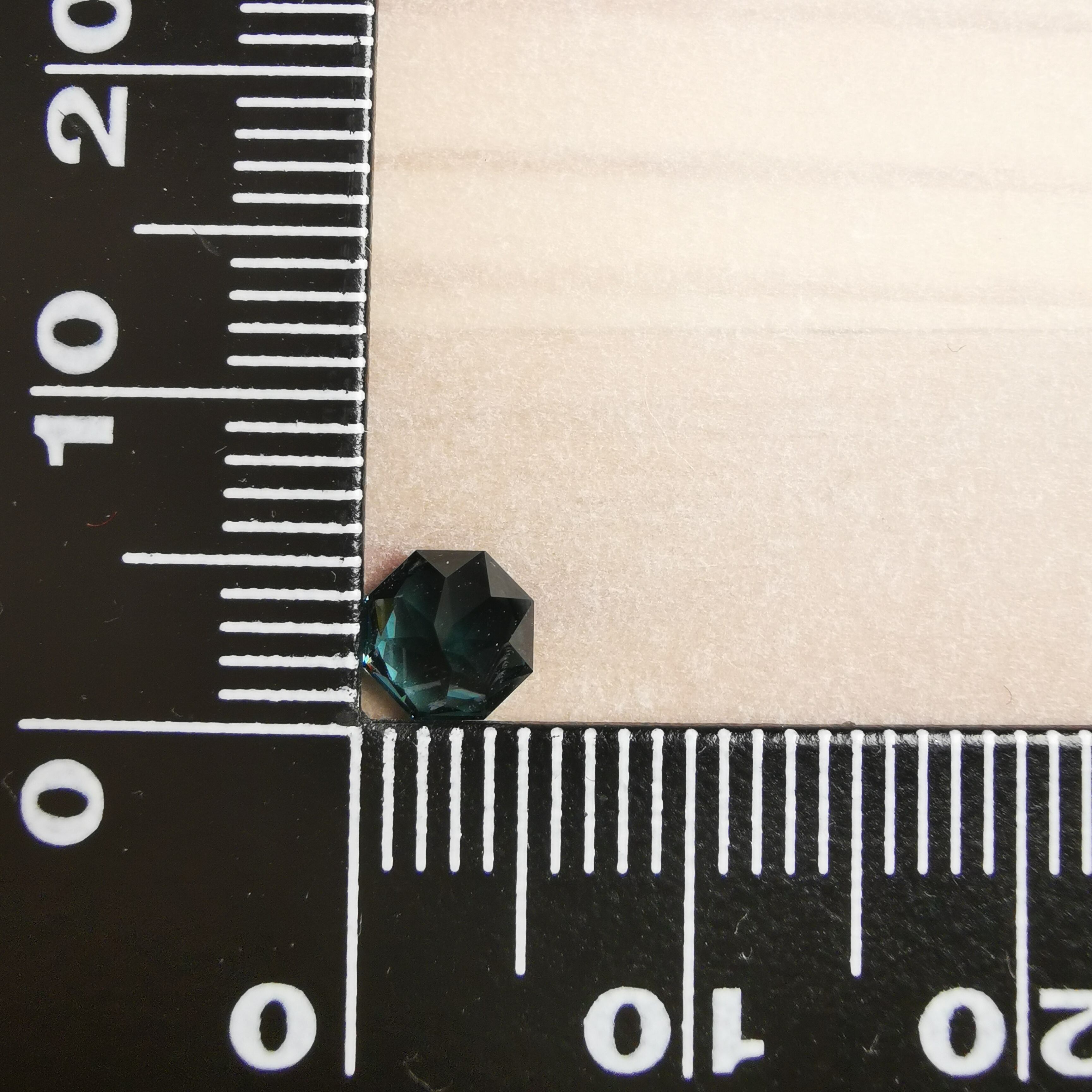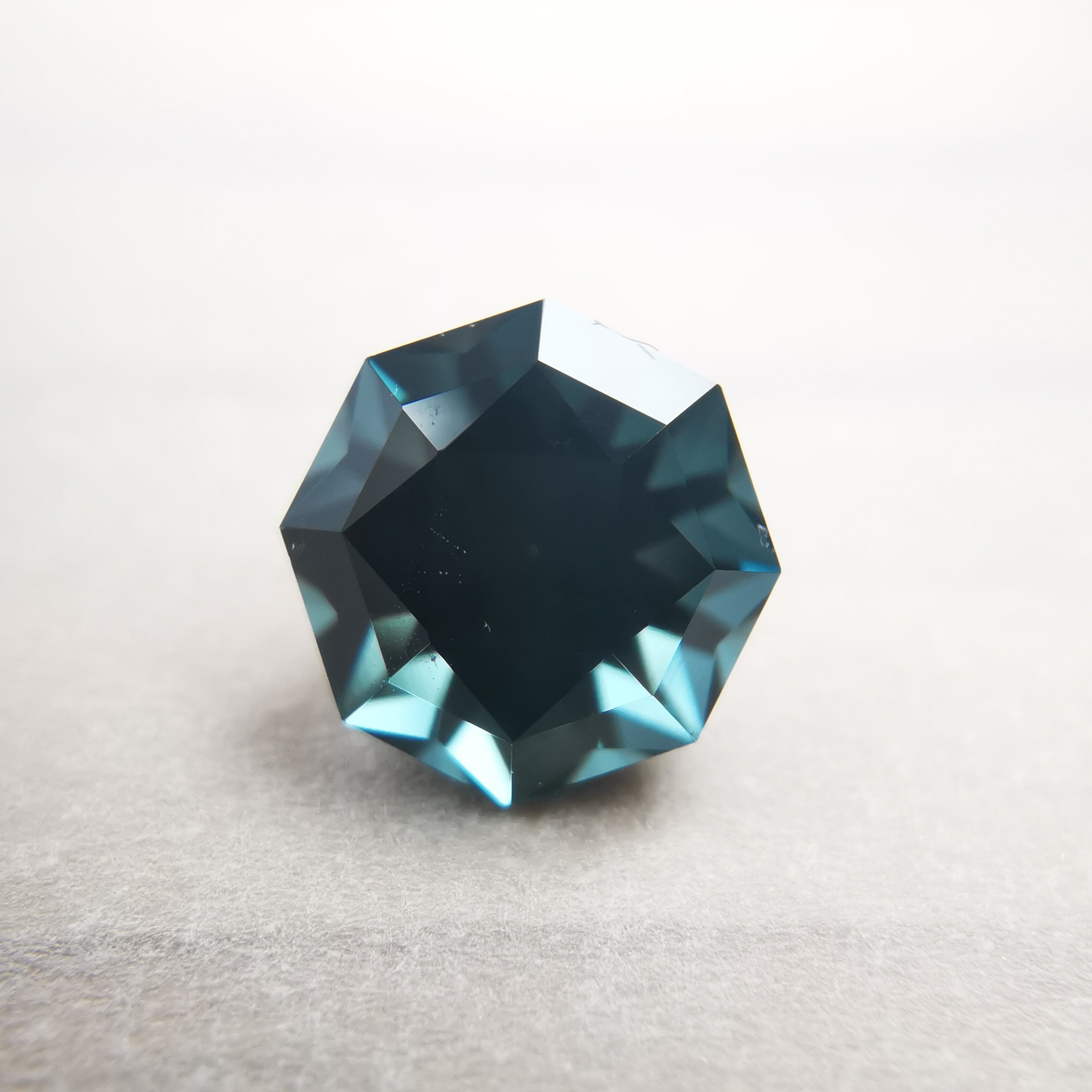 深い森を思わせる暗いフォレストグリーンの中から、ブルーグリーンの光が鋭くきらめく、スピネルらしい一石です。