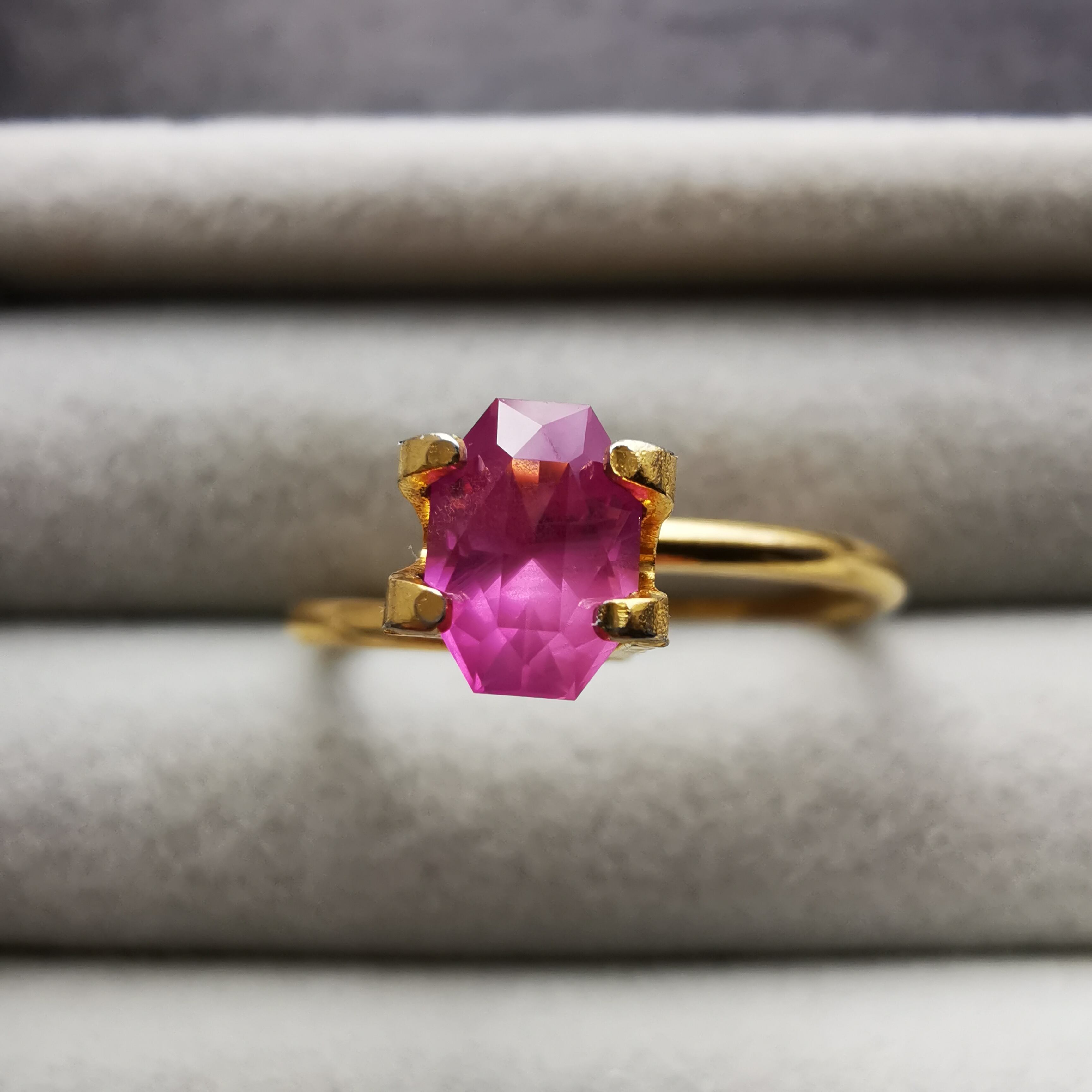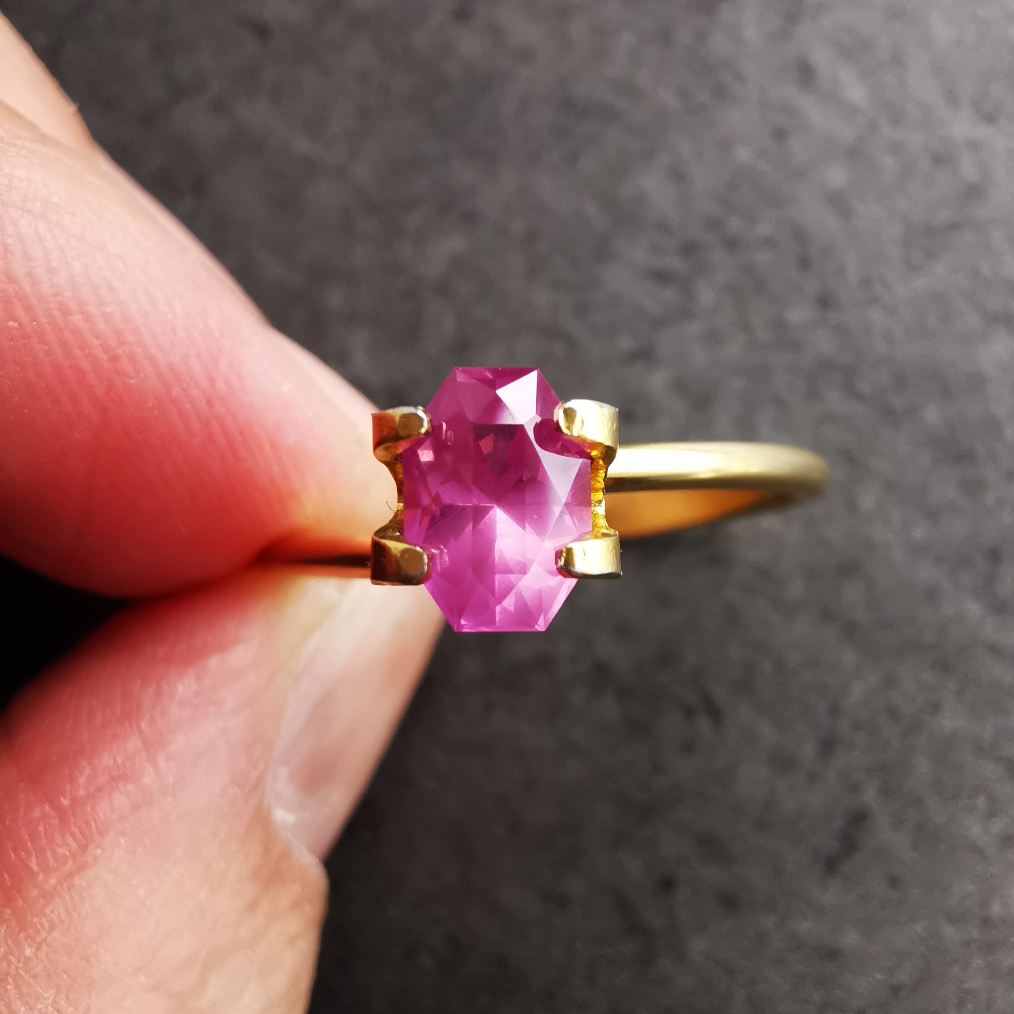 桃の花のような、華やかで可愛らしいピンクサファイアです。