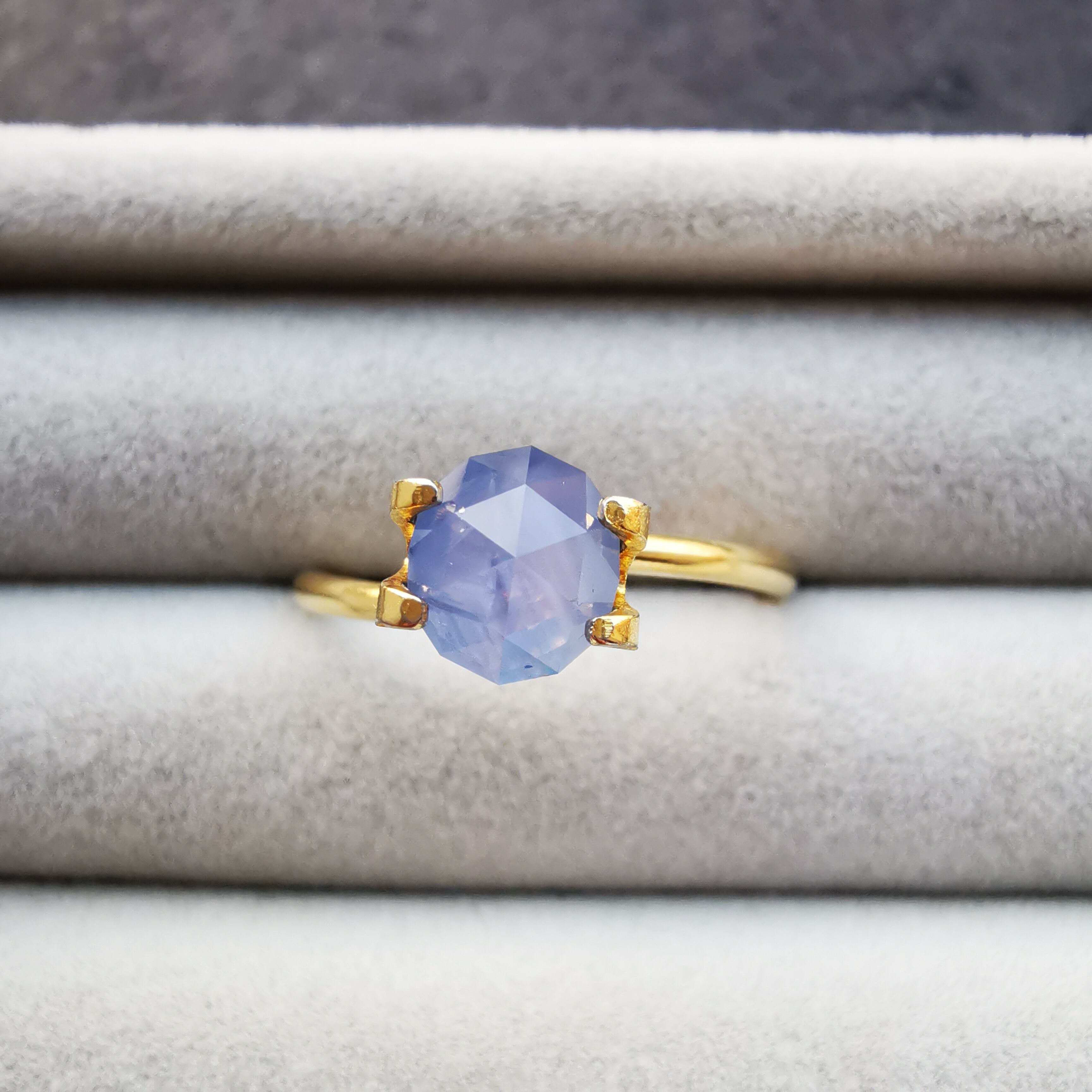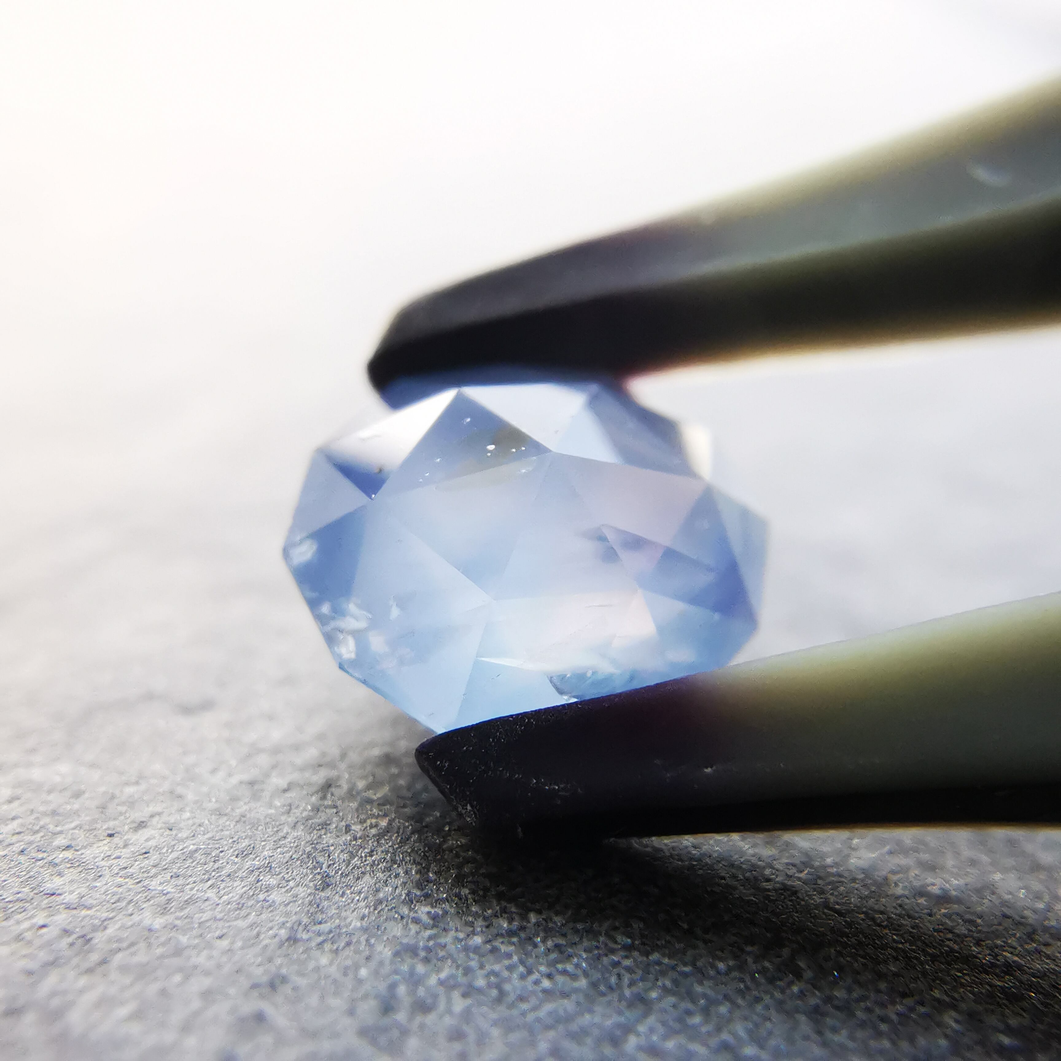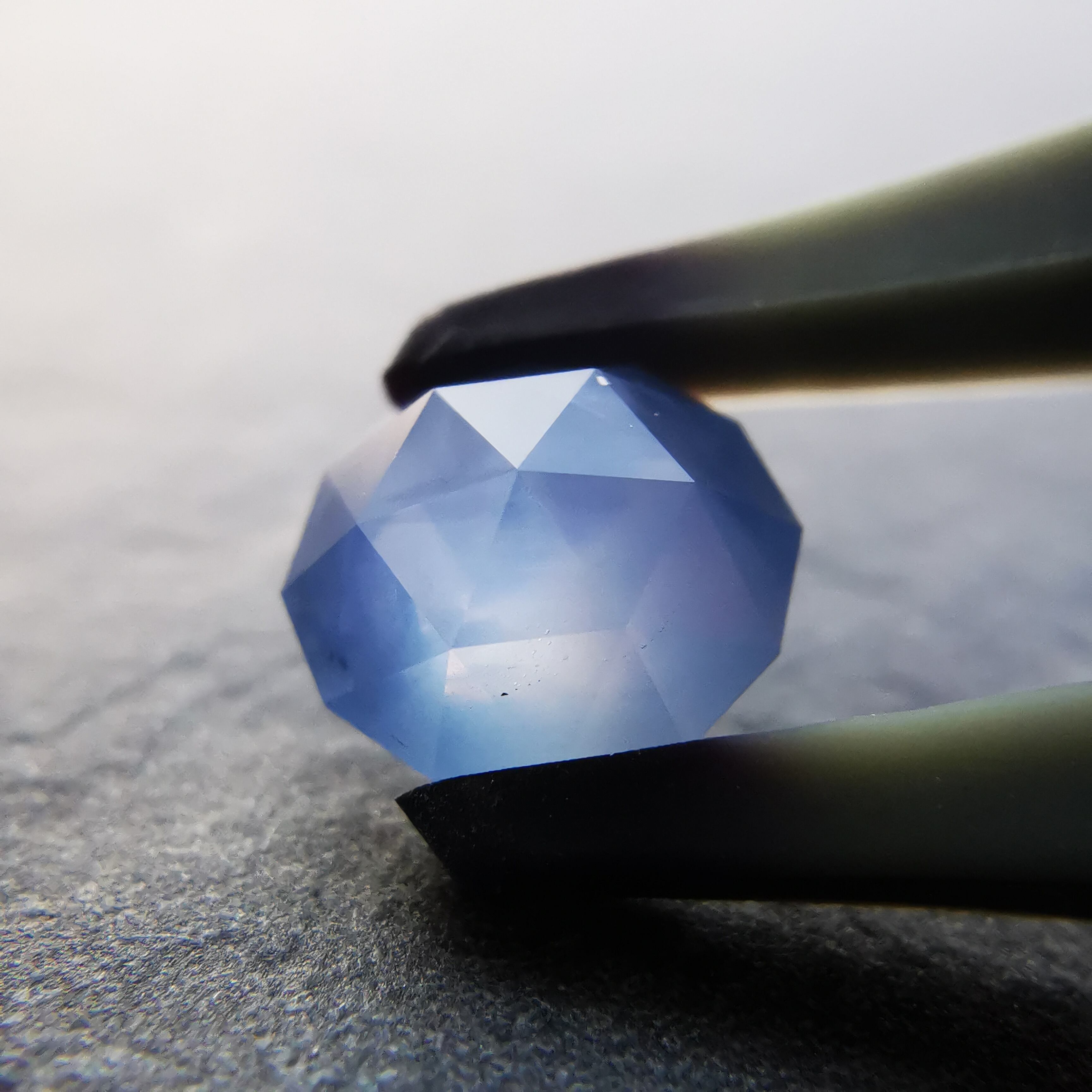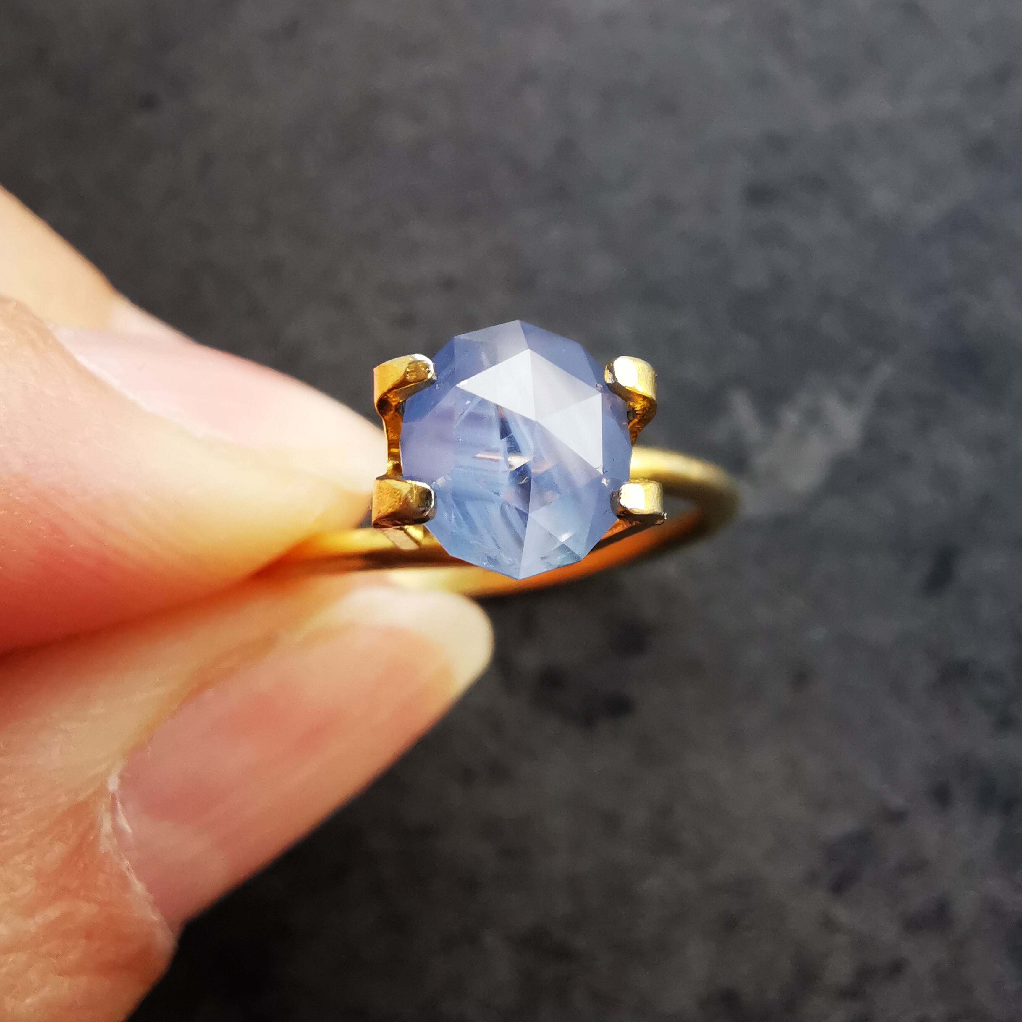 カボションカットのスターサファイアを、コンロと可愛らしいダブルローズカットにカスタムリカットしました。