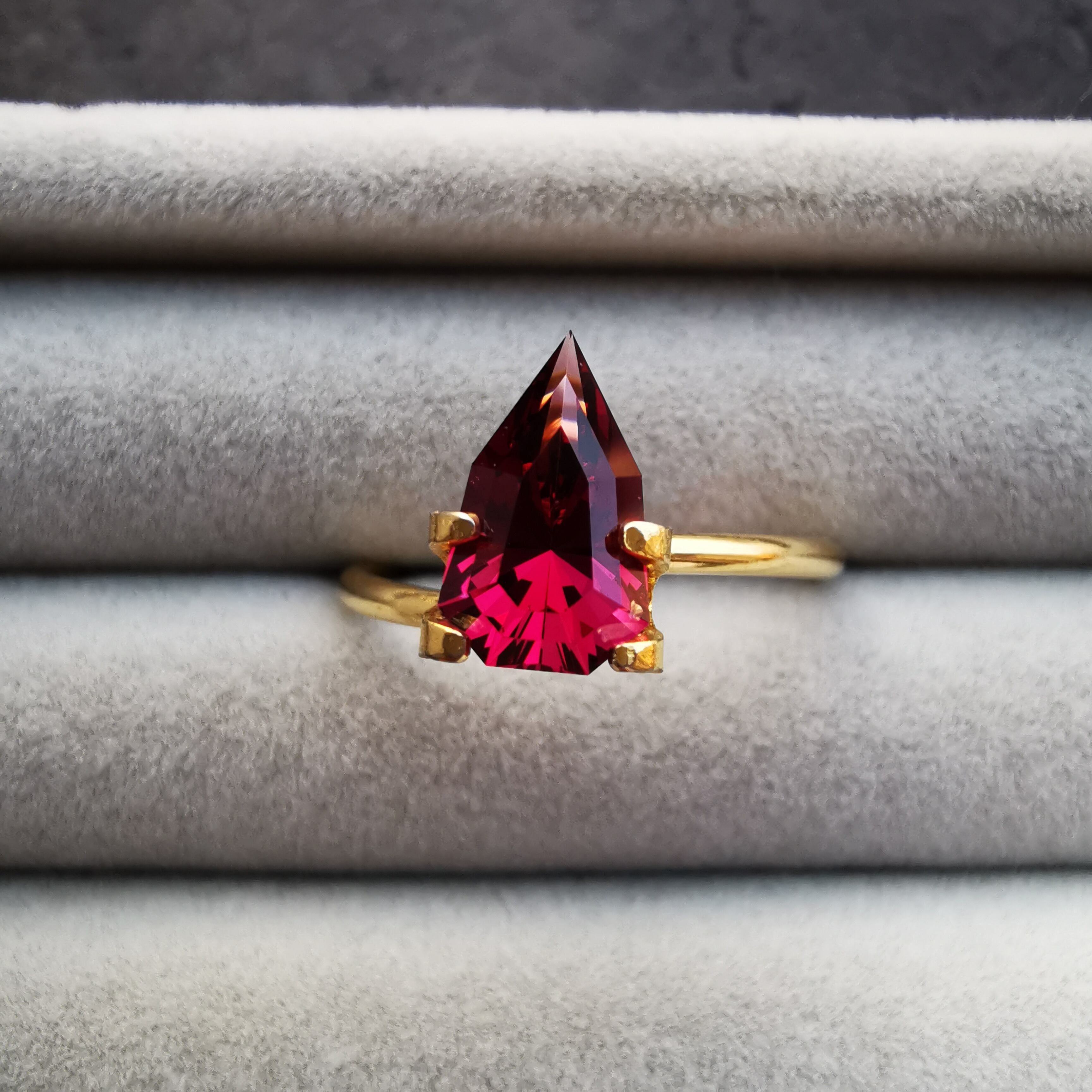 きりりと尖ったシールドカットが、バラの棘のような刺激的な魅力を加えます。