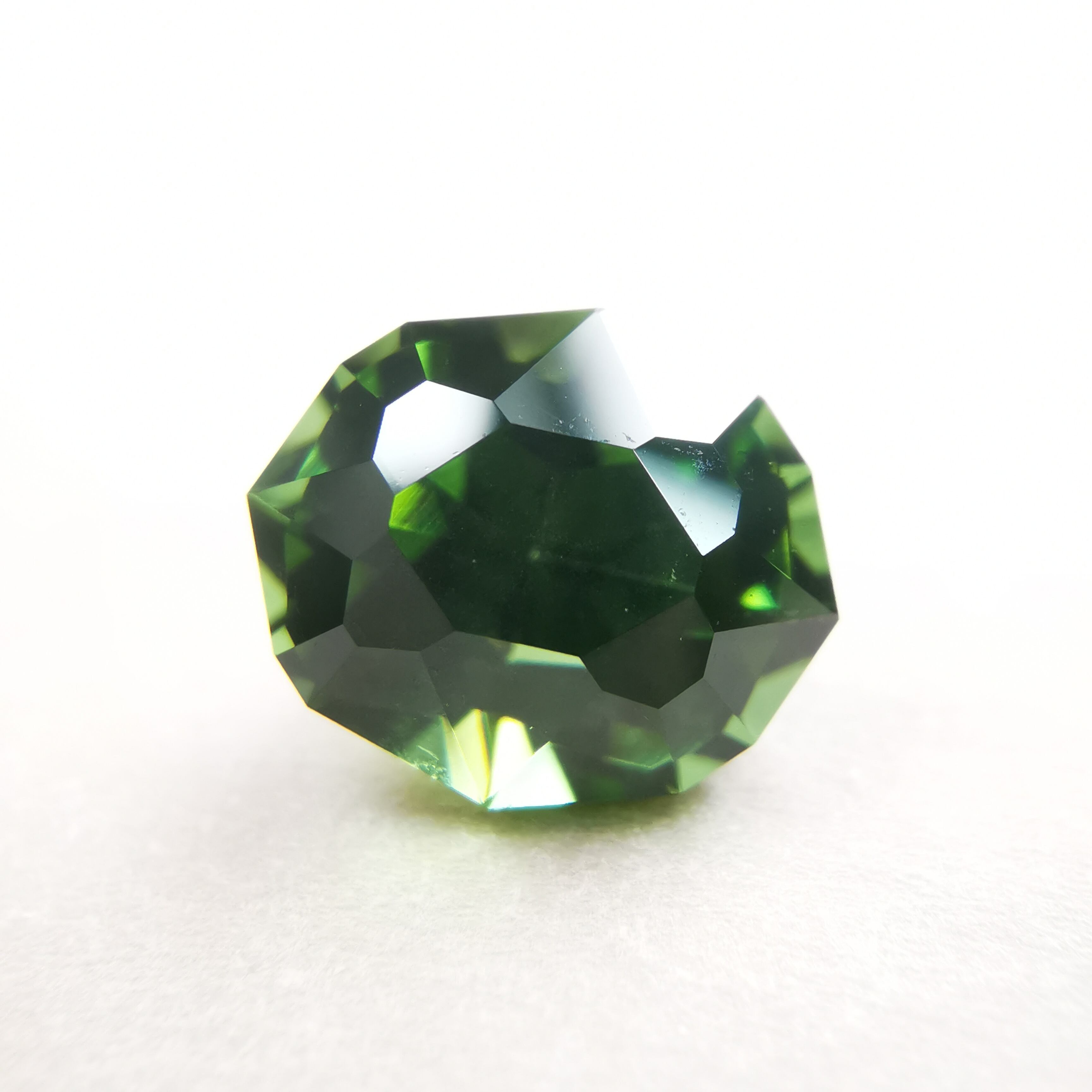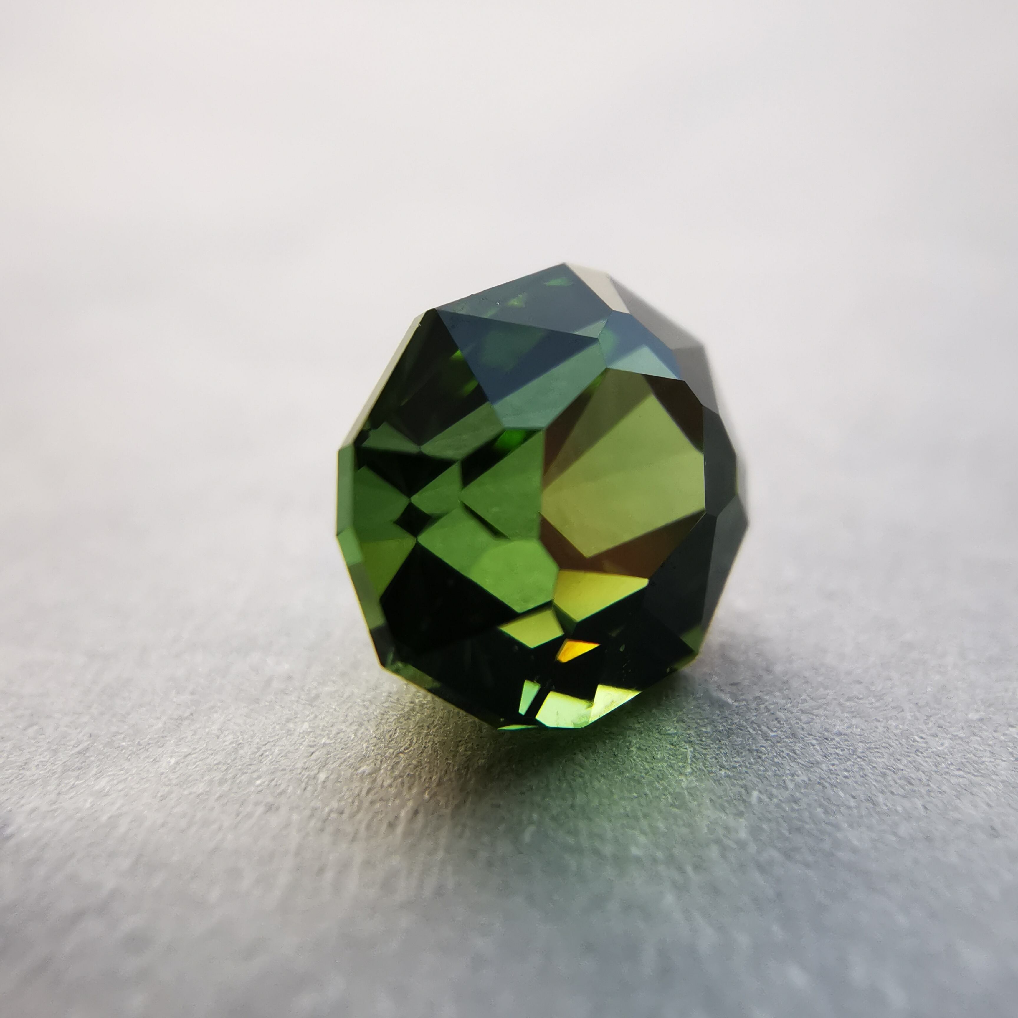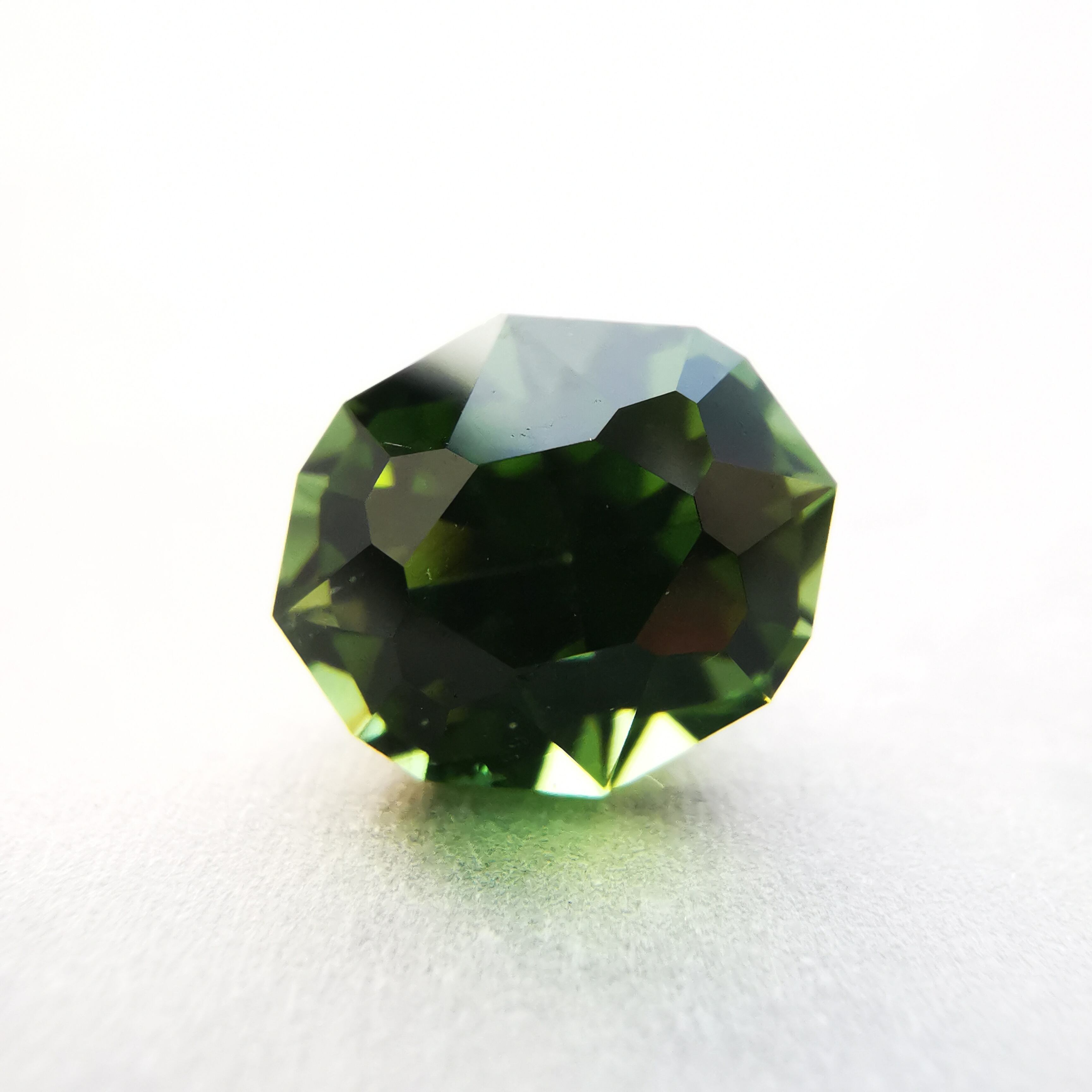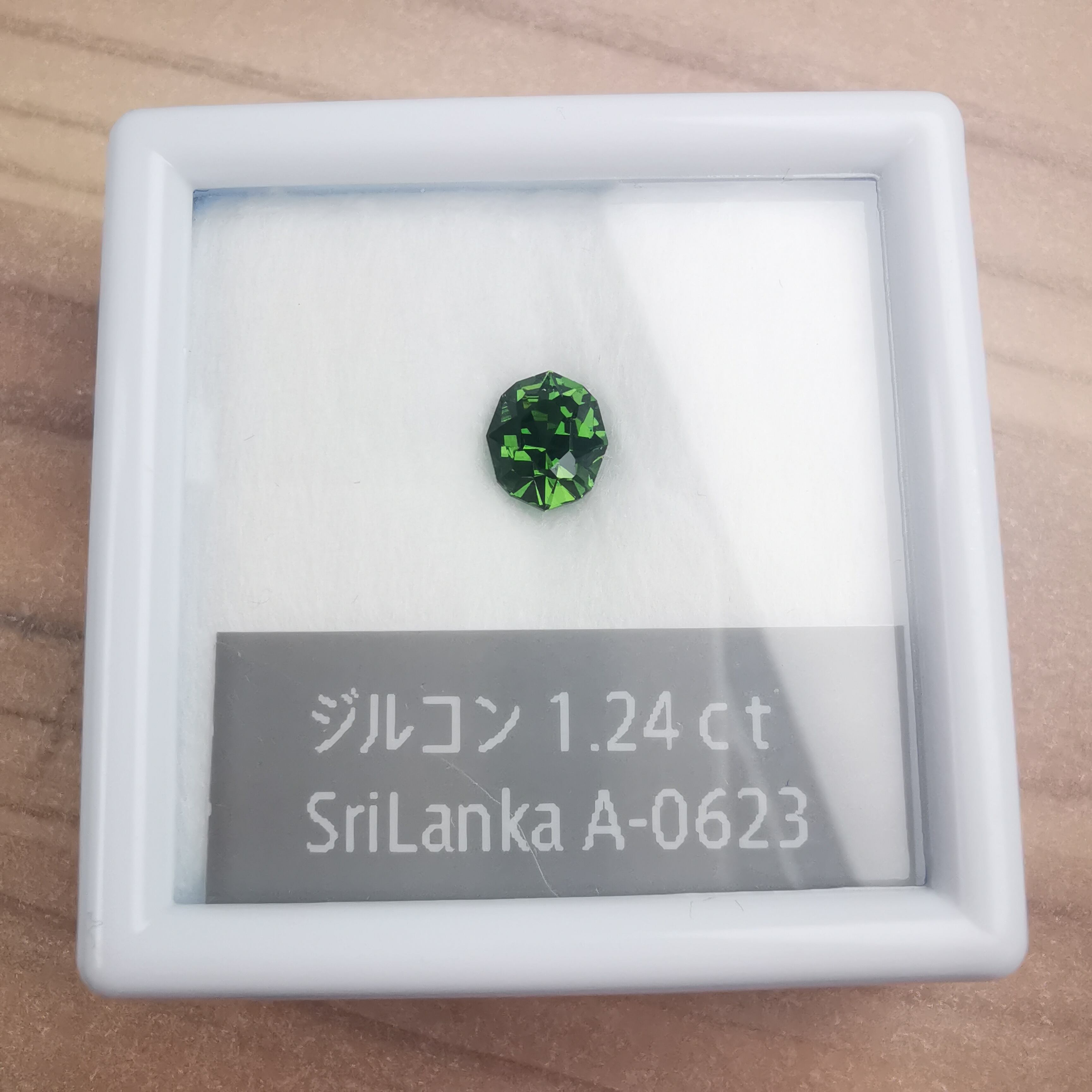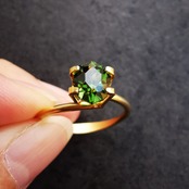針葉樹のような落ち着いた濃いグリーンの中から、鮮やかな黄緑がきらめくジルコンです。