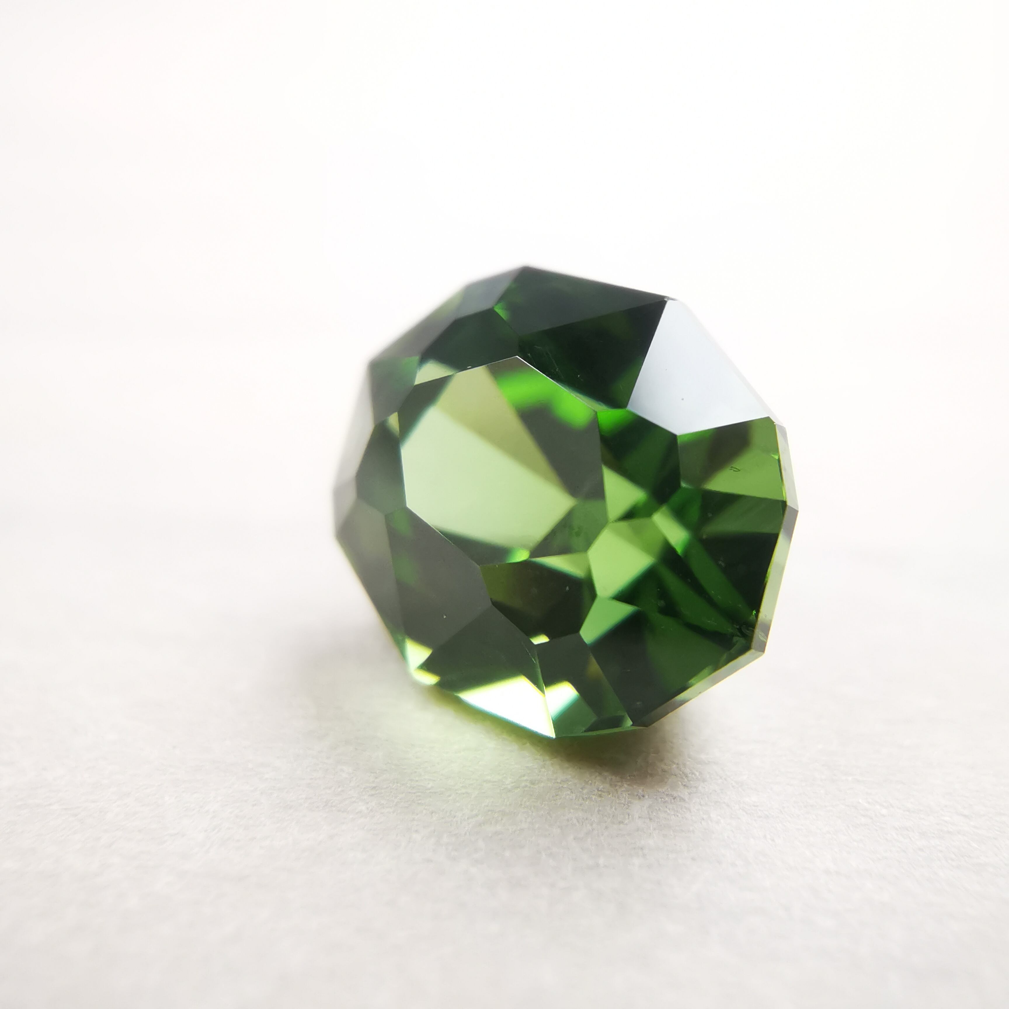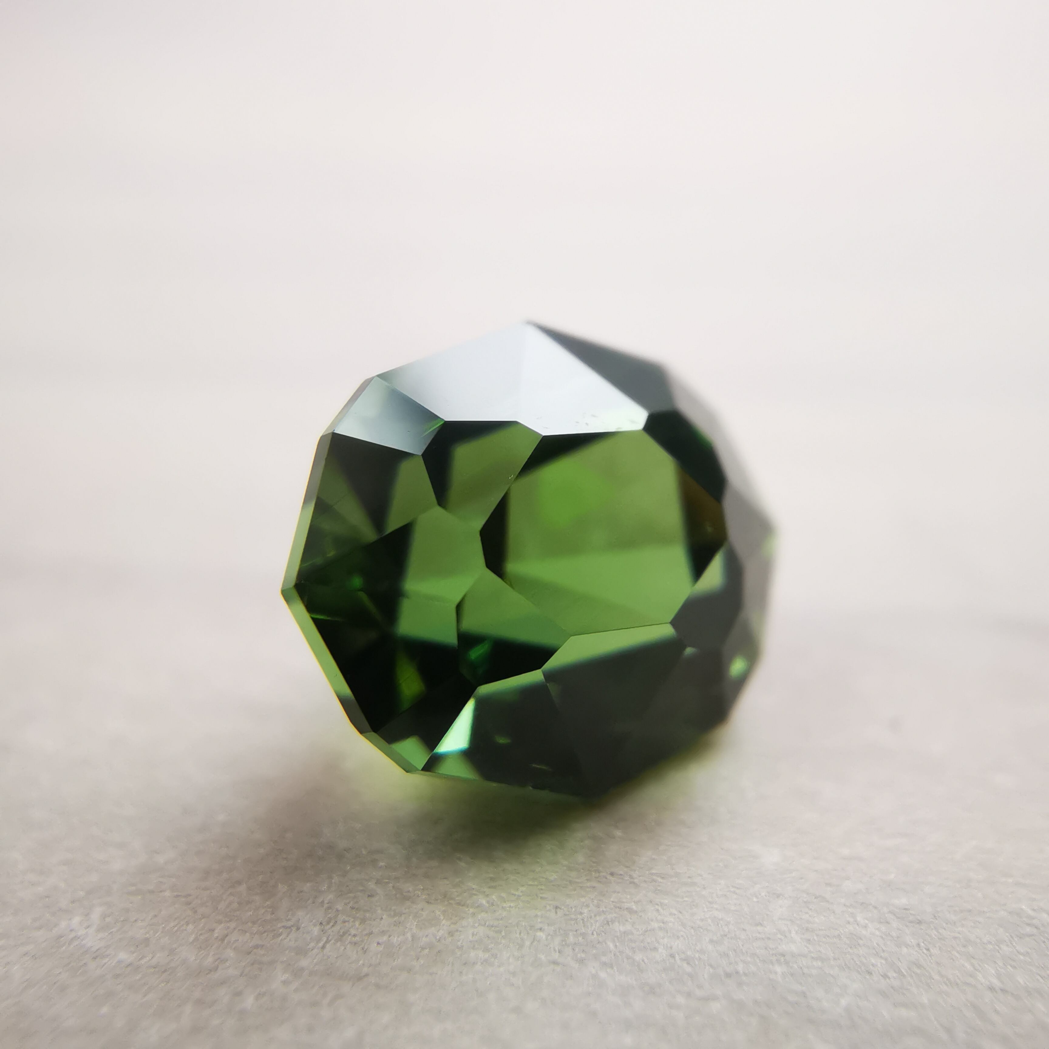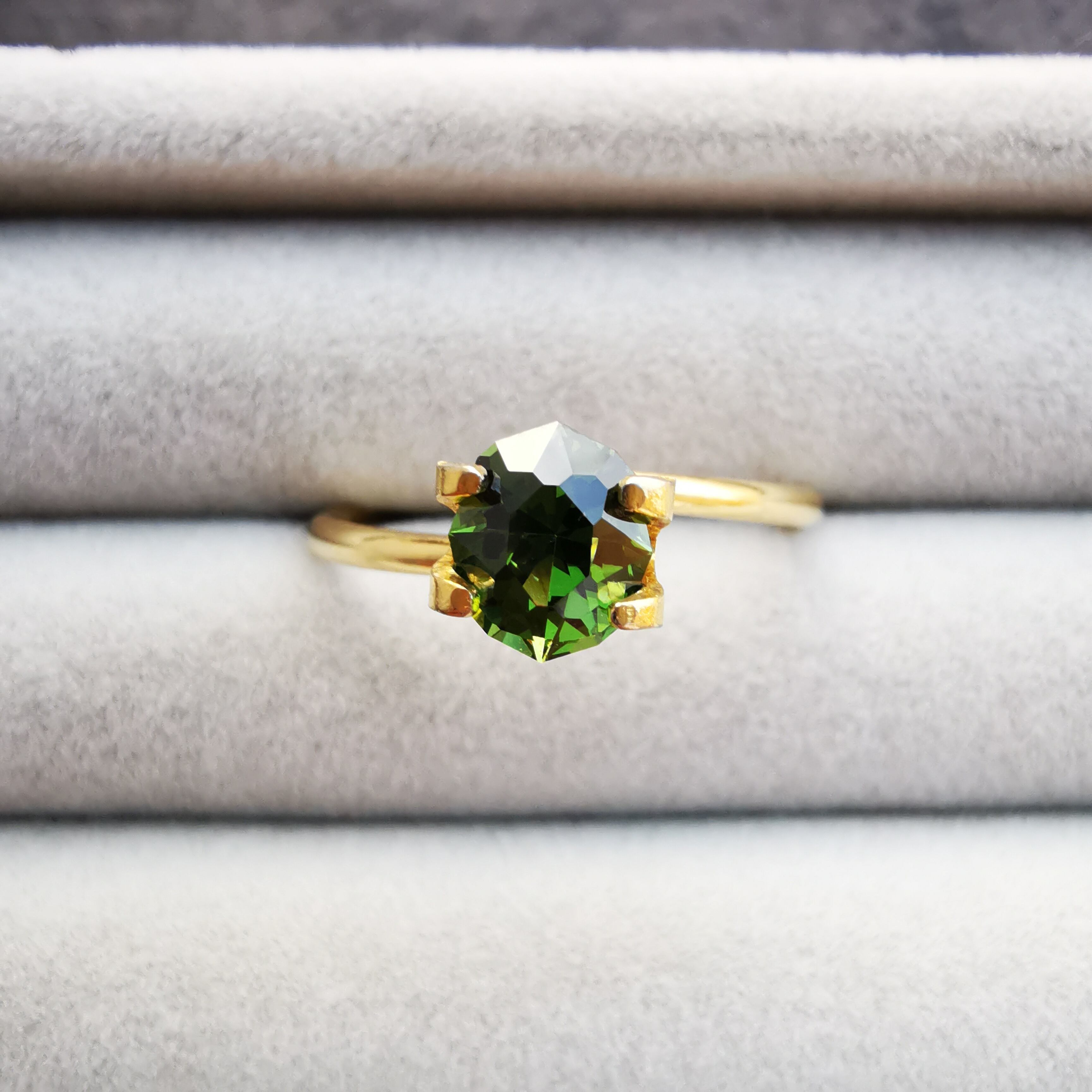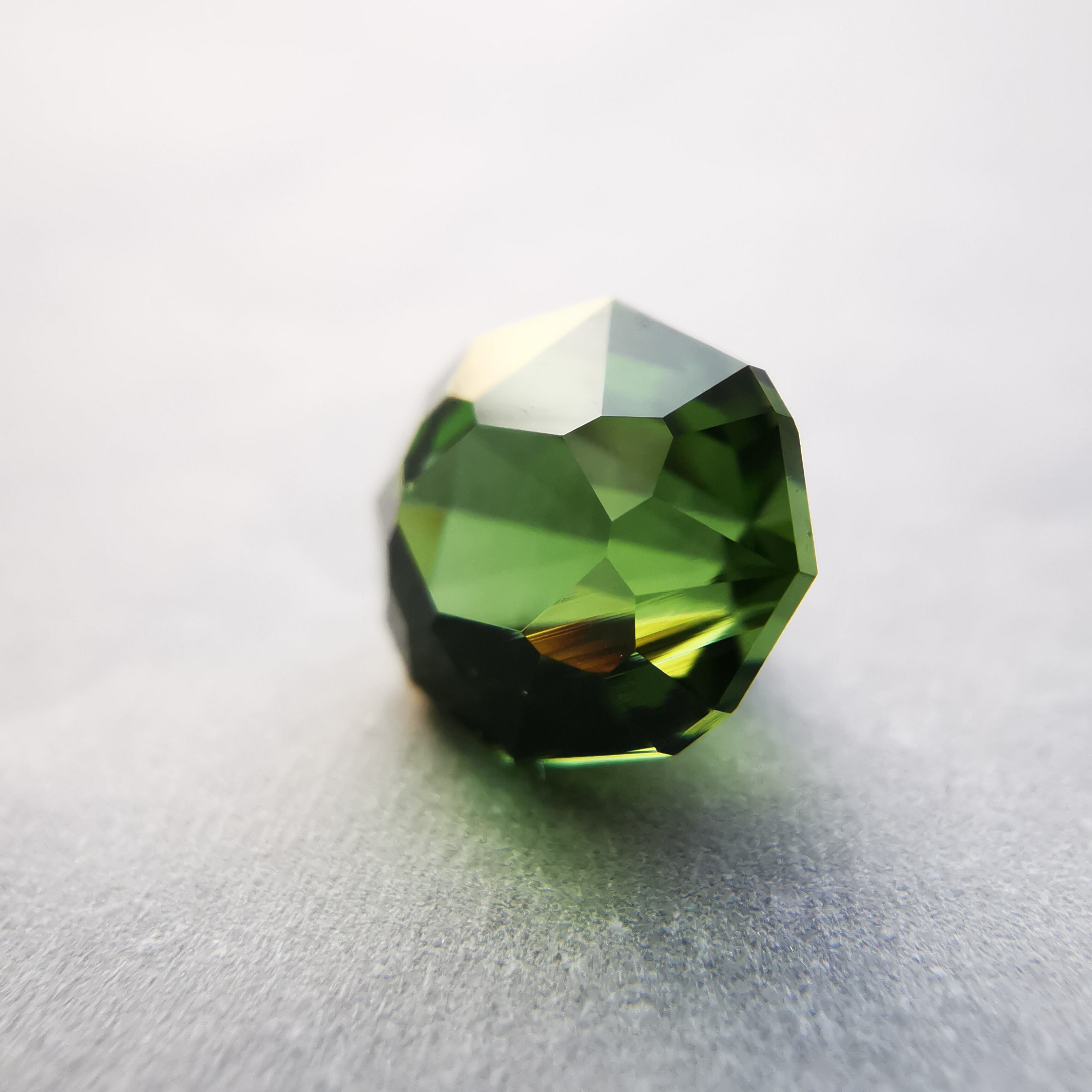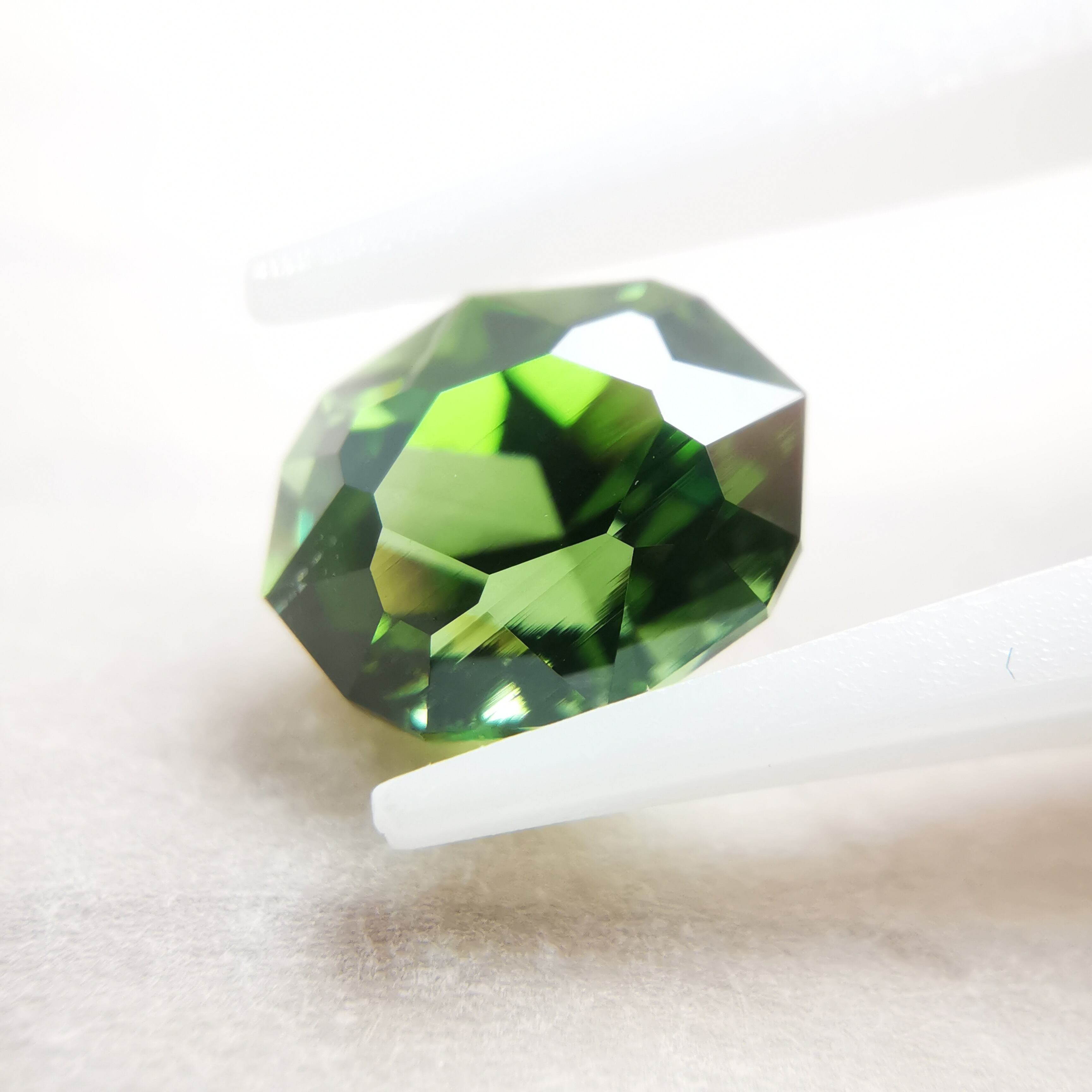 針葉樹のような落ち着いた濃いグリーンの中から、鮮やかな黄緑がきらめくジルコンです。