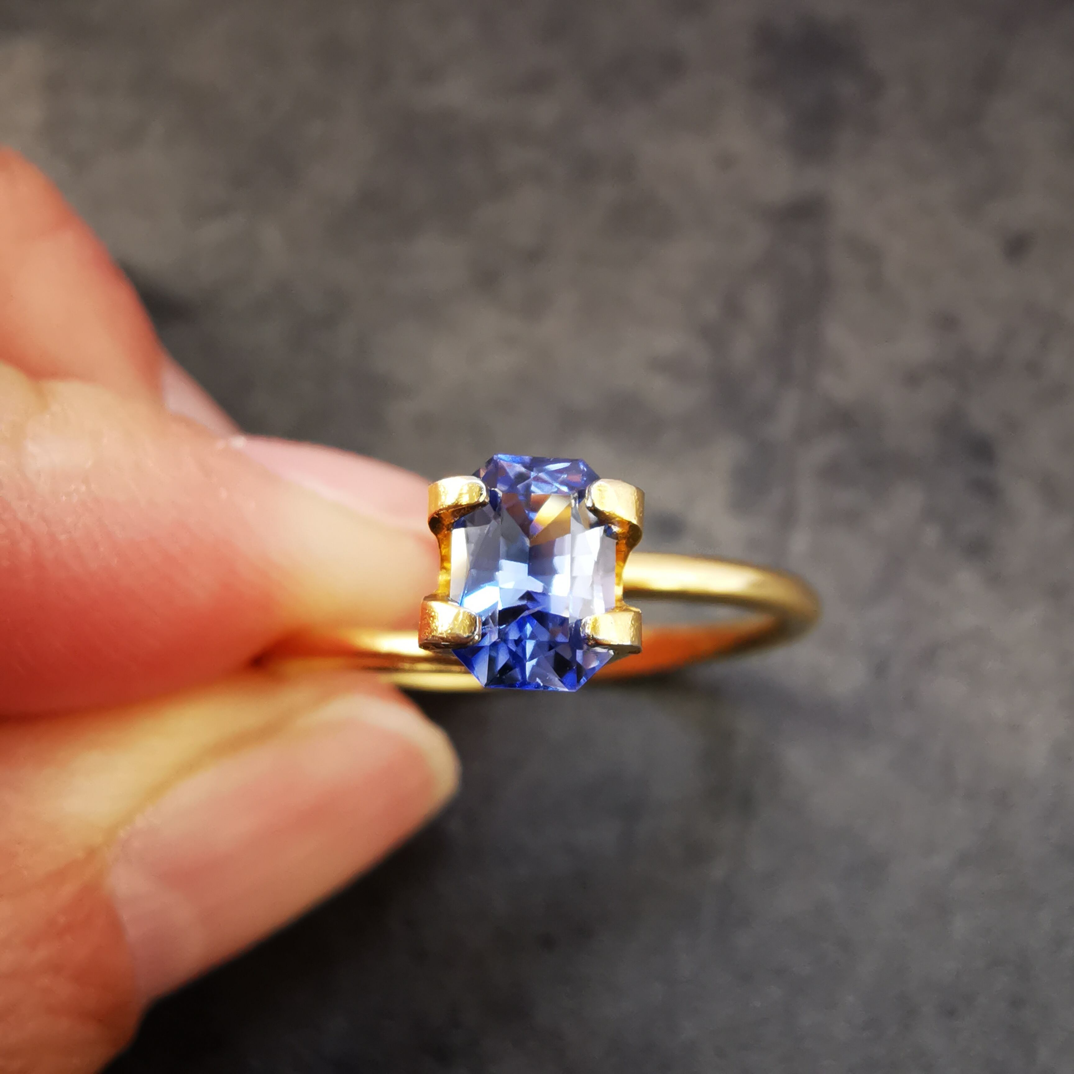 暗さはあまりなく、傾けるとパビリオンに刻まれた繊細なカットにより、キラキラと光が走るように輝きます。