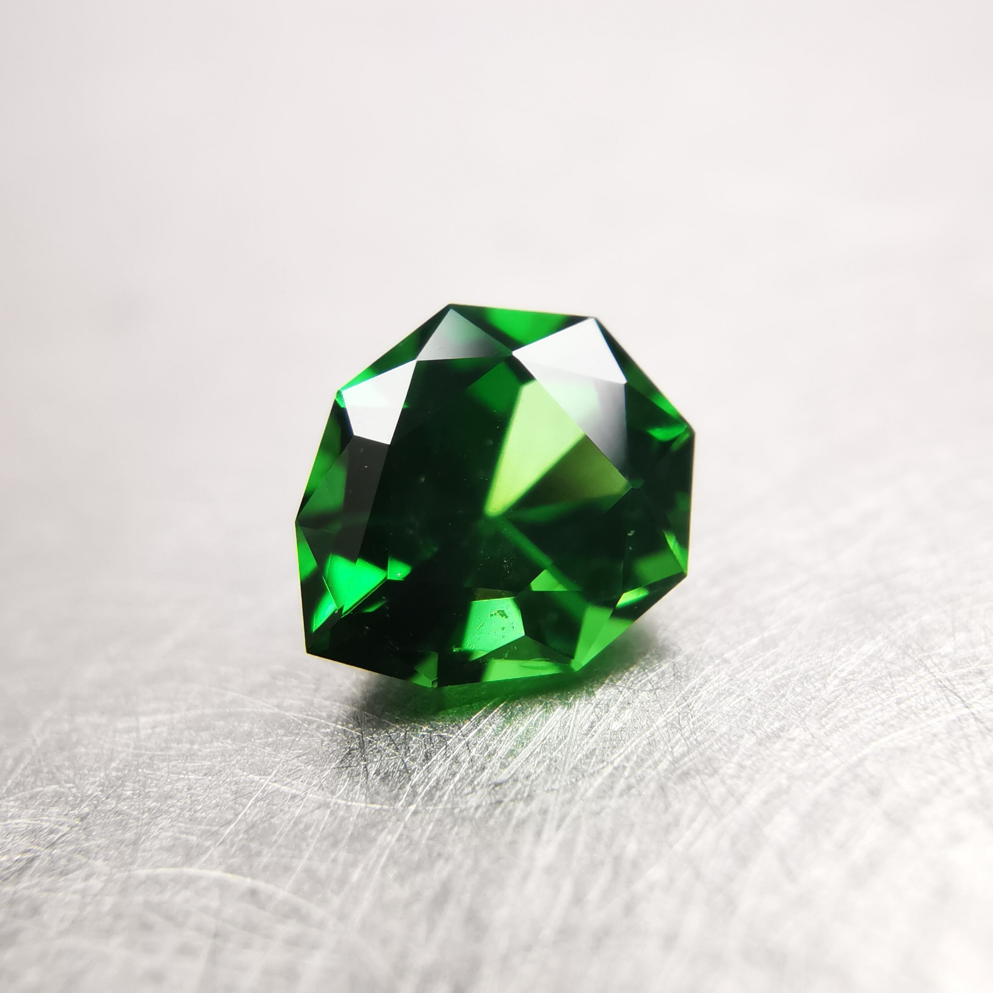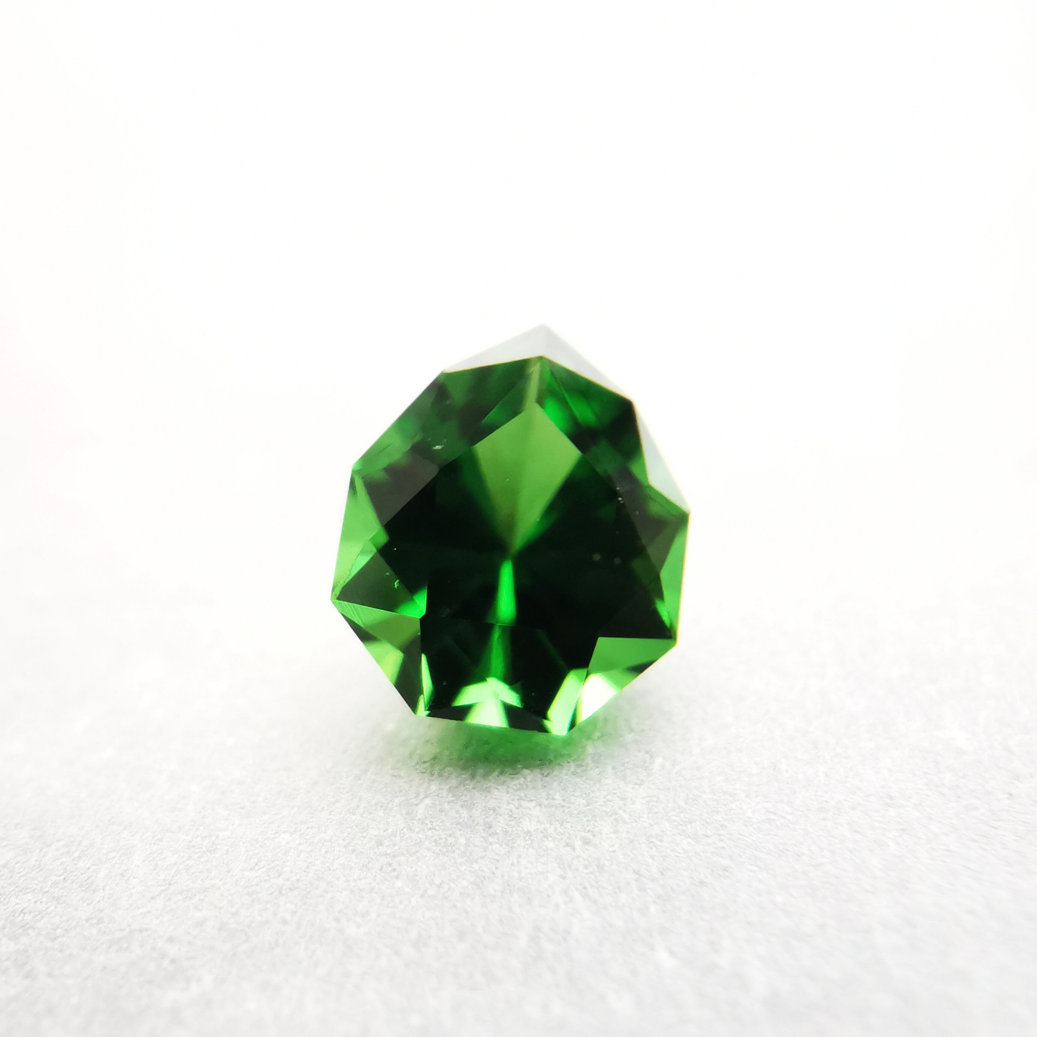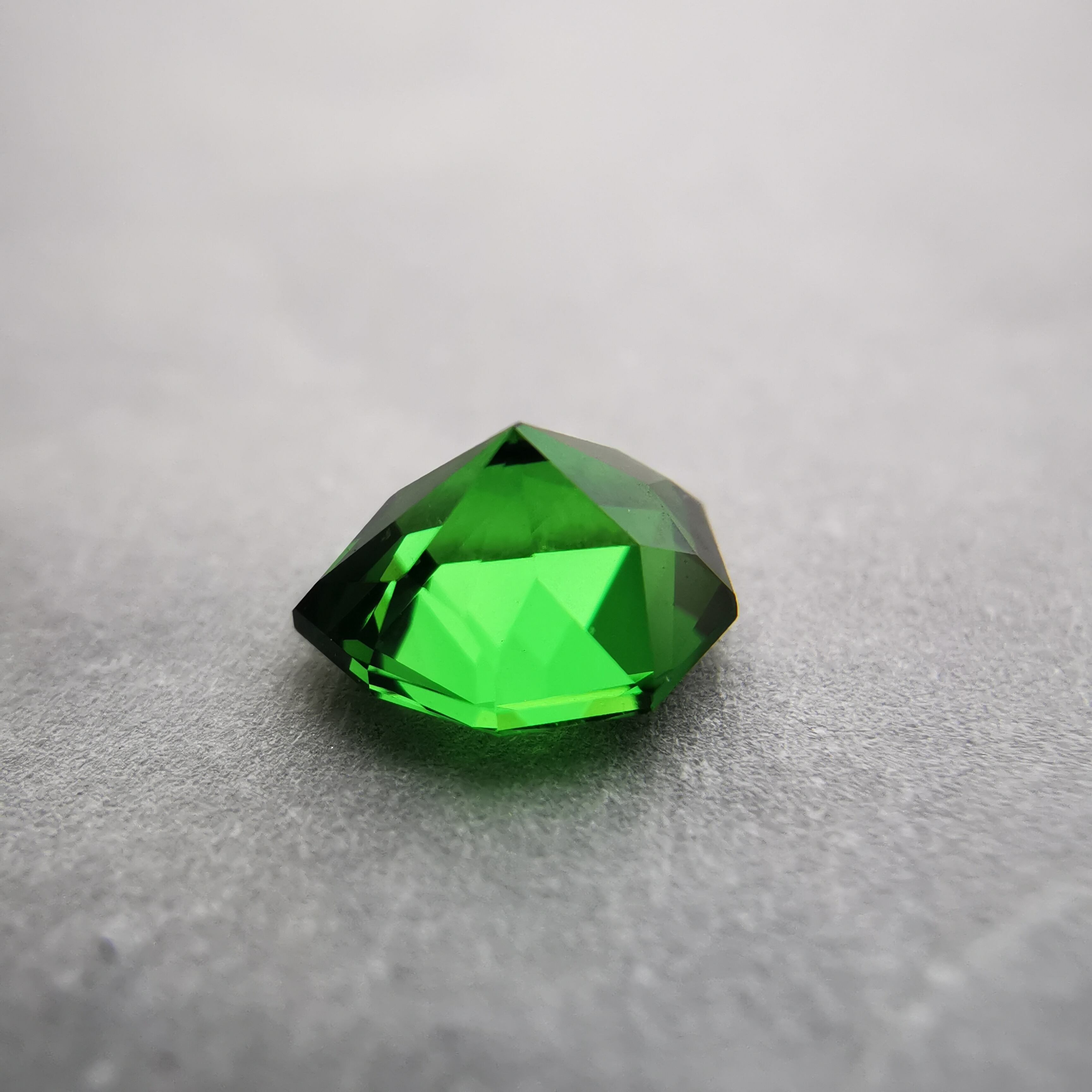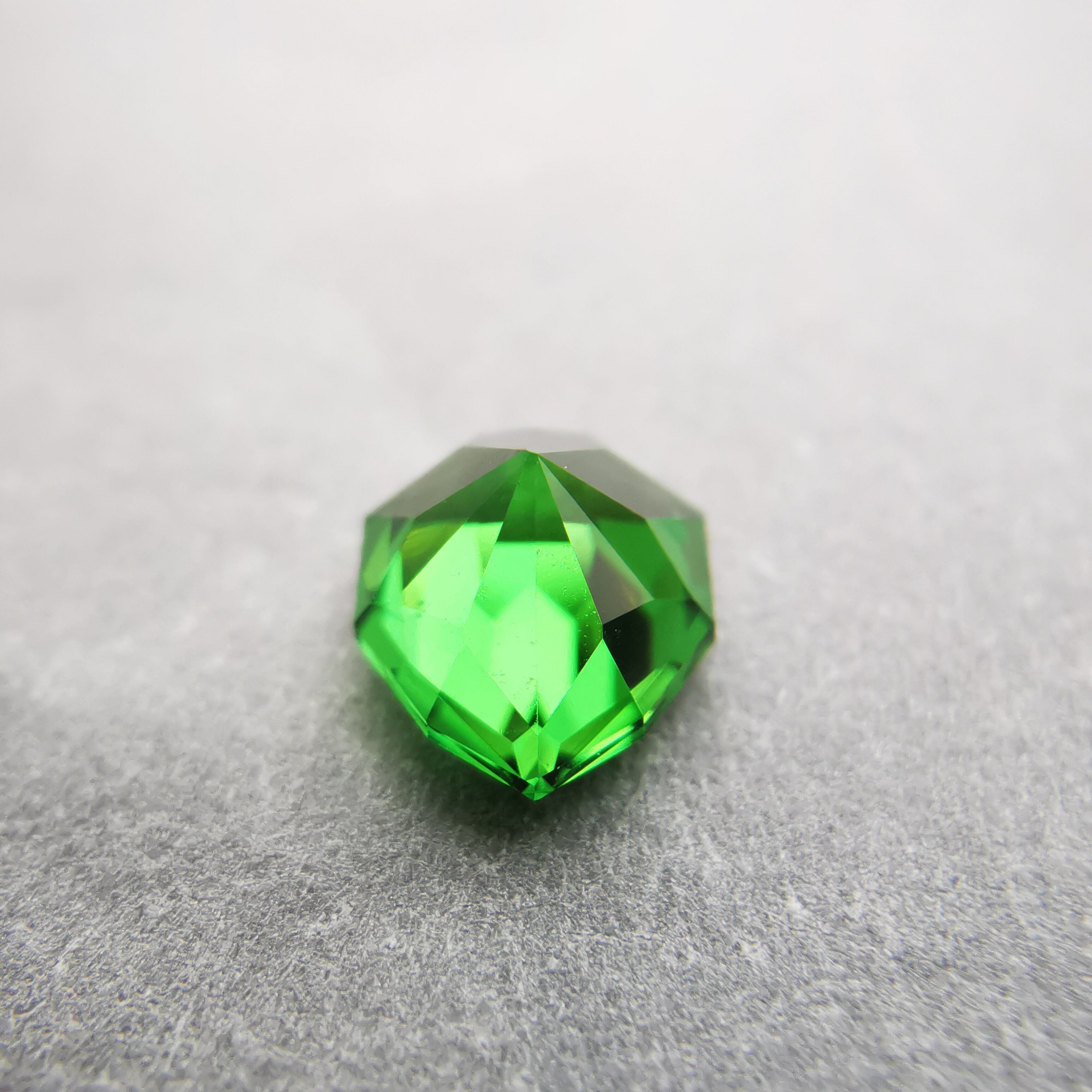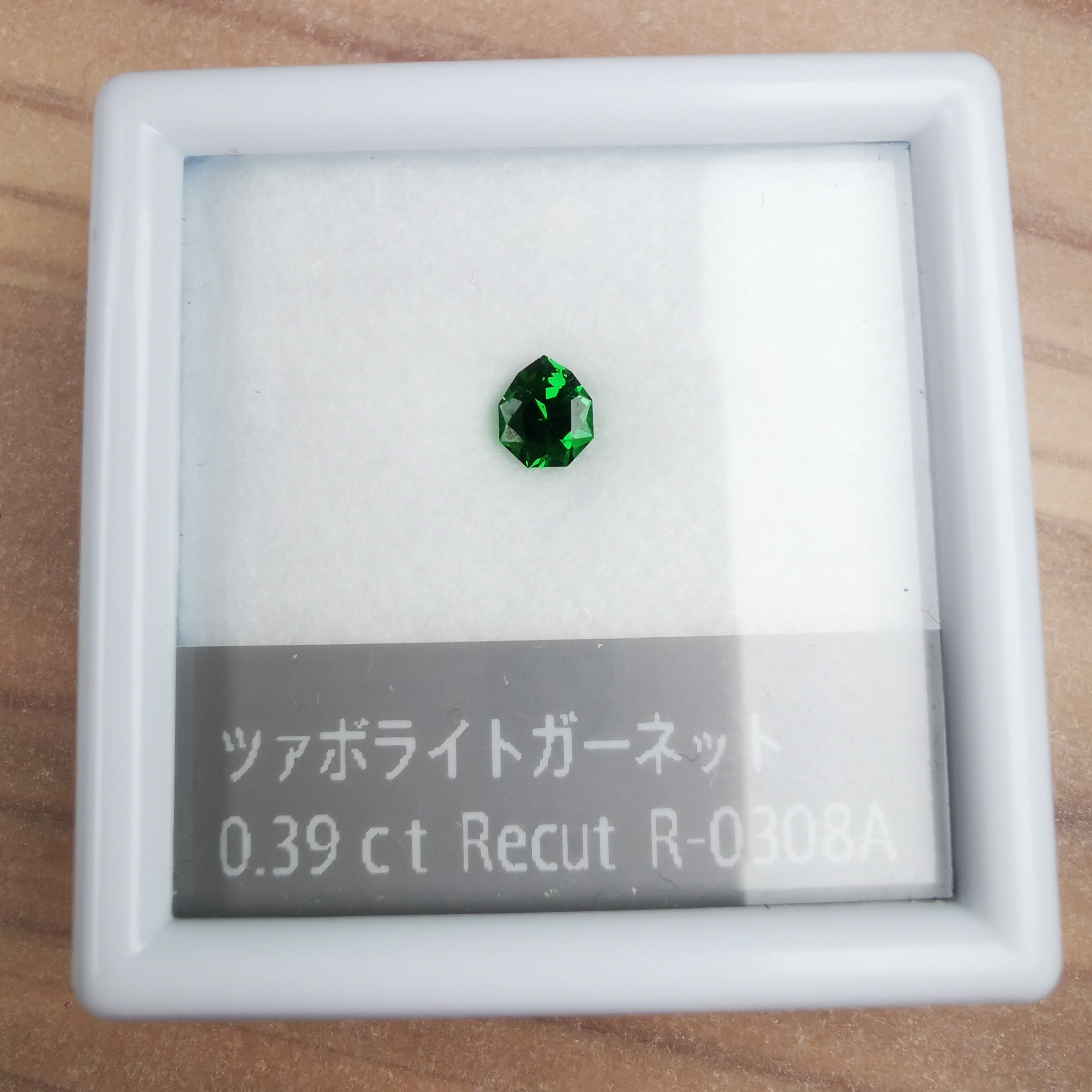多色性のないガーネットなので、どこから見でもグリーン、グリーン。