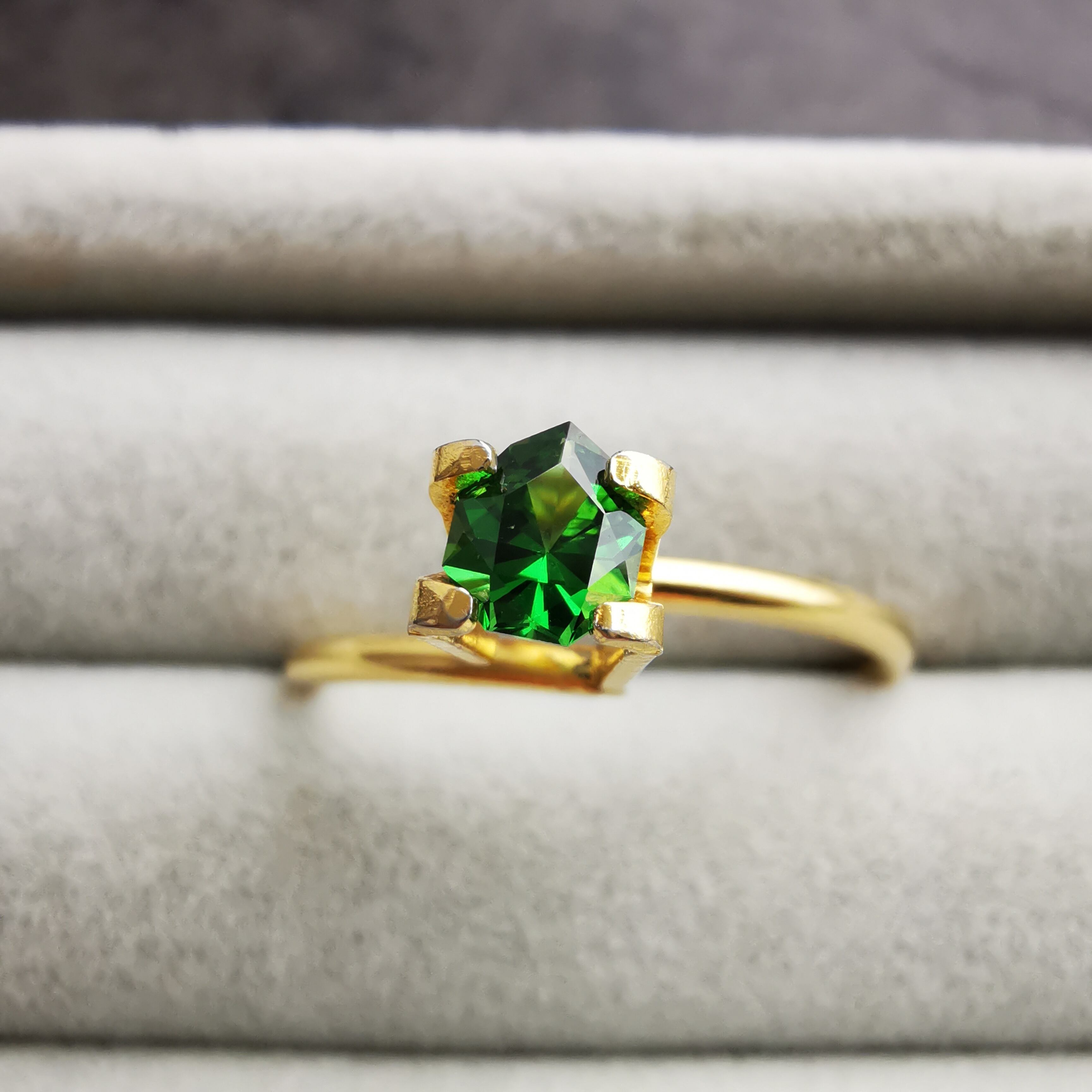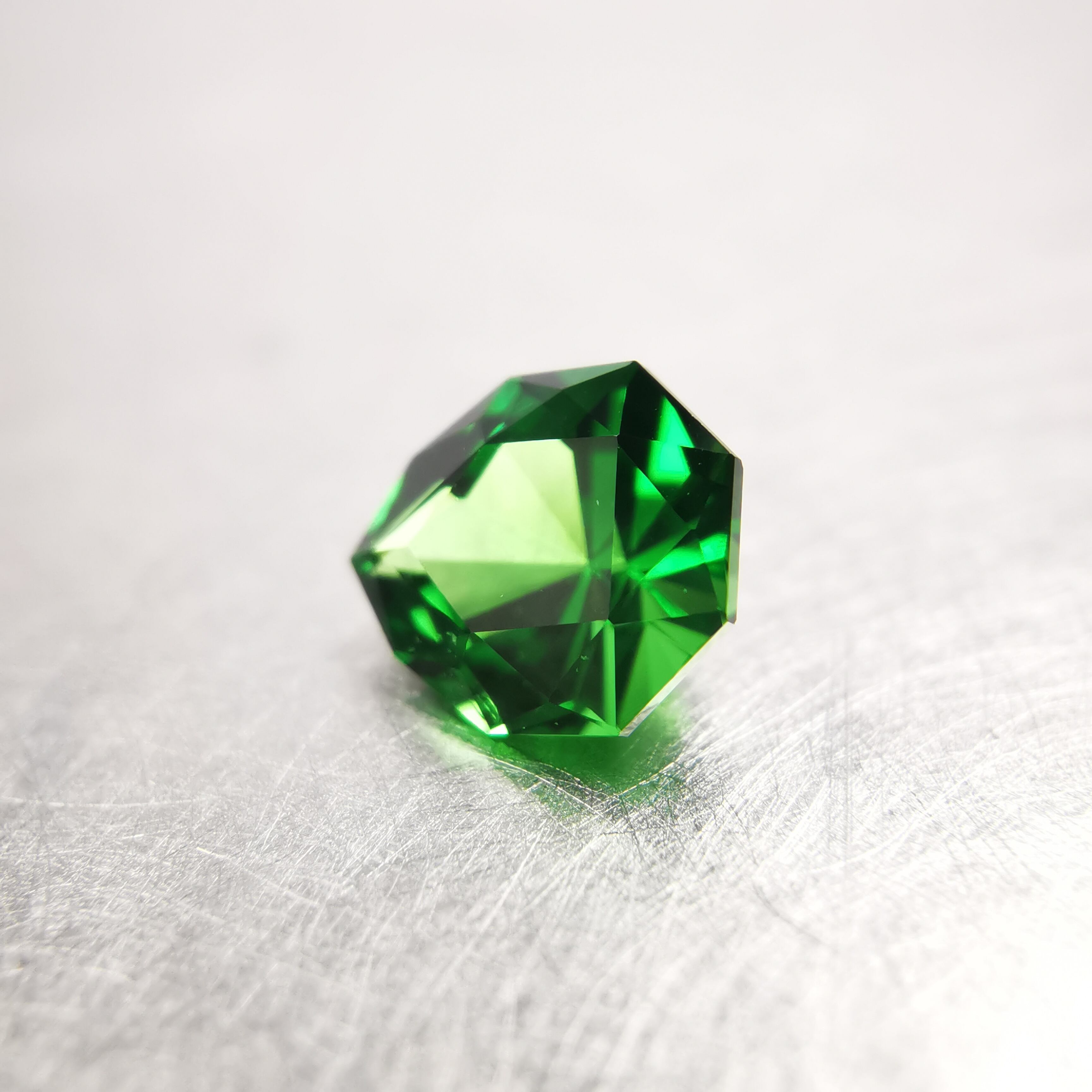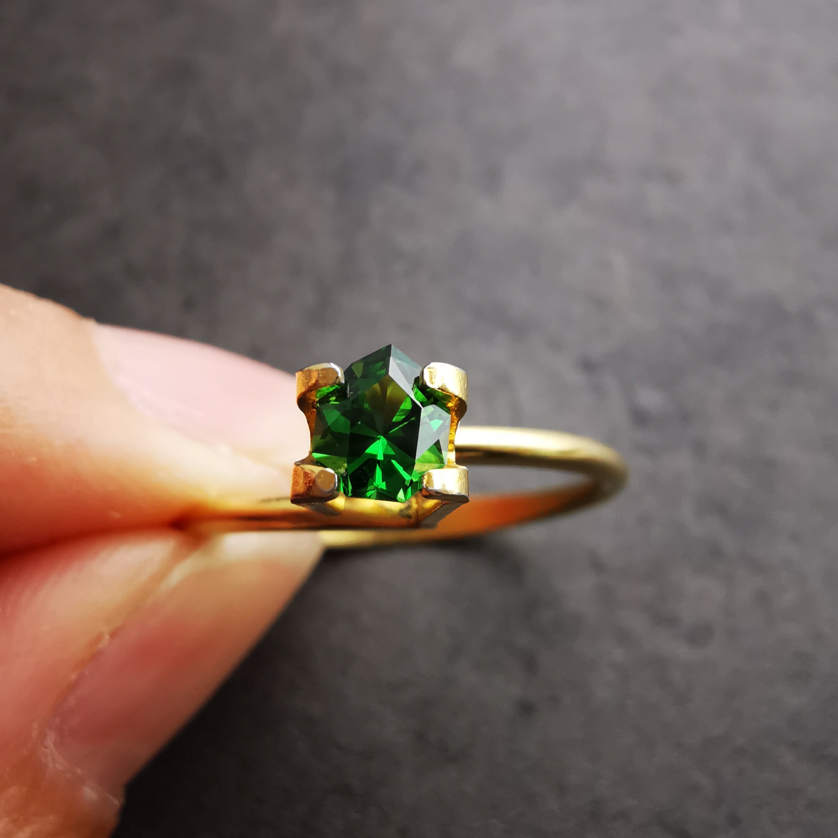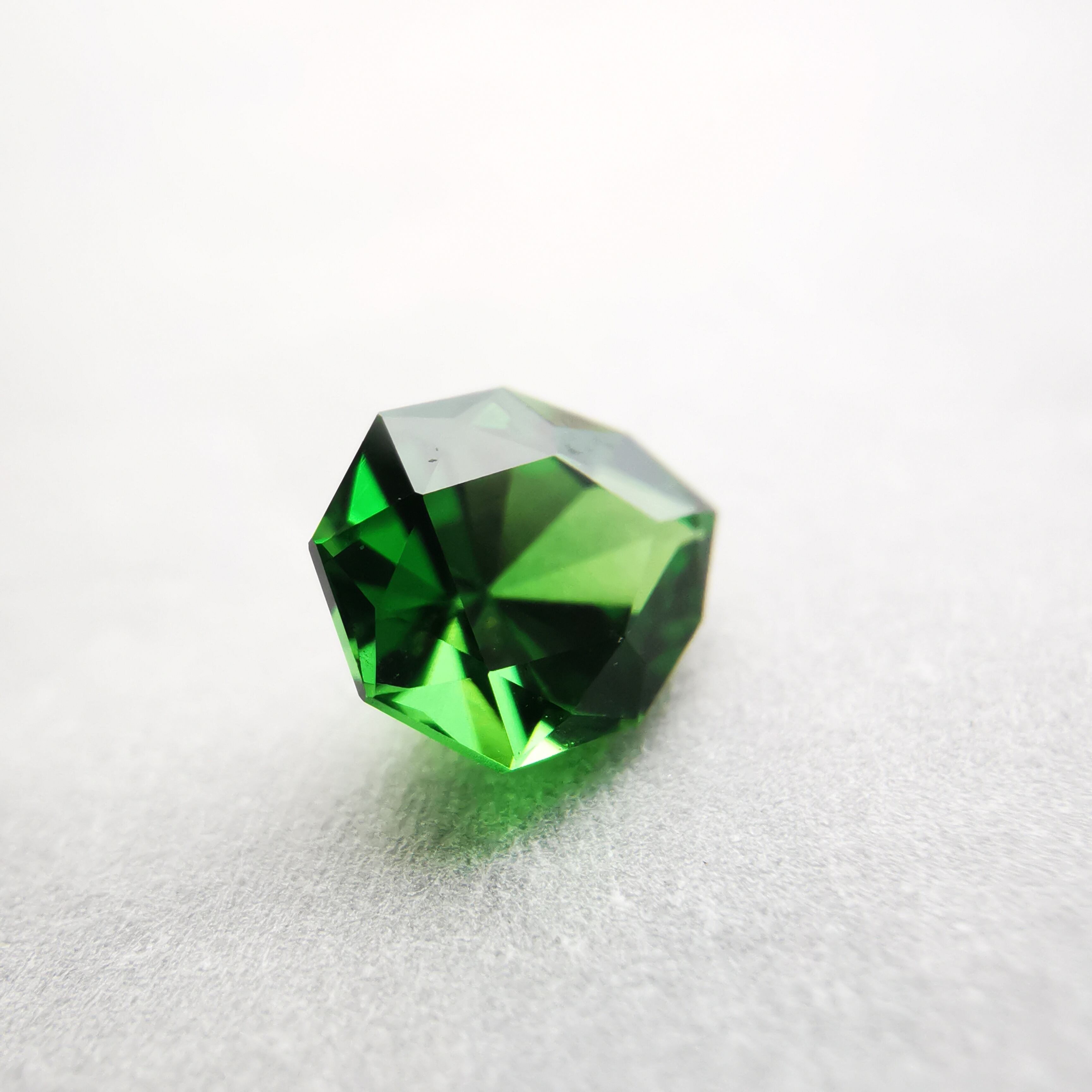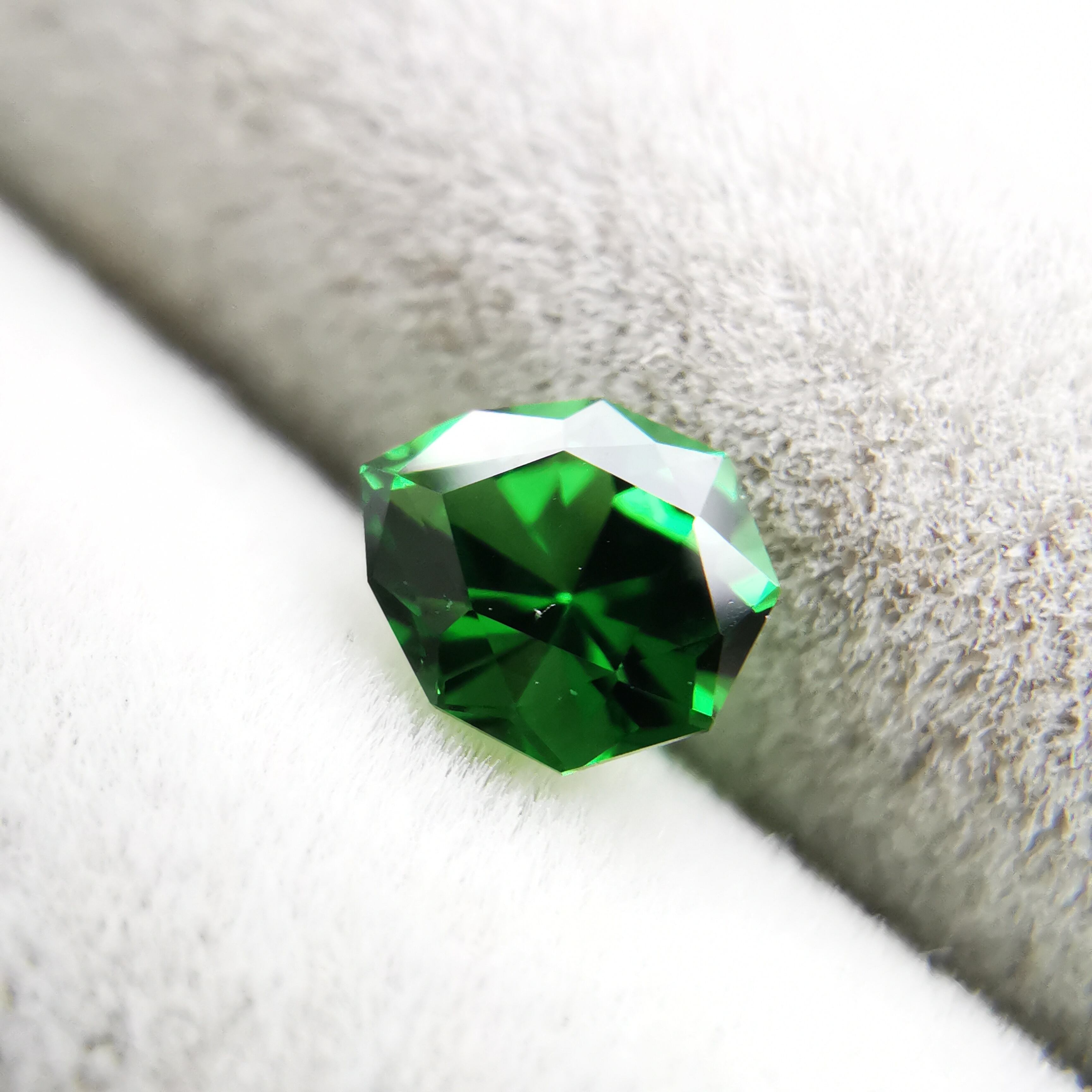 多色性のないガーネットなので、どこから見でもグリーン、グリーン。