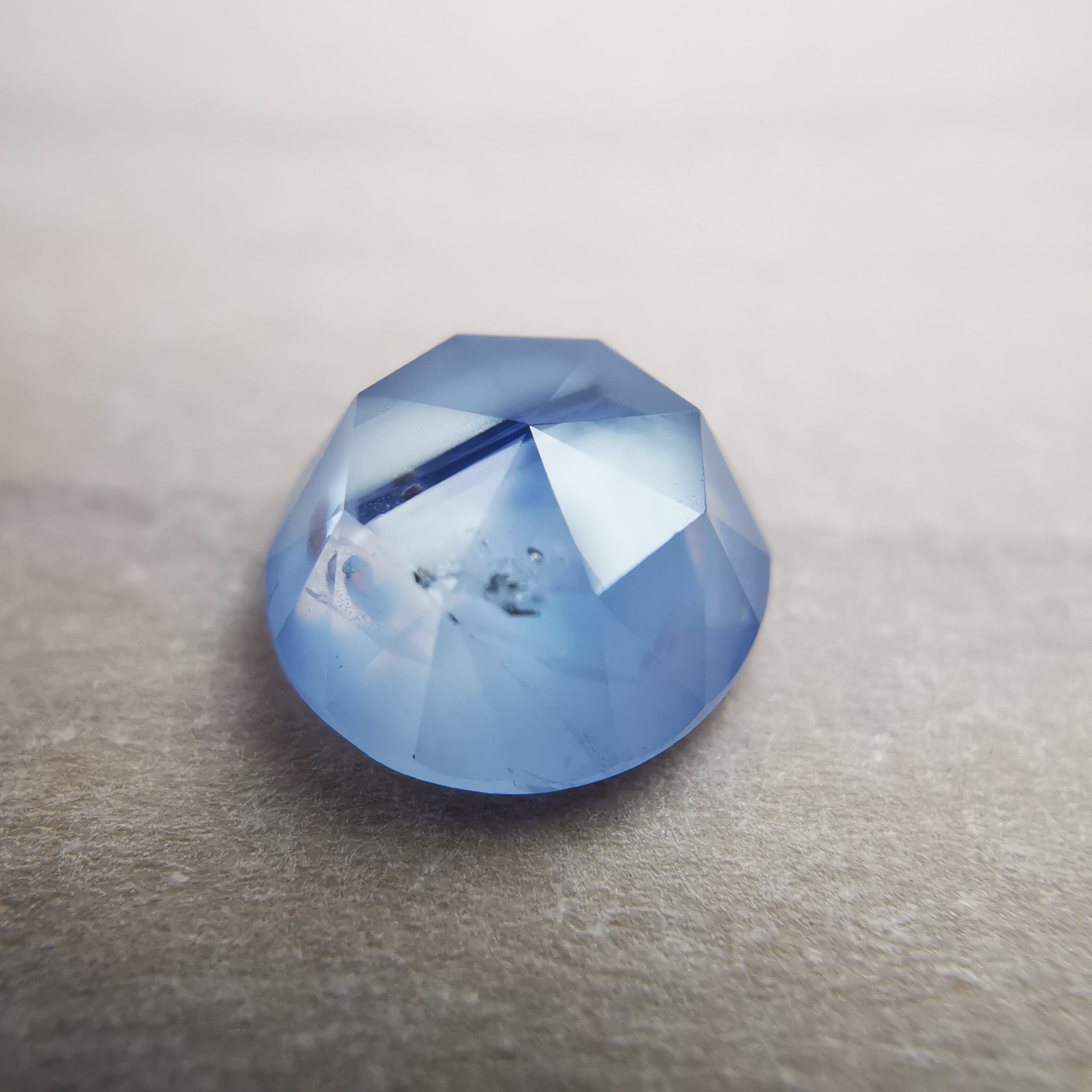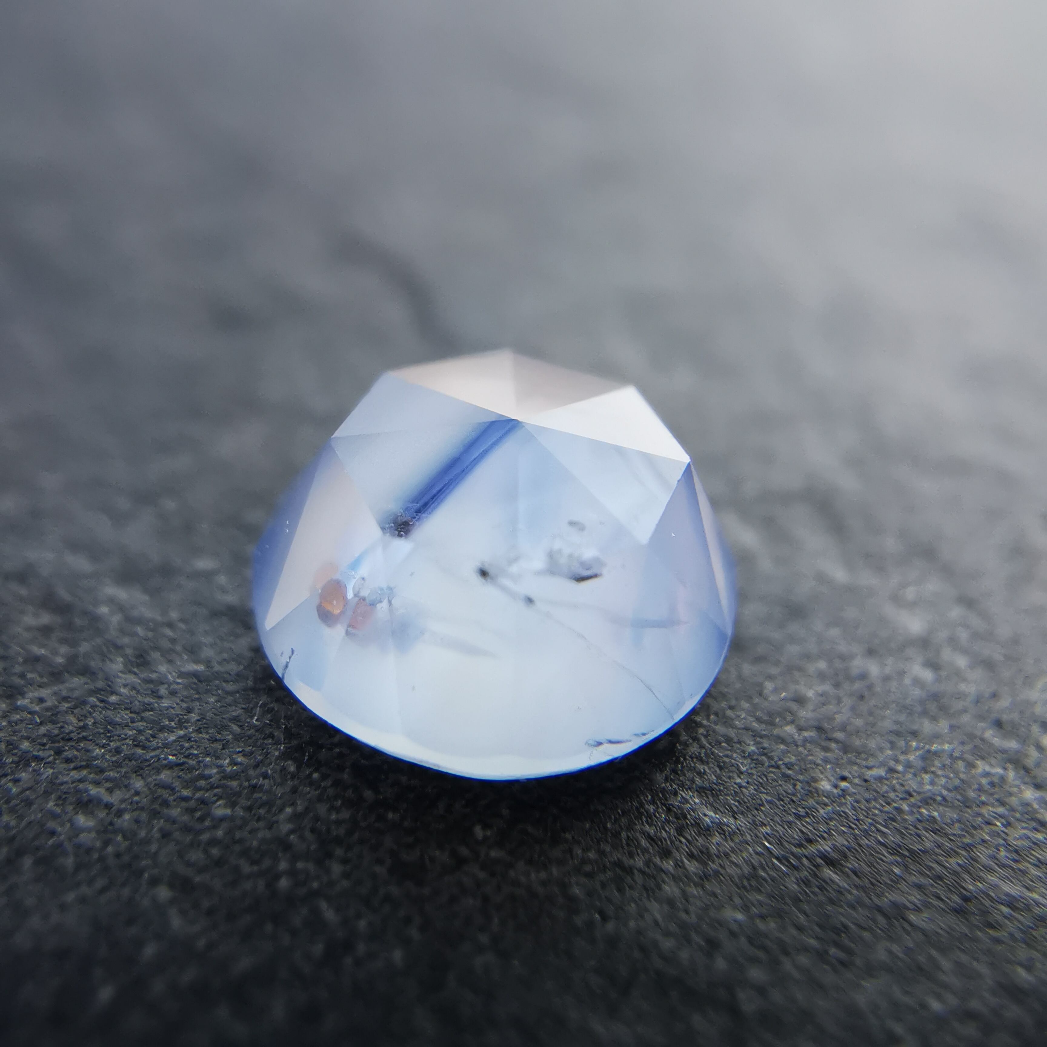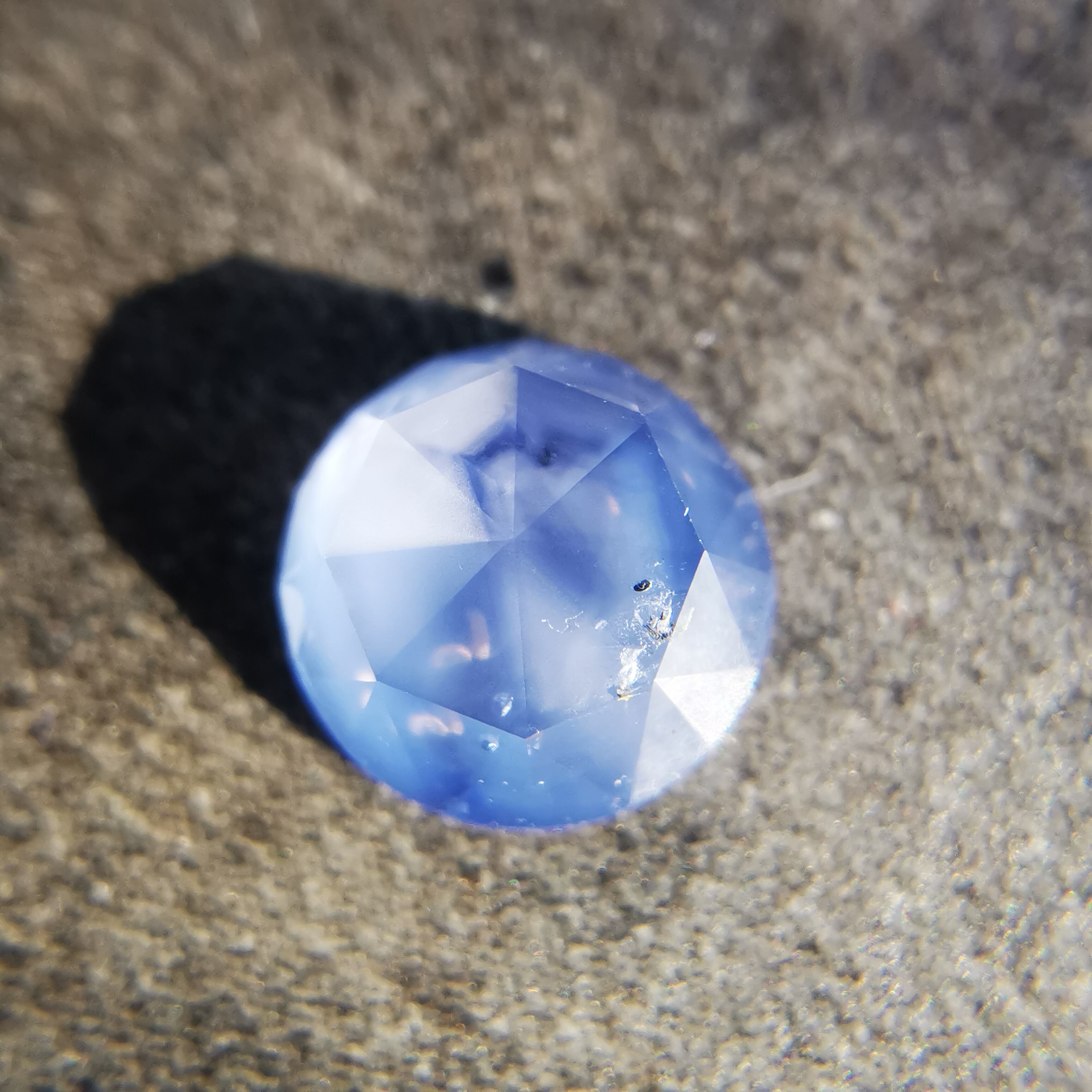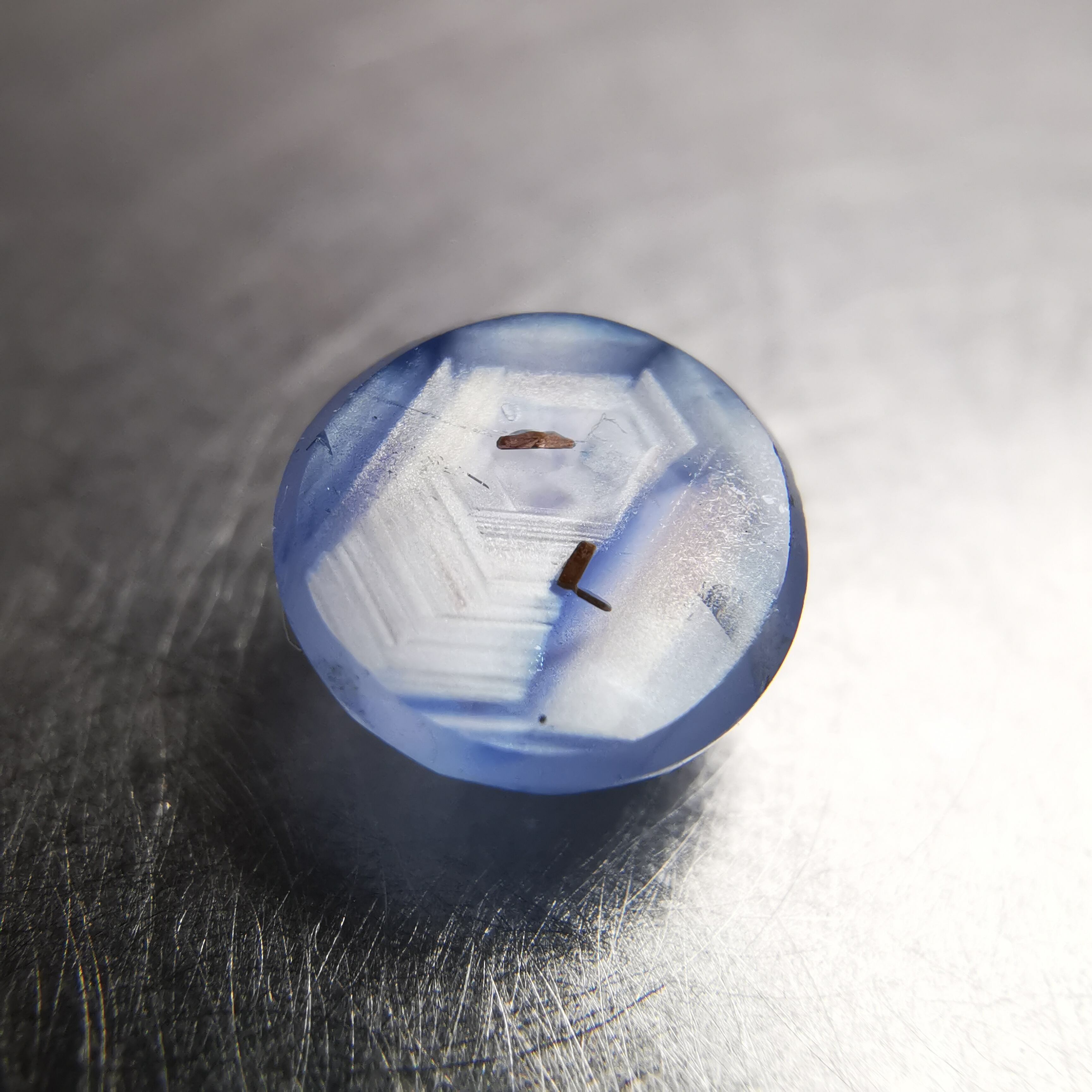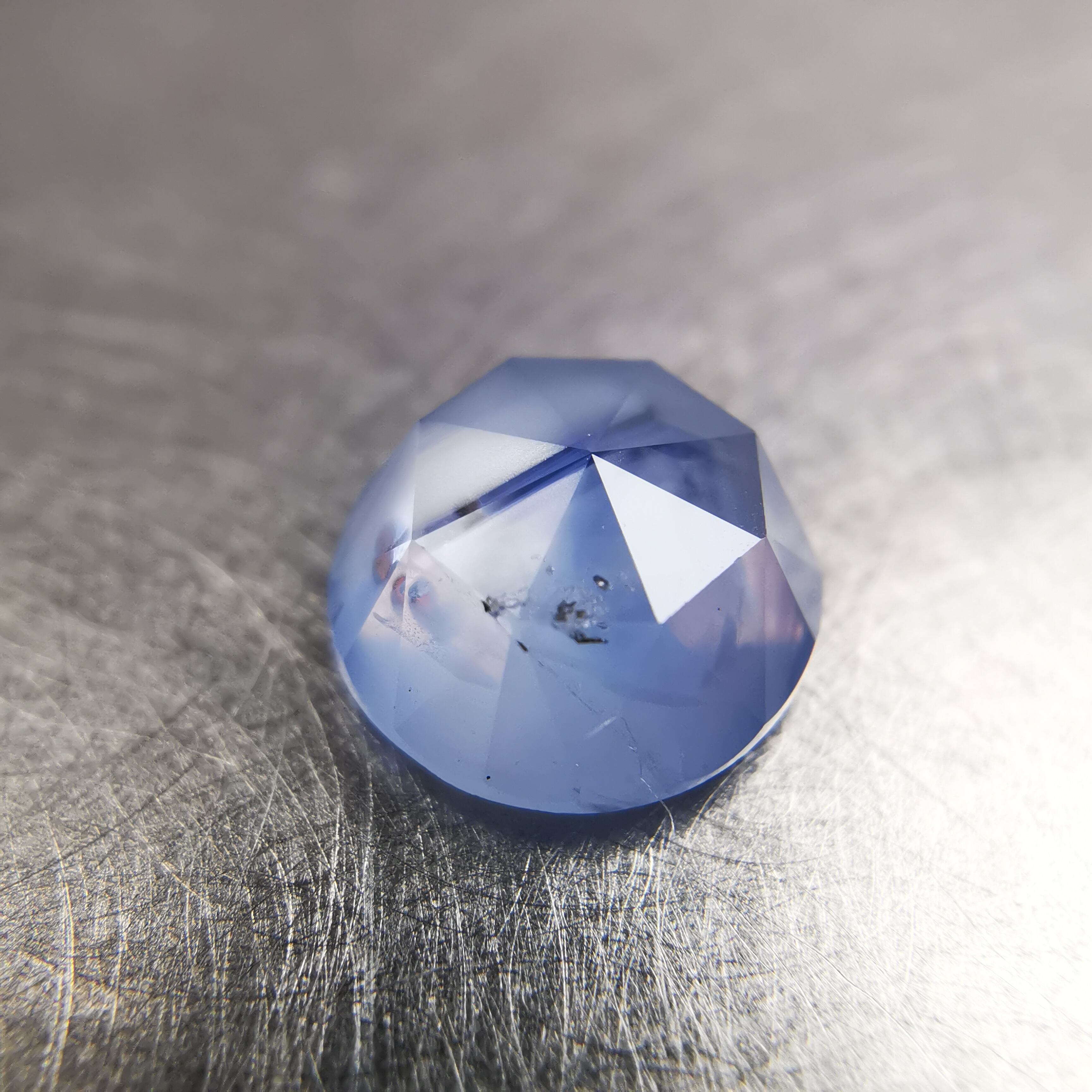 スターサファイアをローズカットにカスタムリカットしたため、光が当たると面できらめきます。