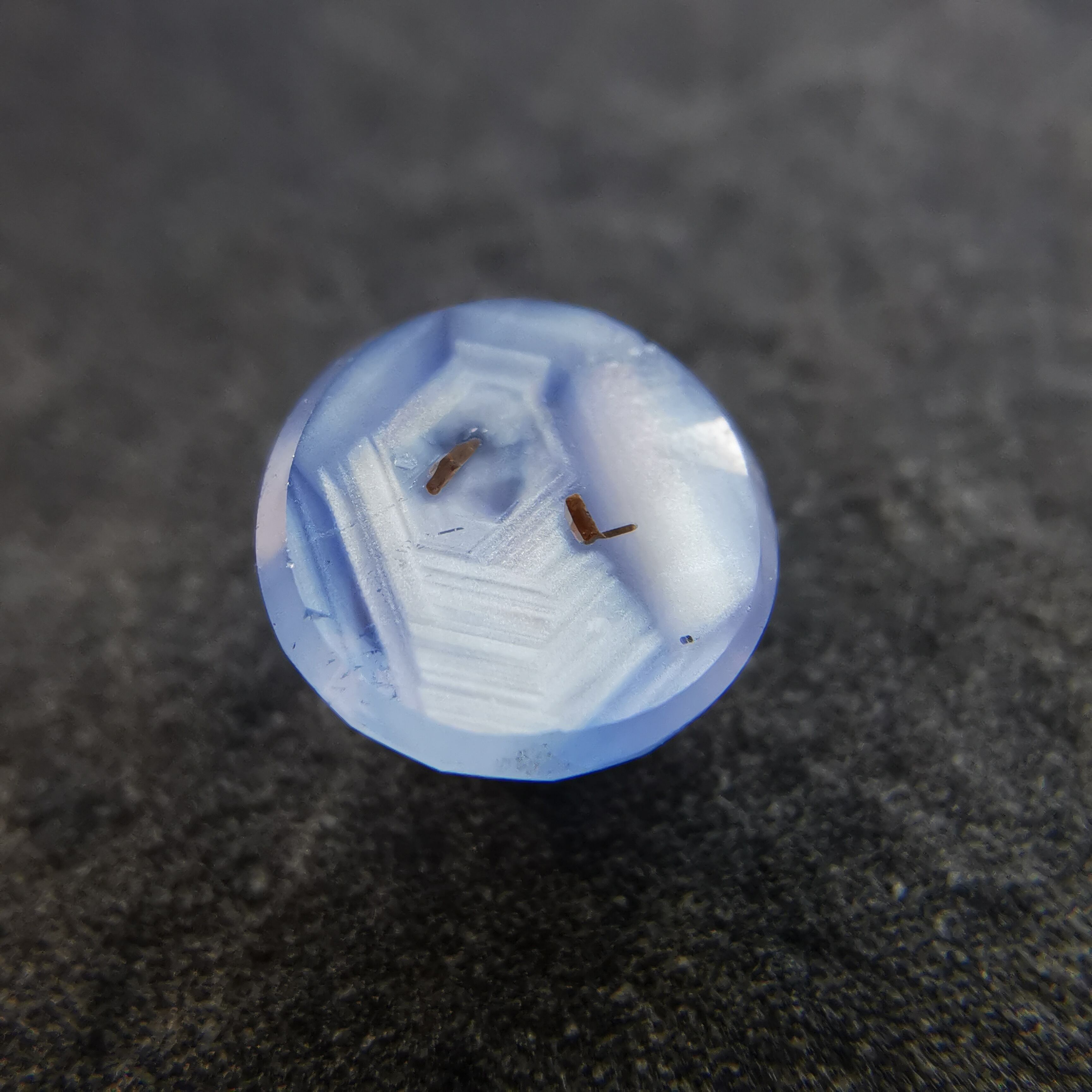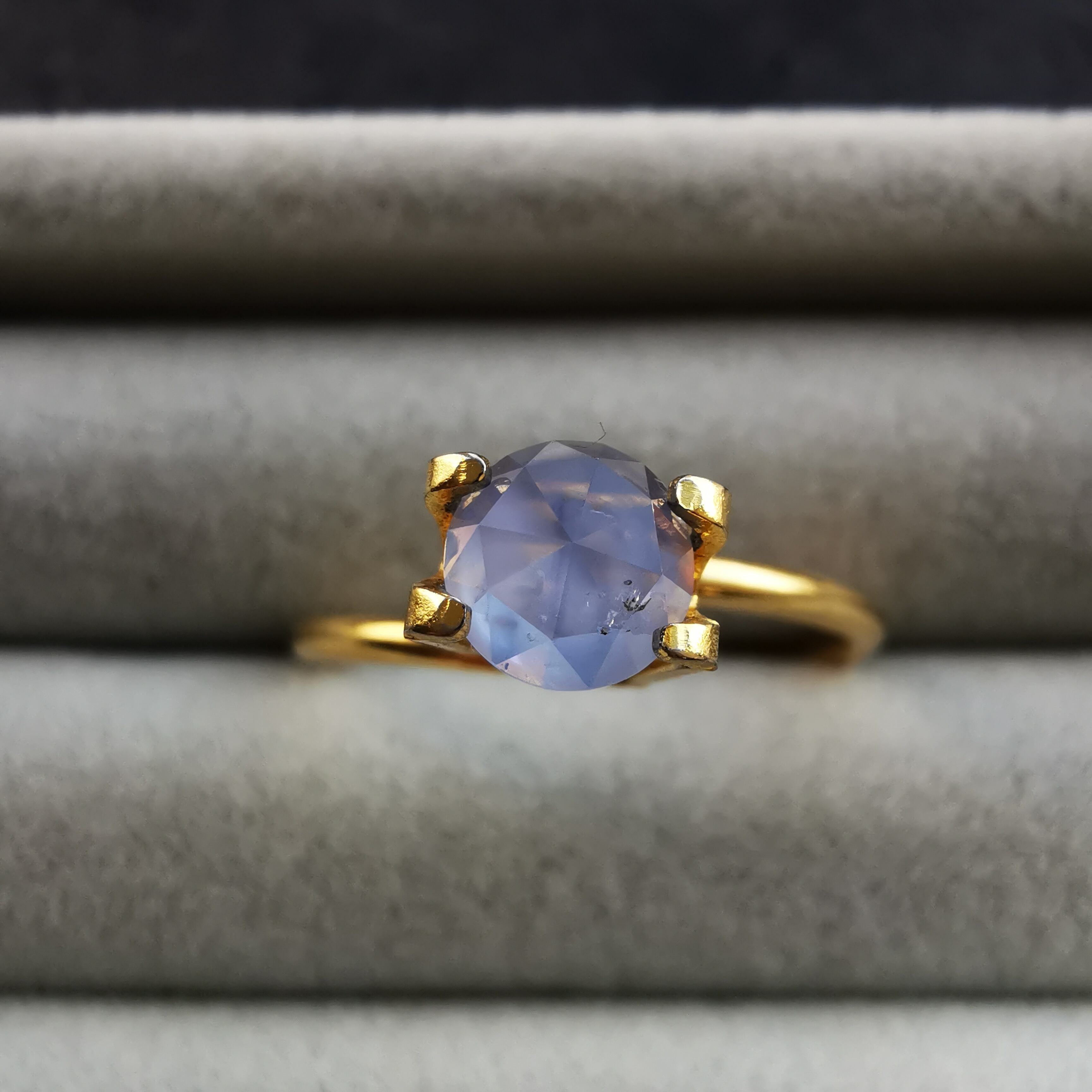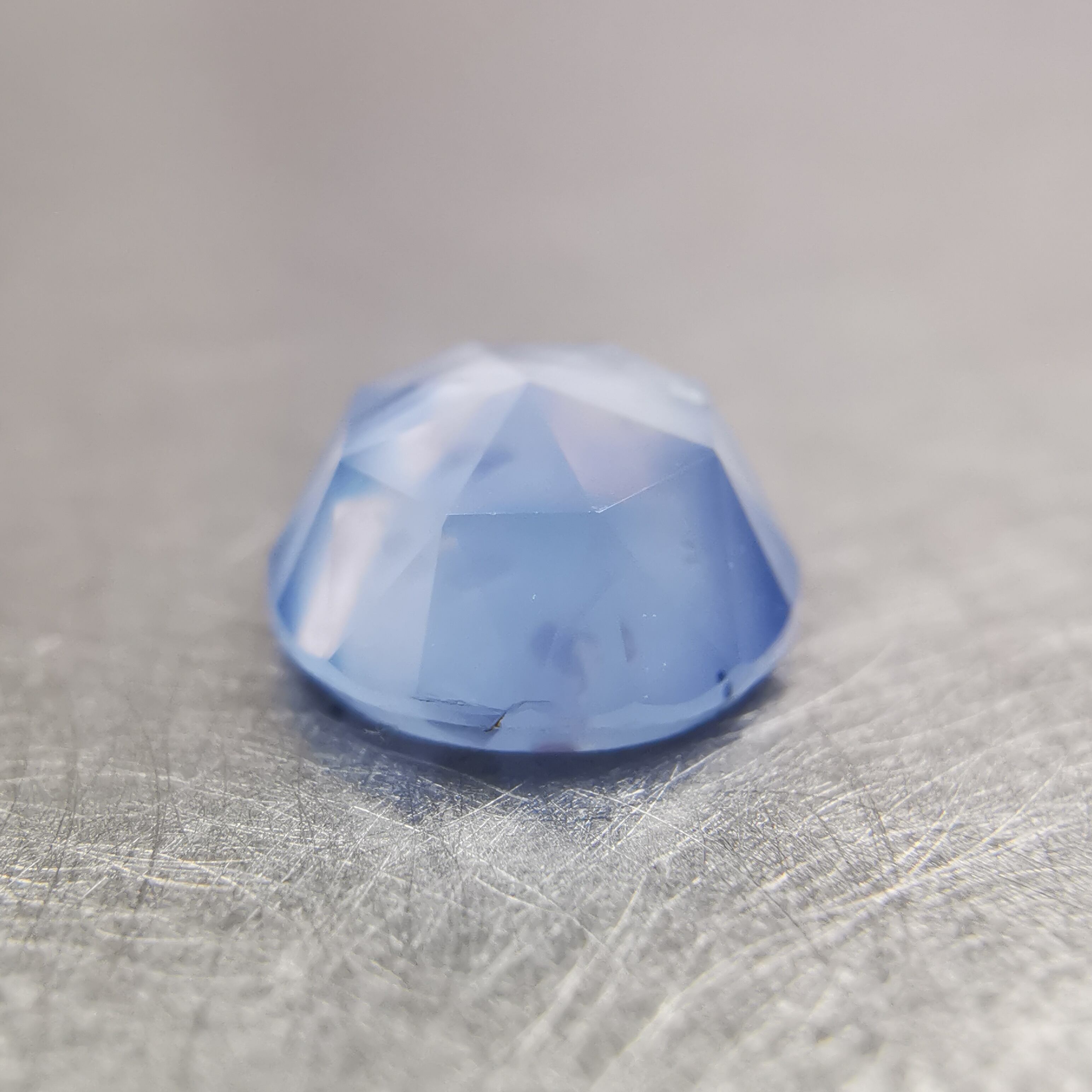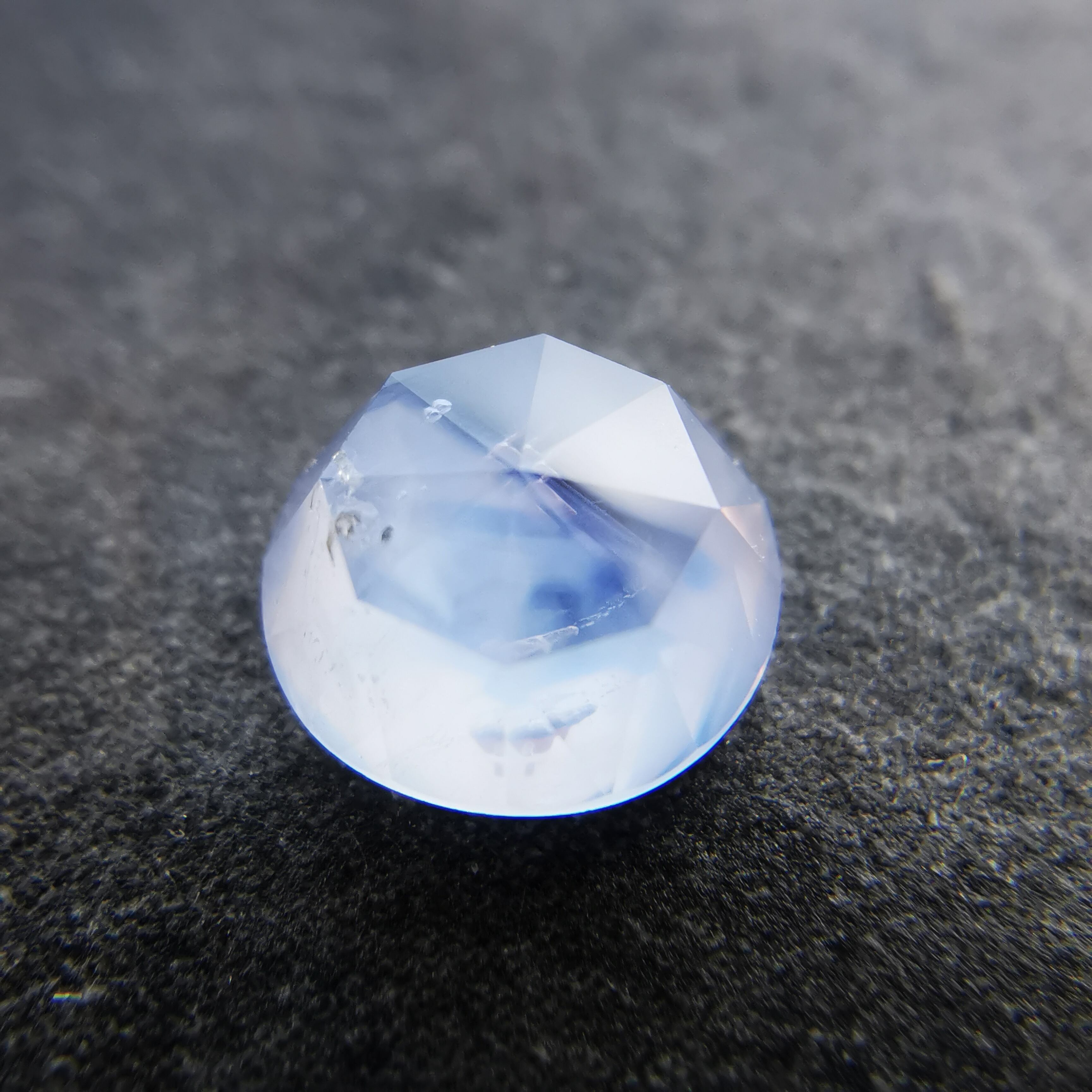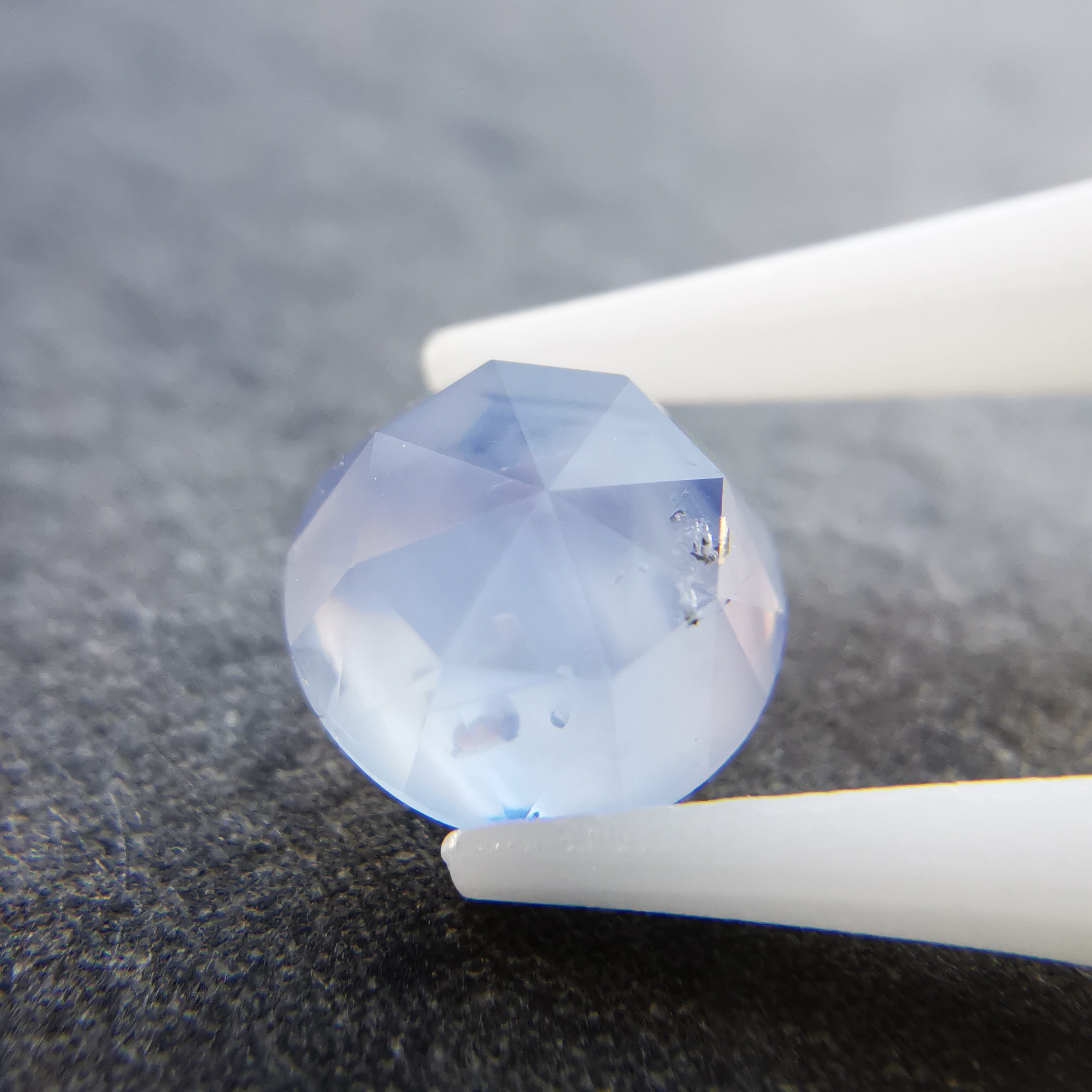 スターサファイアをローズカットにカスタムリカットしたため、光が当たると面できらめきます。