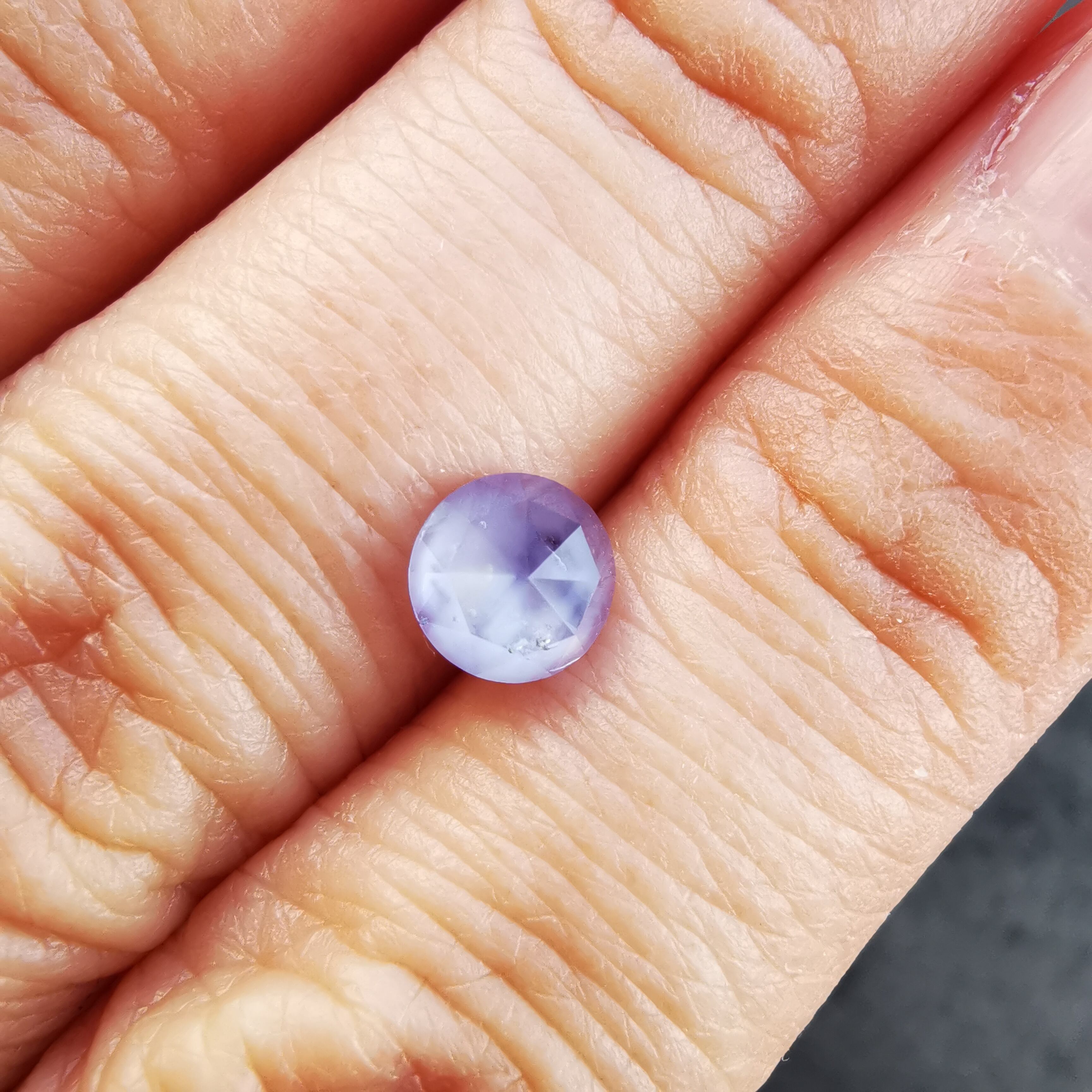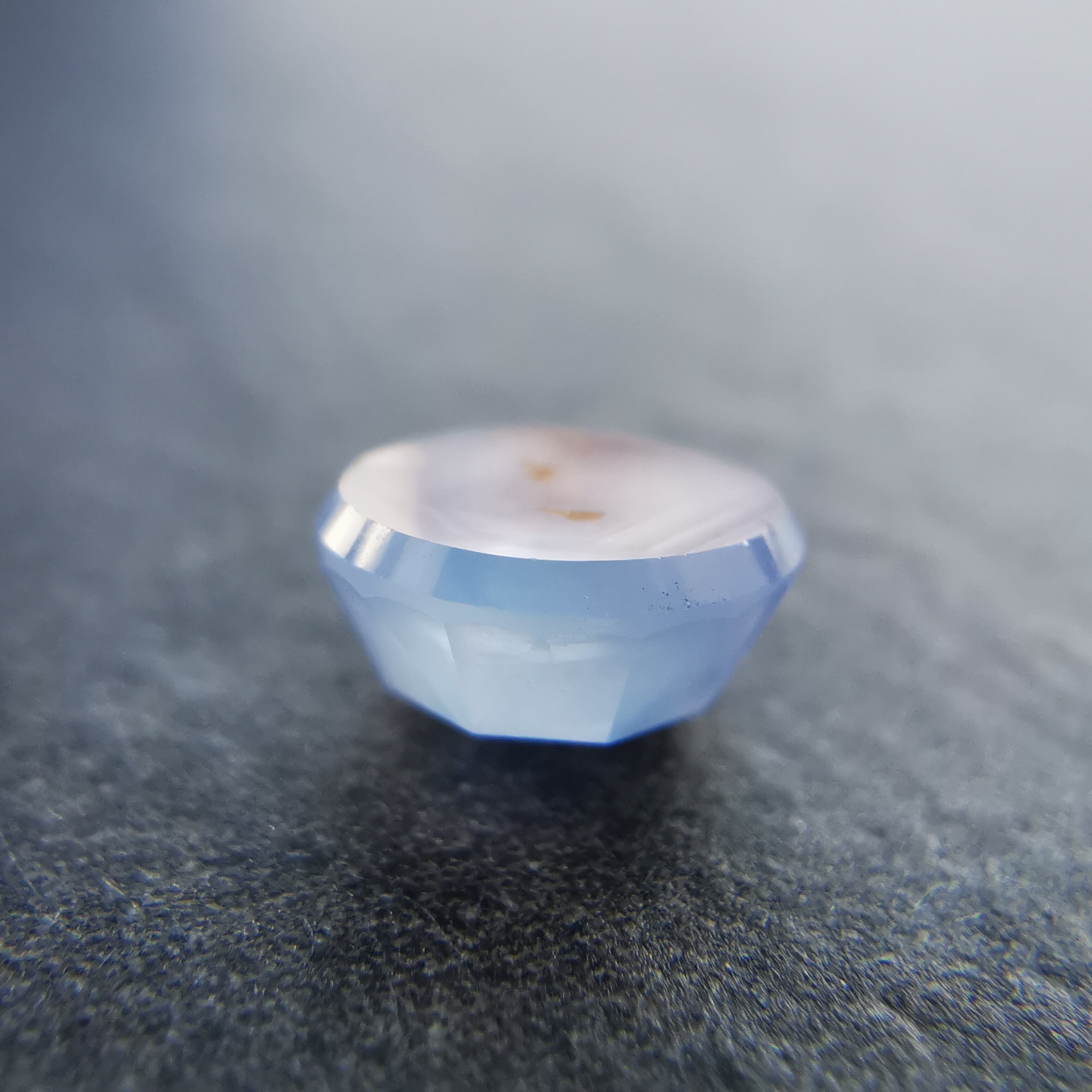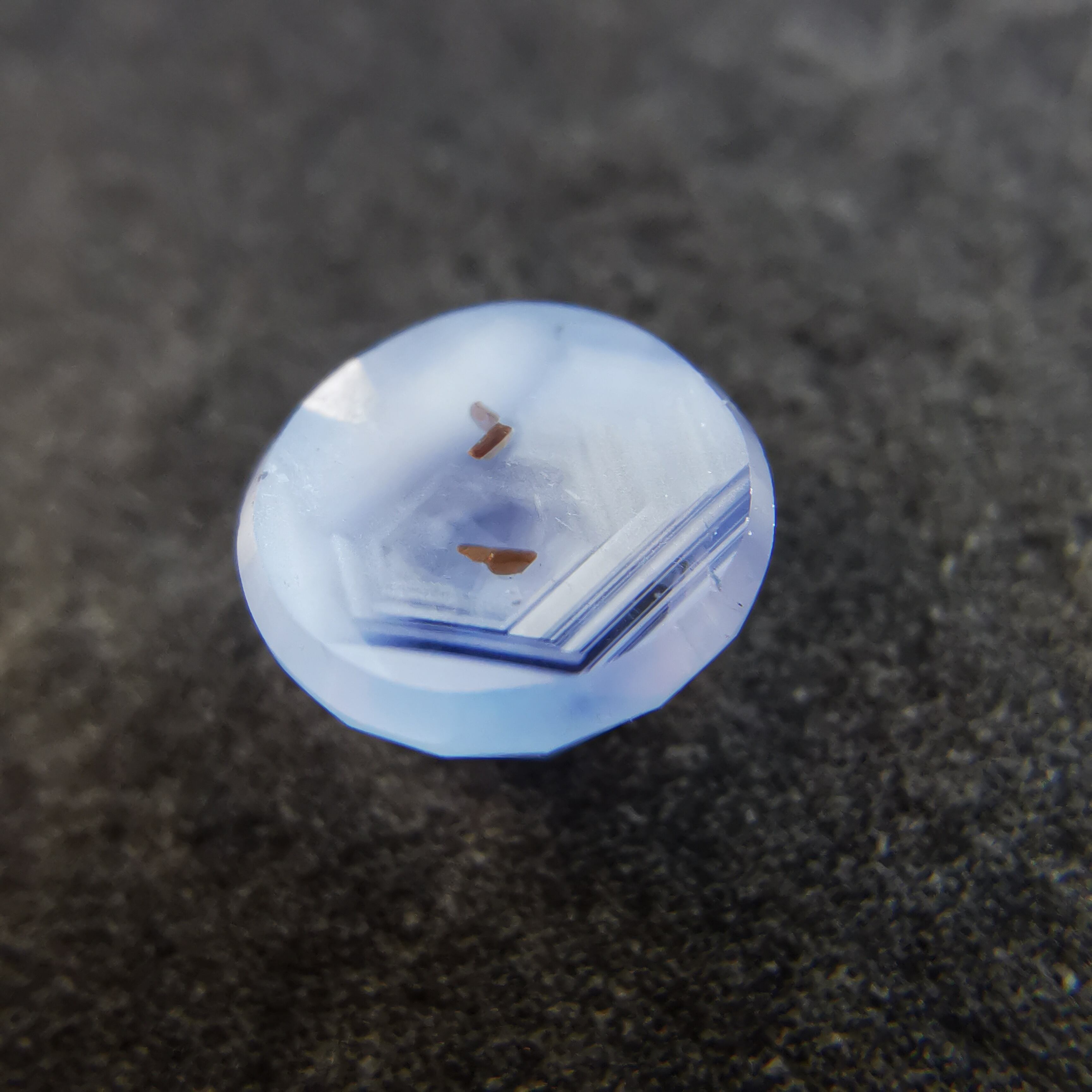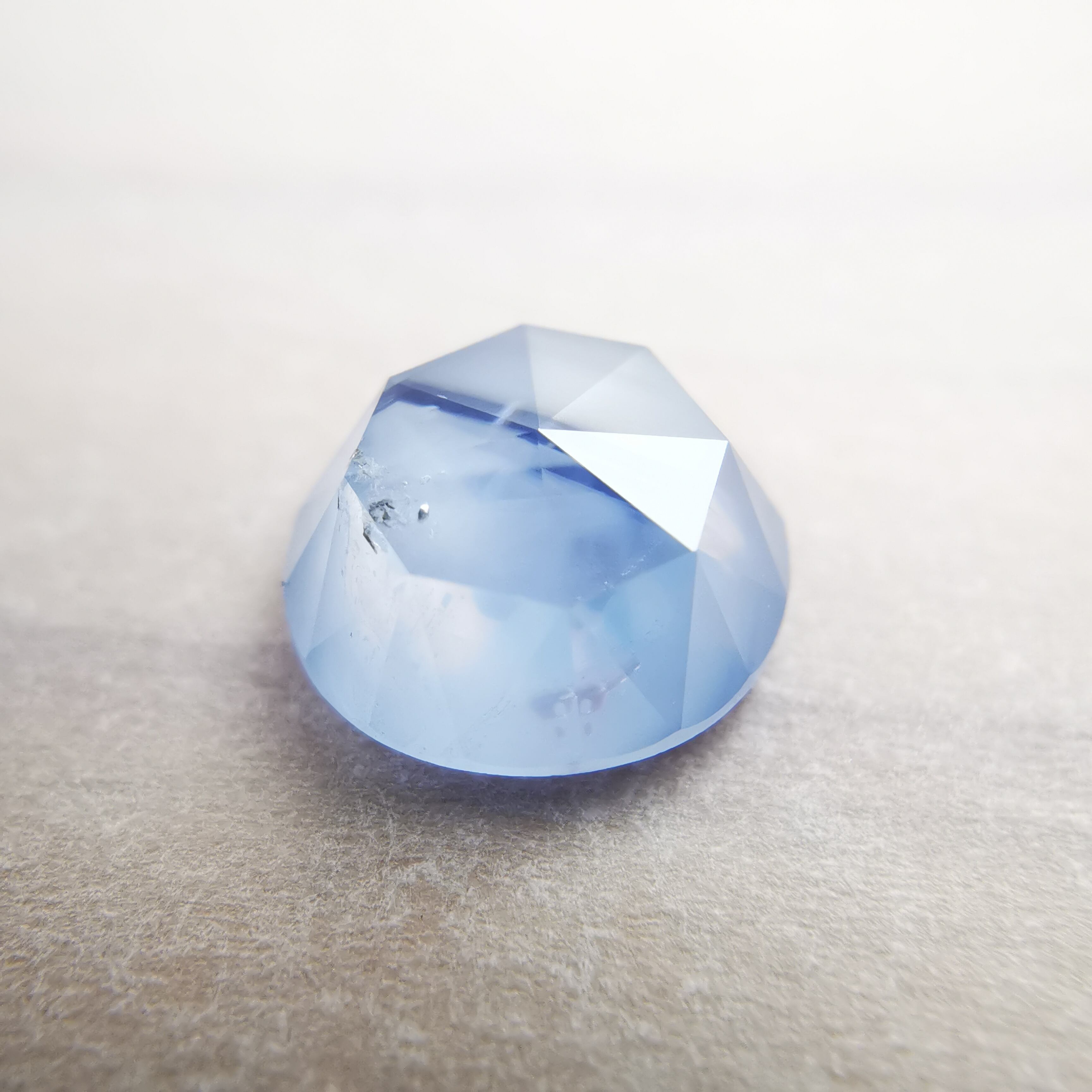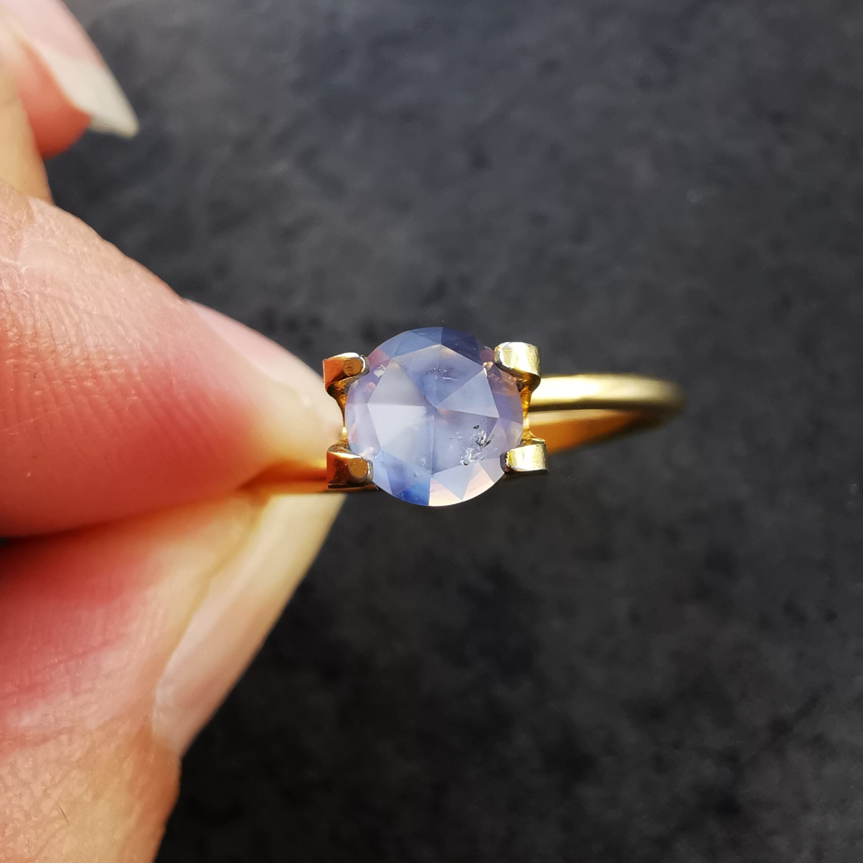 スターサファイアをローズカットにカスタムリカットしたため、光が当たると面できらめきます。