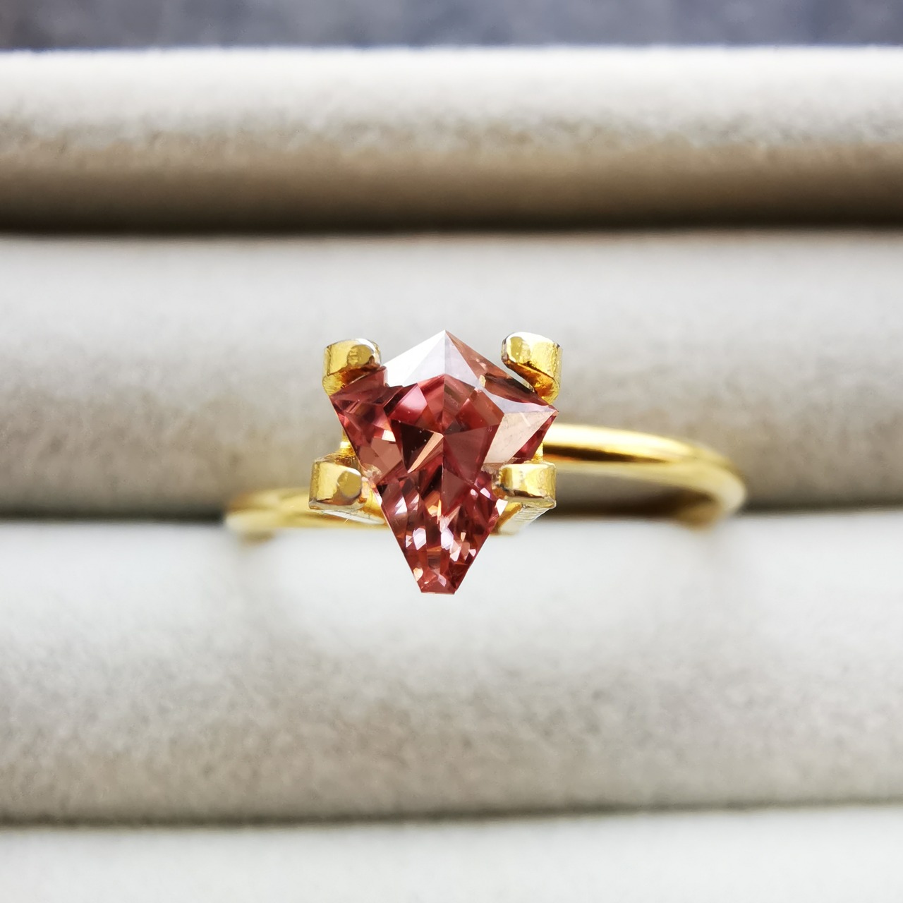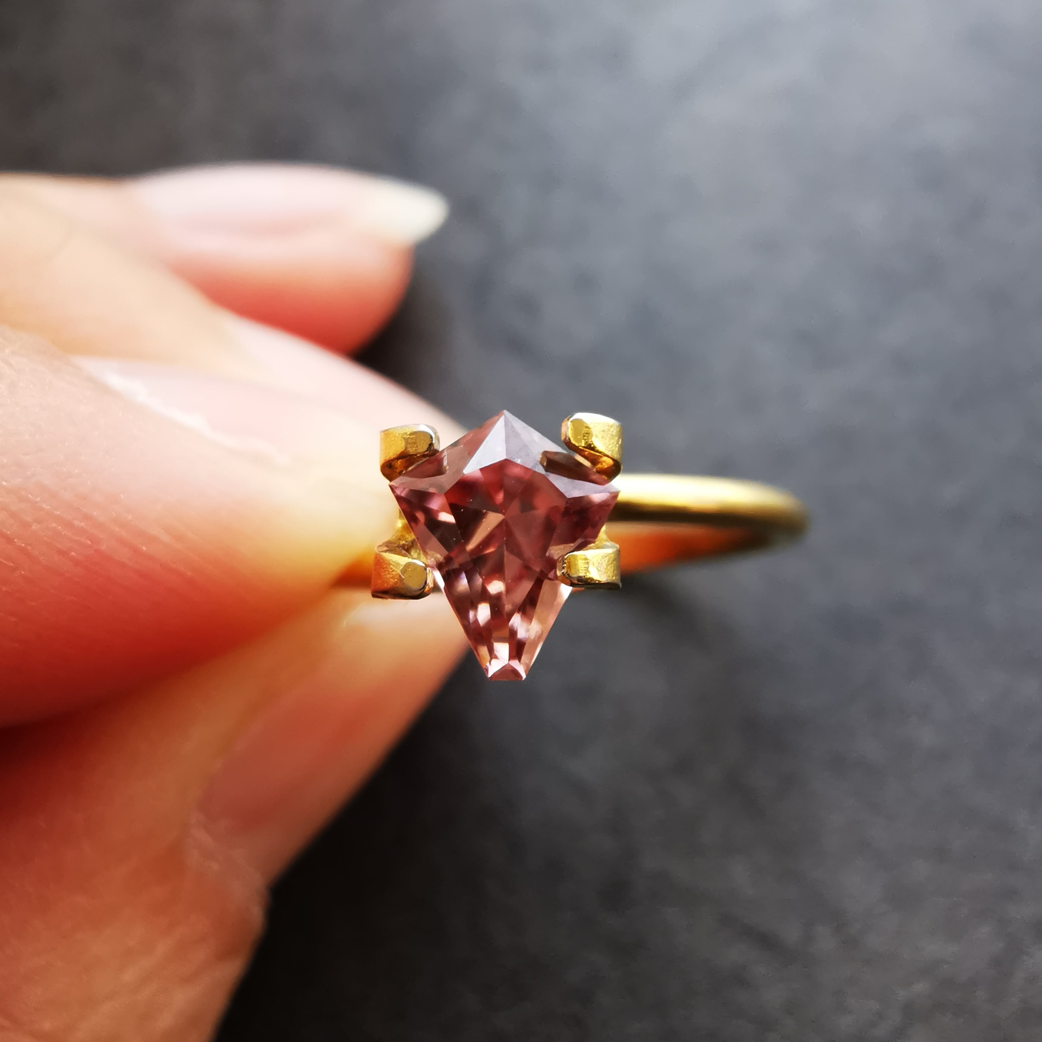 ややオレンジみのあるピンク、東雲色のピンクジルコンです。