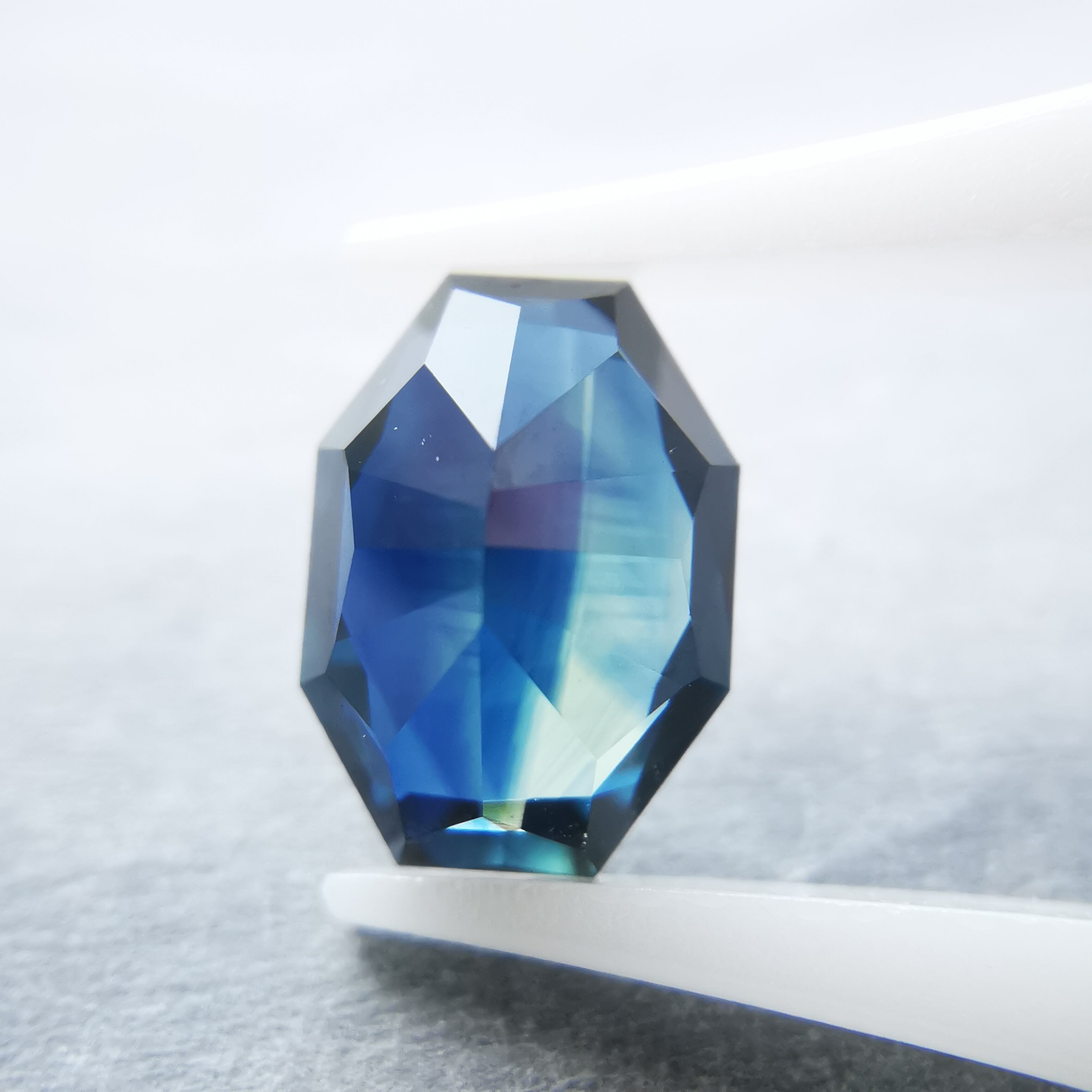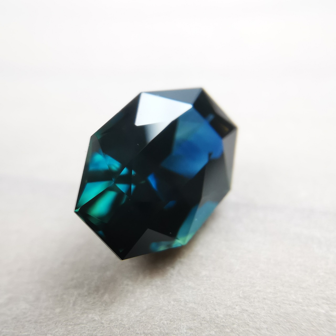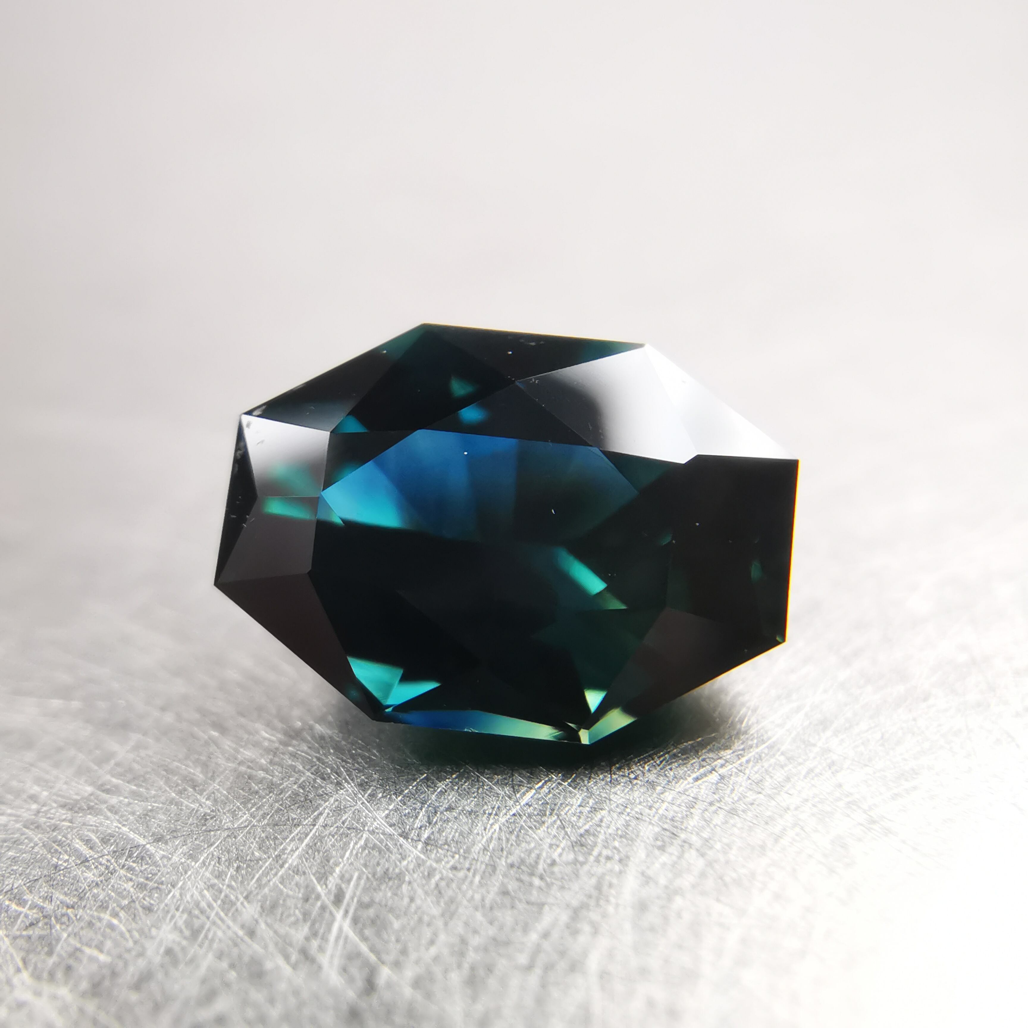 指に乗せると、美しいティールカラーを見せるサファイアです。