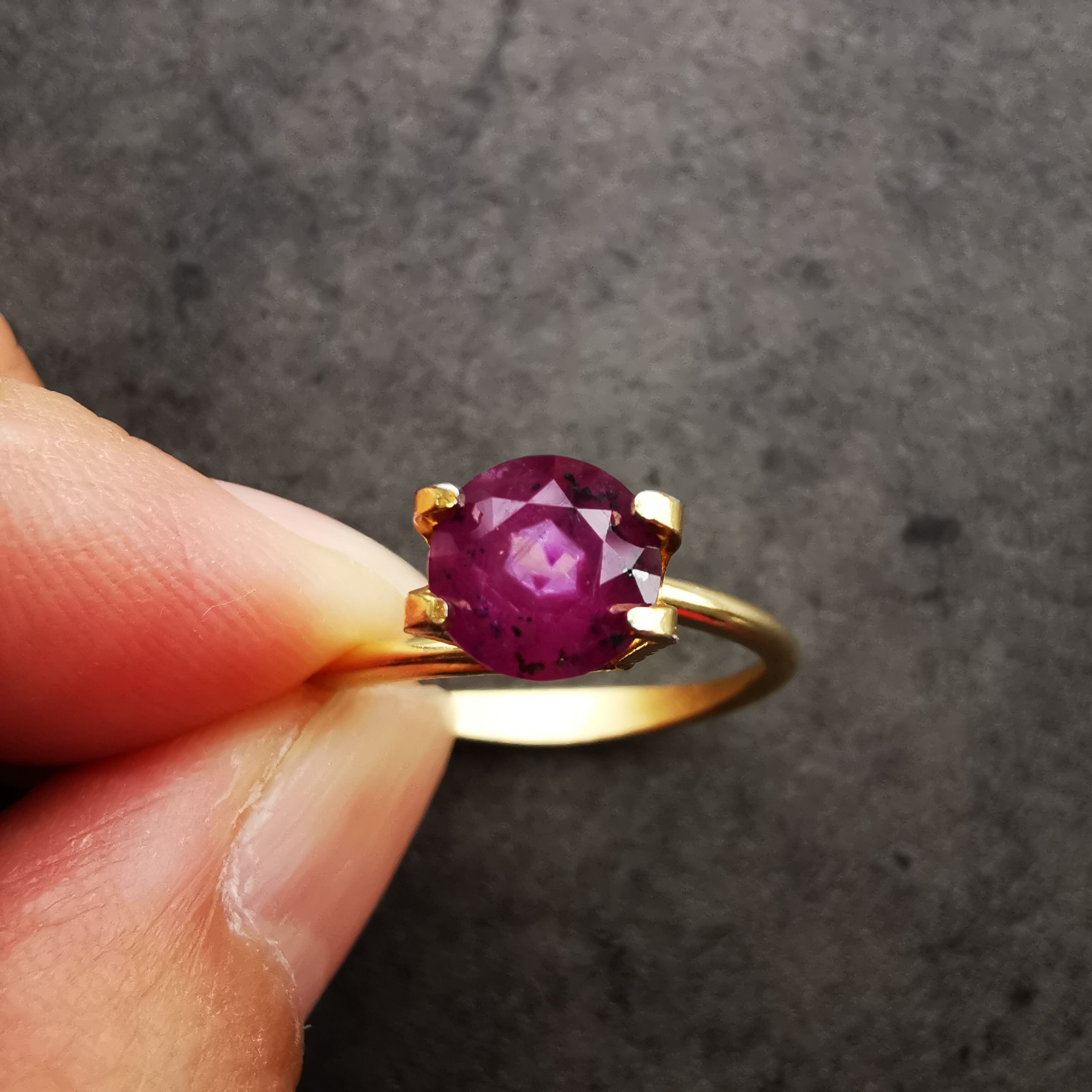 暗いパープルレッド、マルベリー色のサファイアです。