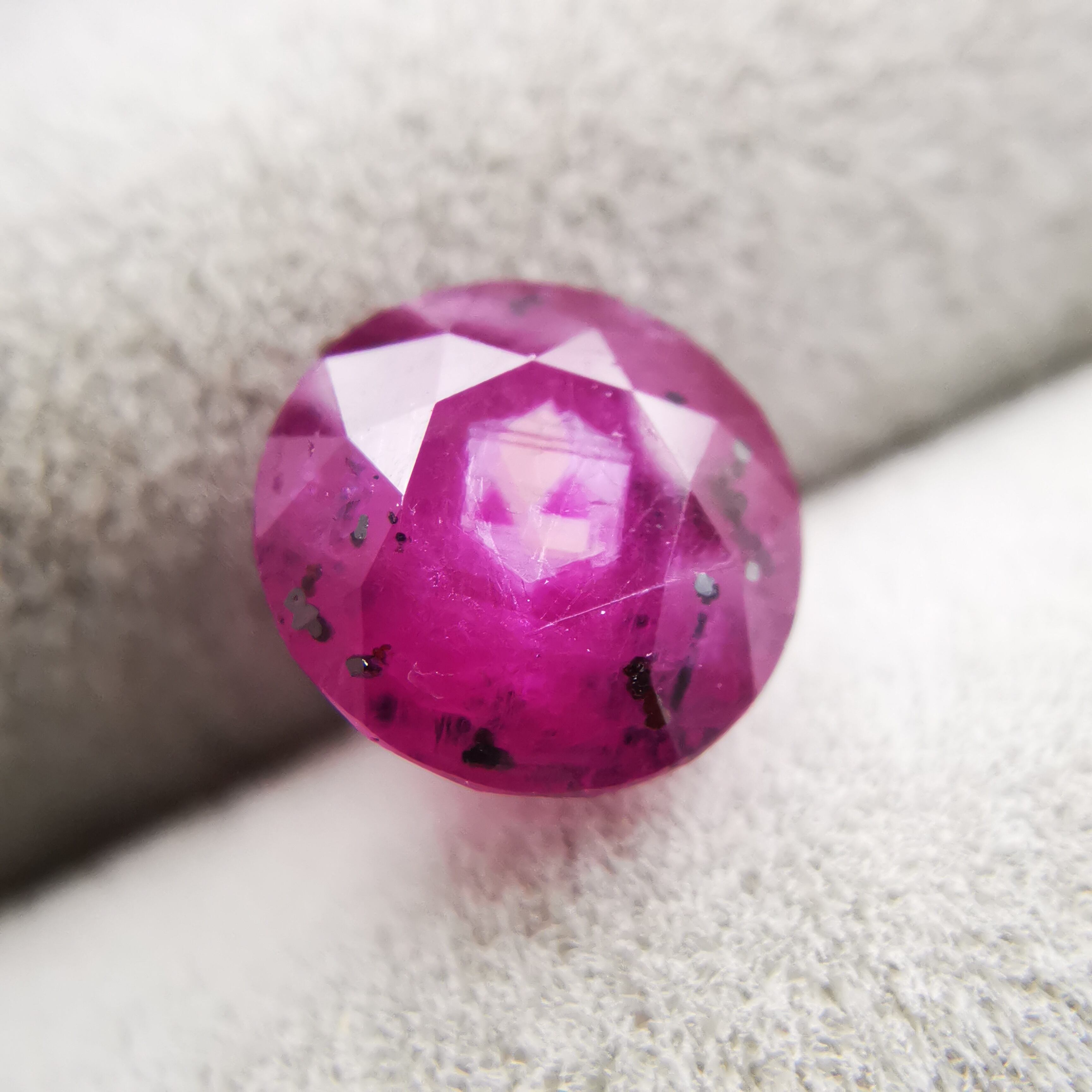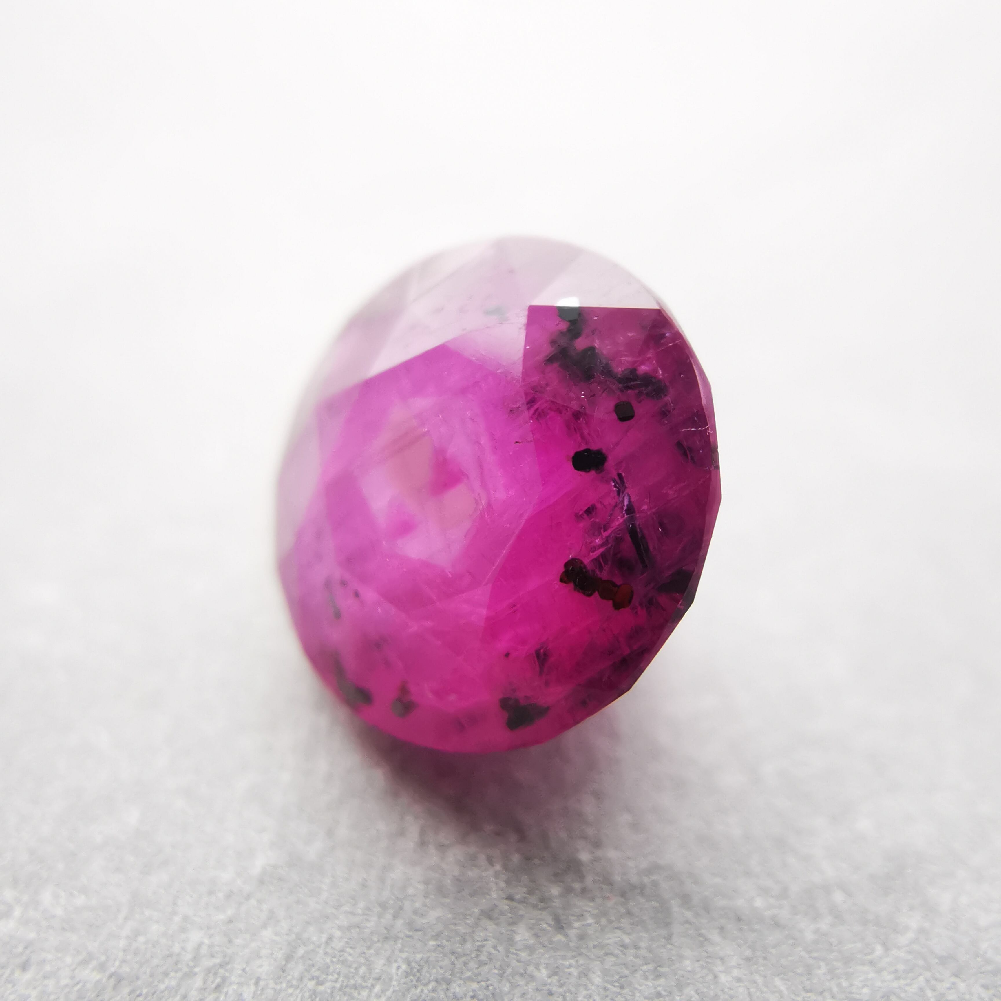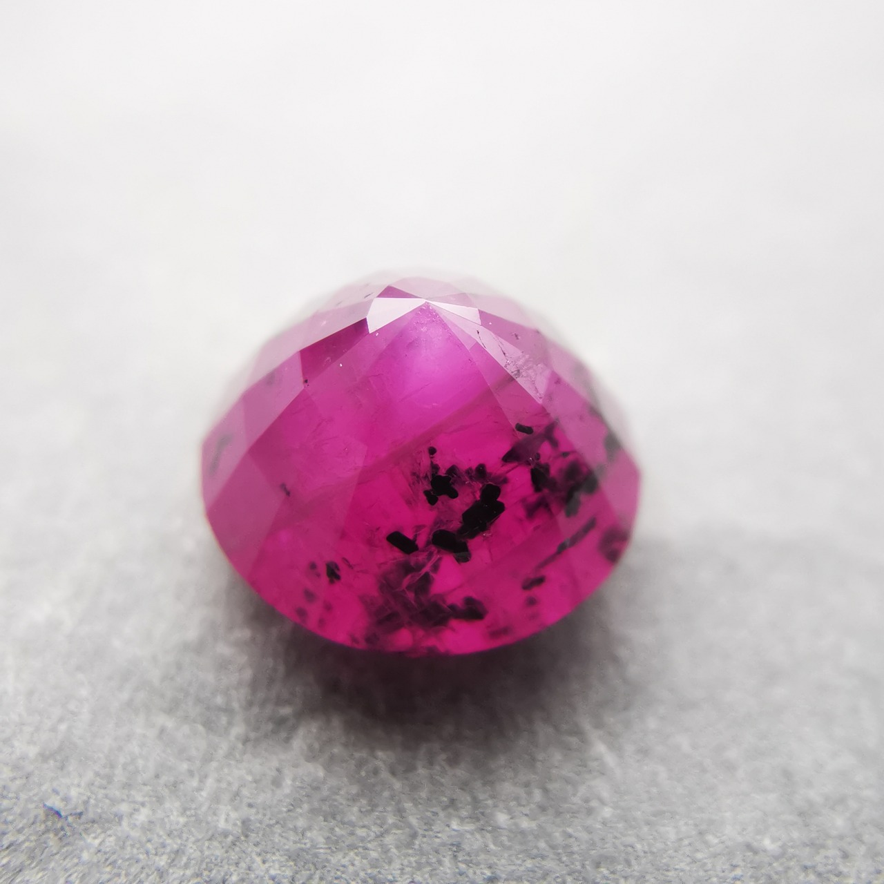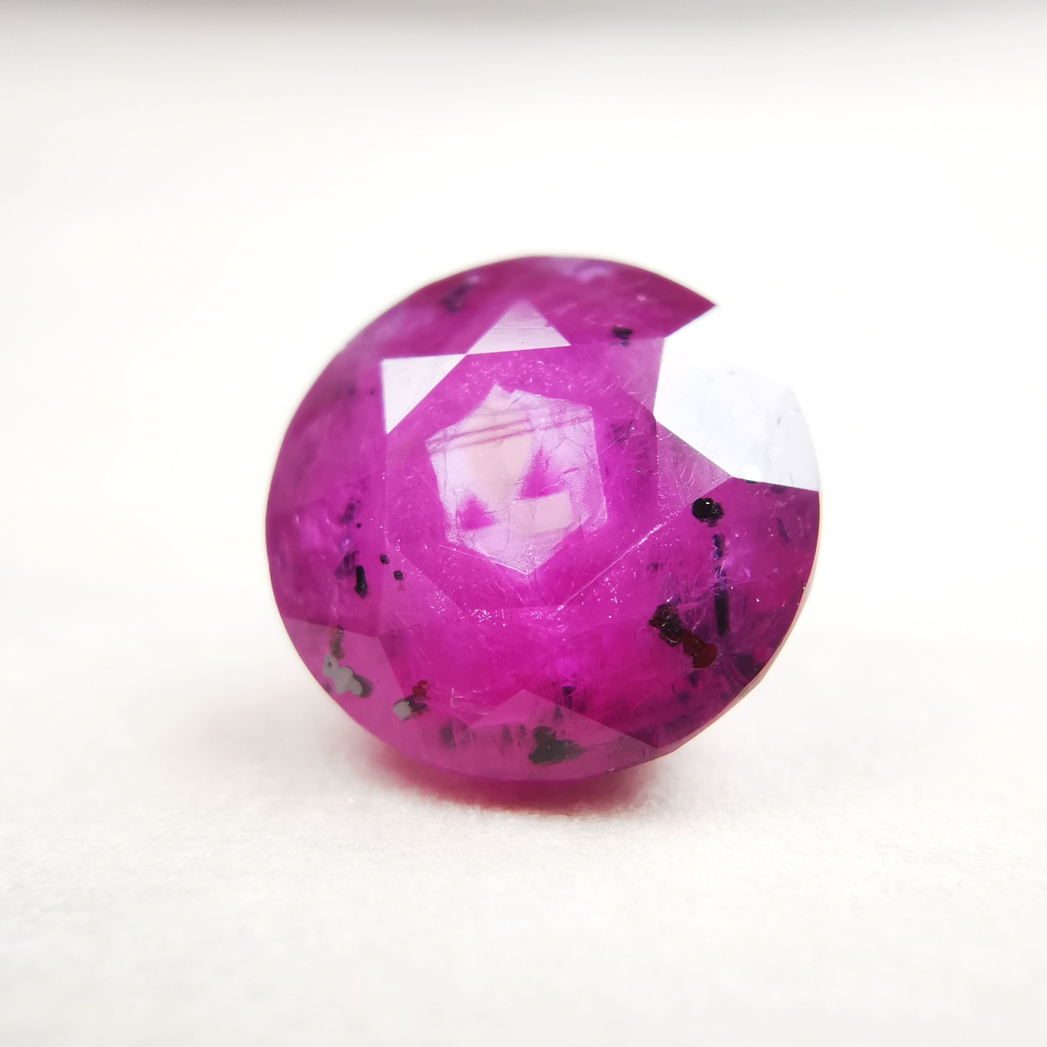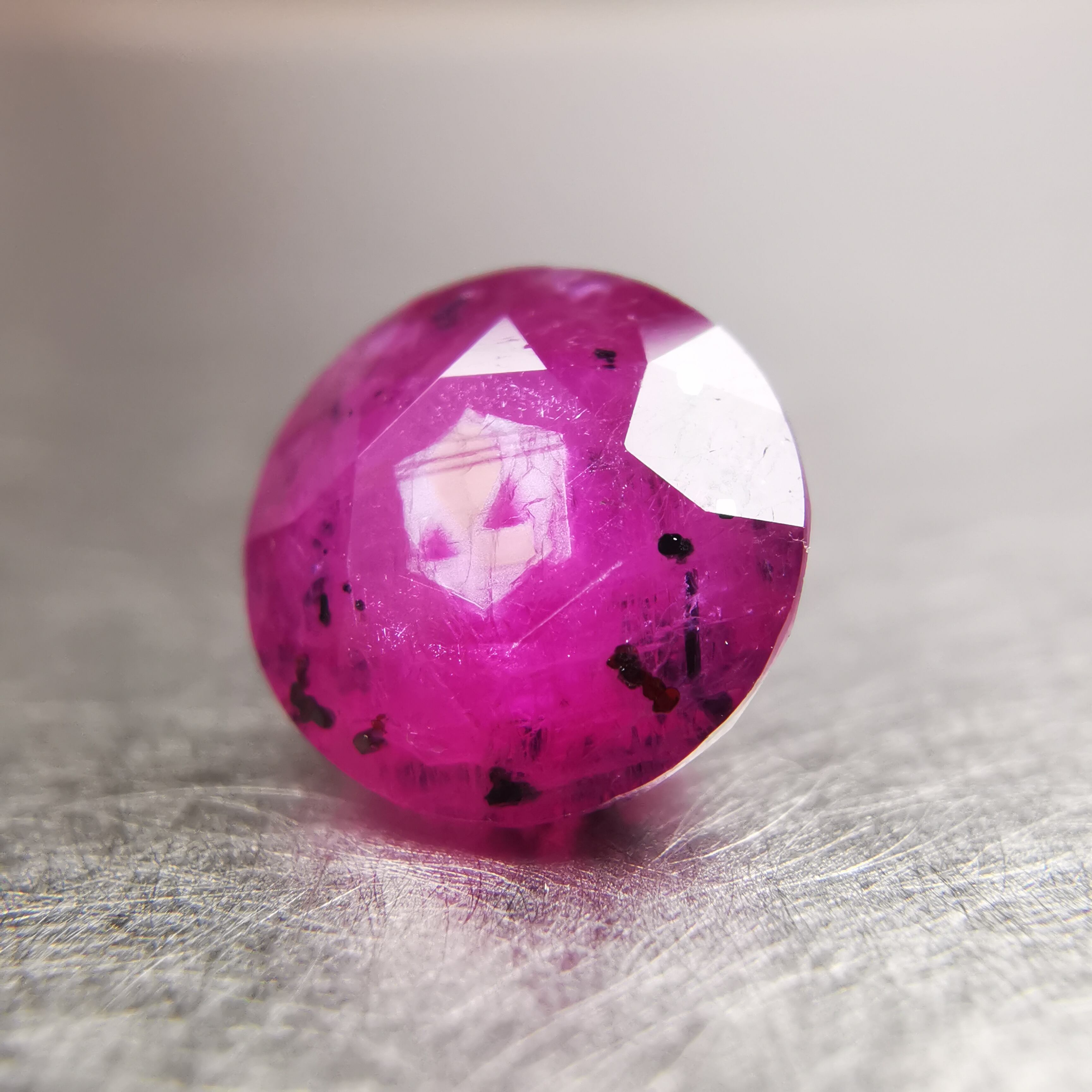 テーブル面のど真ん中に、六角系のシルクインクルージョンが入っています。