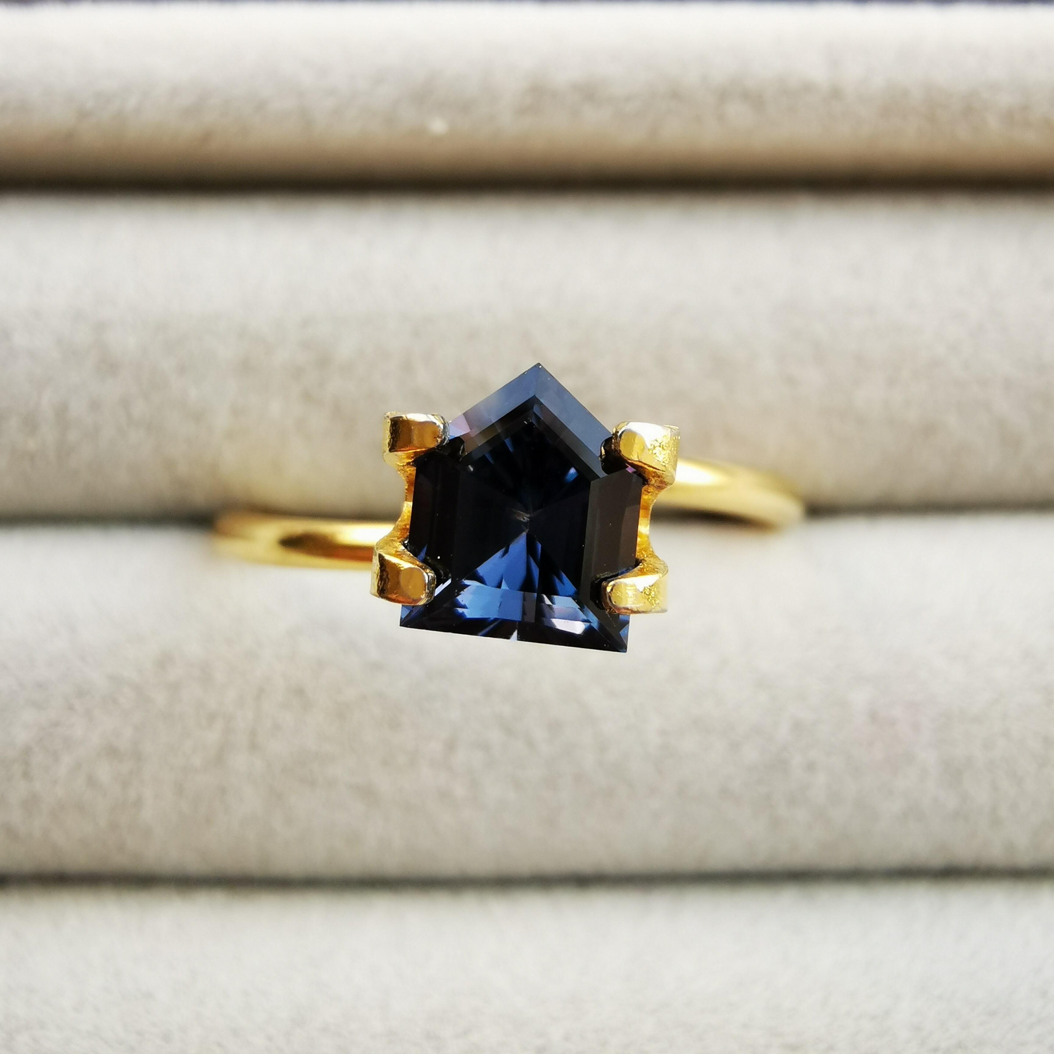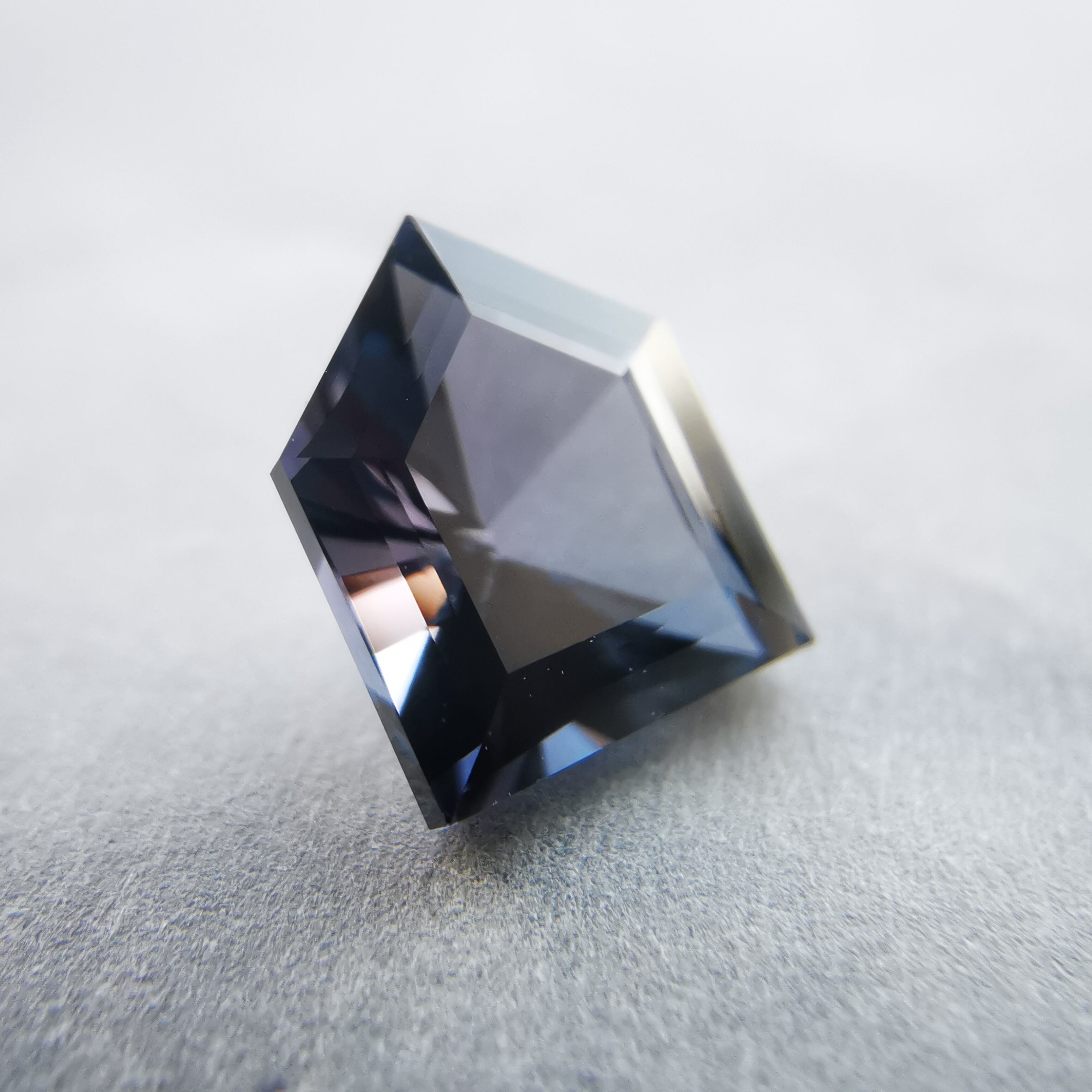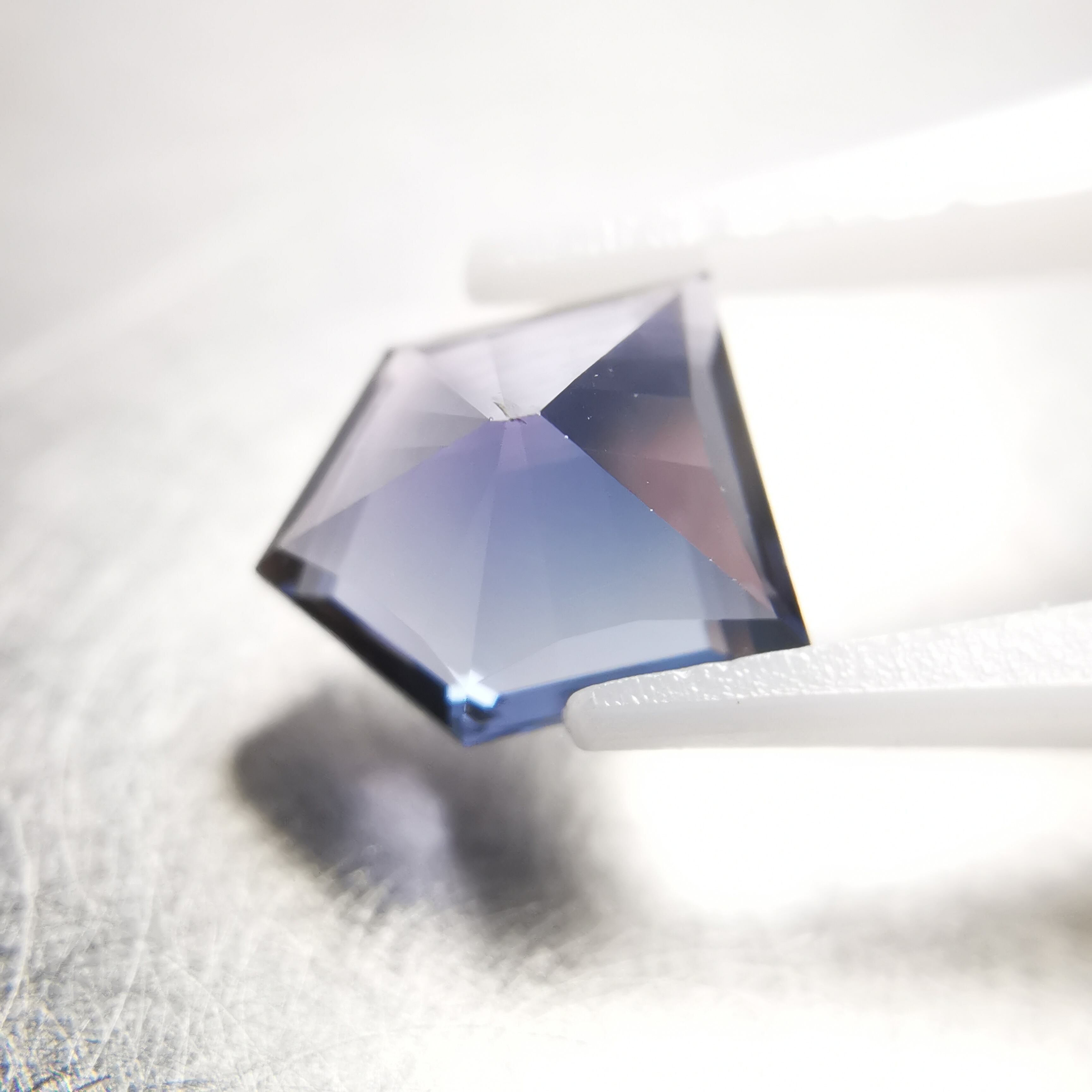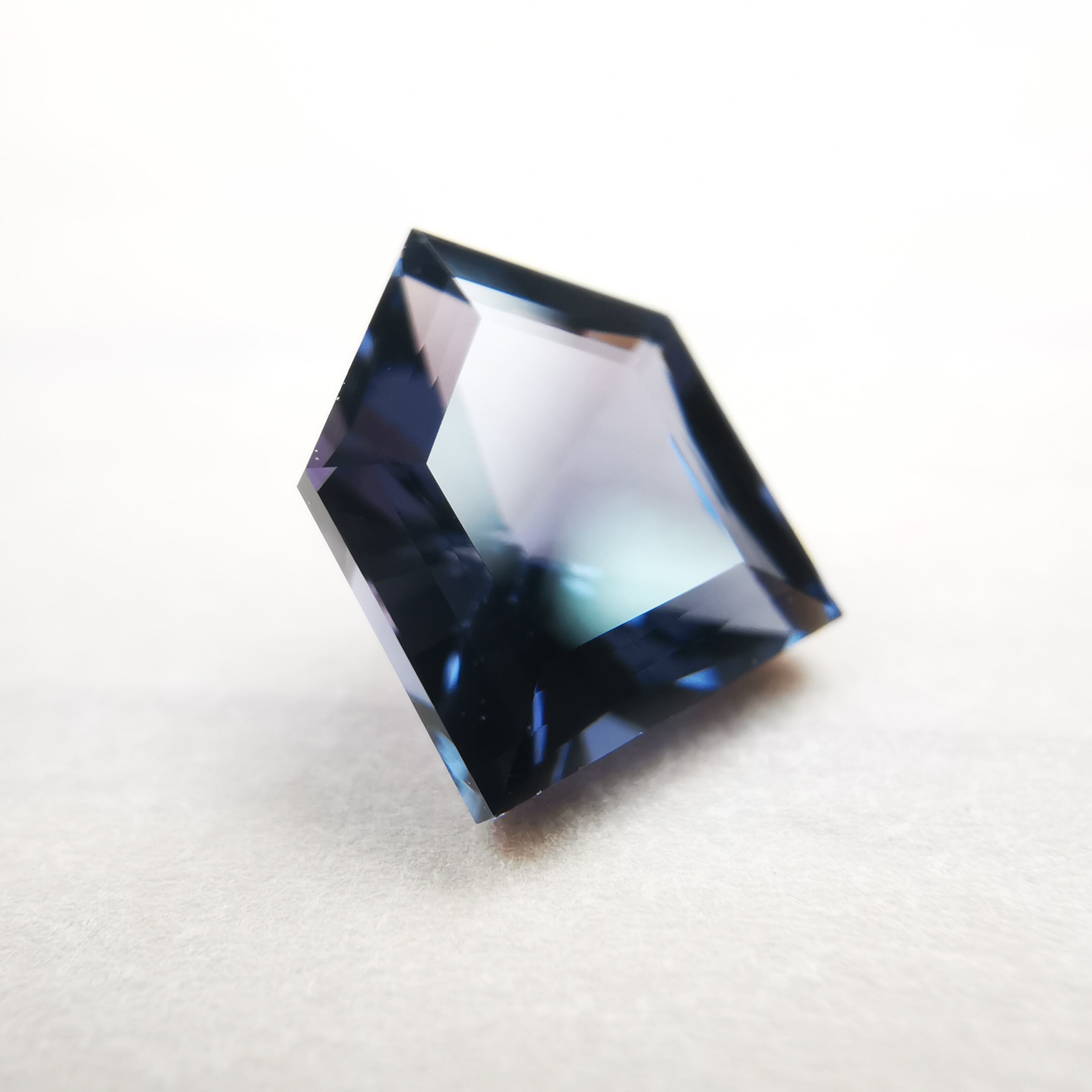 二つの色は完全には混じらず、ブルーを見ていると石の端の方でパープルがチラつくような、とらえ難い神秘的な印象です。