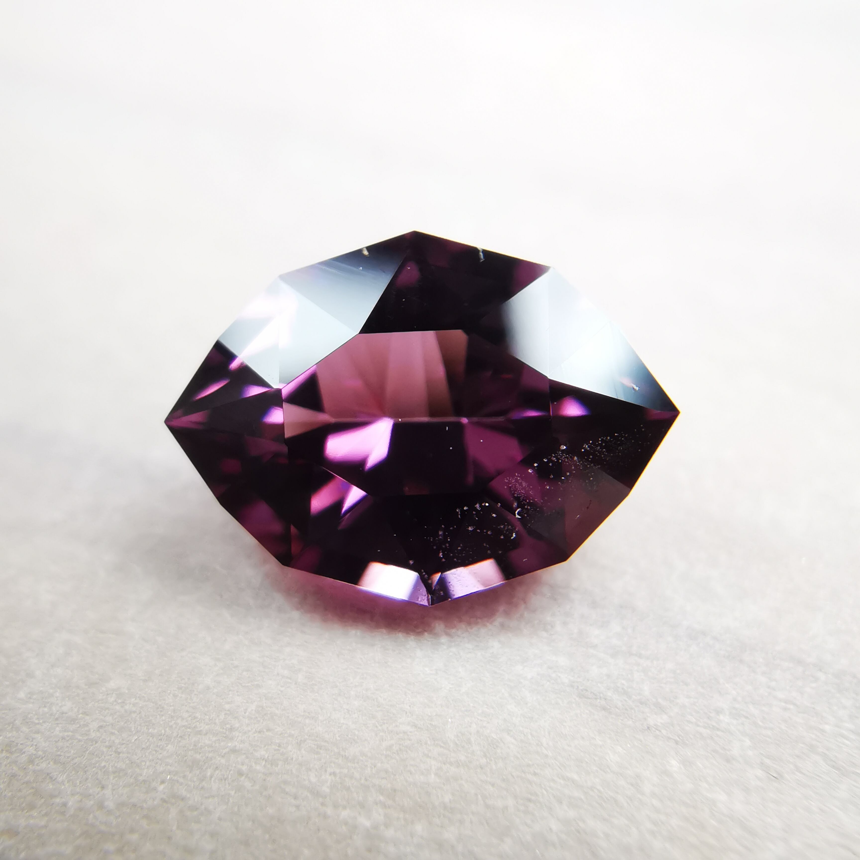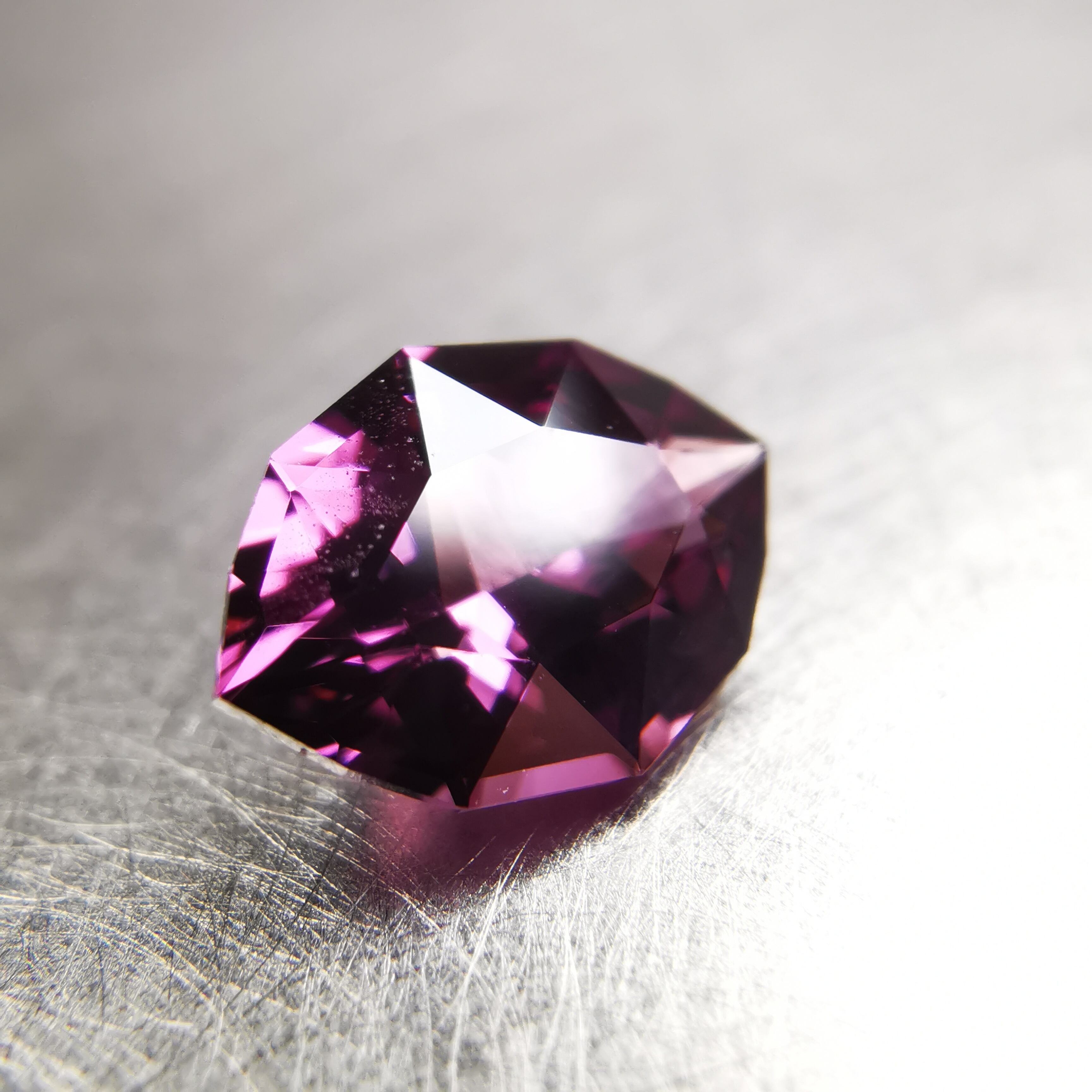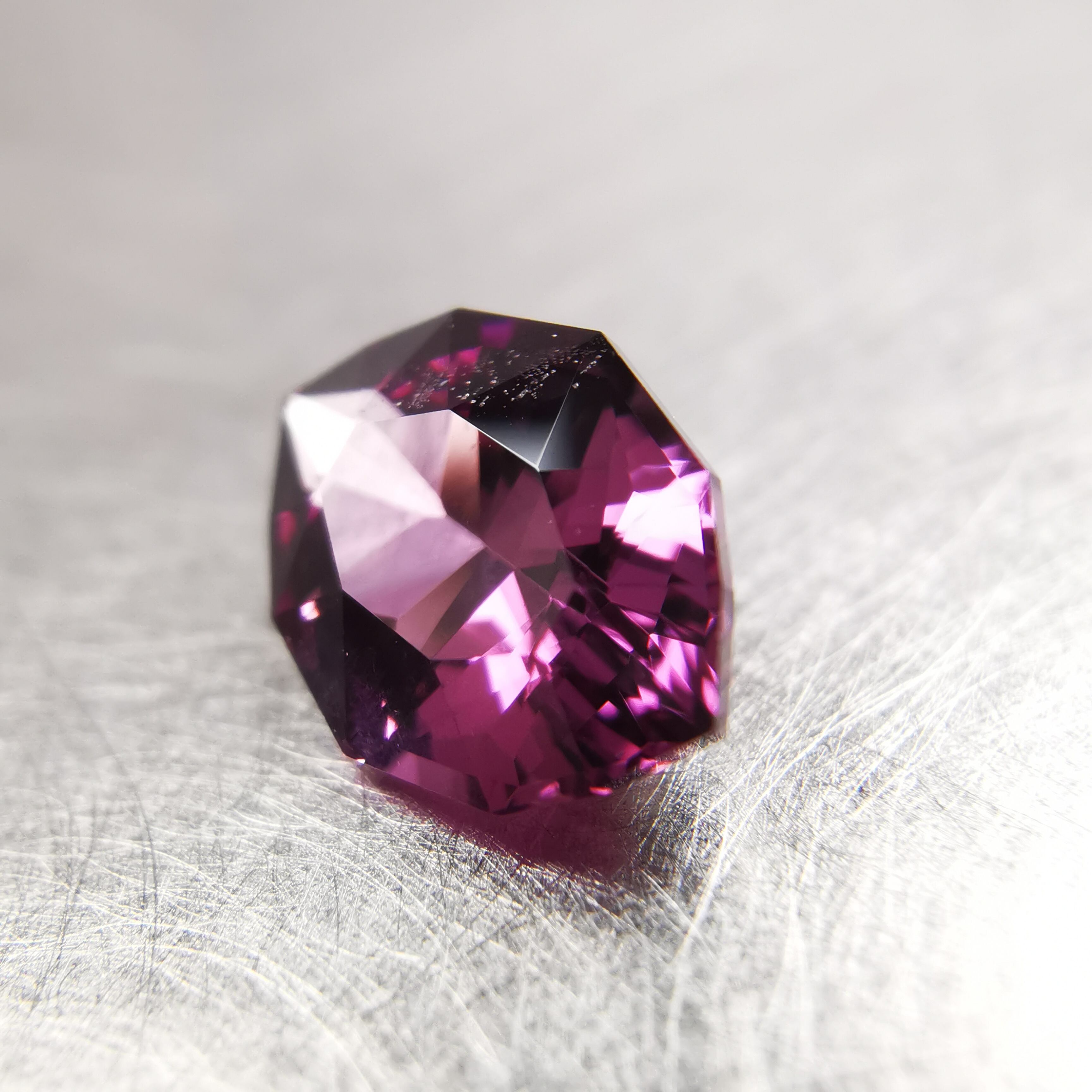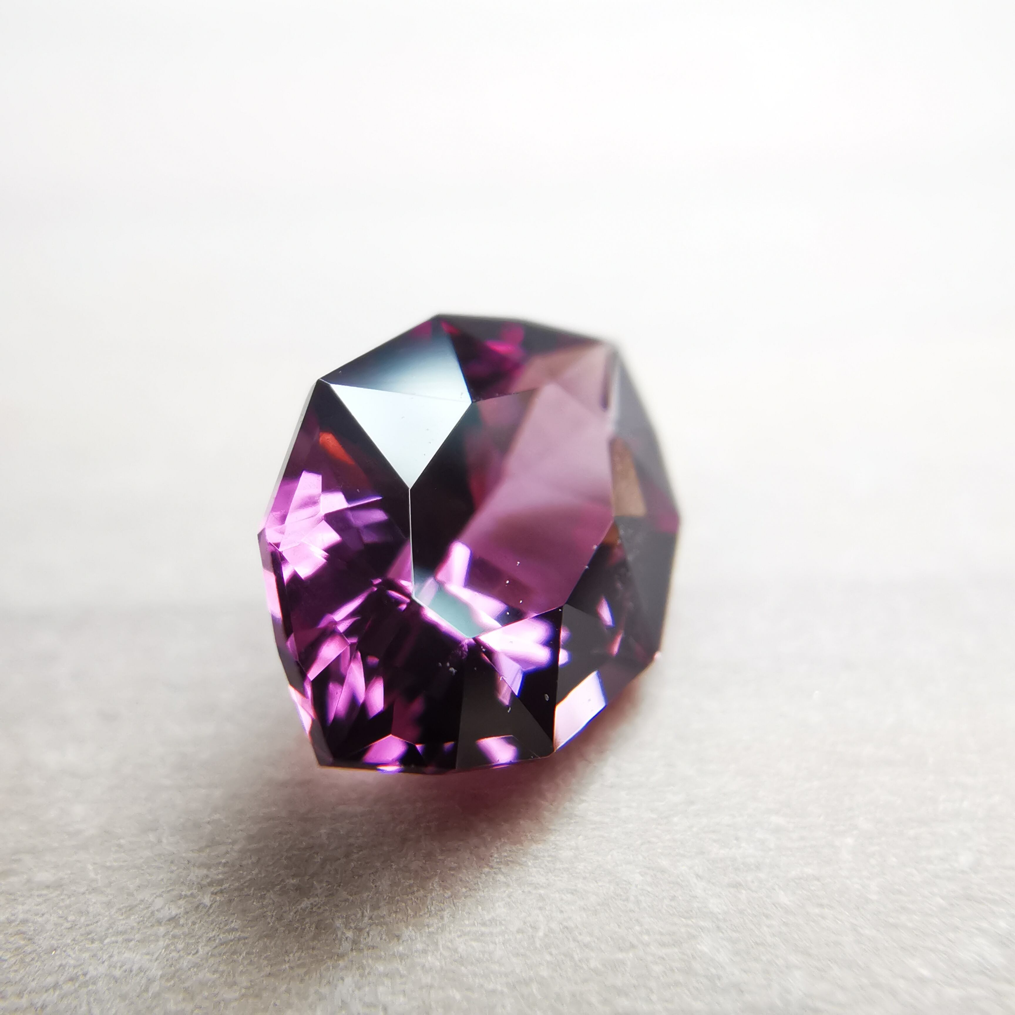 落ち着いたバーガンディー色から、ピンクカラーが鋭くきらめくスピネルです。