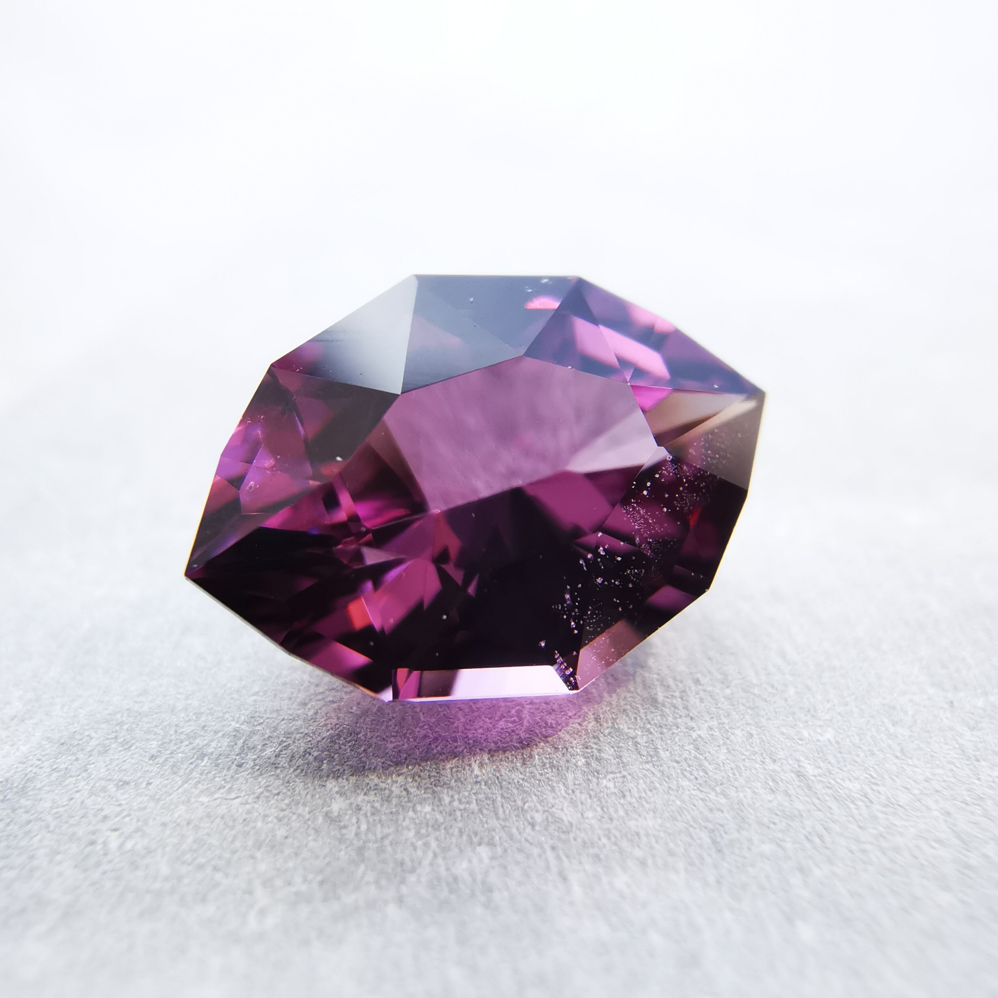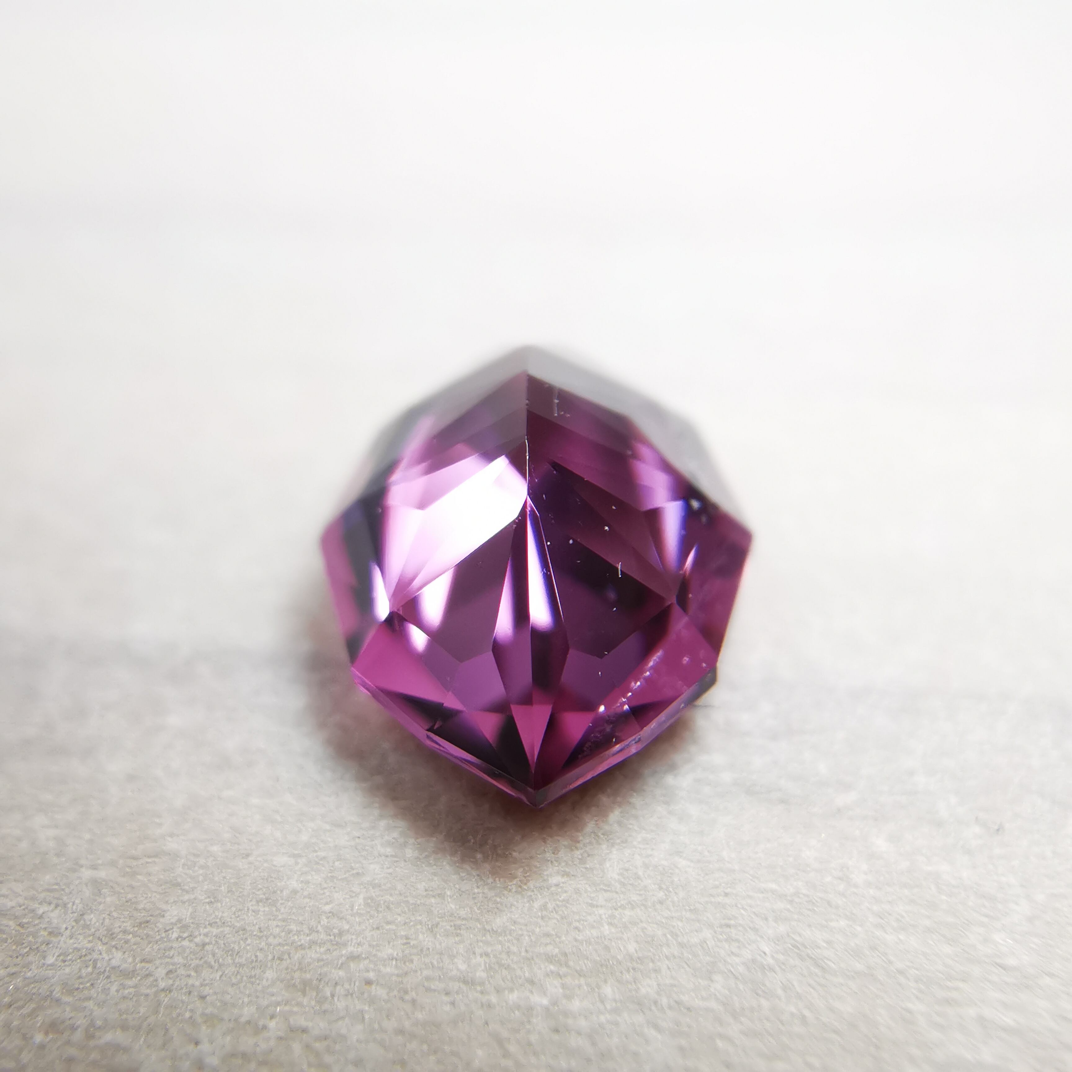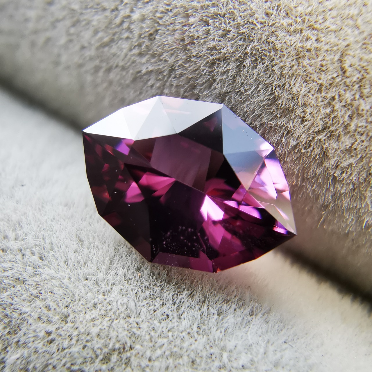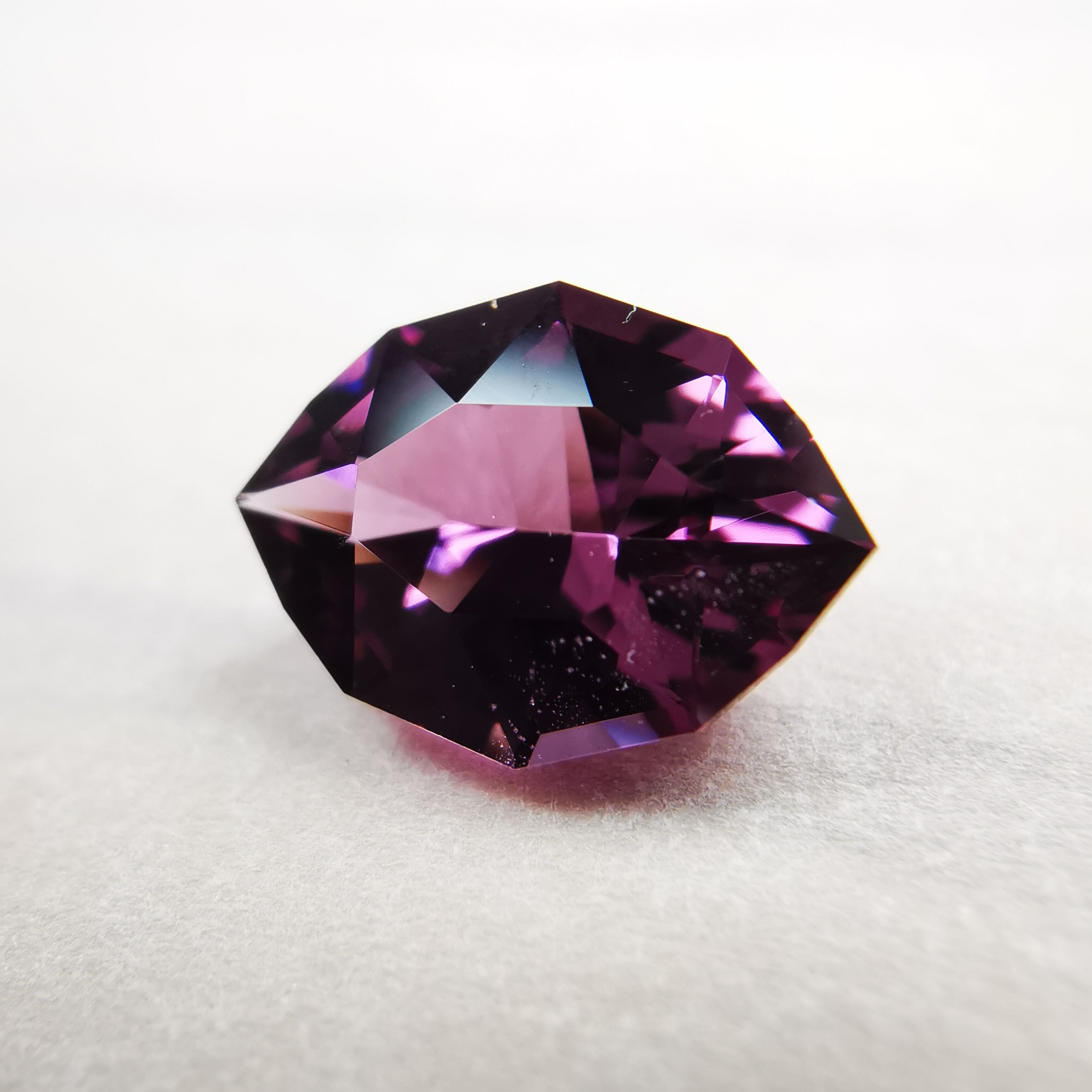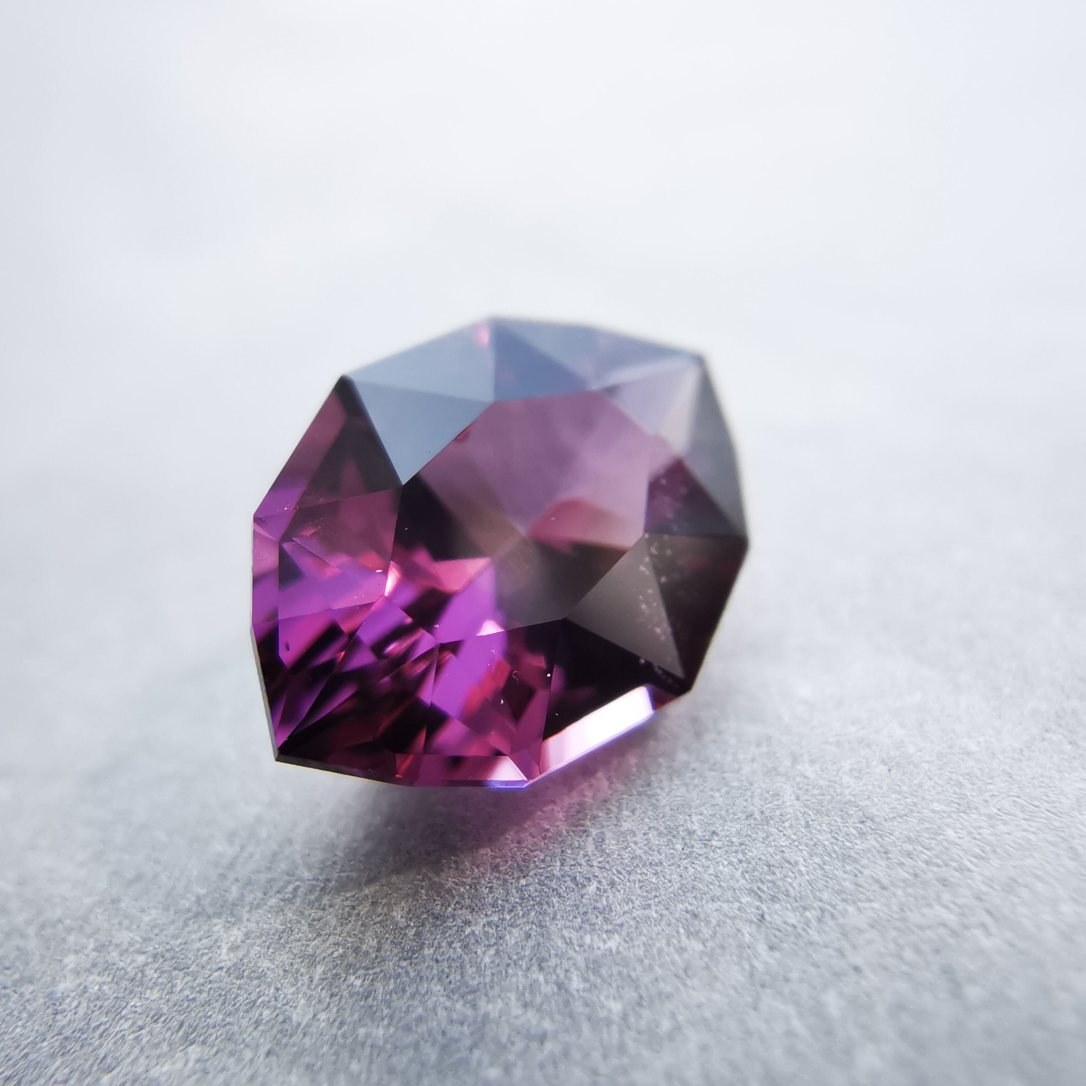 落ち着いたバーガンディー色から、ピンクカラーが鋭くきらめくスピネルです。