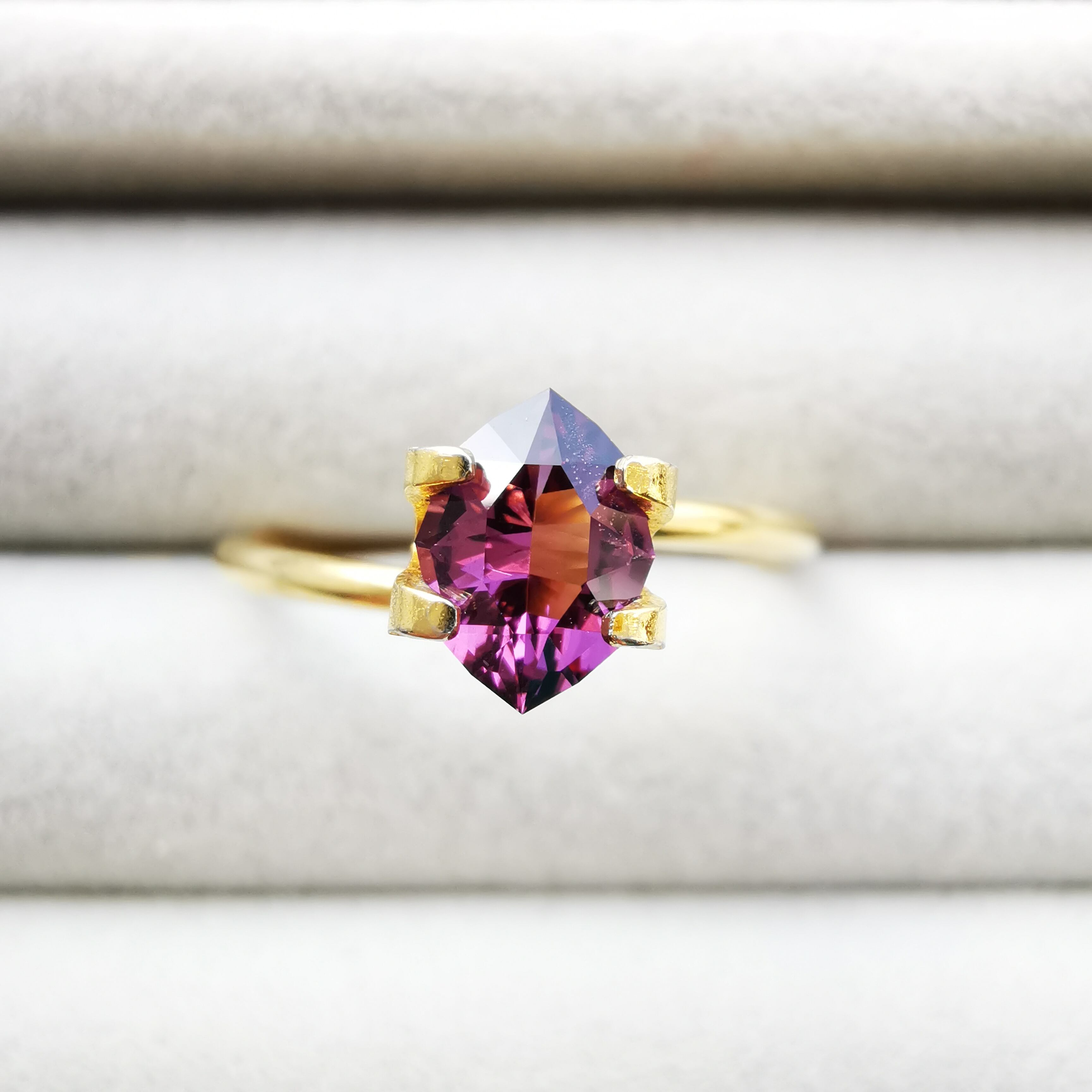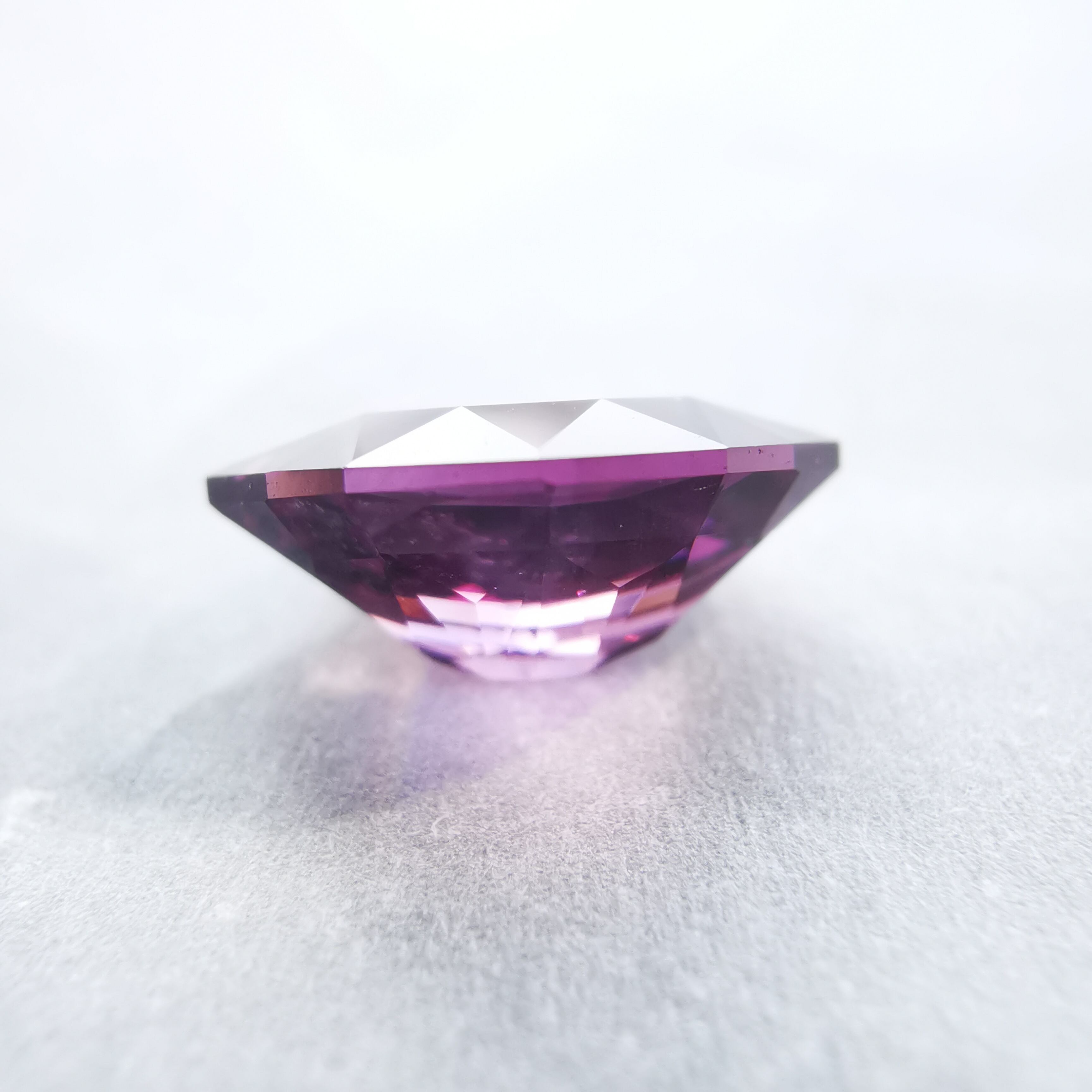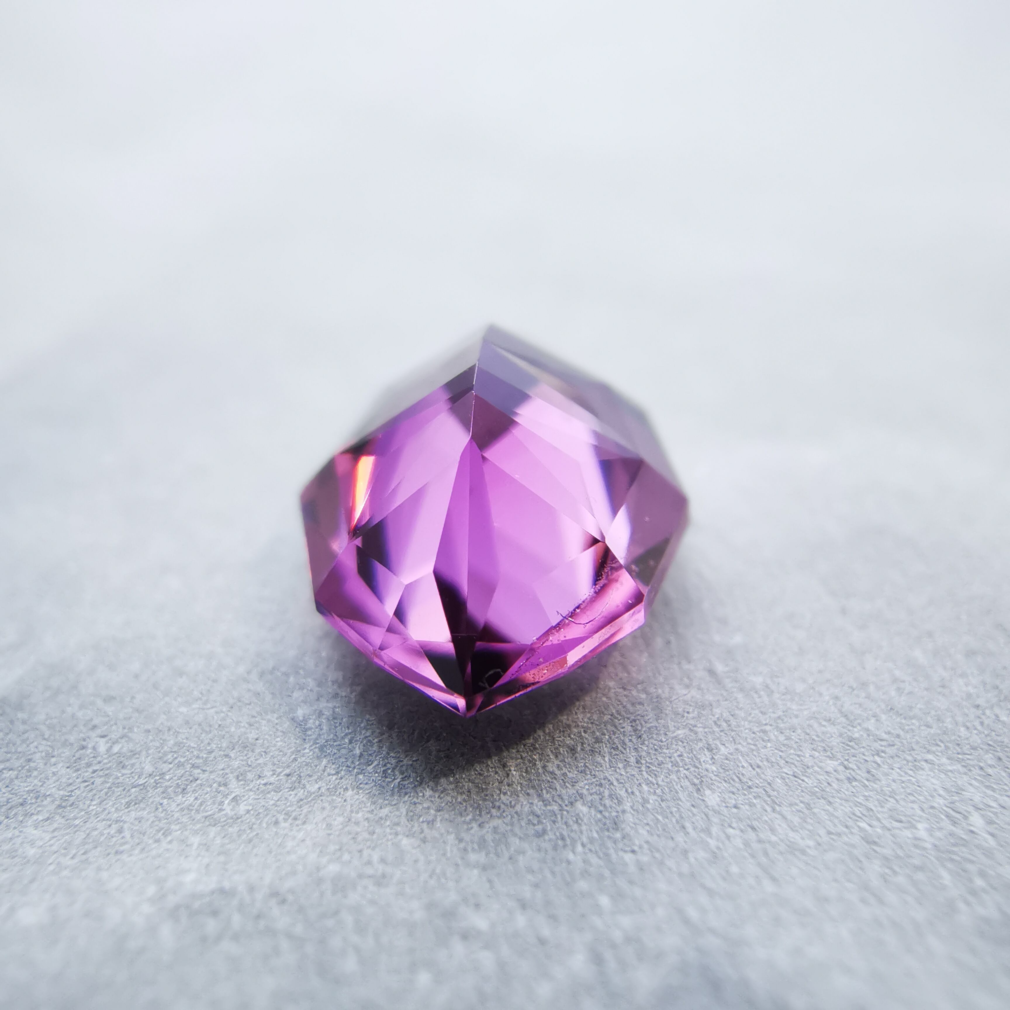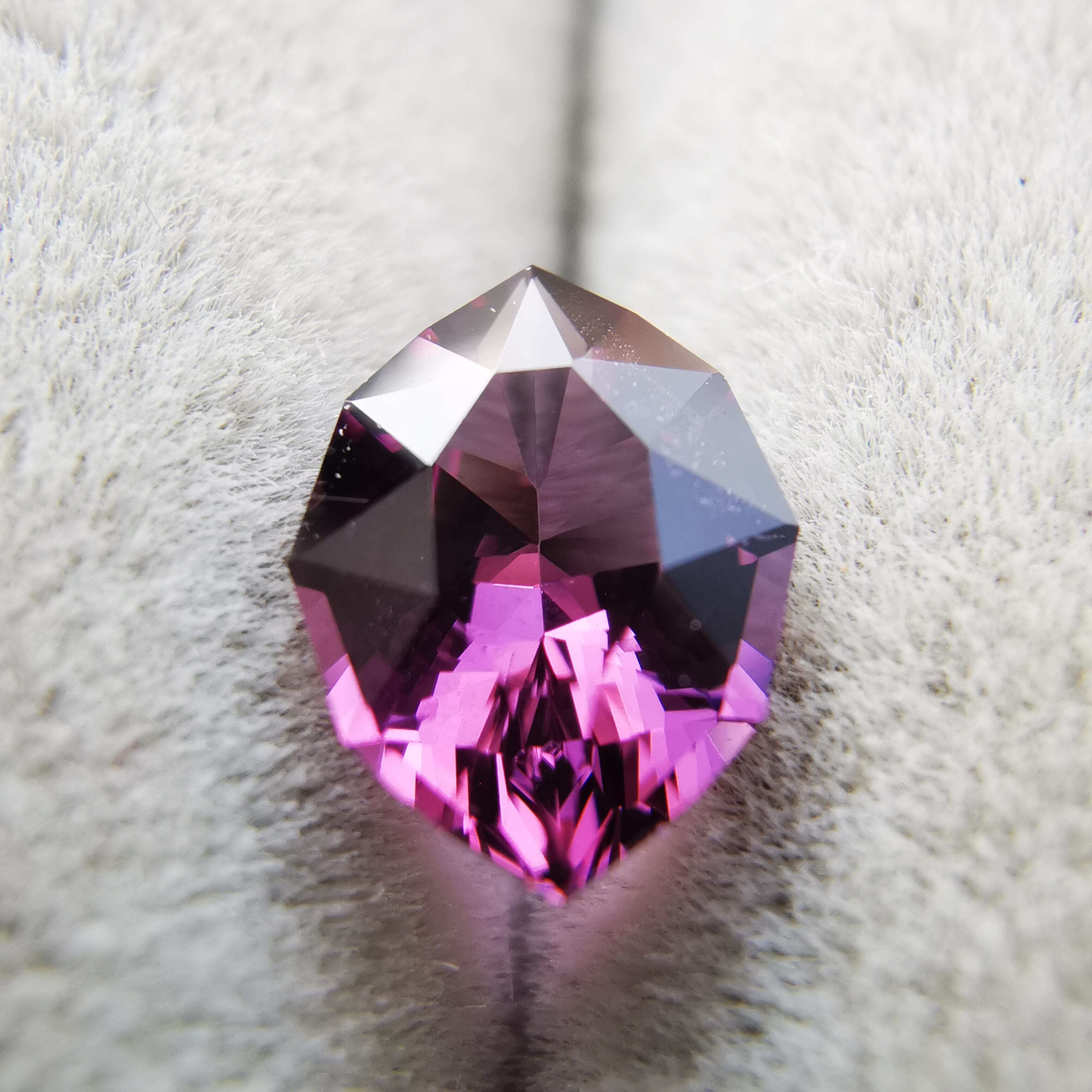 落ち着いたバーガンディー色から、ピンクカラーが鋭くきらめくスピネルです。