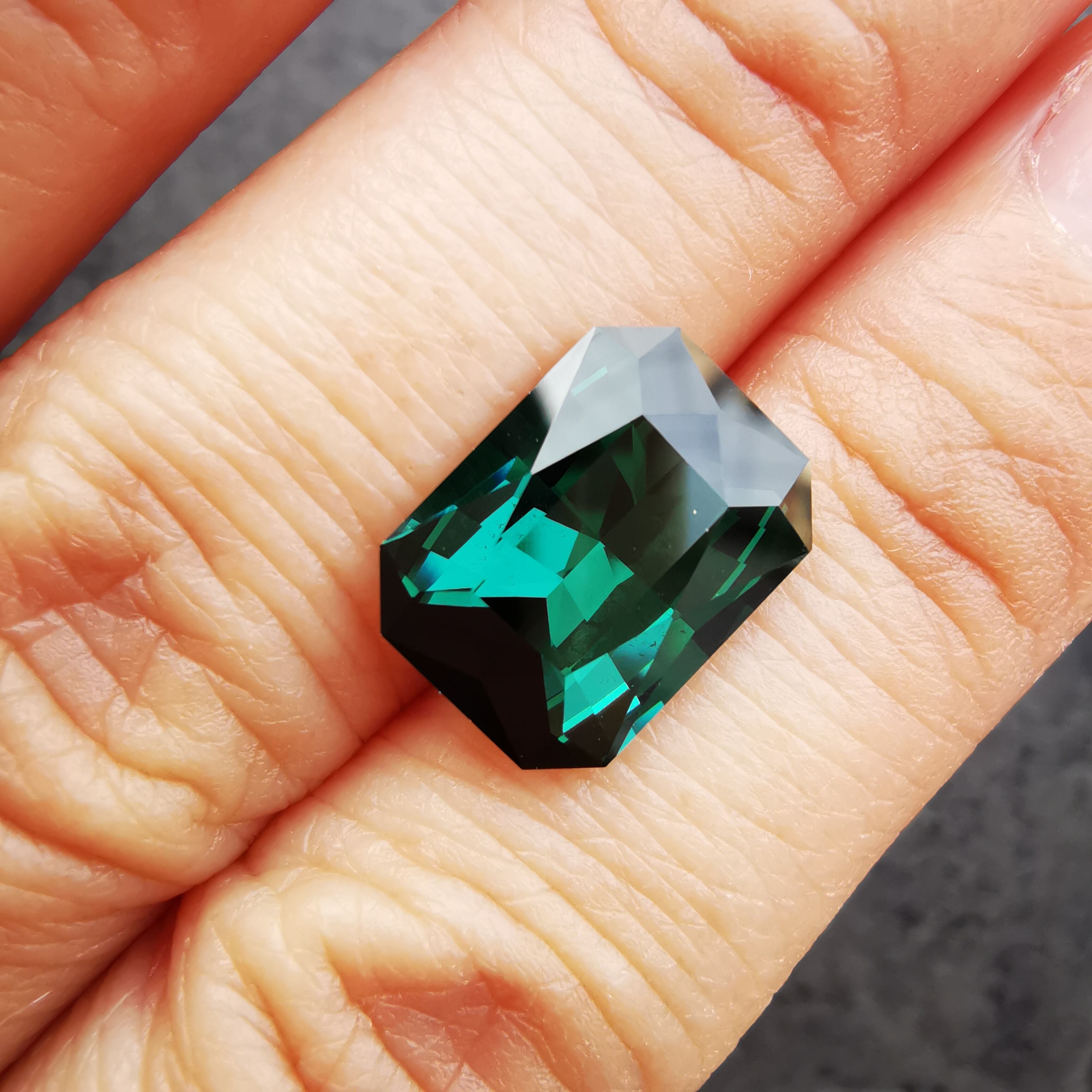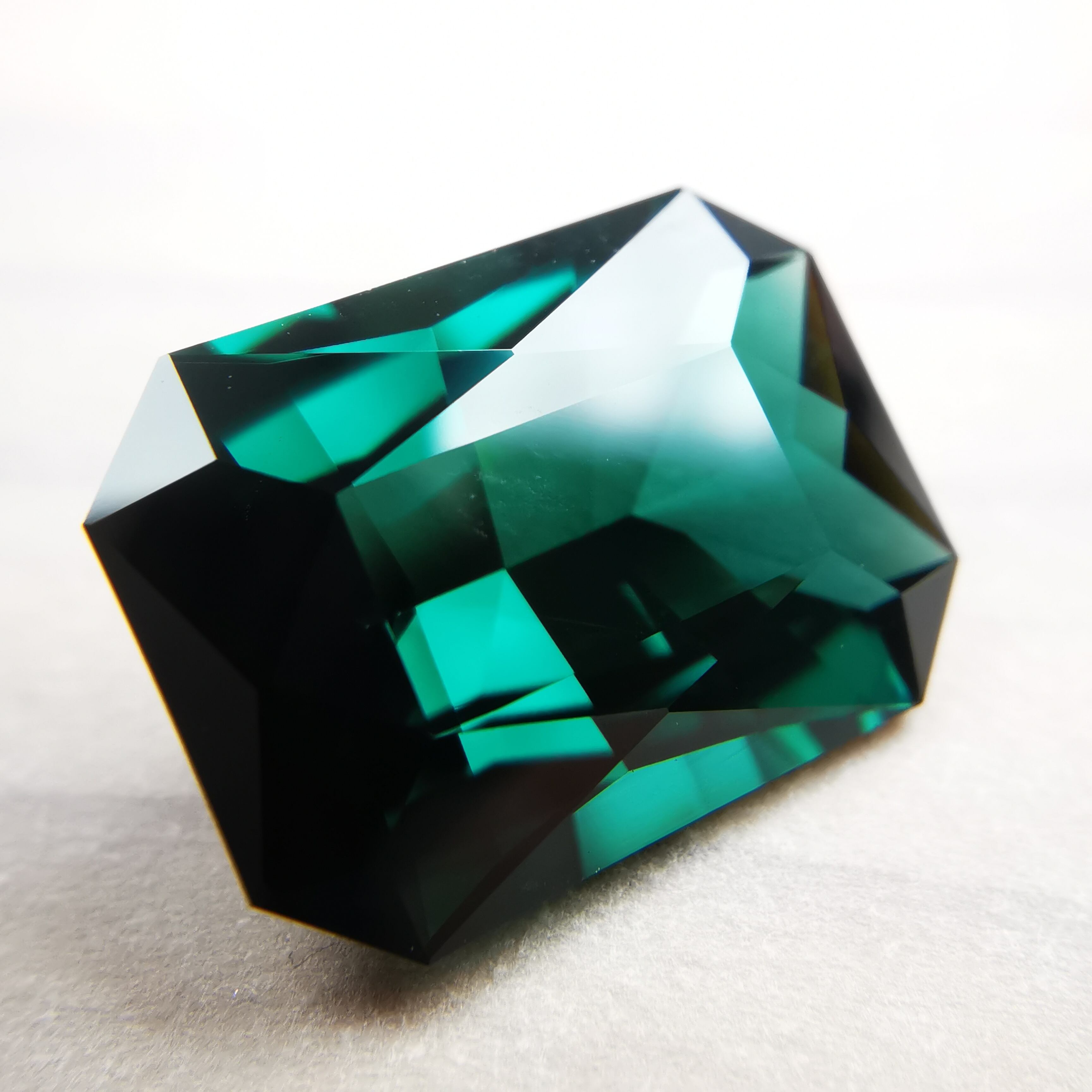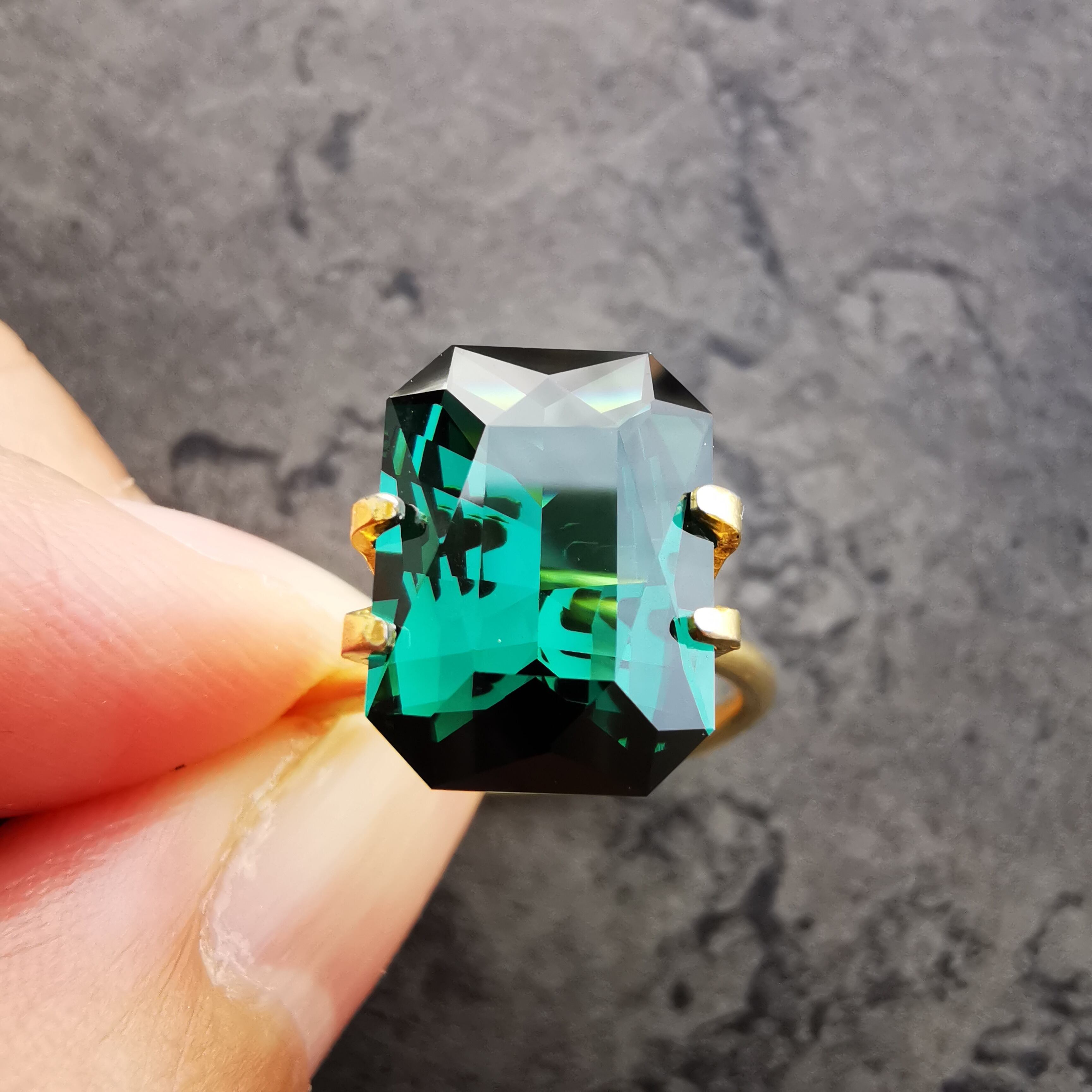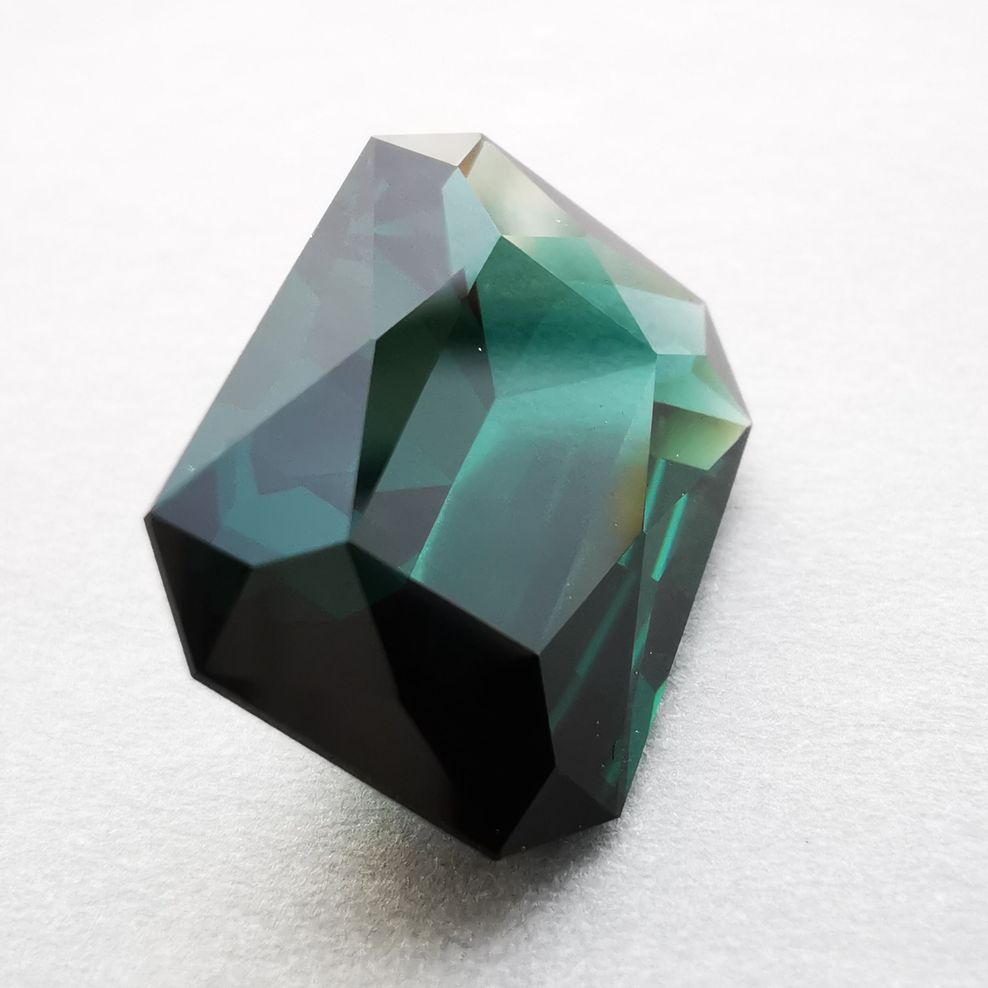 多色性のある石なので、傾けると、黄みのグリーンと青みのグリーンが入れ替わり現れます。