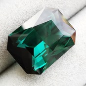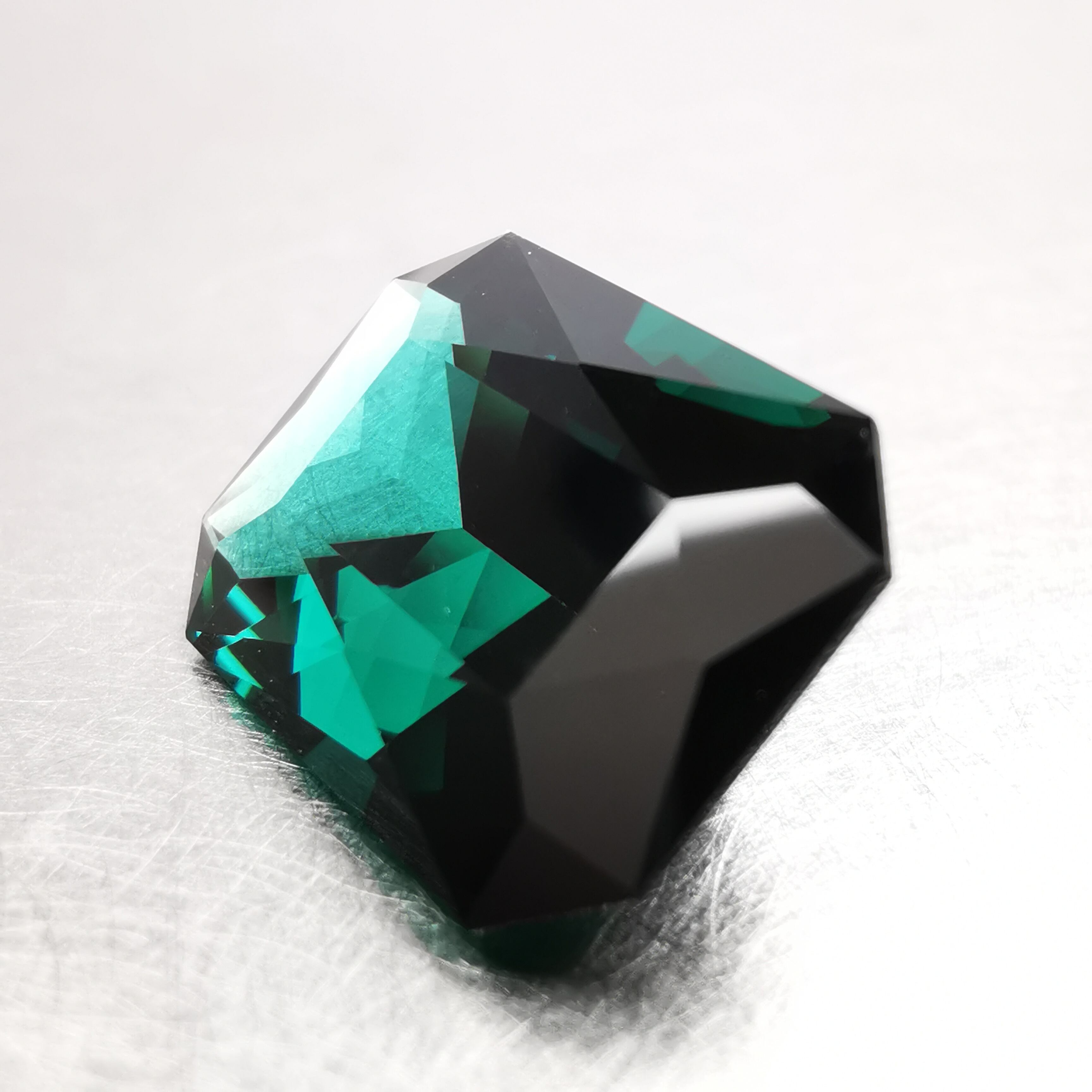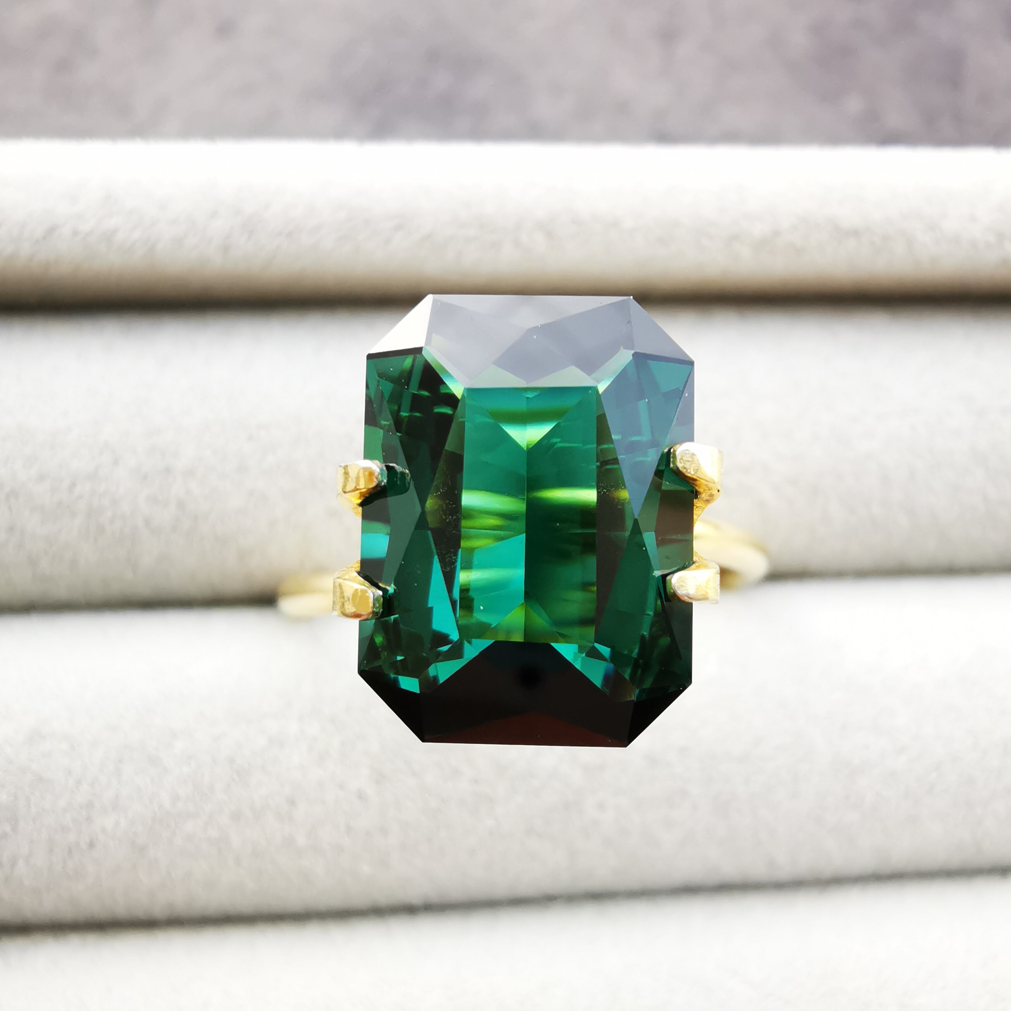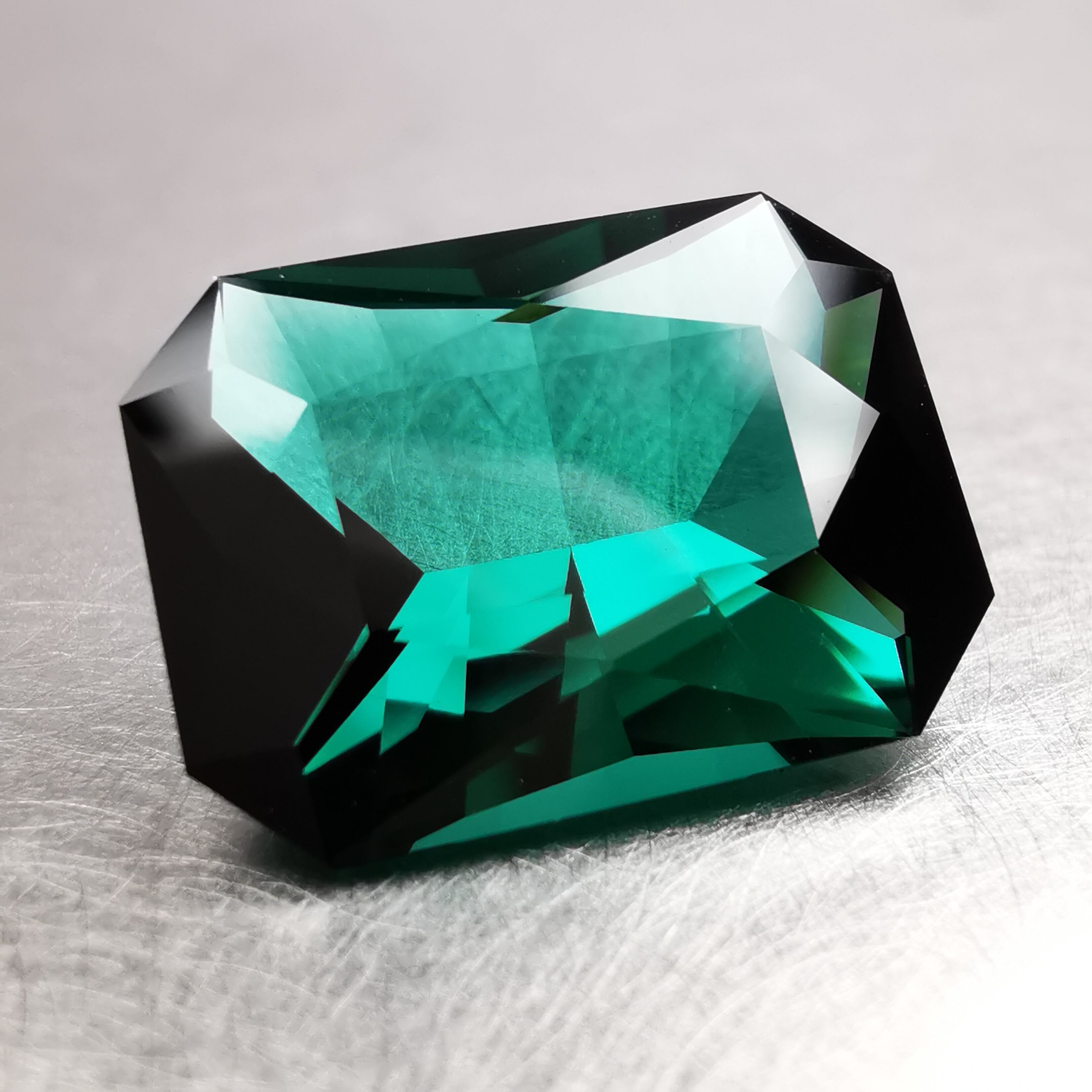 多色性のある石なので、傾けると、黄みのグリーンと青みのグリーンが入れ替わり現れます。
