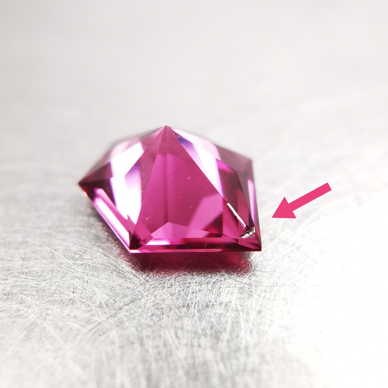 先端の裏側に、肉眼で見える表面に達するインクルージョンあり(写真11)