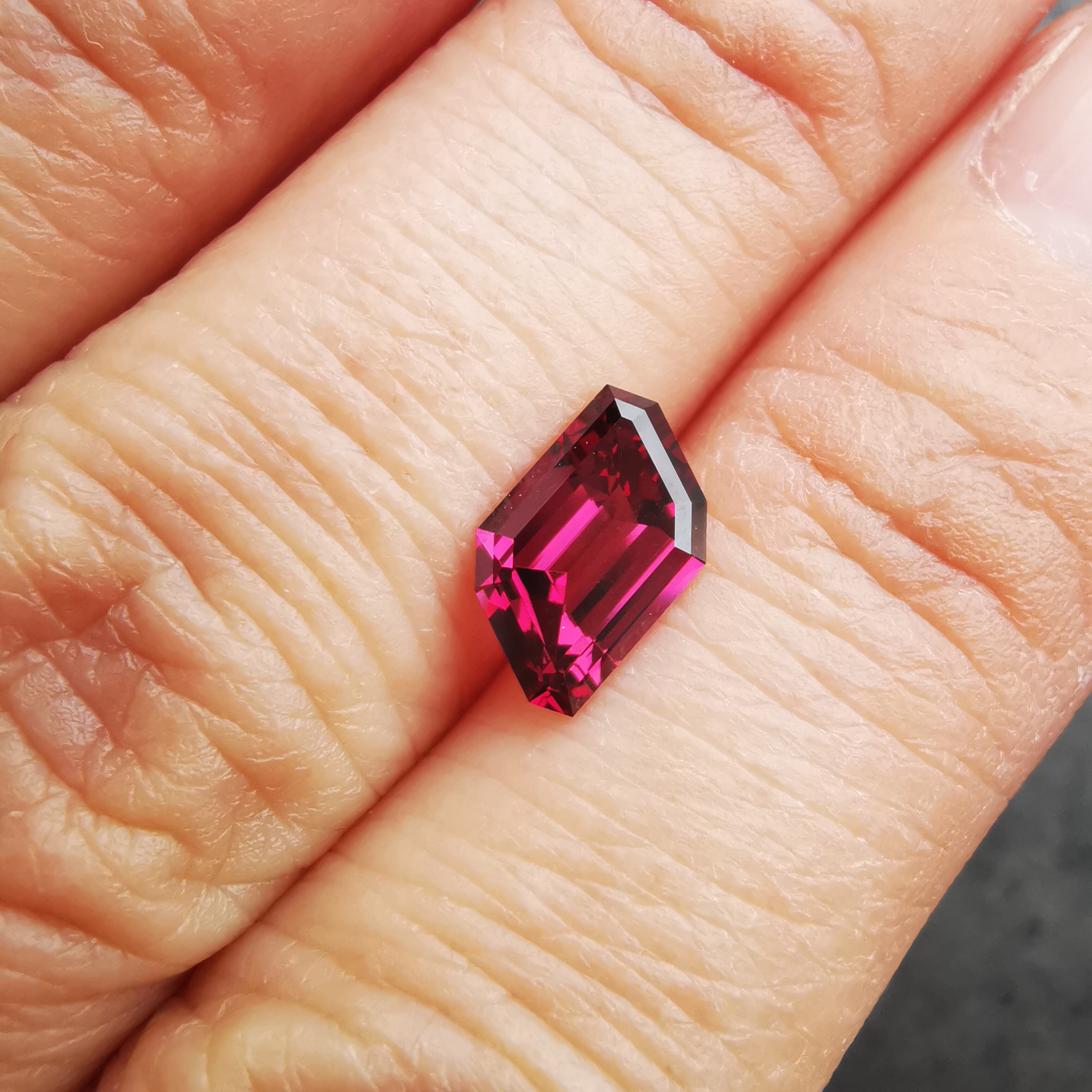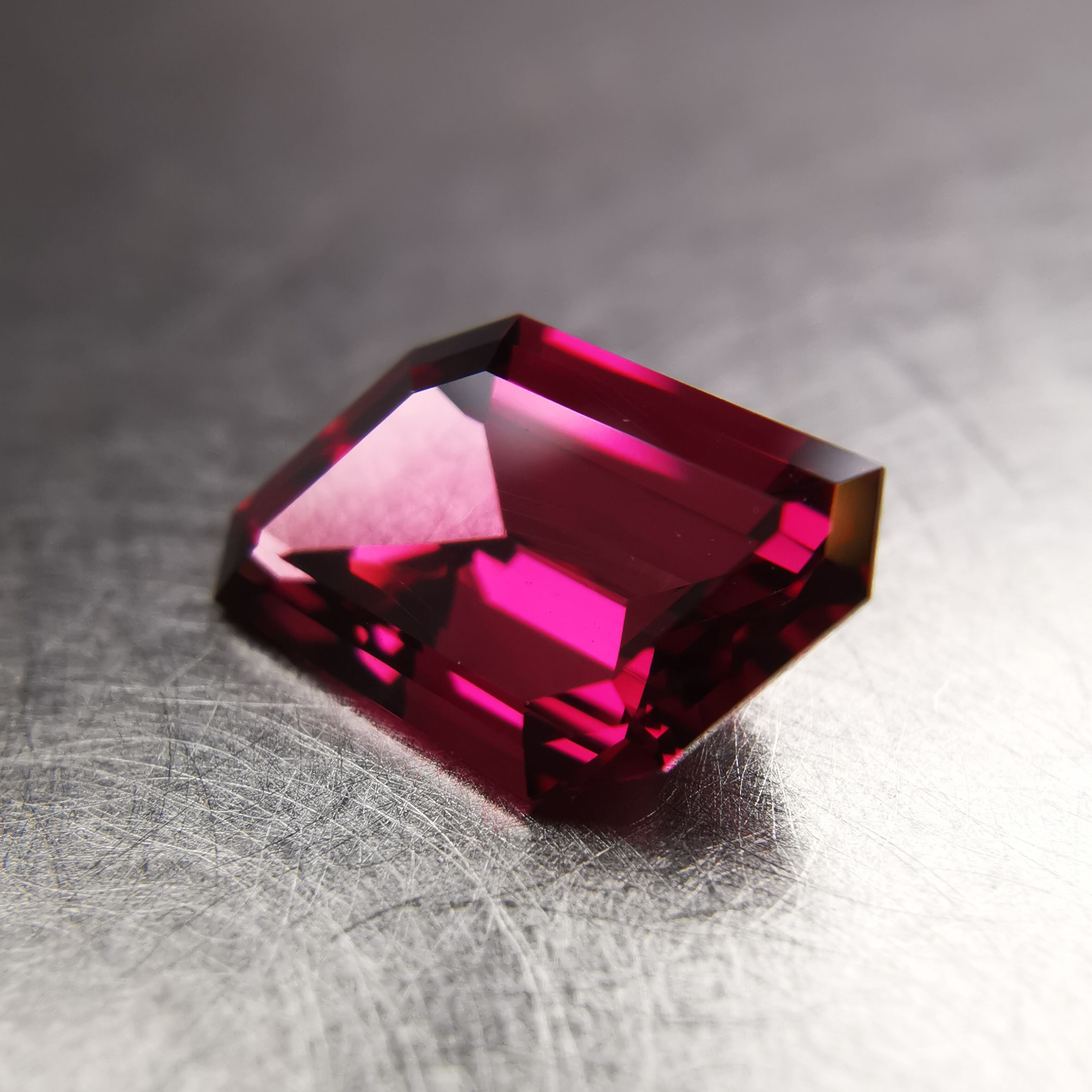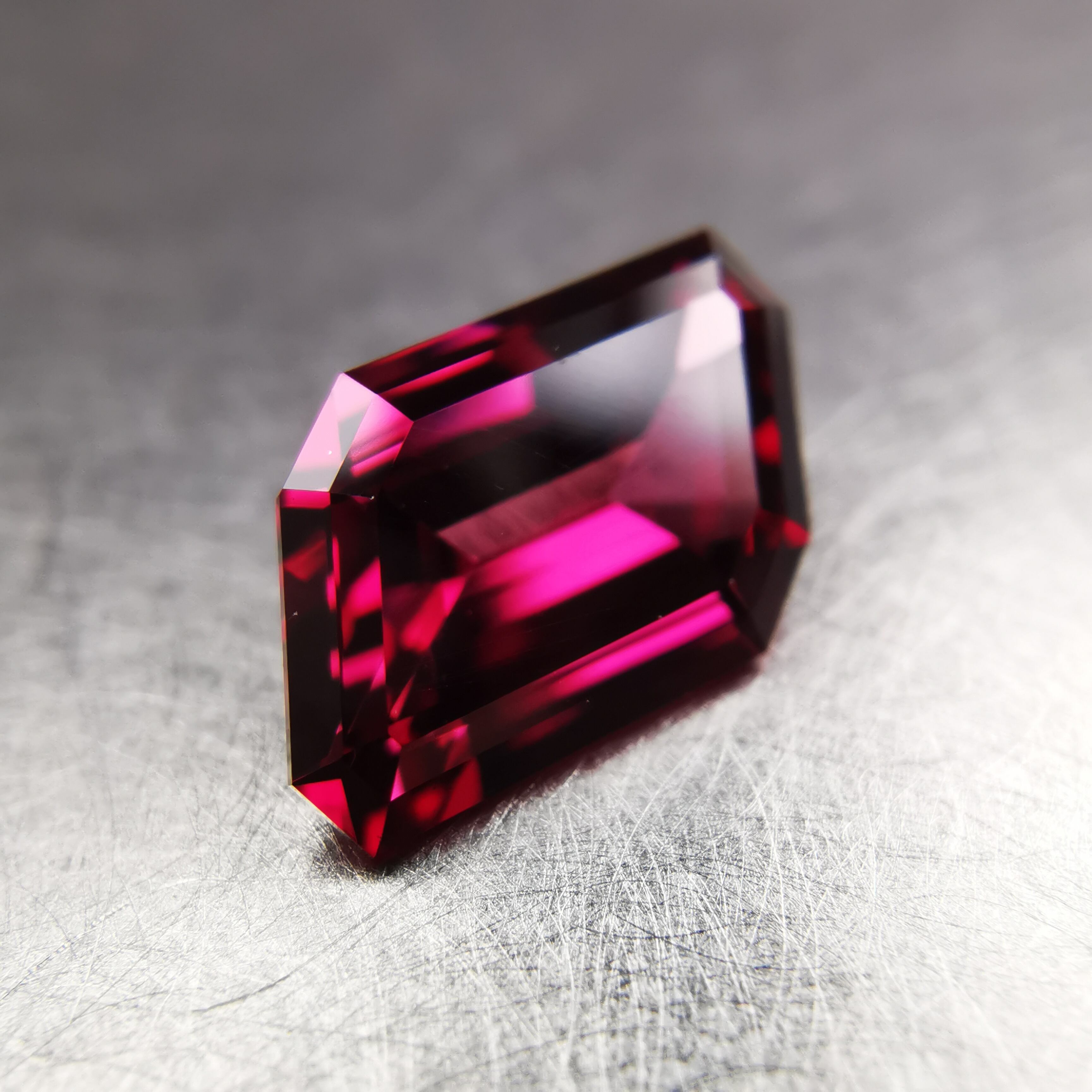 濃い紫みの赤、ワインレッドのロードライトガーネットです。
