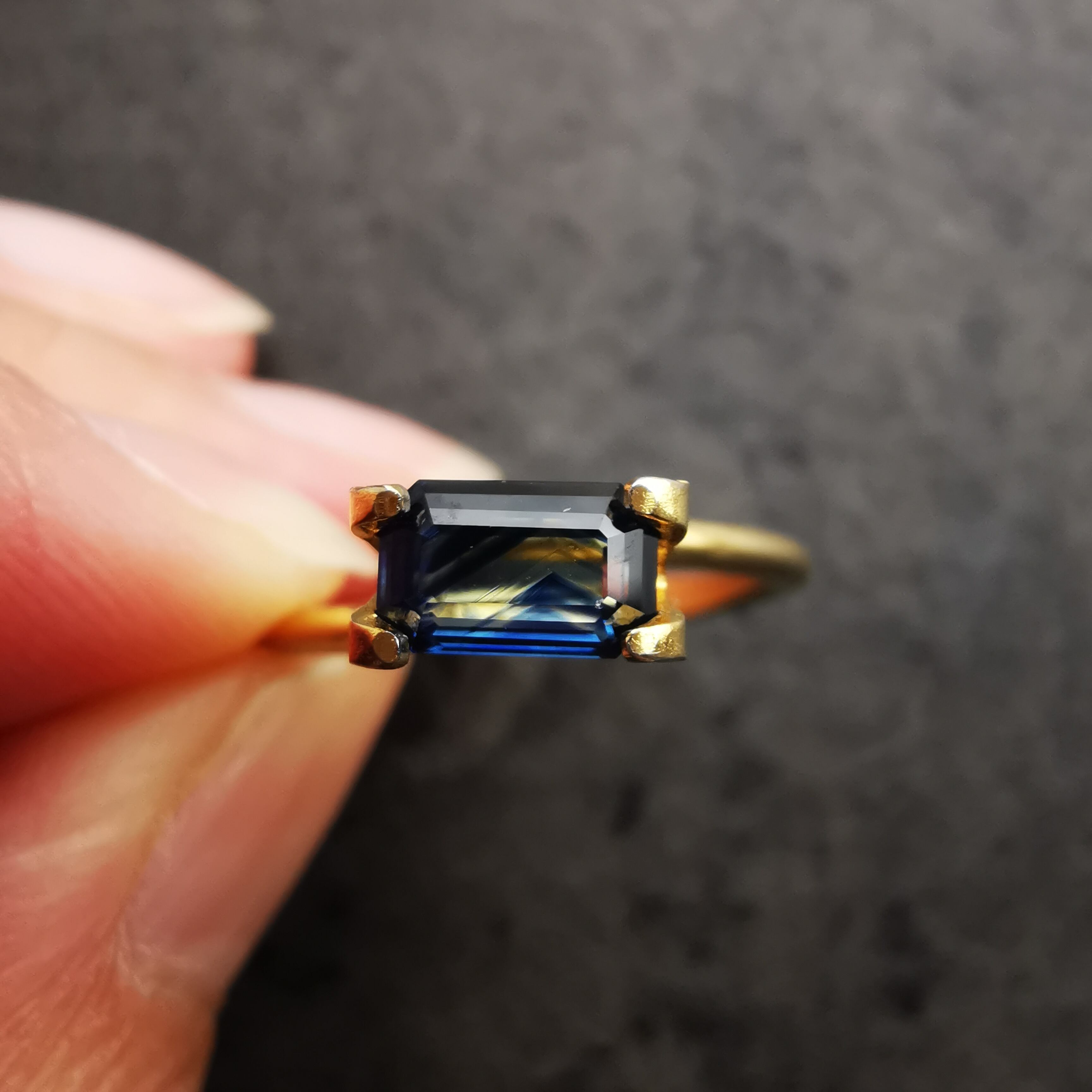 くっきりと浮かび上がる紺色のカラーバンドが楽しいサファイアです。