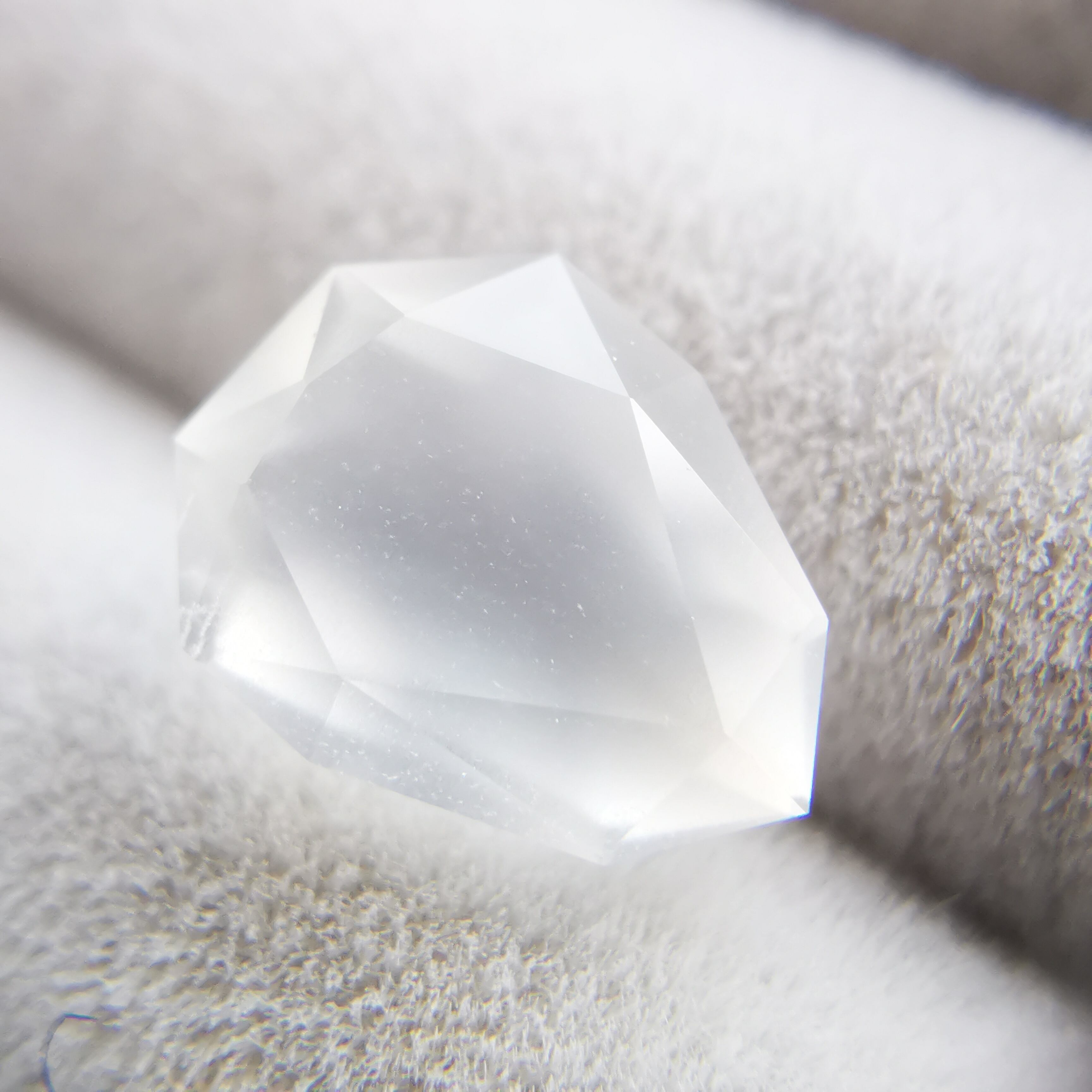ルーペで見ると、雪がチラチラと降るようなインクルージョンが入っています。