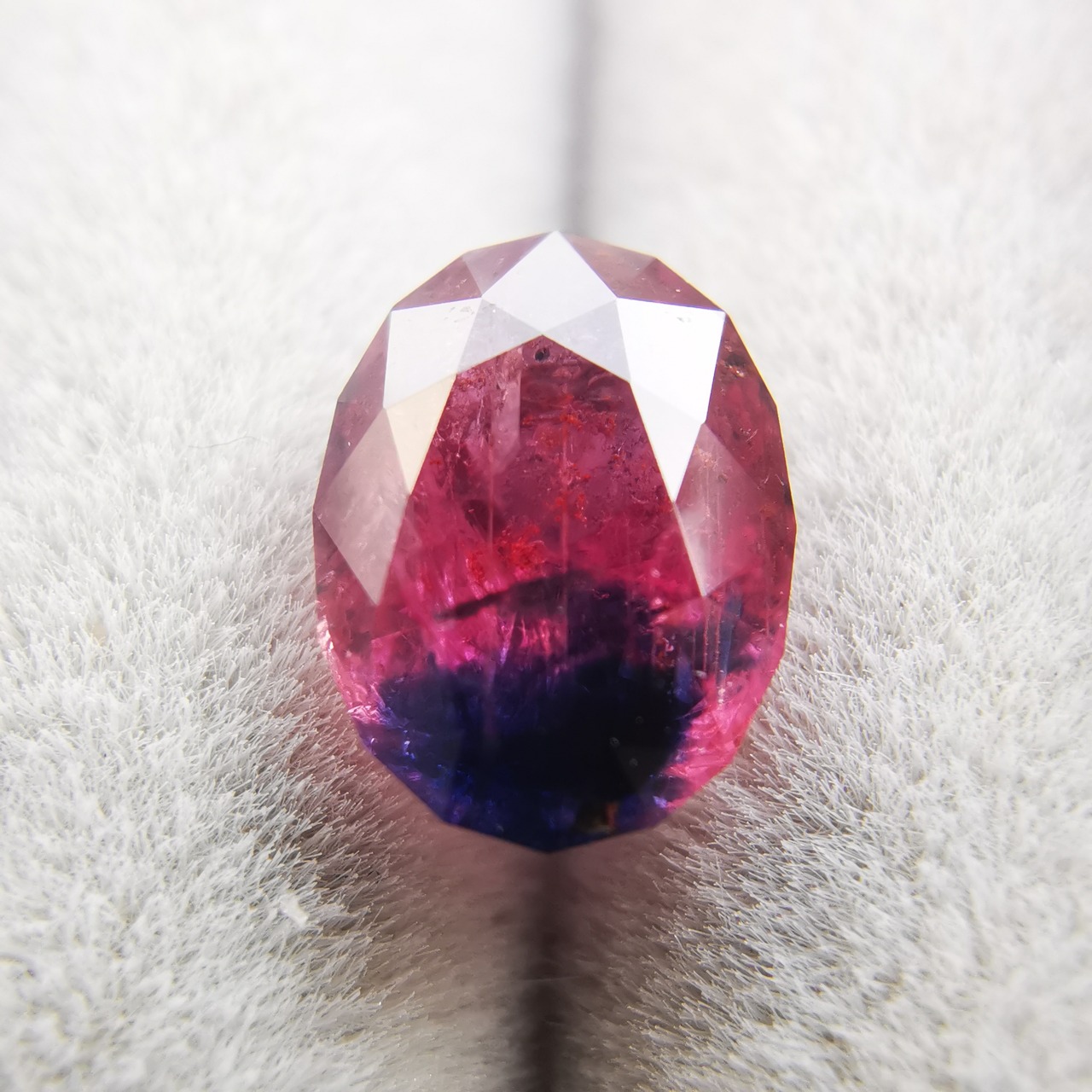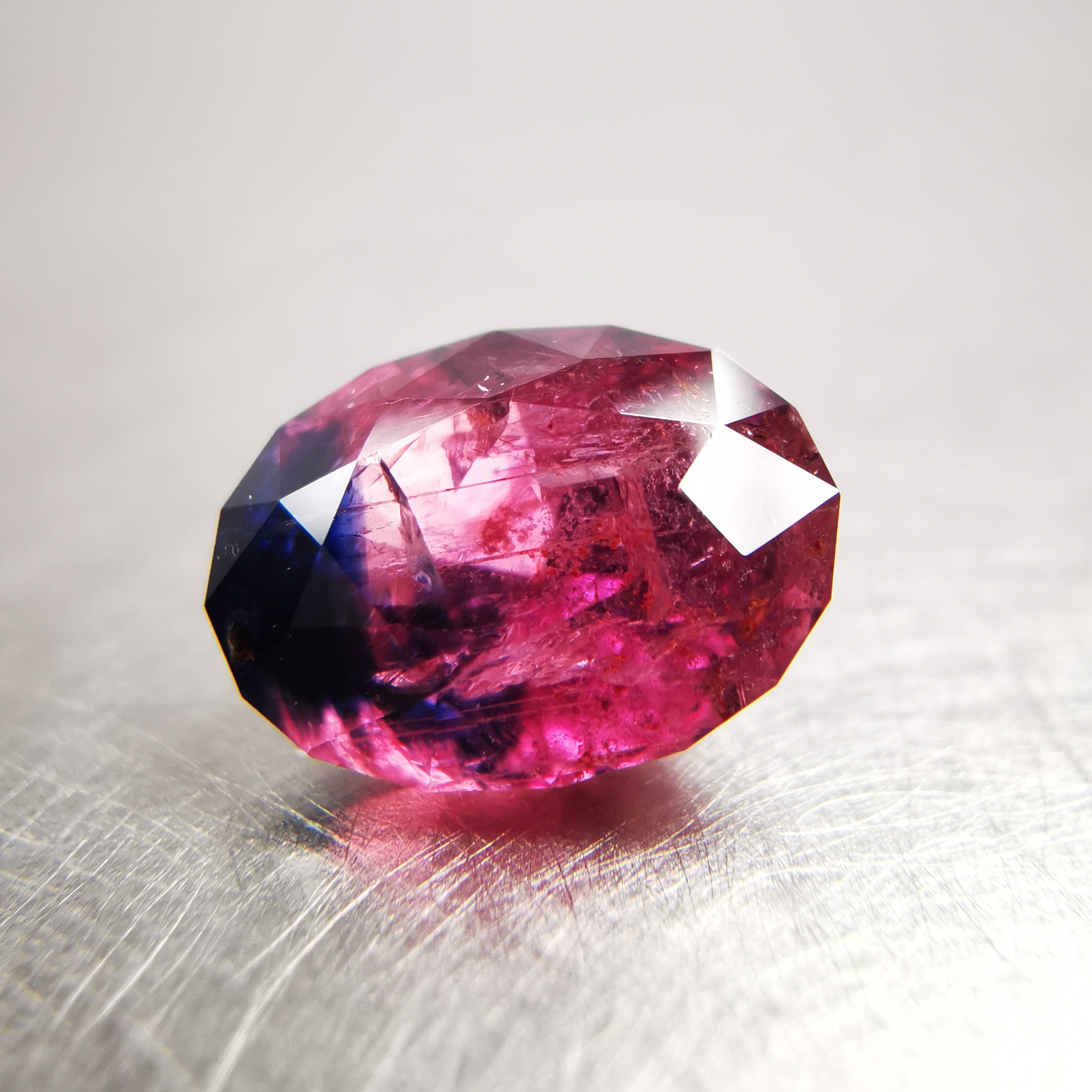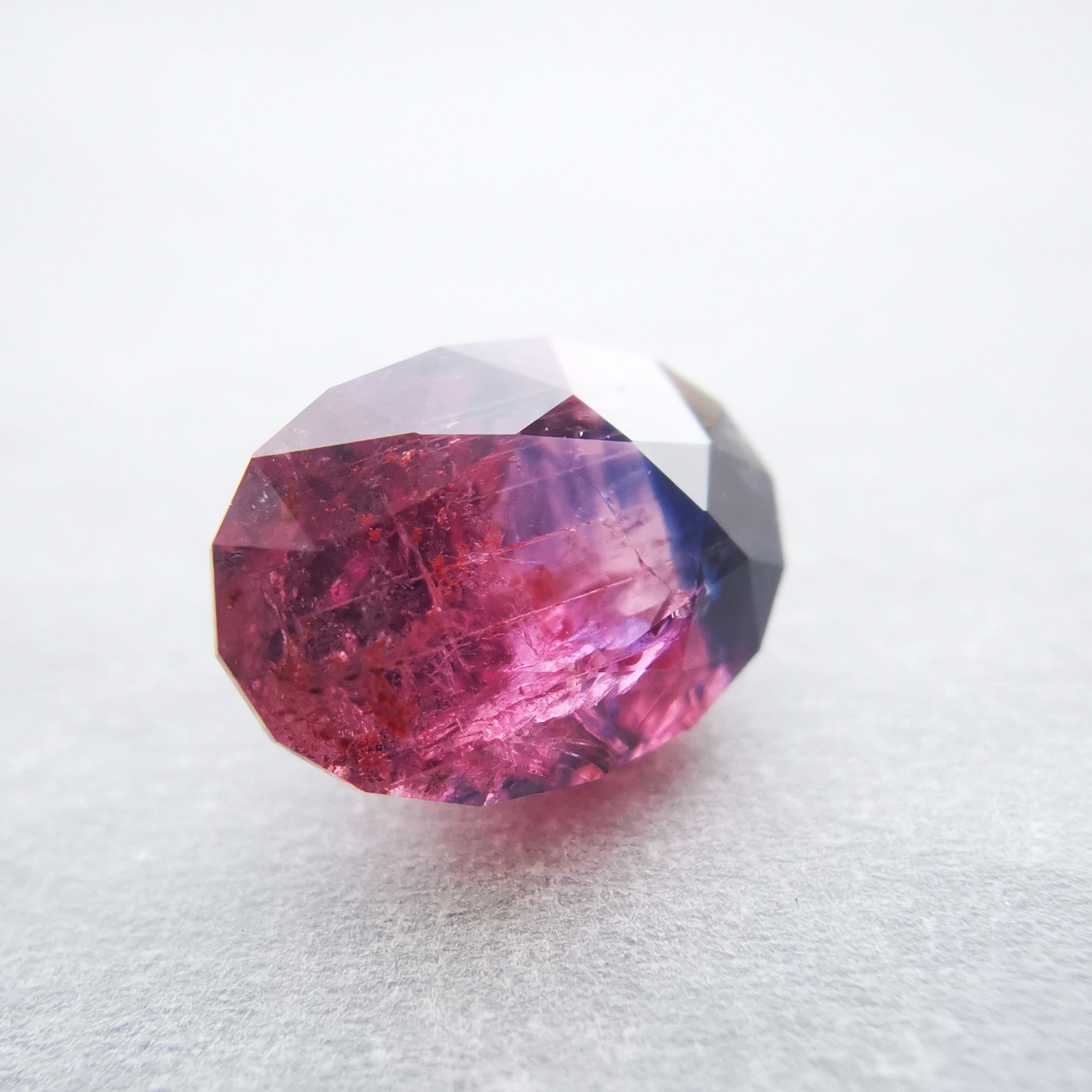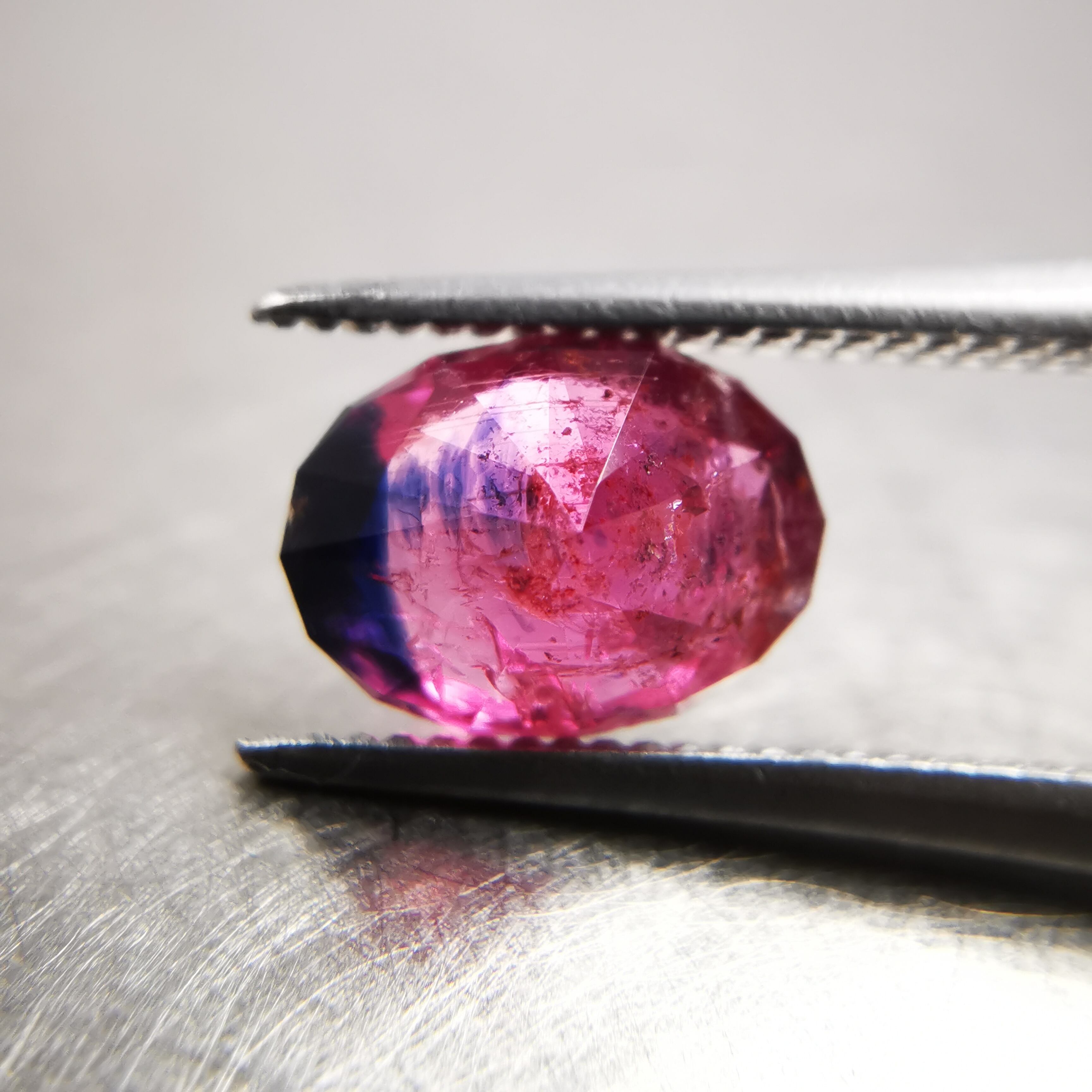 タンザニア産のサファイアらしい、ピンクと濃厚なブルーのバイカラーです。