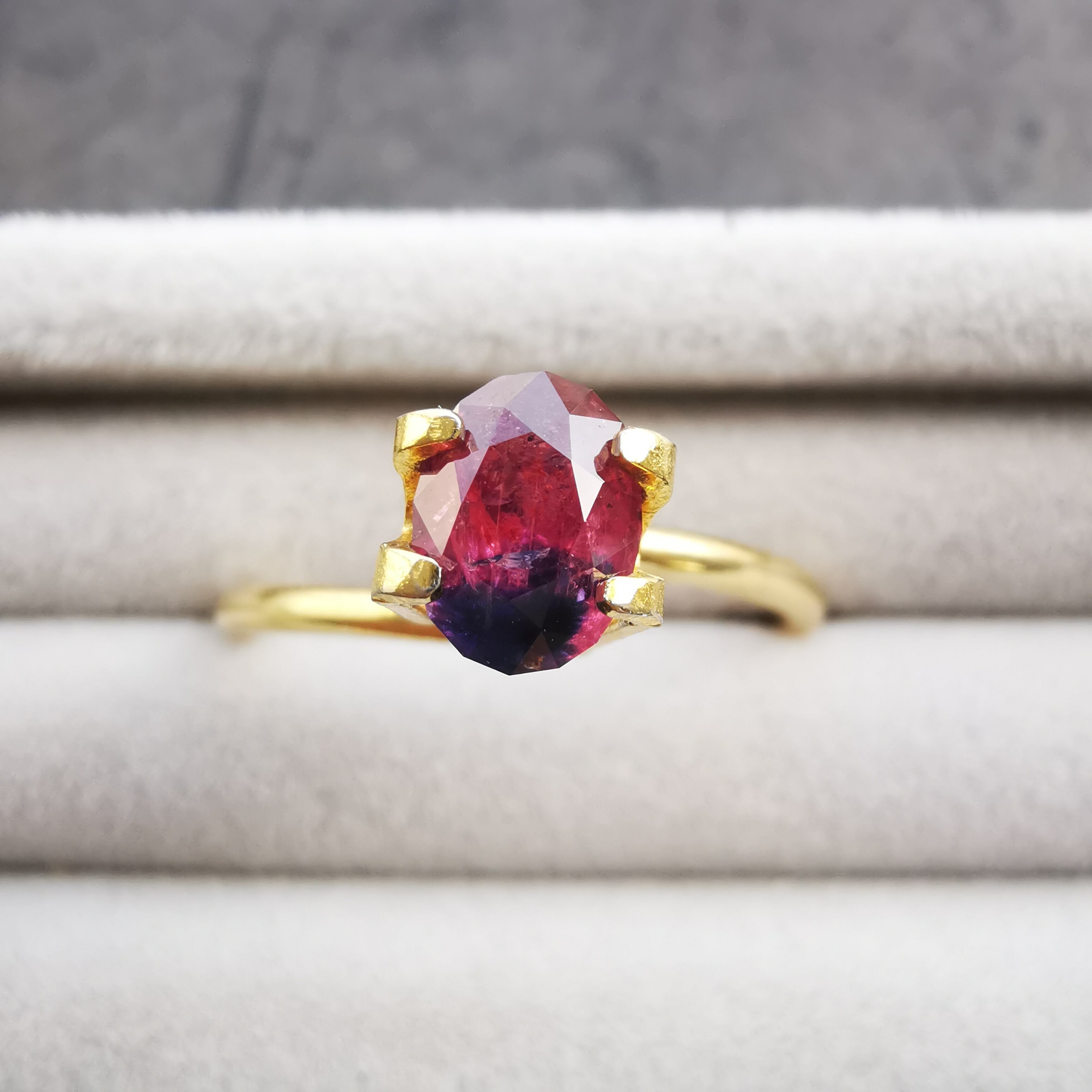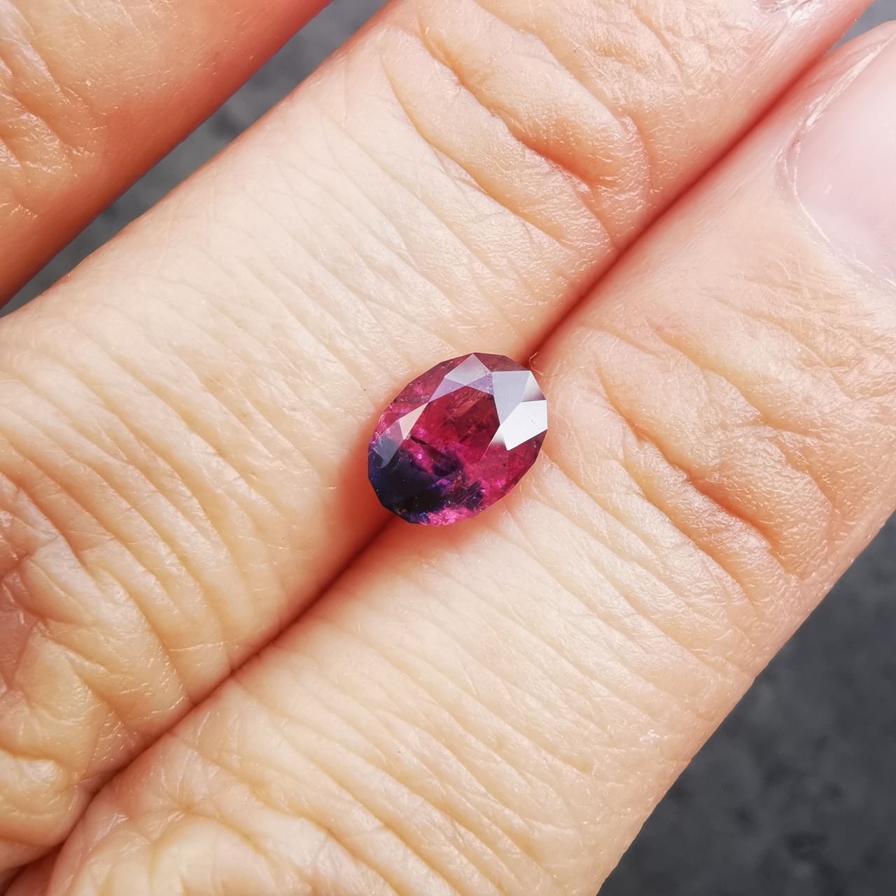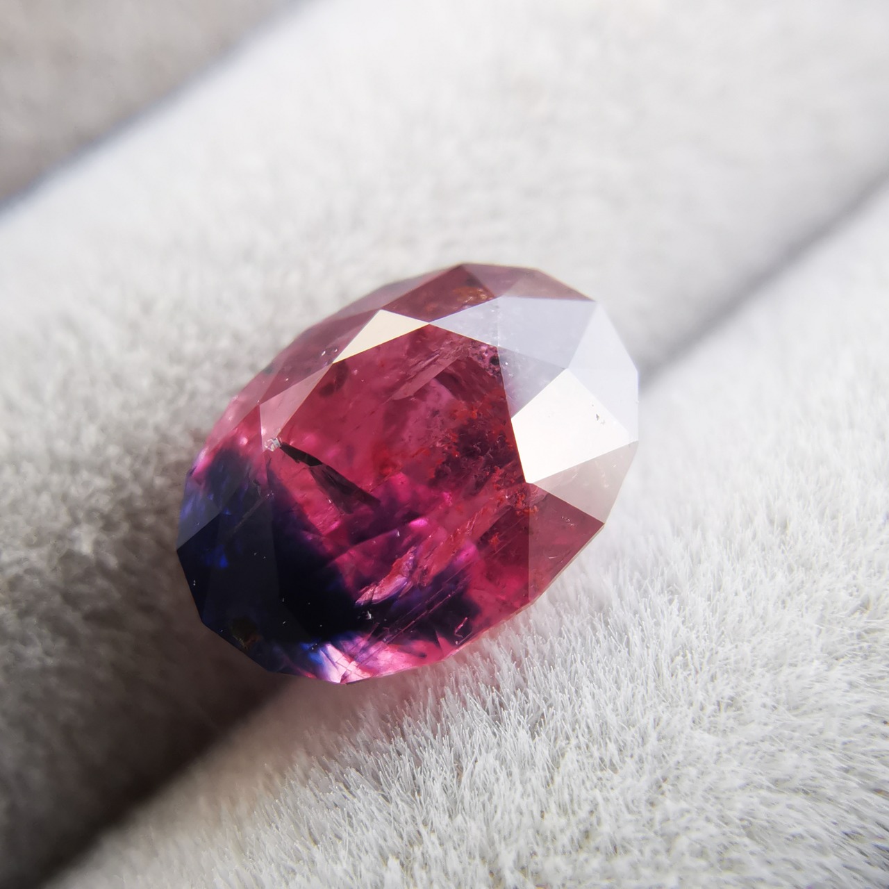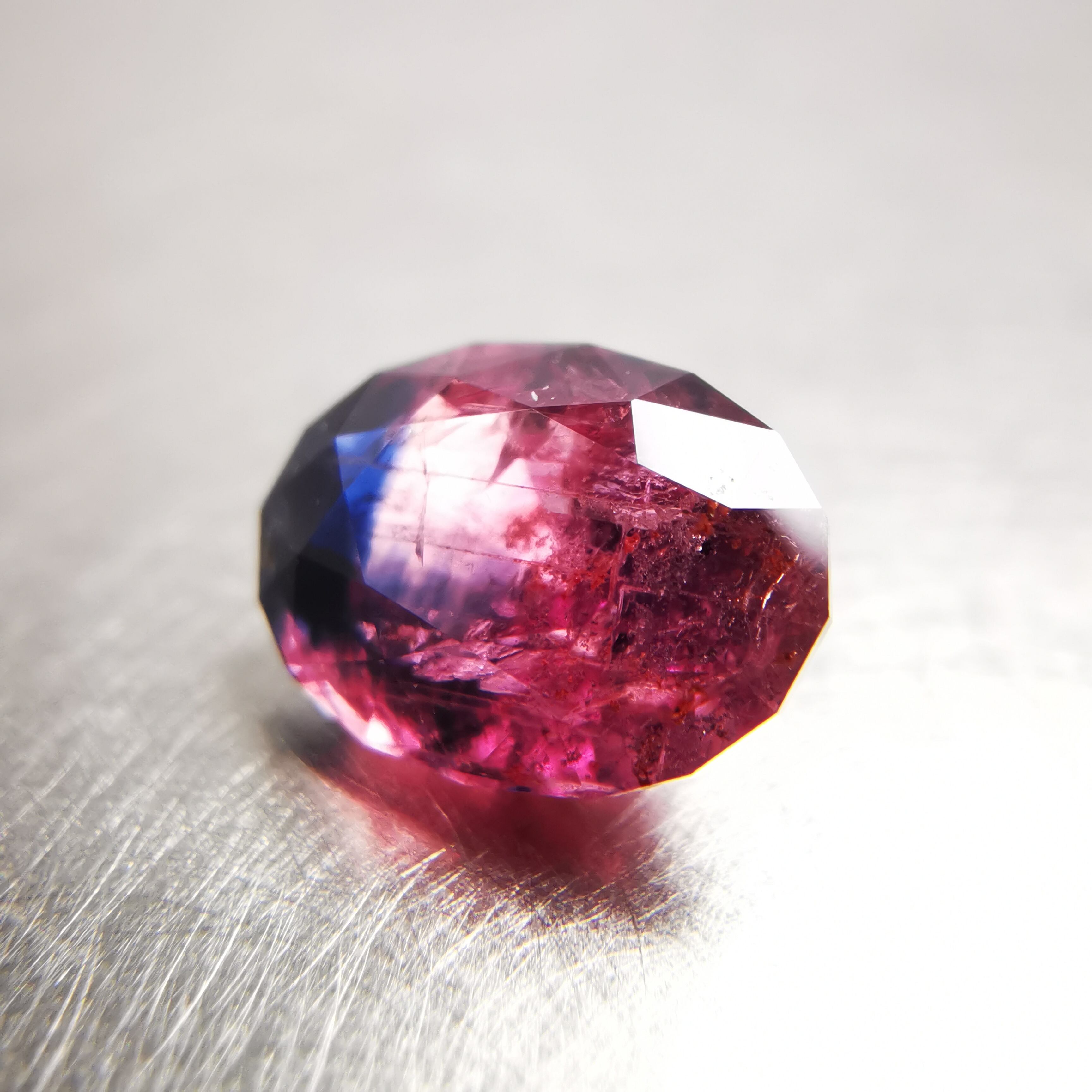 タンザニア産のサファイアらしい、ピンクと濃厚なブルーのバイカラーです。