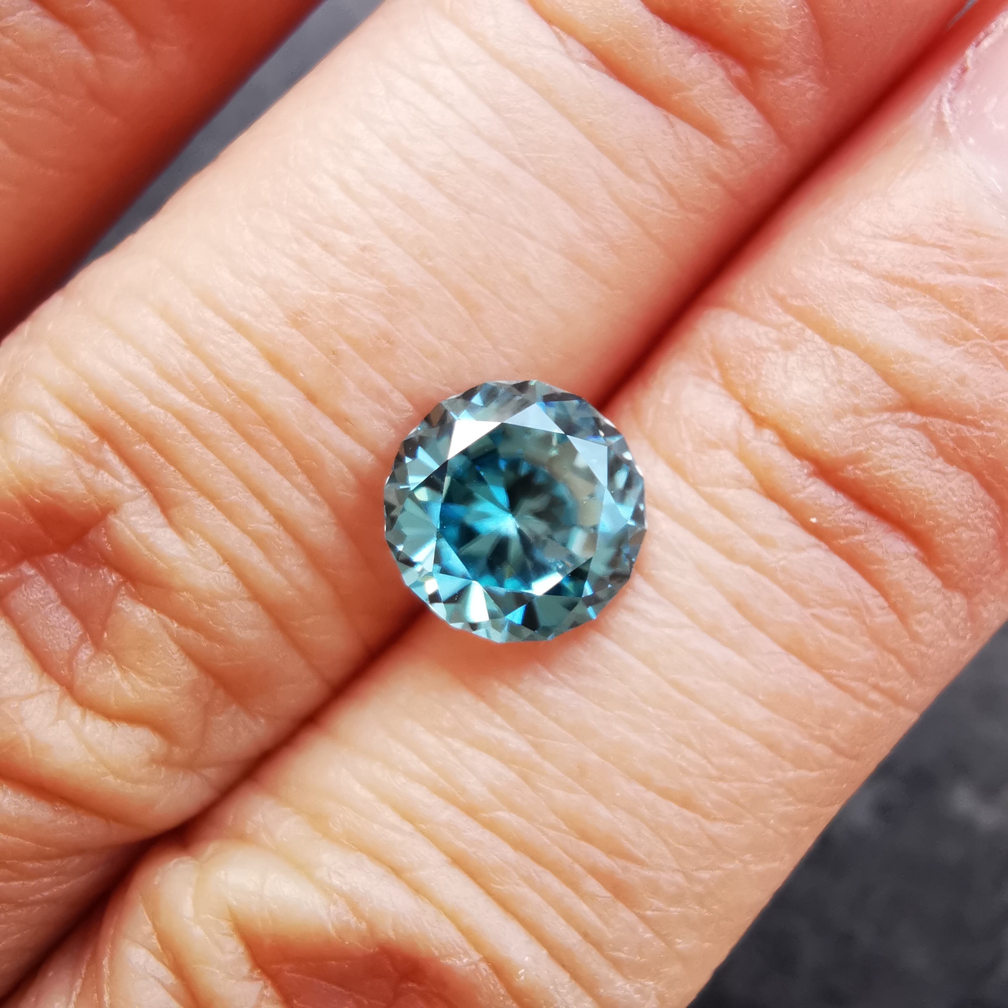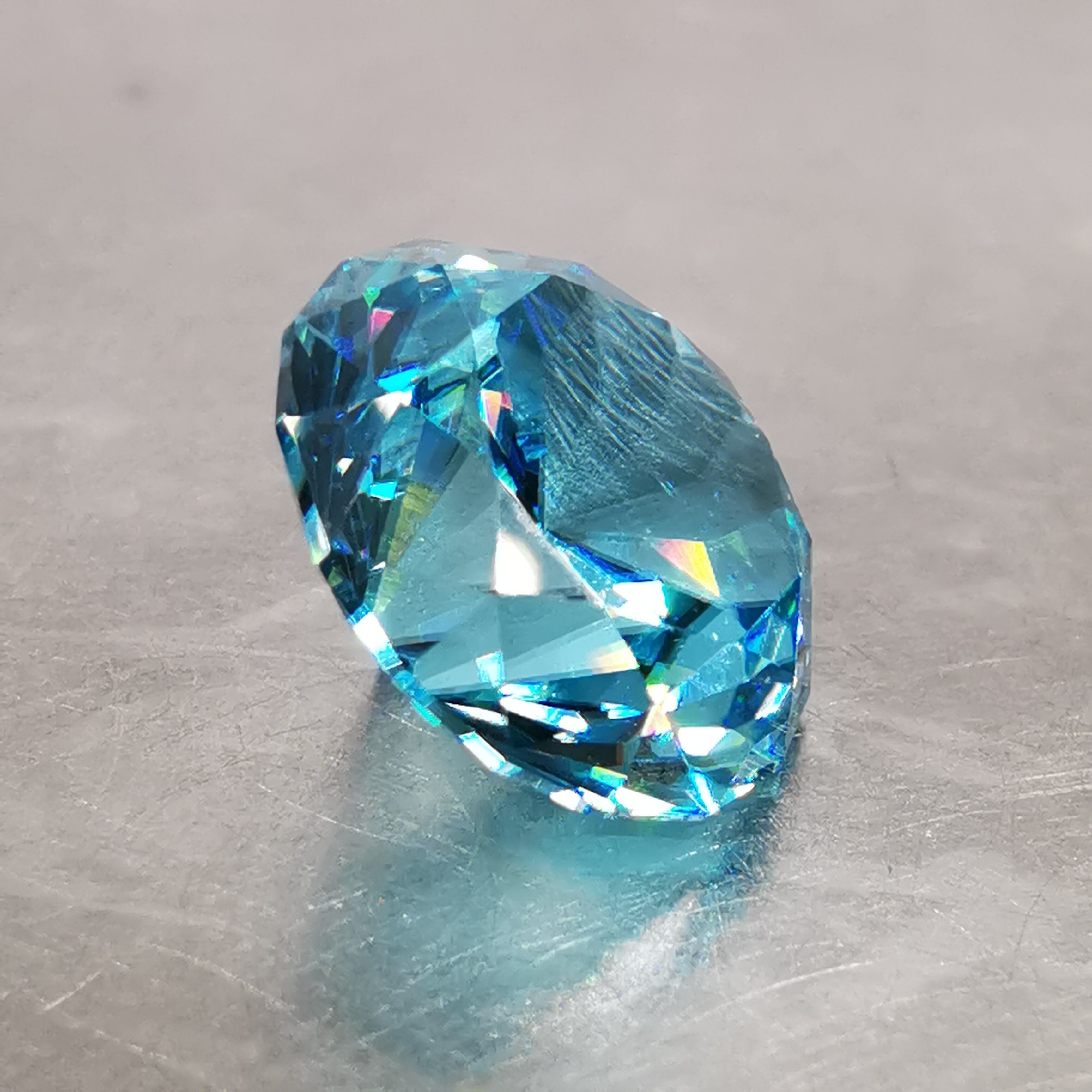 照明の下ではジルコンらしくギラギラと虹色のファイアが輝きます。