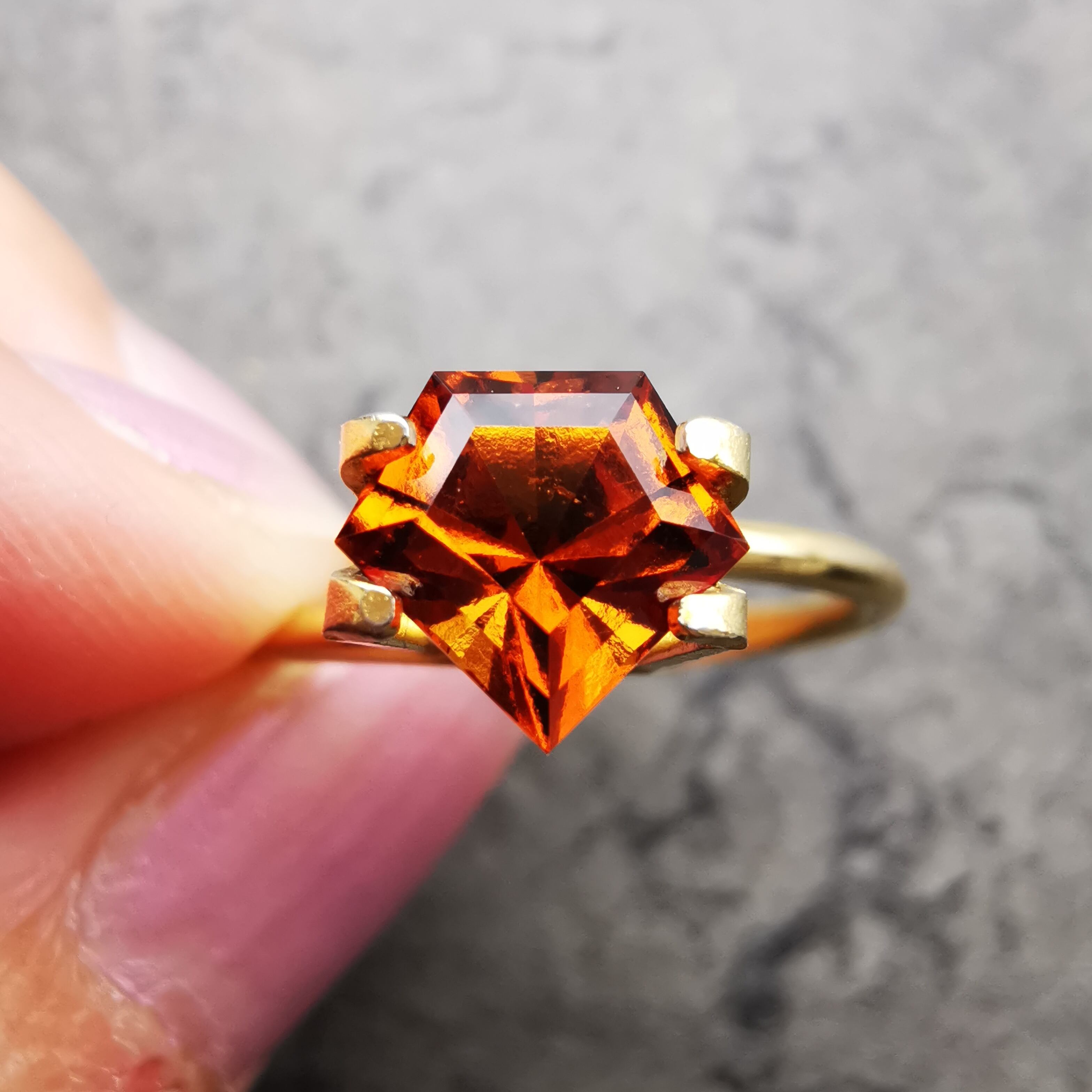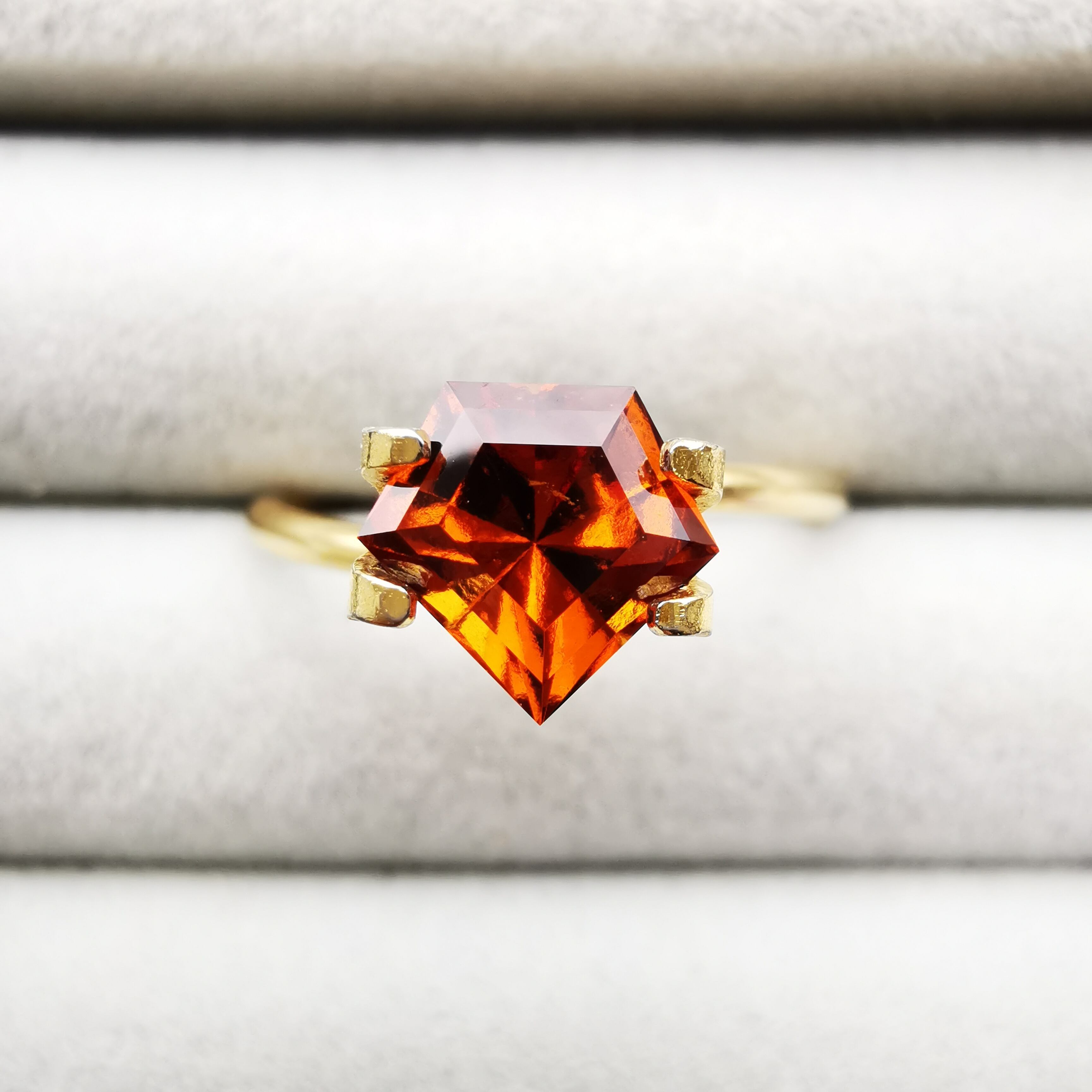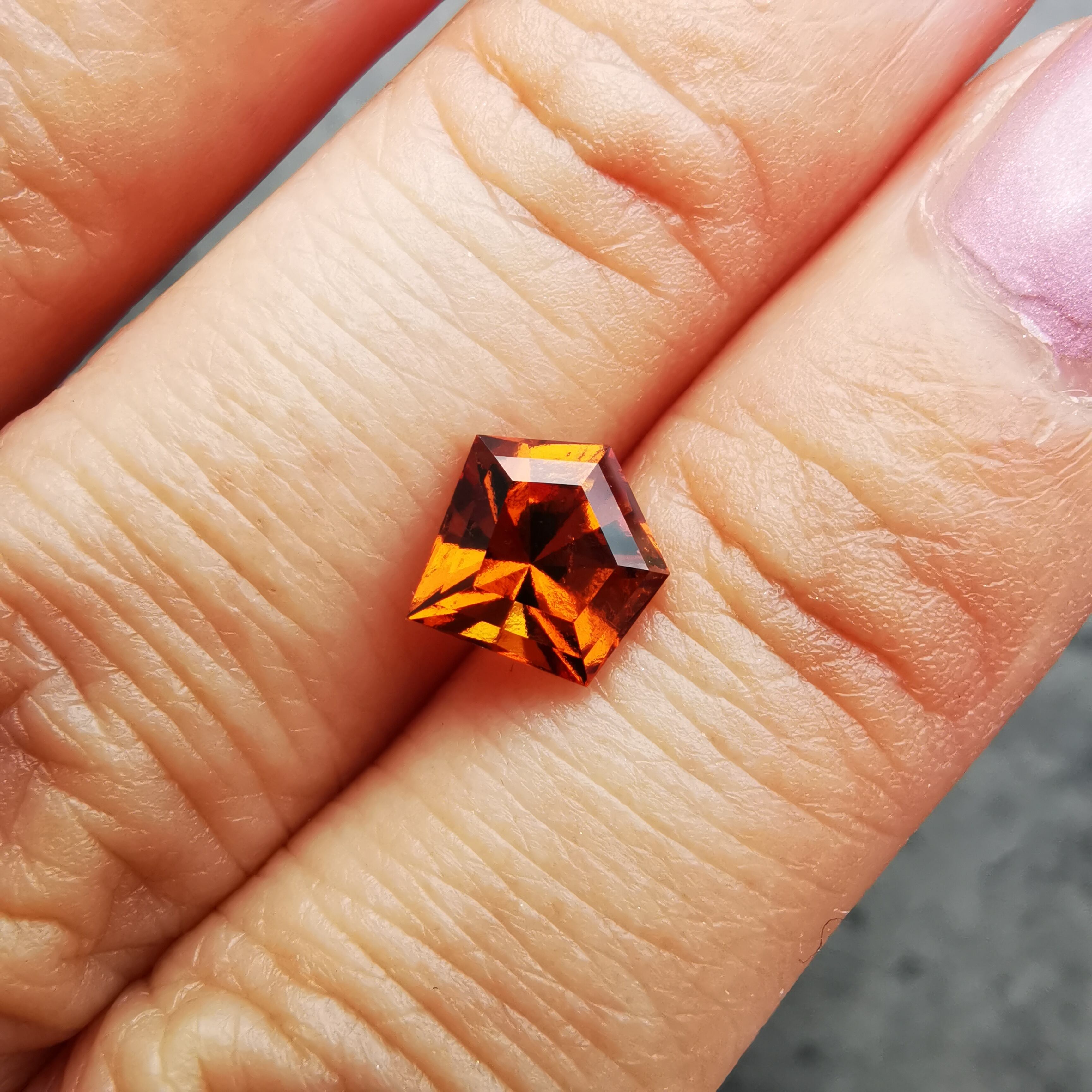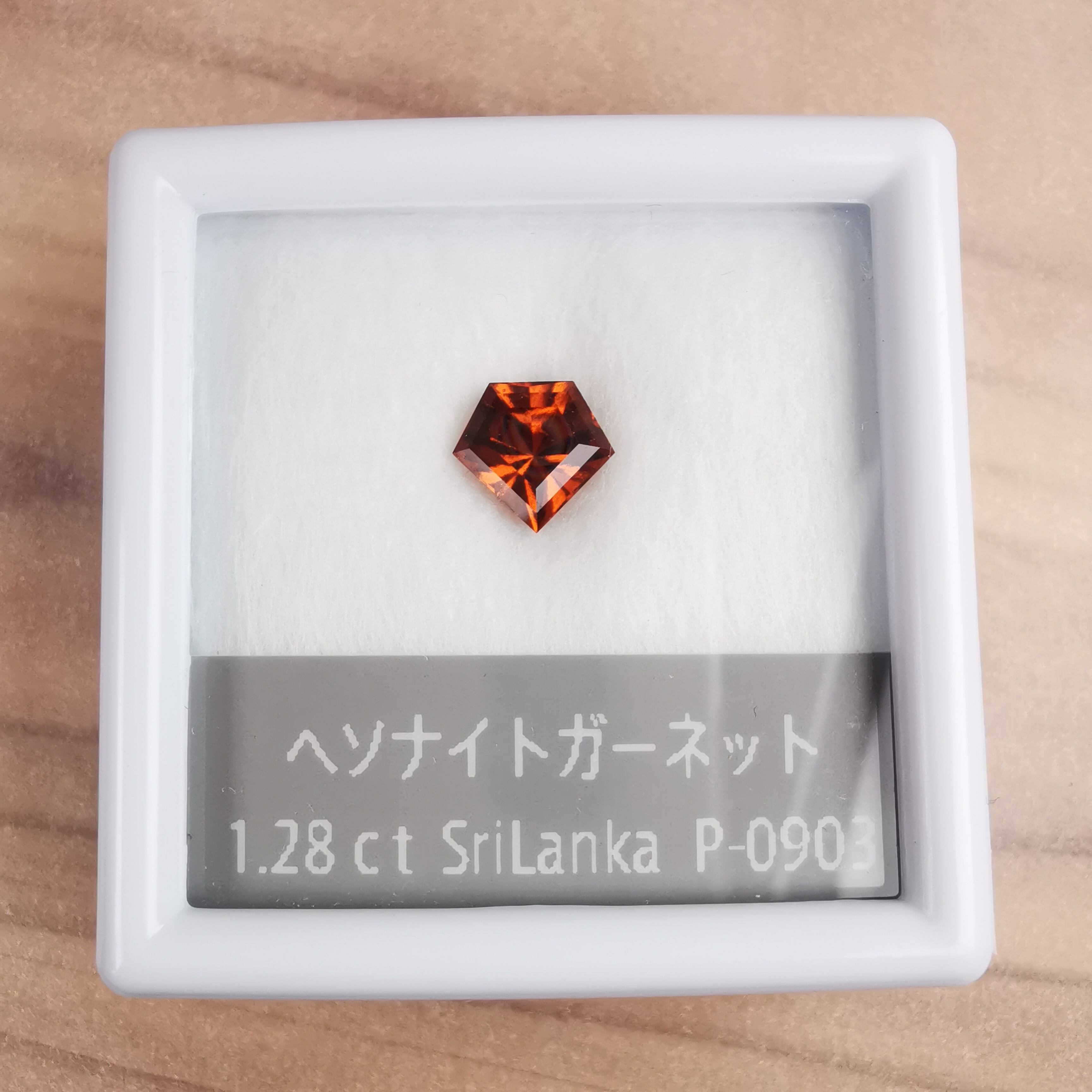 柿色や橙色、弁柄色まで、様々な秋色の燃えるようなグラデーションが美しいヘソナイトガーネットです。