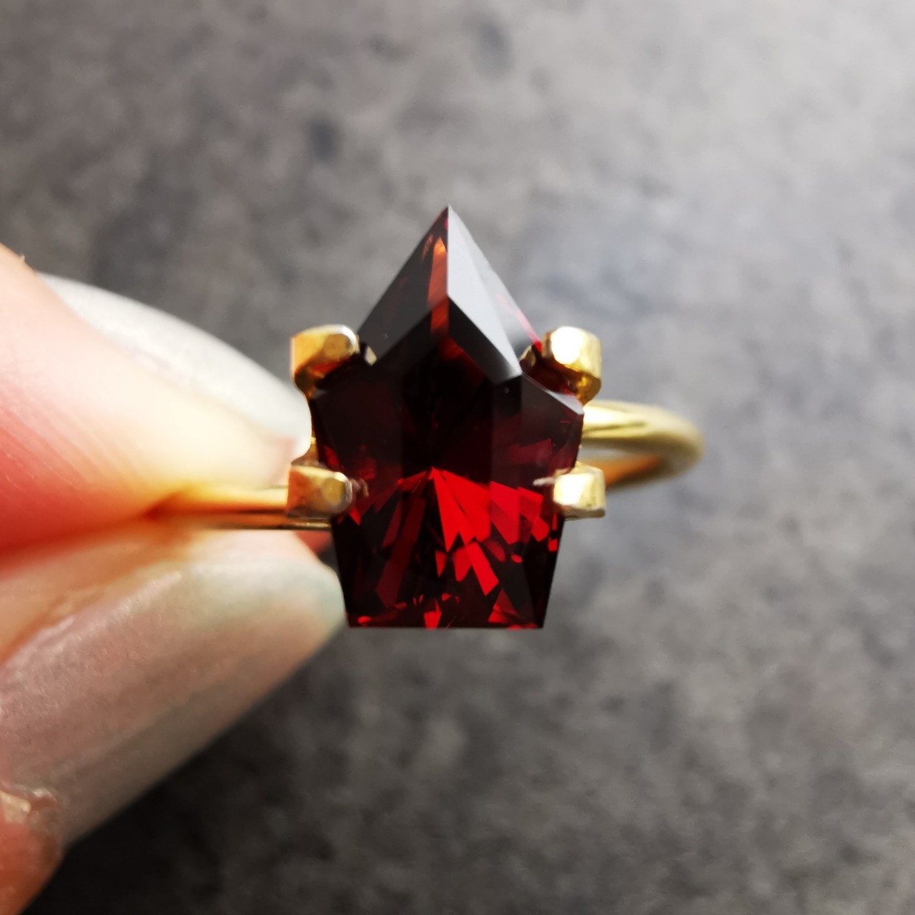 マラヤガーネットとして仕入れていますが、通常イメージするマラヤとは異なり、オレンジやピンクを感じない深い深い熾火のような赤です。