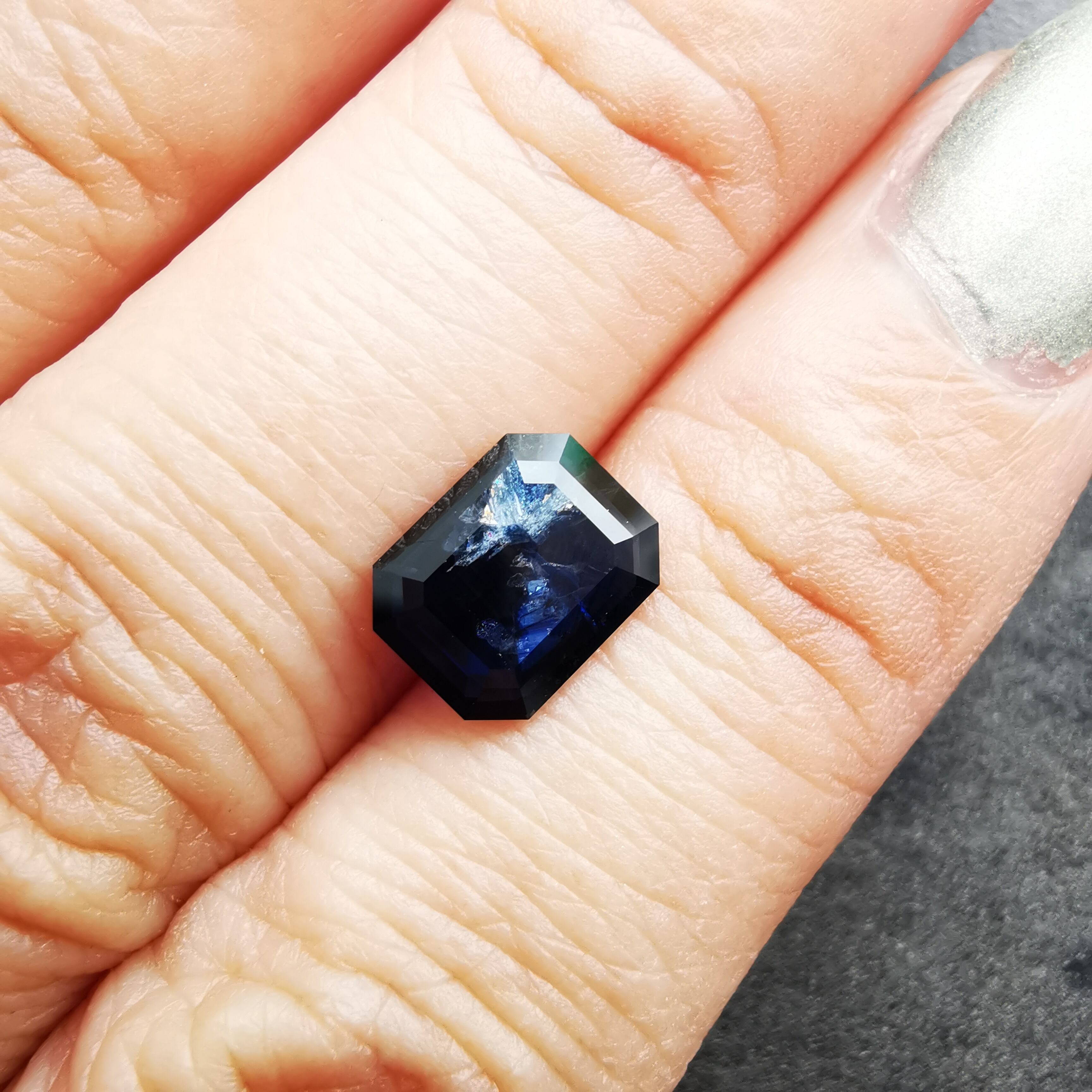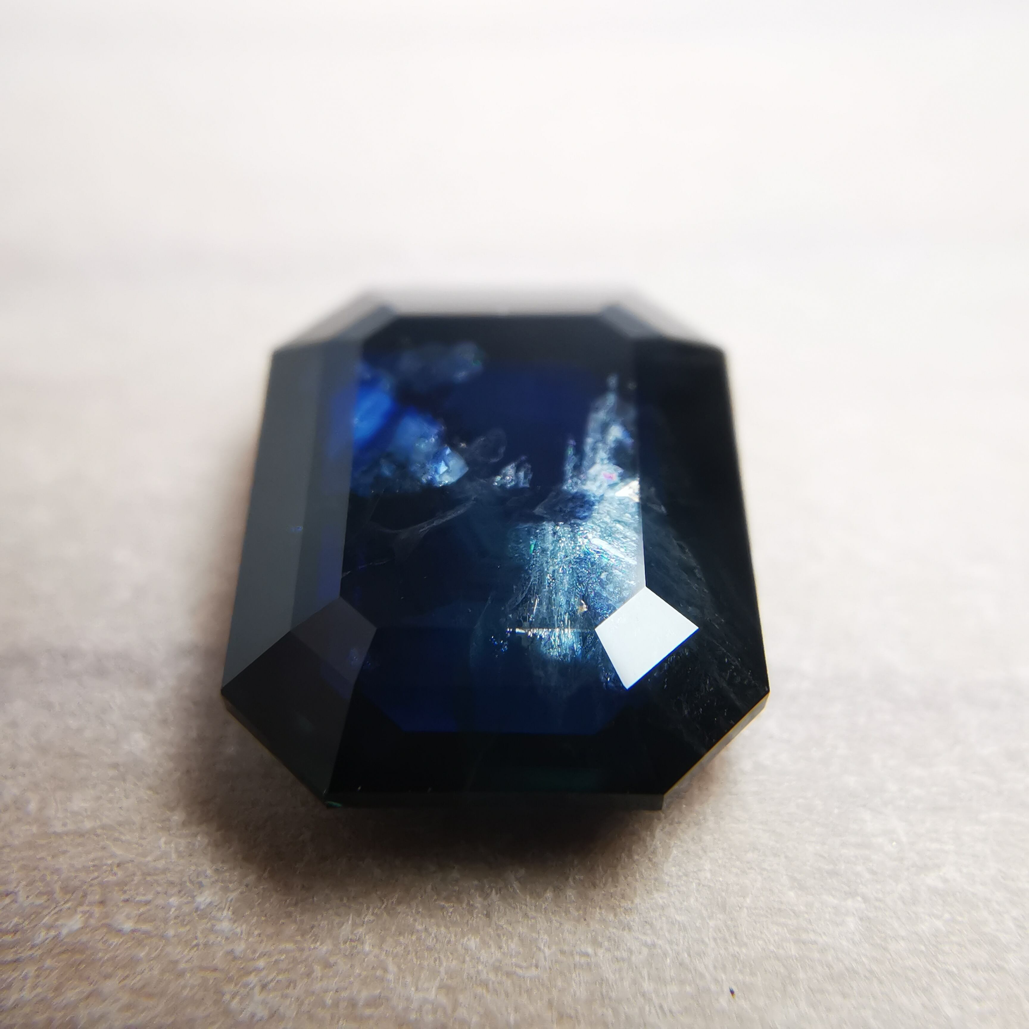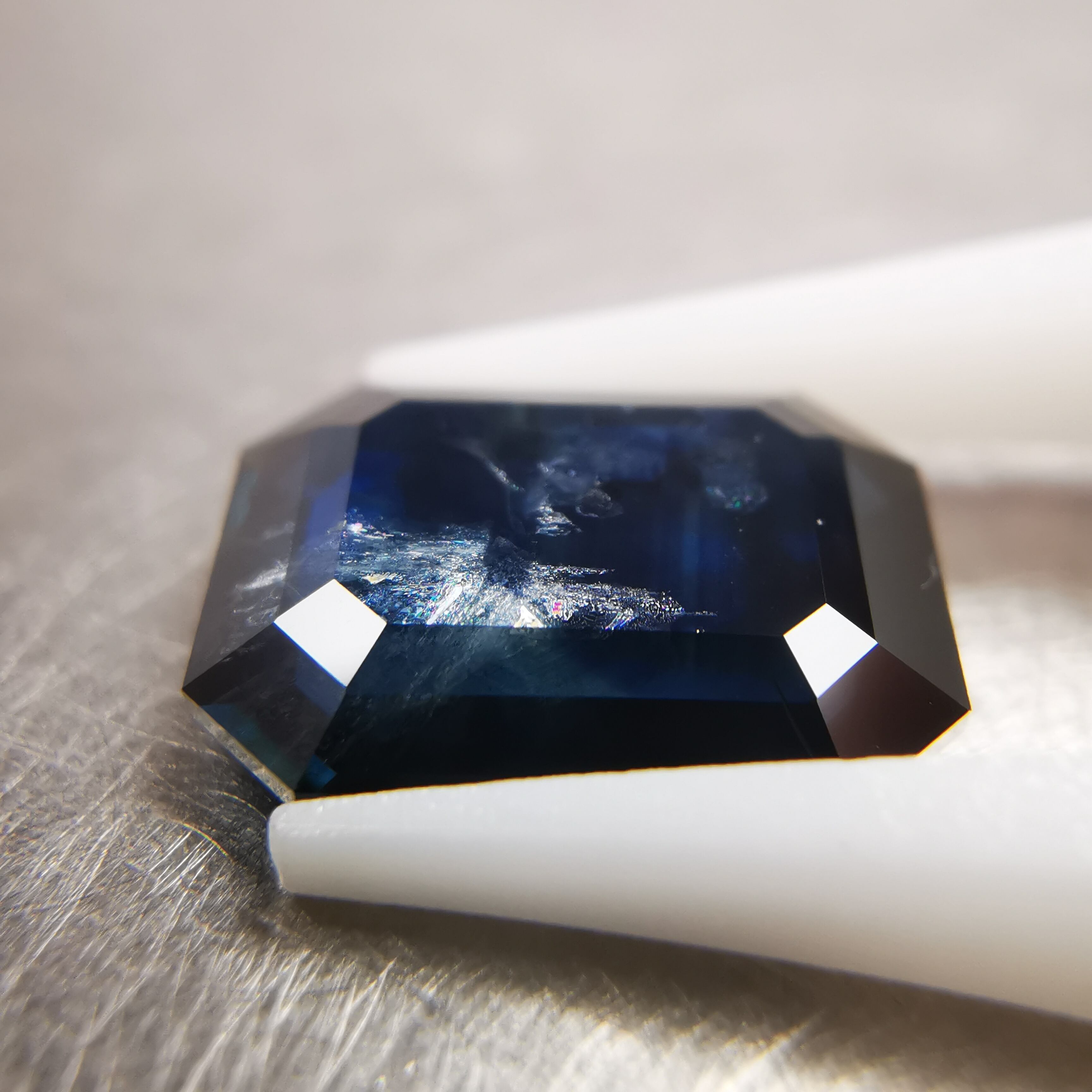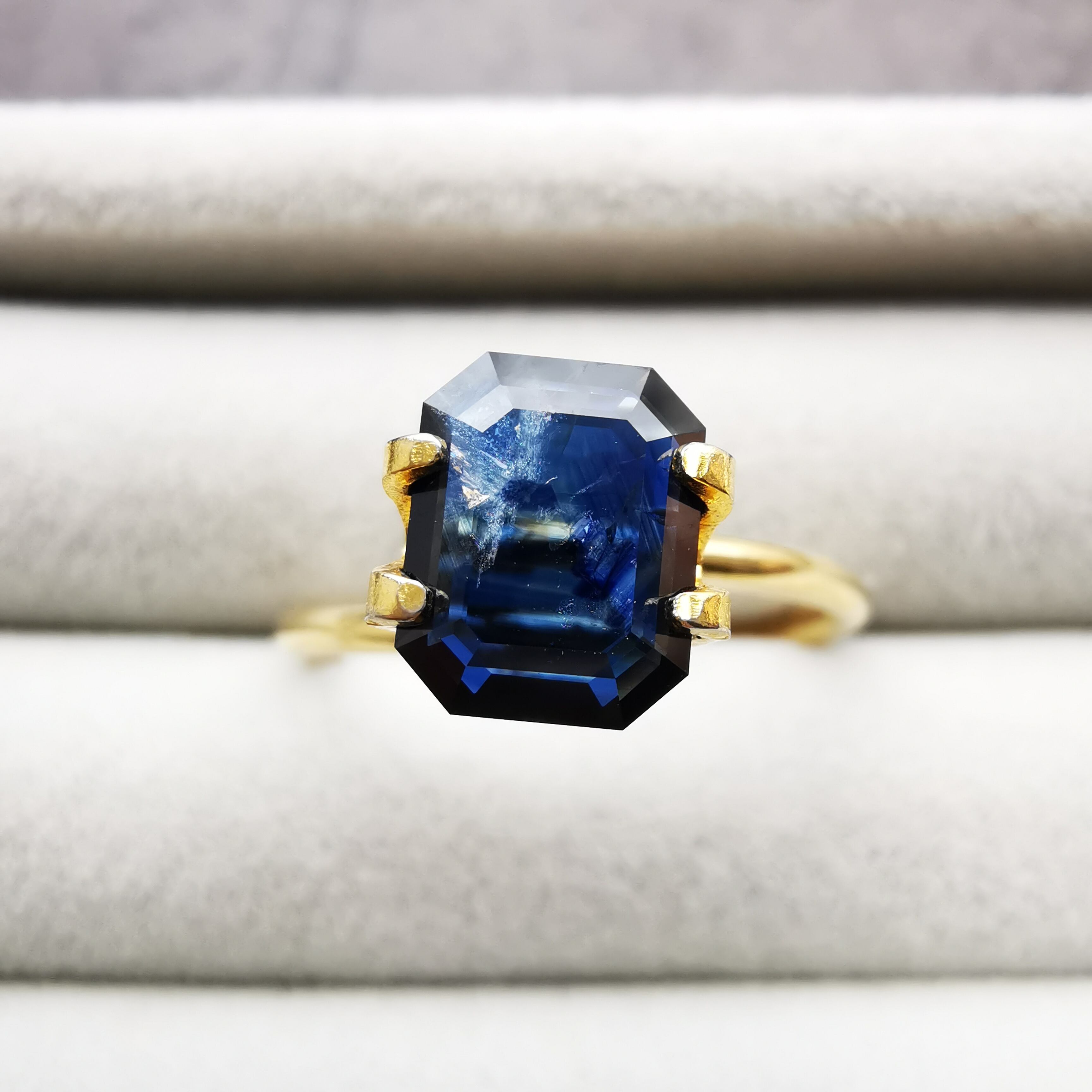 置いて見る時と、持って見る時で、印象がガラリと変わるサファイアです。