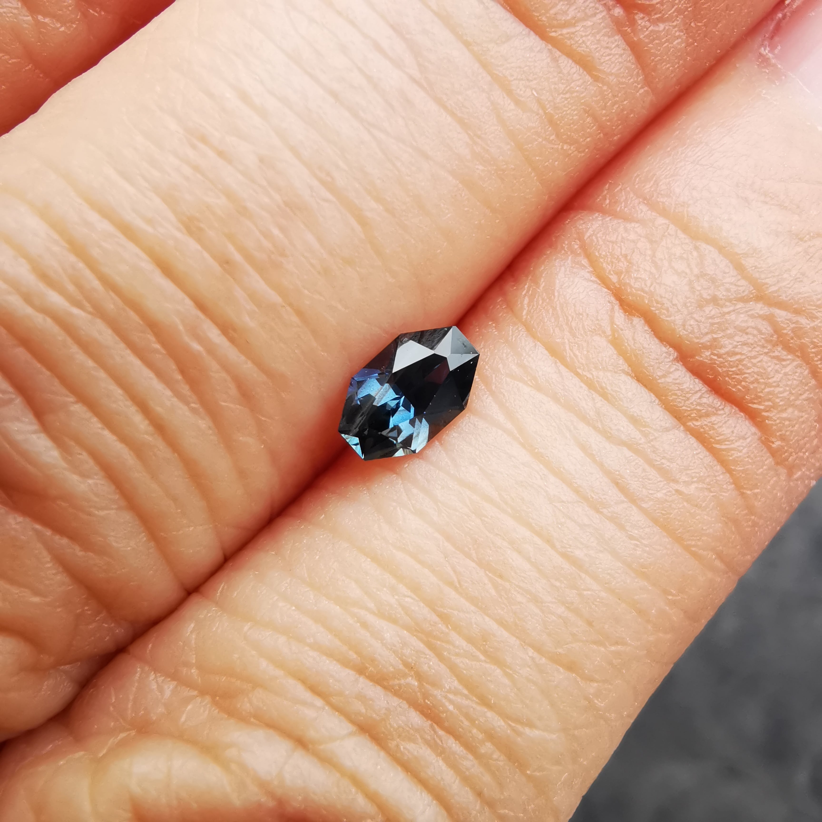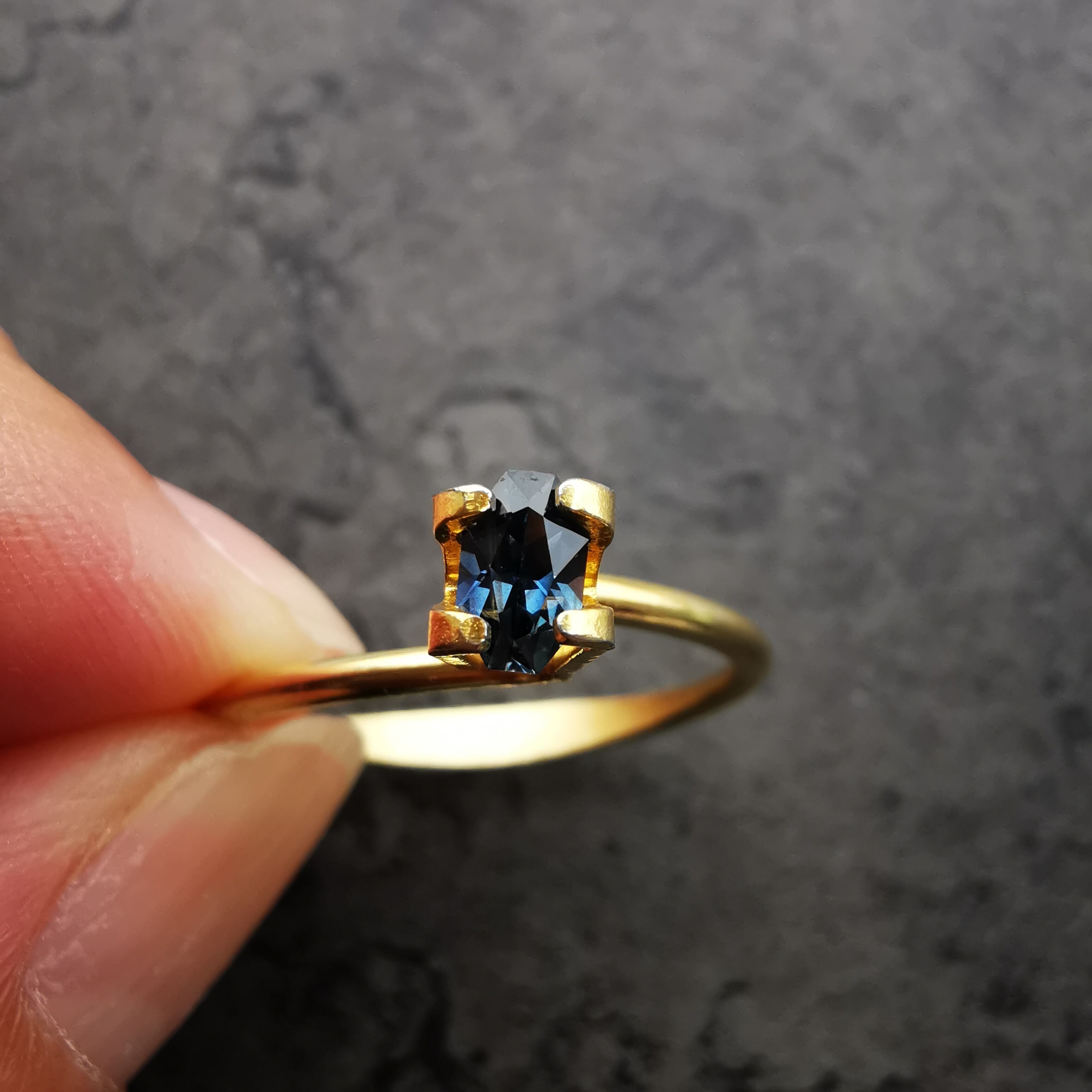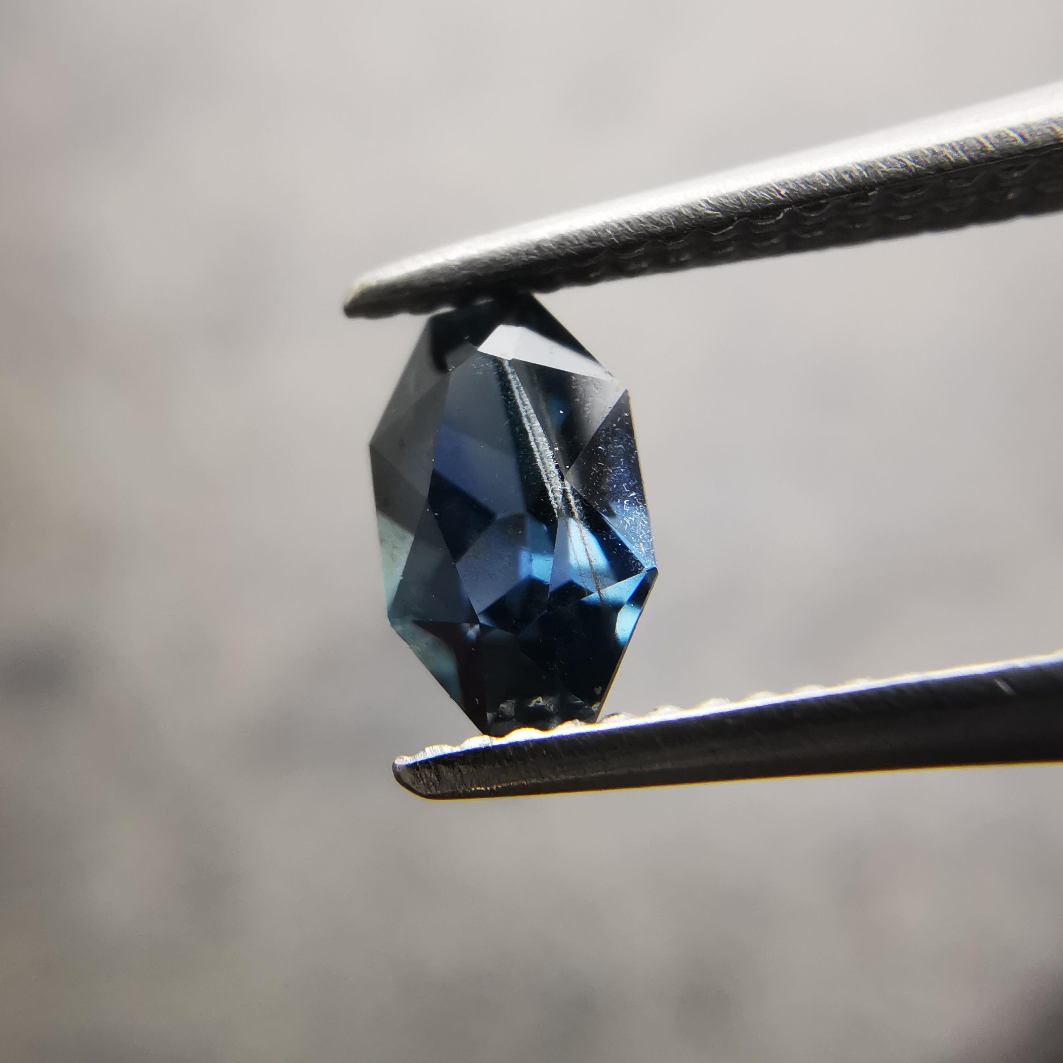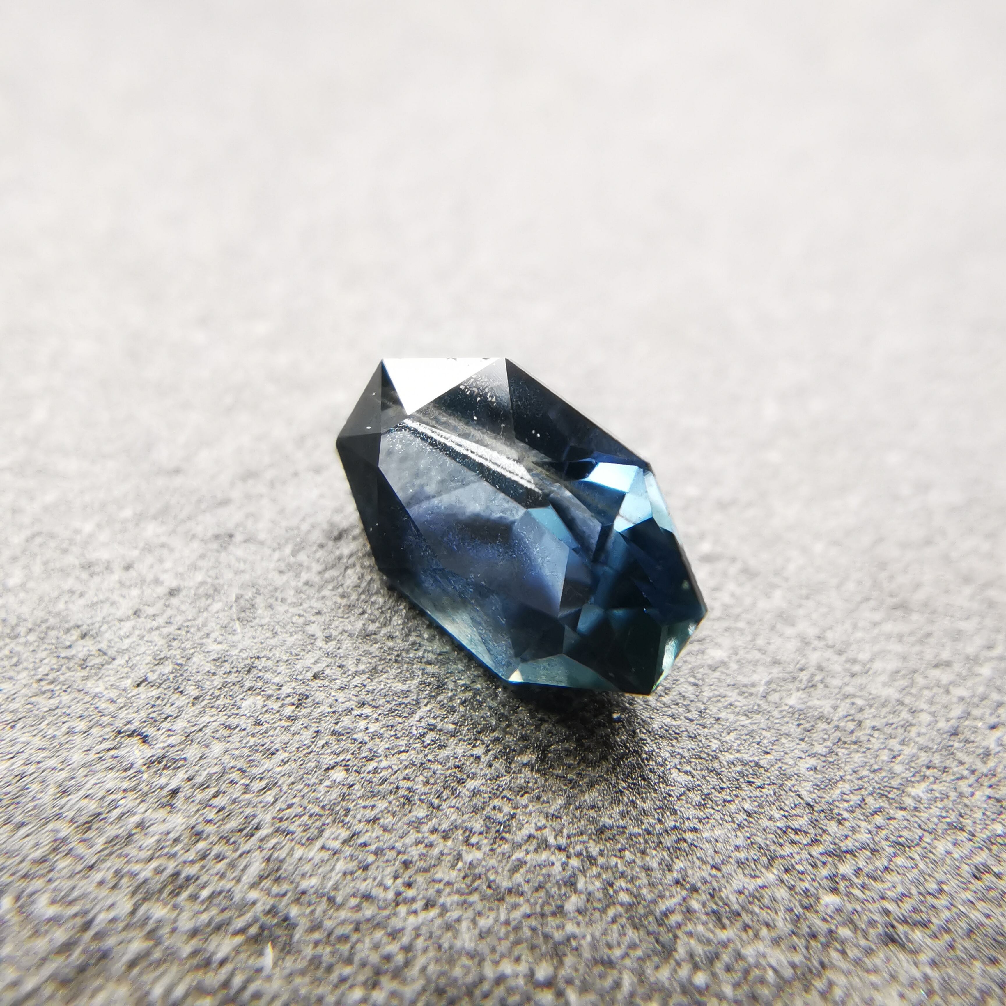 暗く深いブルーグリーンから、ハッとするようなスカイブルーがきらめくサファイアです。