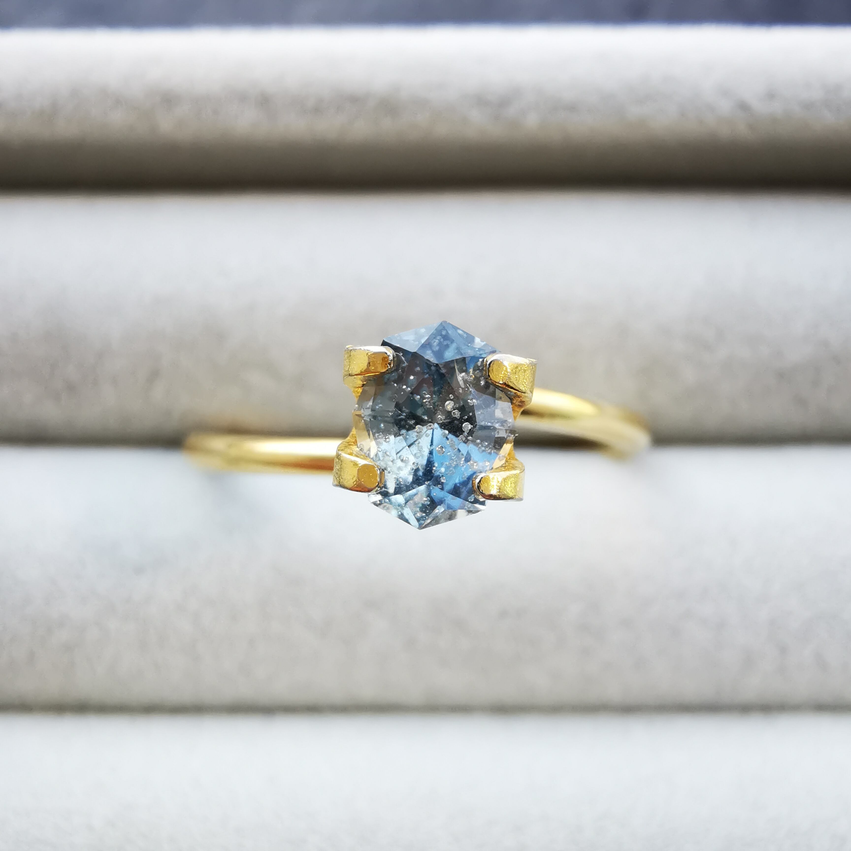 肉眼ではシュワシュワとした印象、ルーペで見ると泡のような内包物の一粒一粒を捉えることが出来ます。