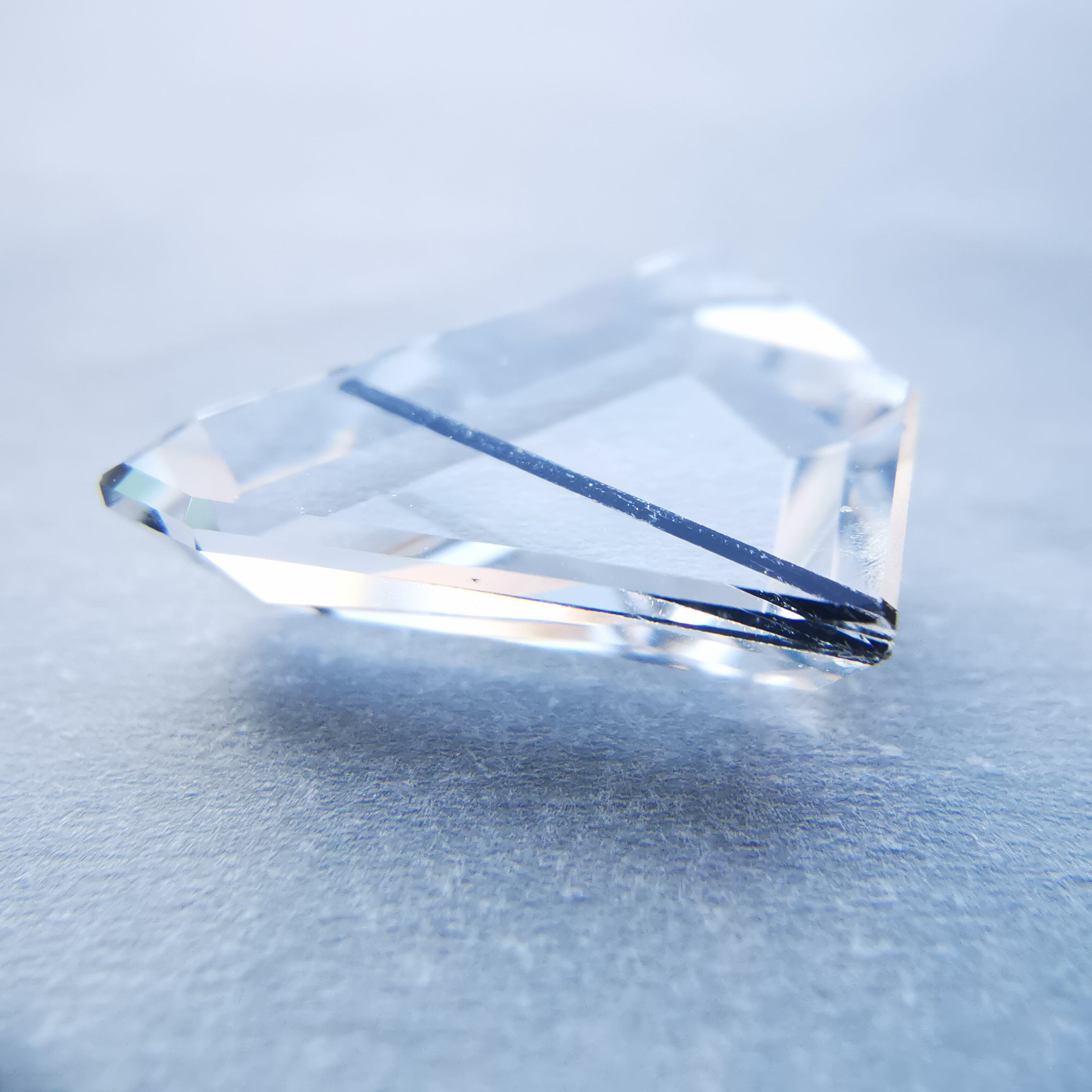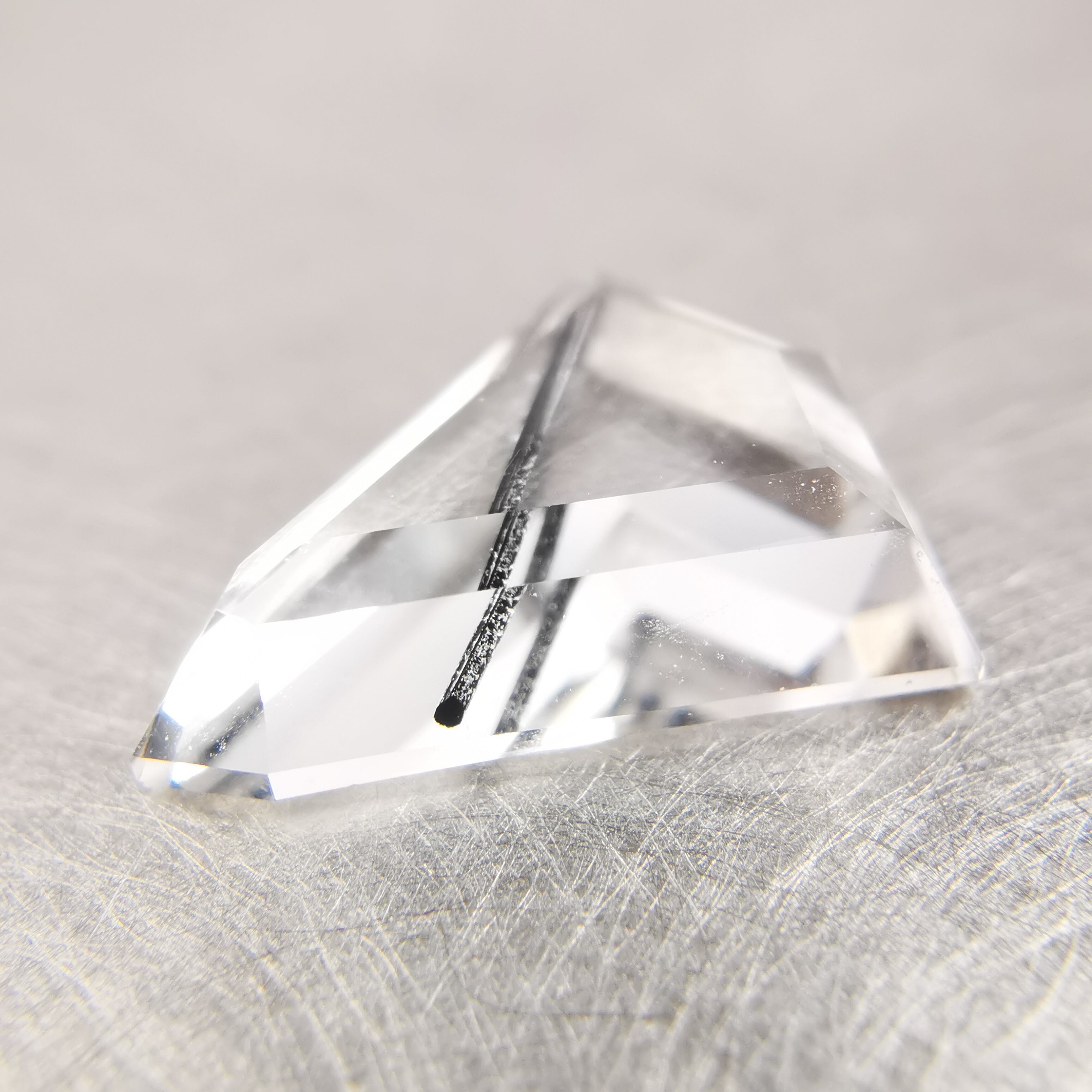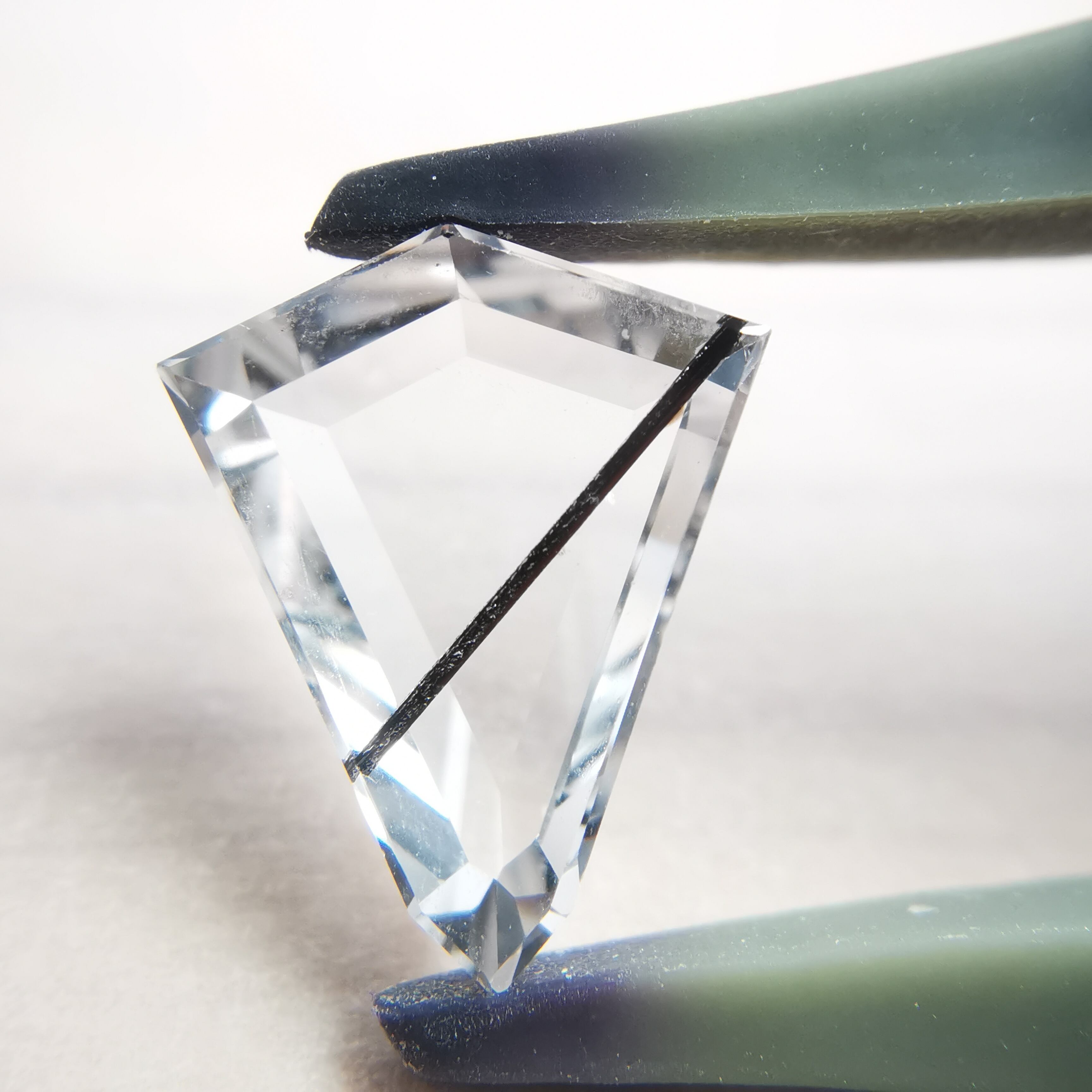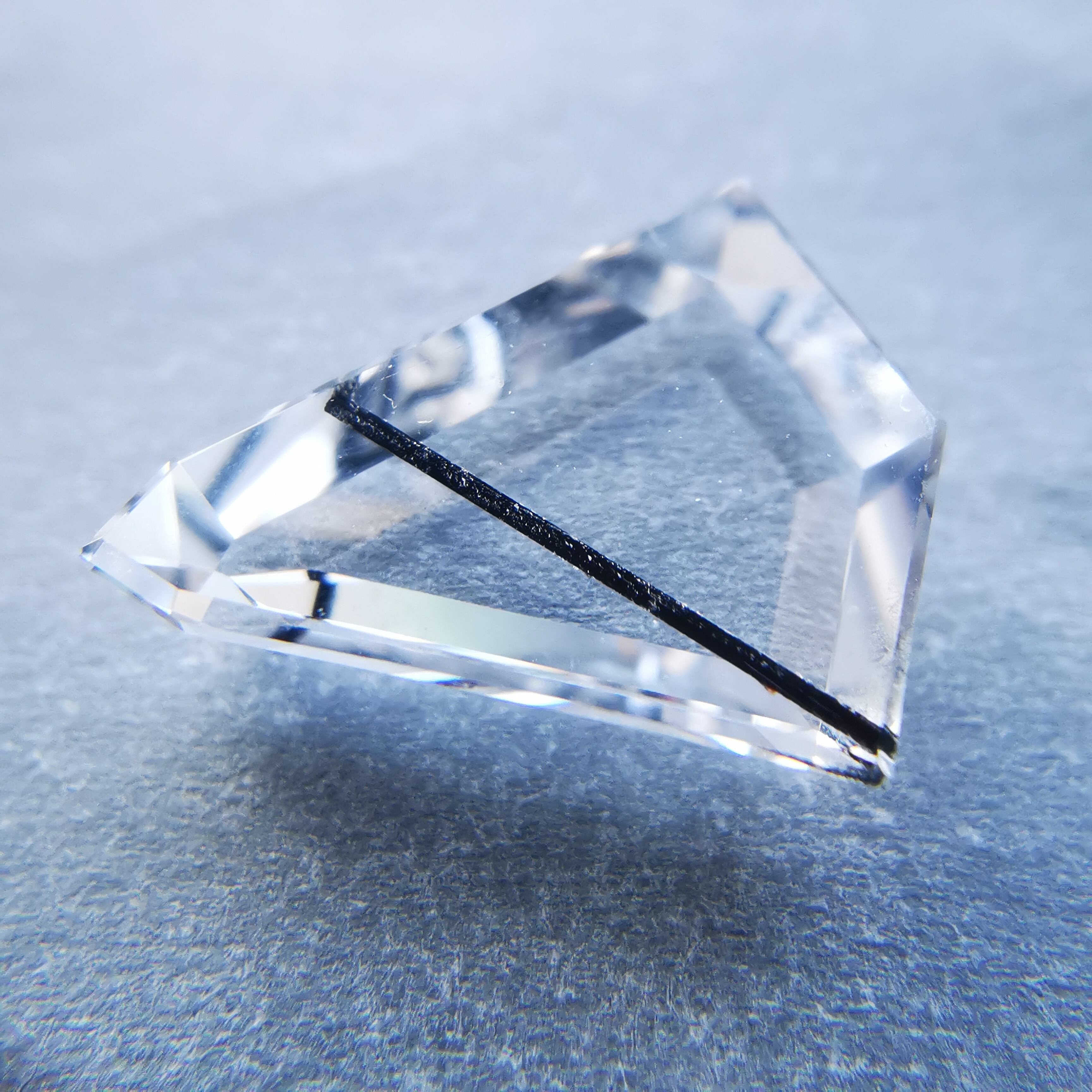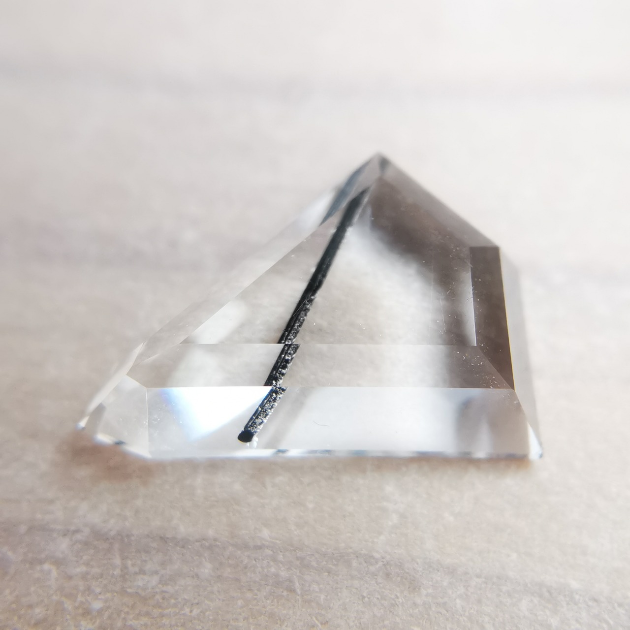 クリーンで無色のクォーツの中を、ブラックトルマリンが1本ズバッと横切ります。