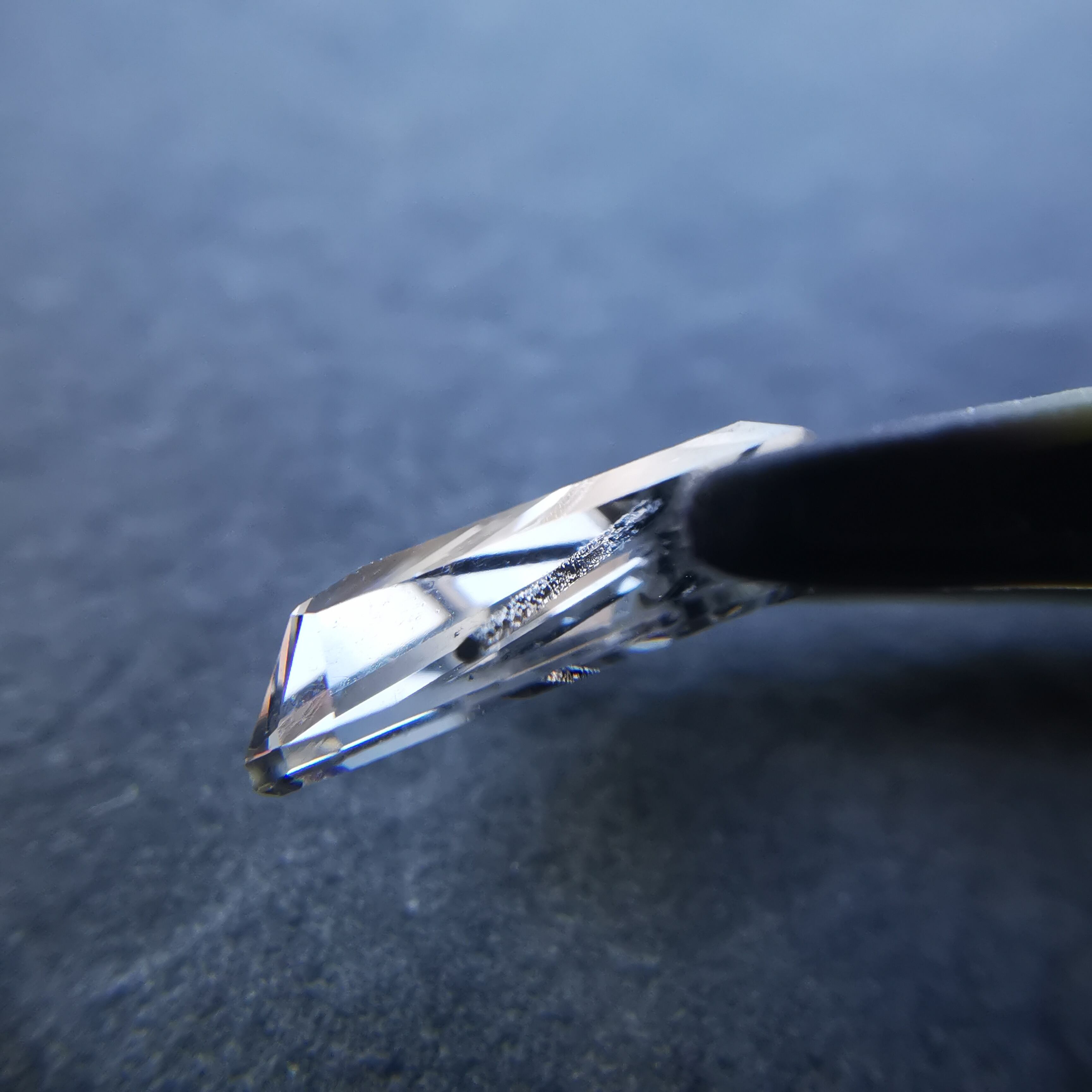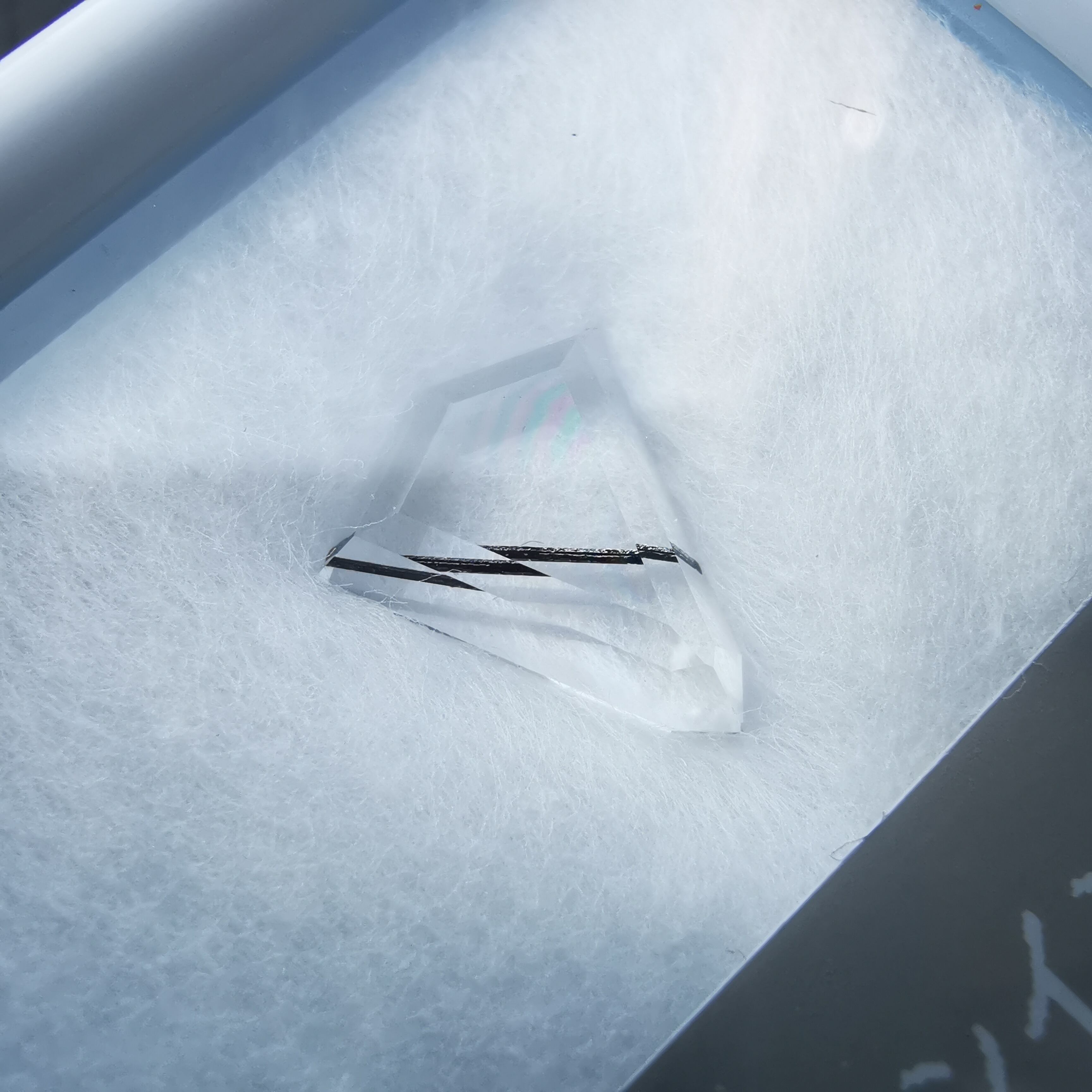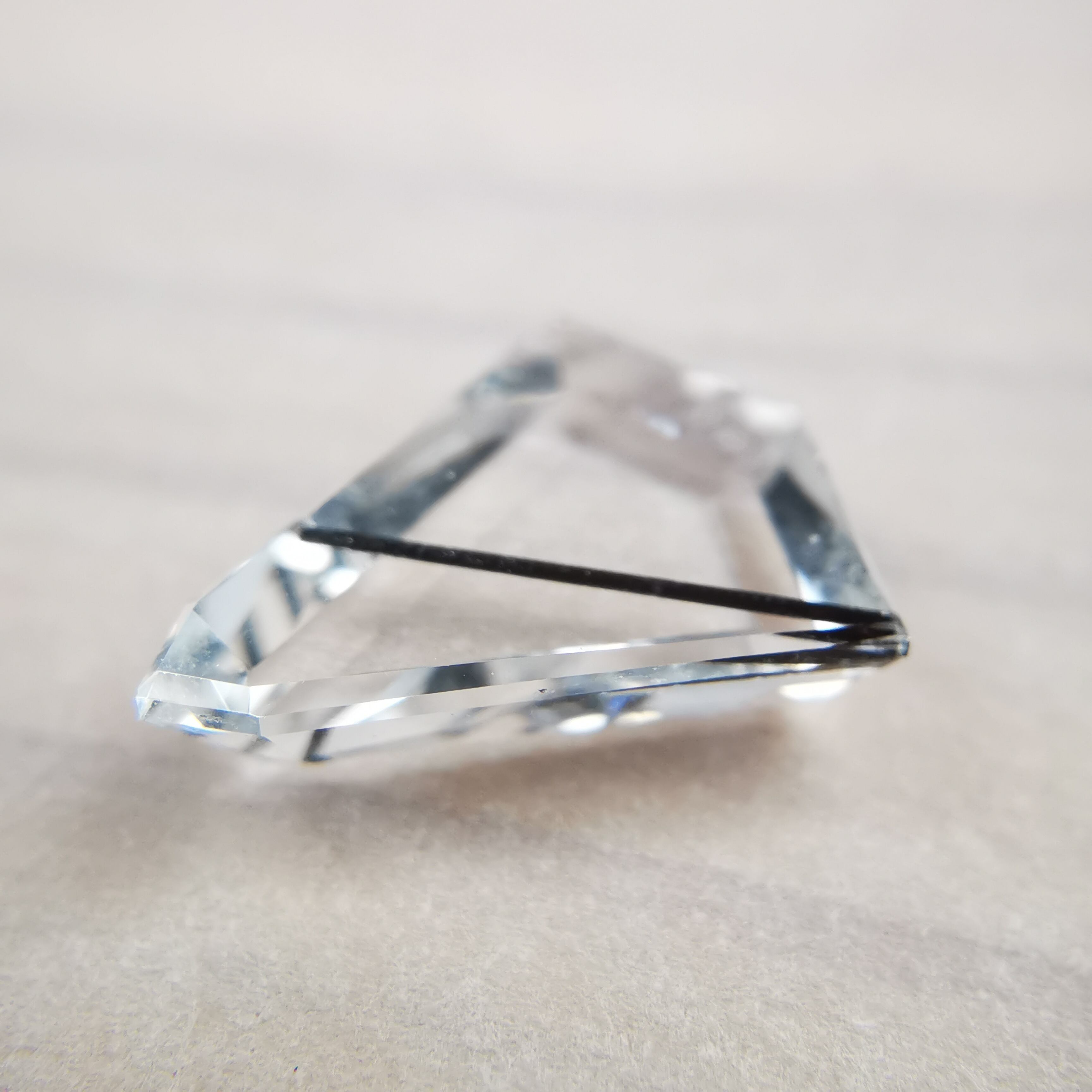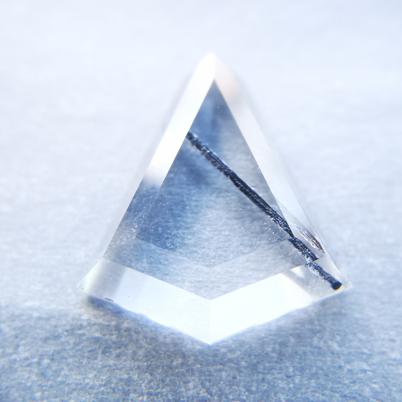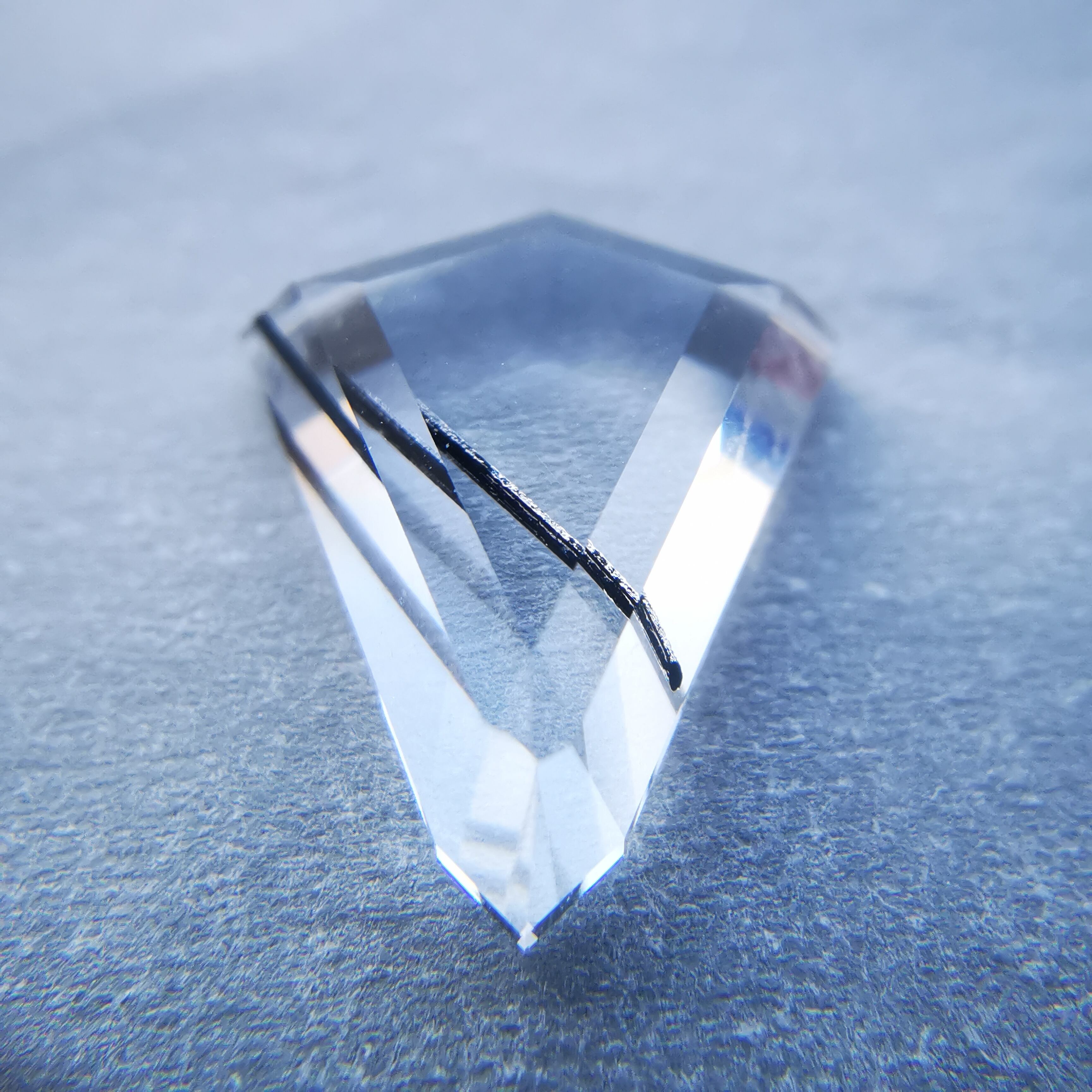 クリーンで無色のクォーツの中を、ブラックトルマリンが1本ズバッと横切ります。