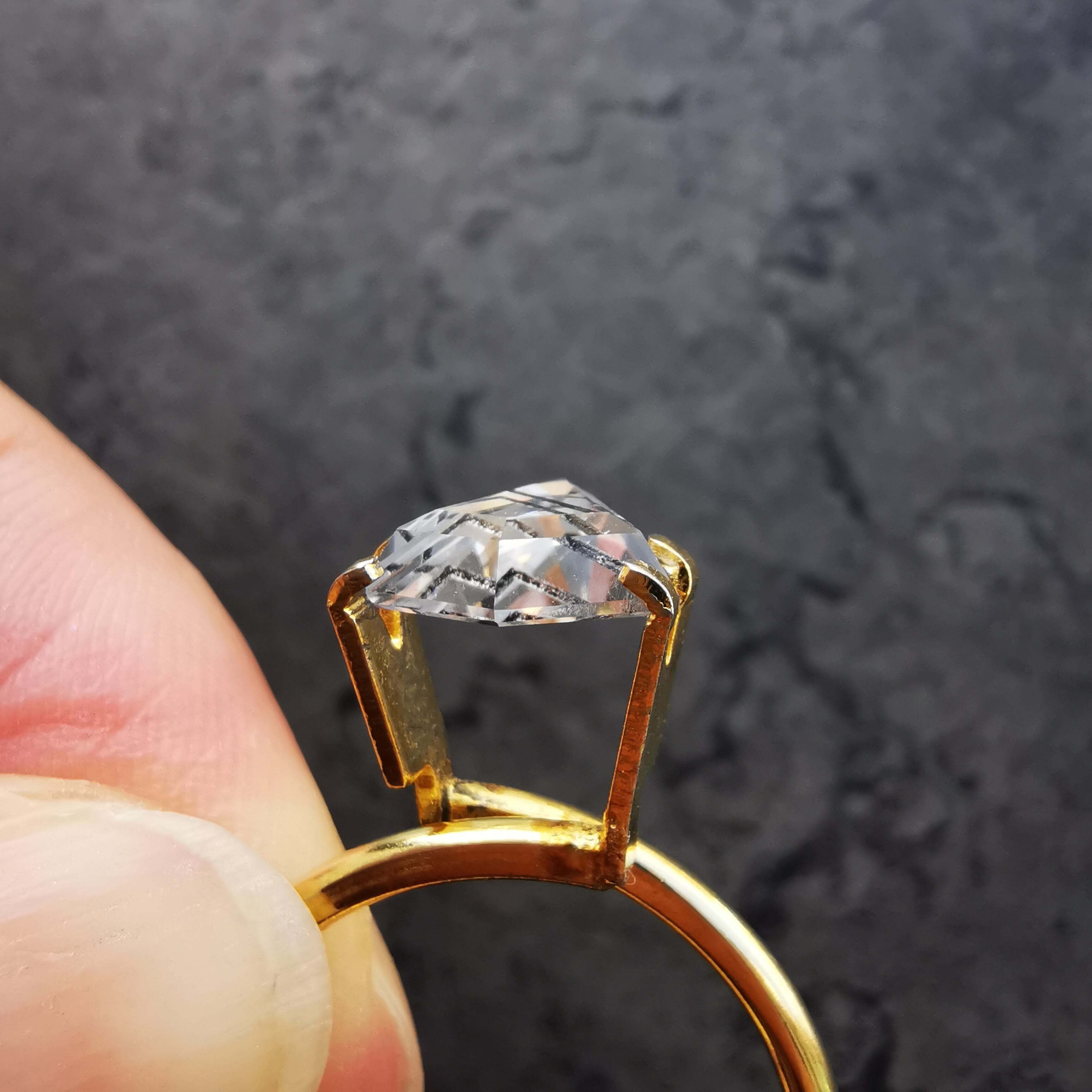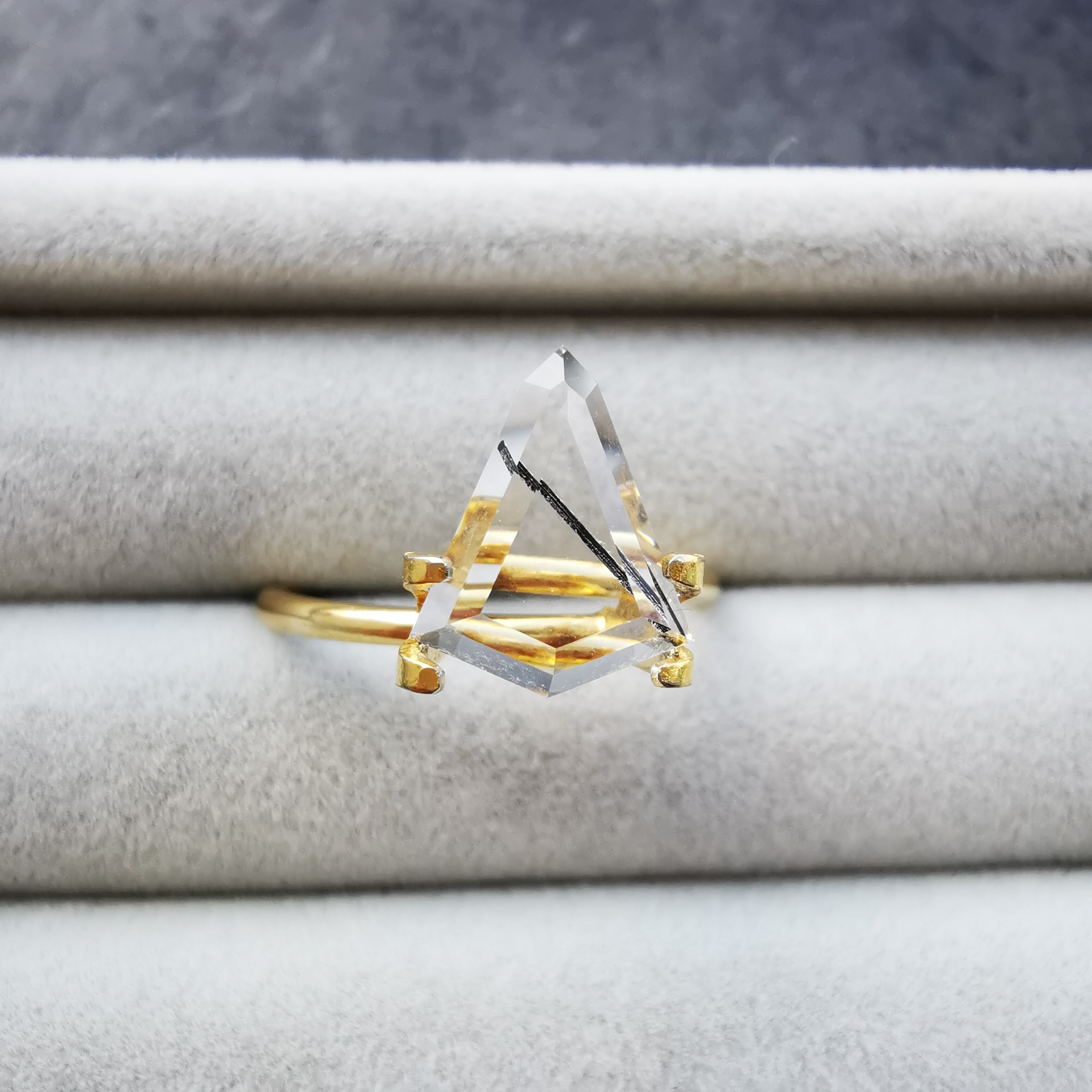 フラットバックのシールドカットで、潔くクールな一石に仕上がりました。