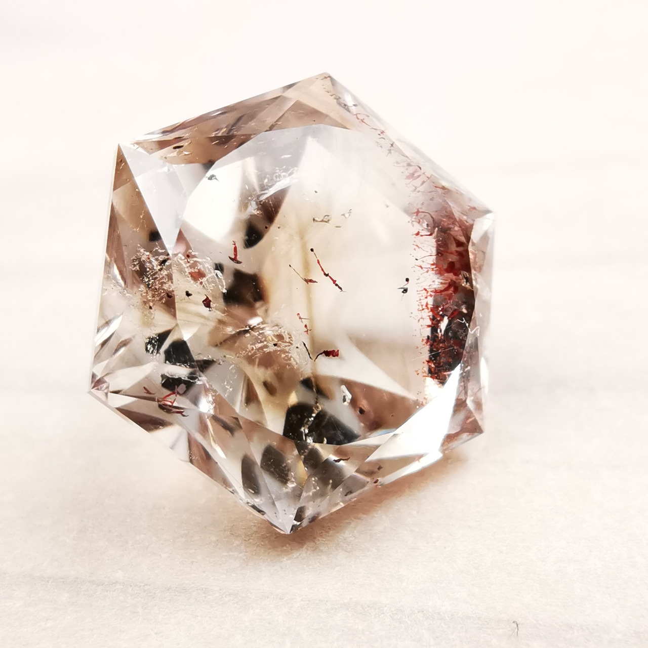 新産地から産出のアメジストの原石から切り出したうちの一石ですが、紫が残らなかったので、クォーツとしての出品いたします。