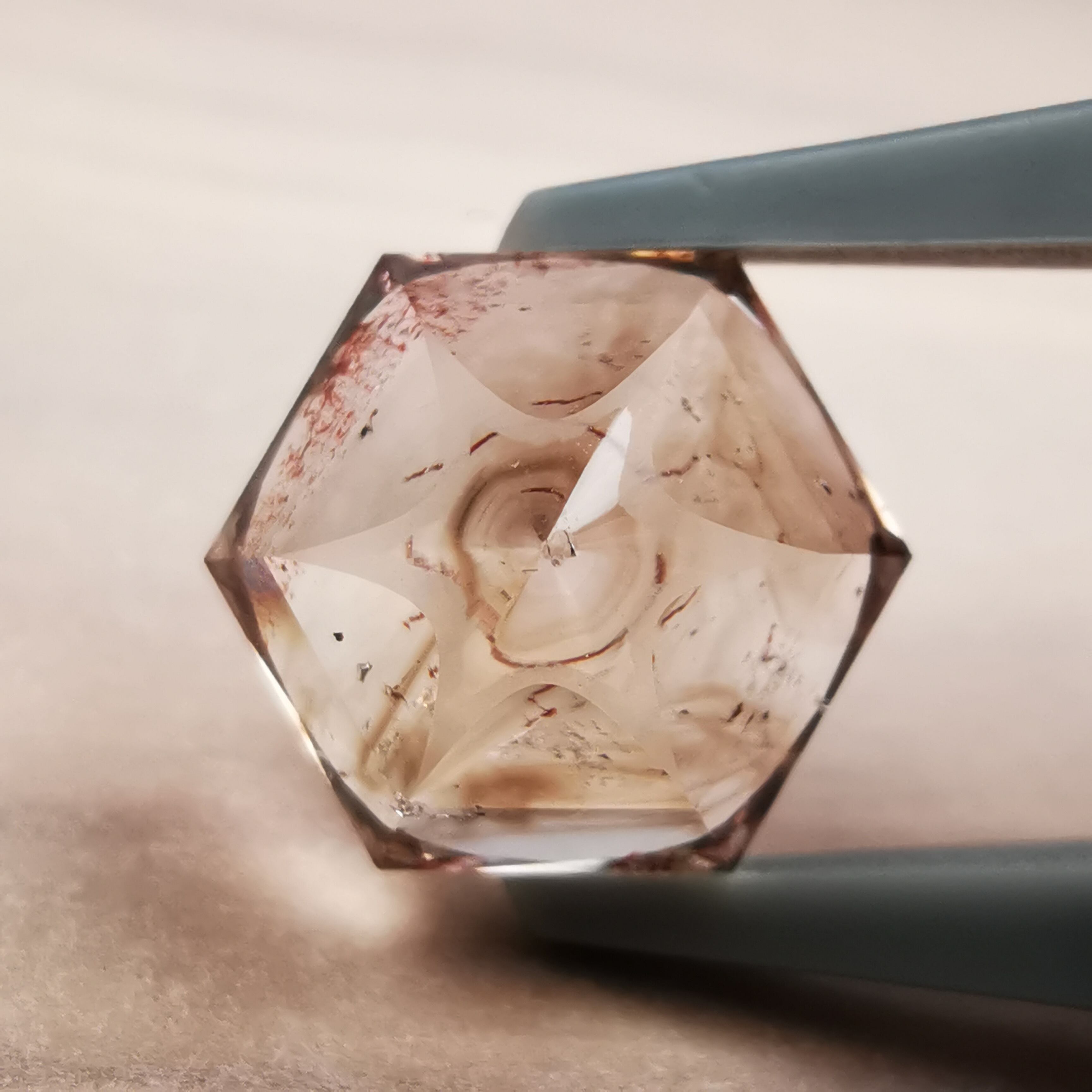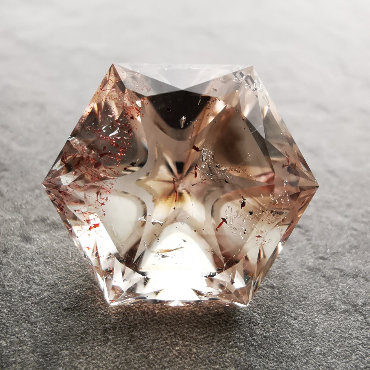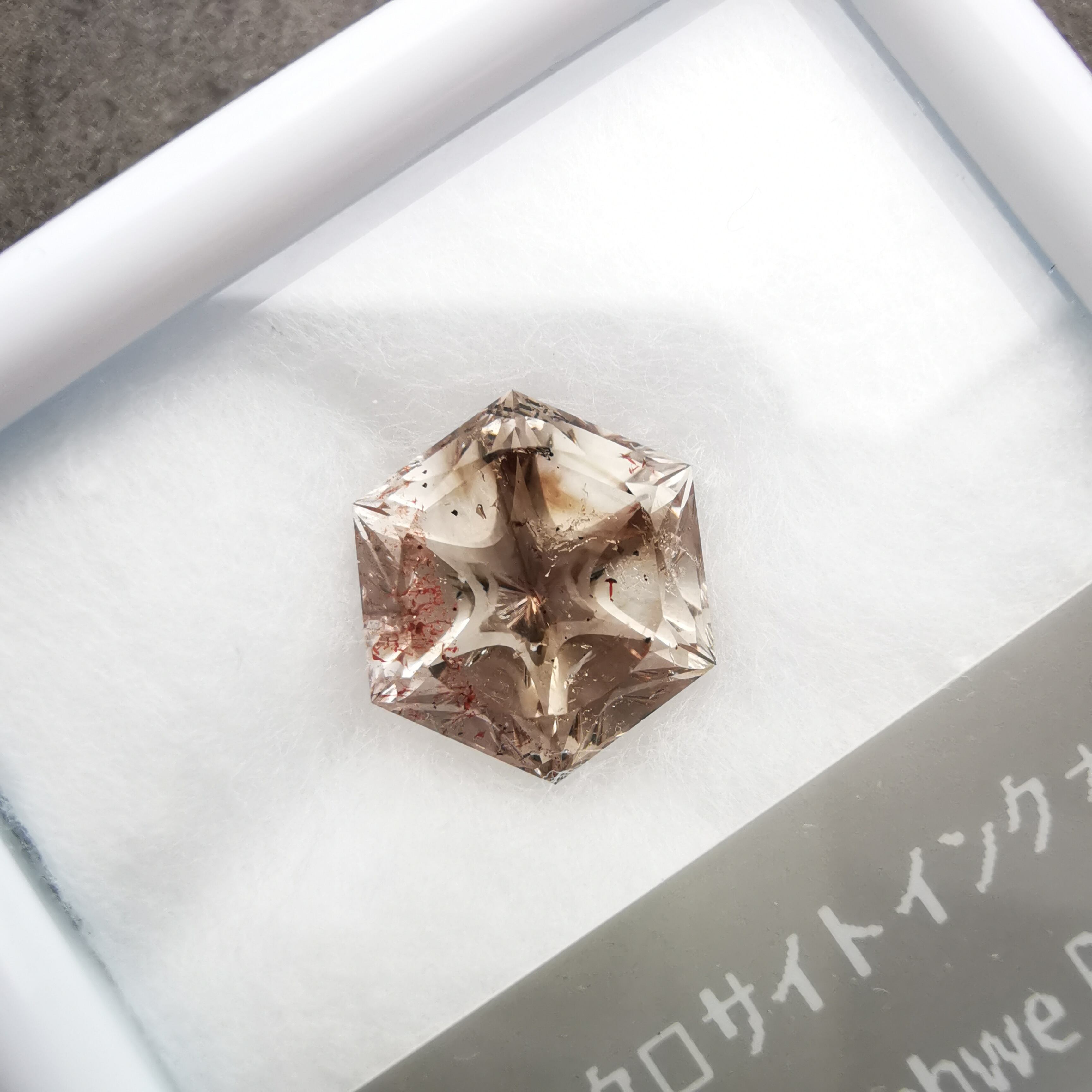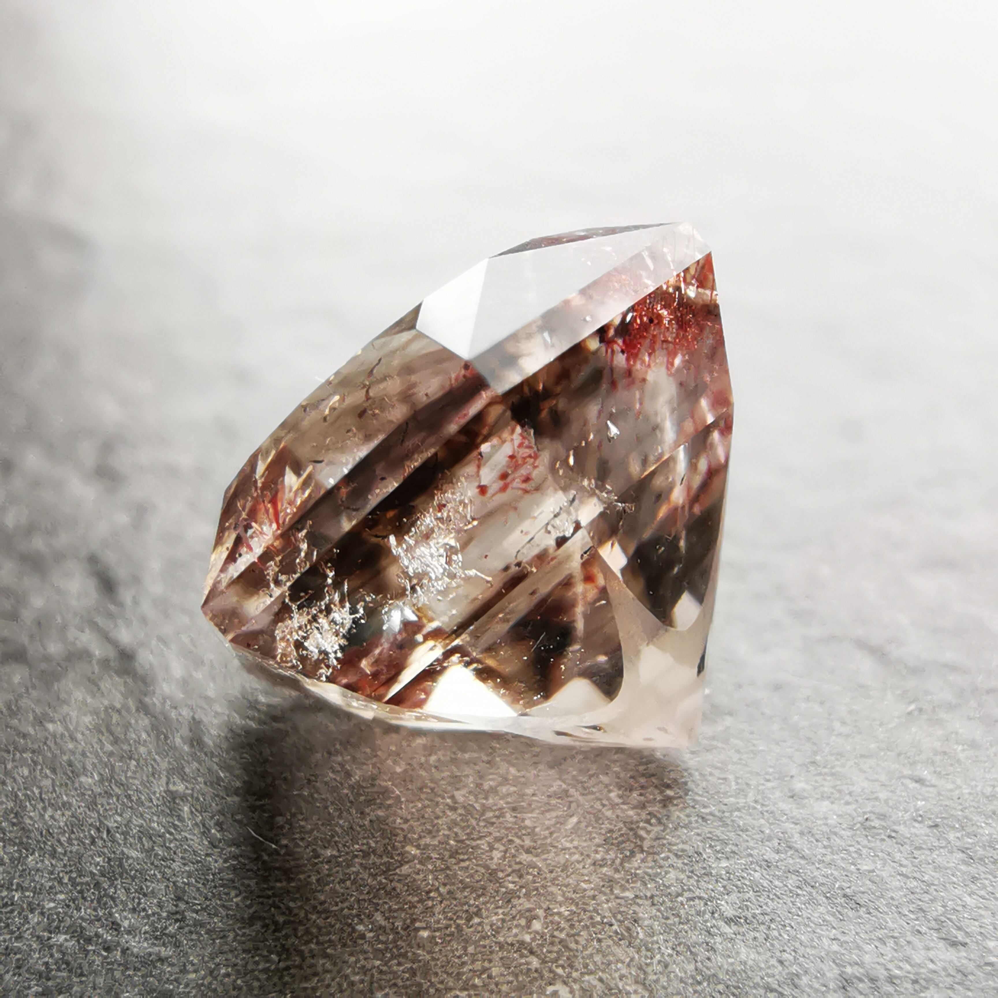 インクルージョンの色の影響もあり、何色と表現するのが難しいのですが、あえて言うならごくごく淡いシャンパンカラーです。