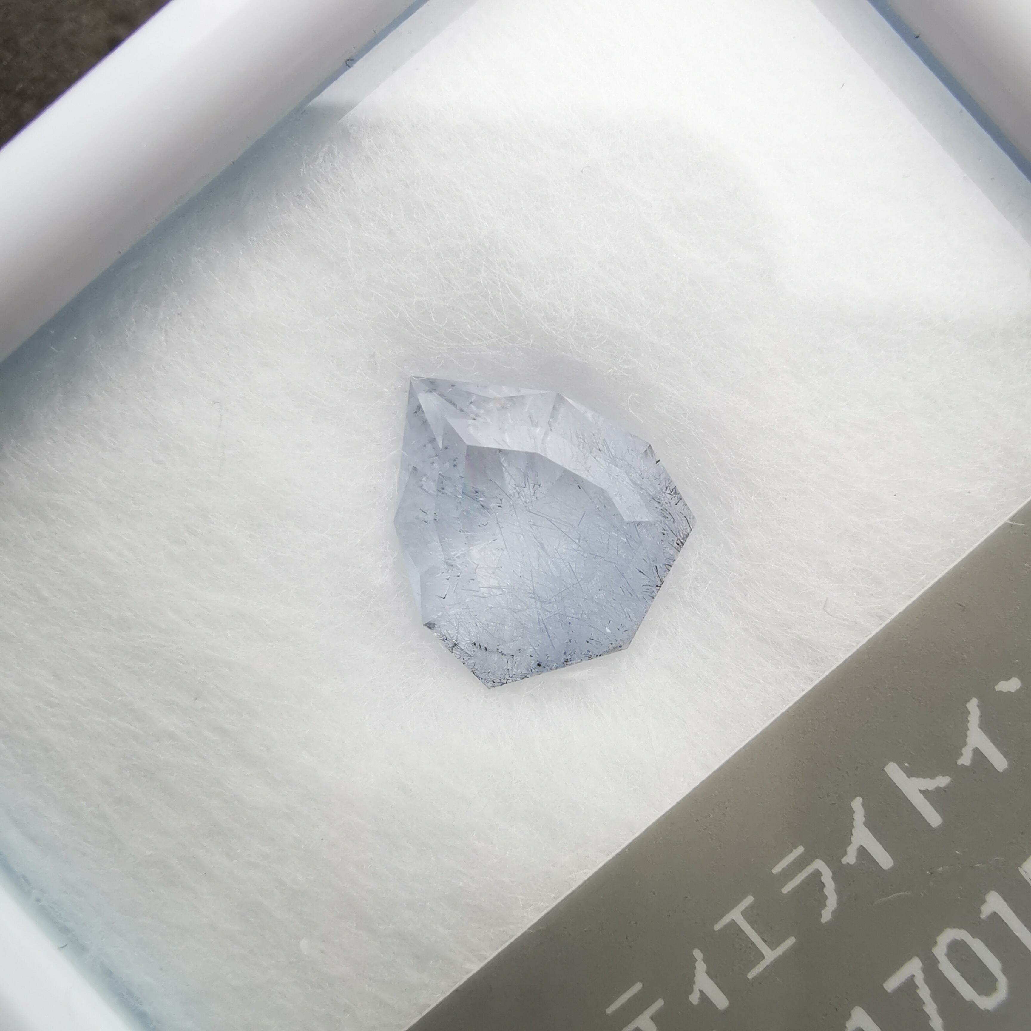 ホワイト~ブルーの結晶以外に、肉眼で見える黒っぽい内包物あり