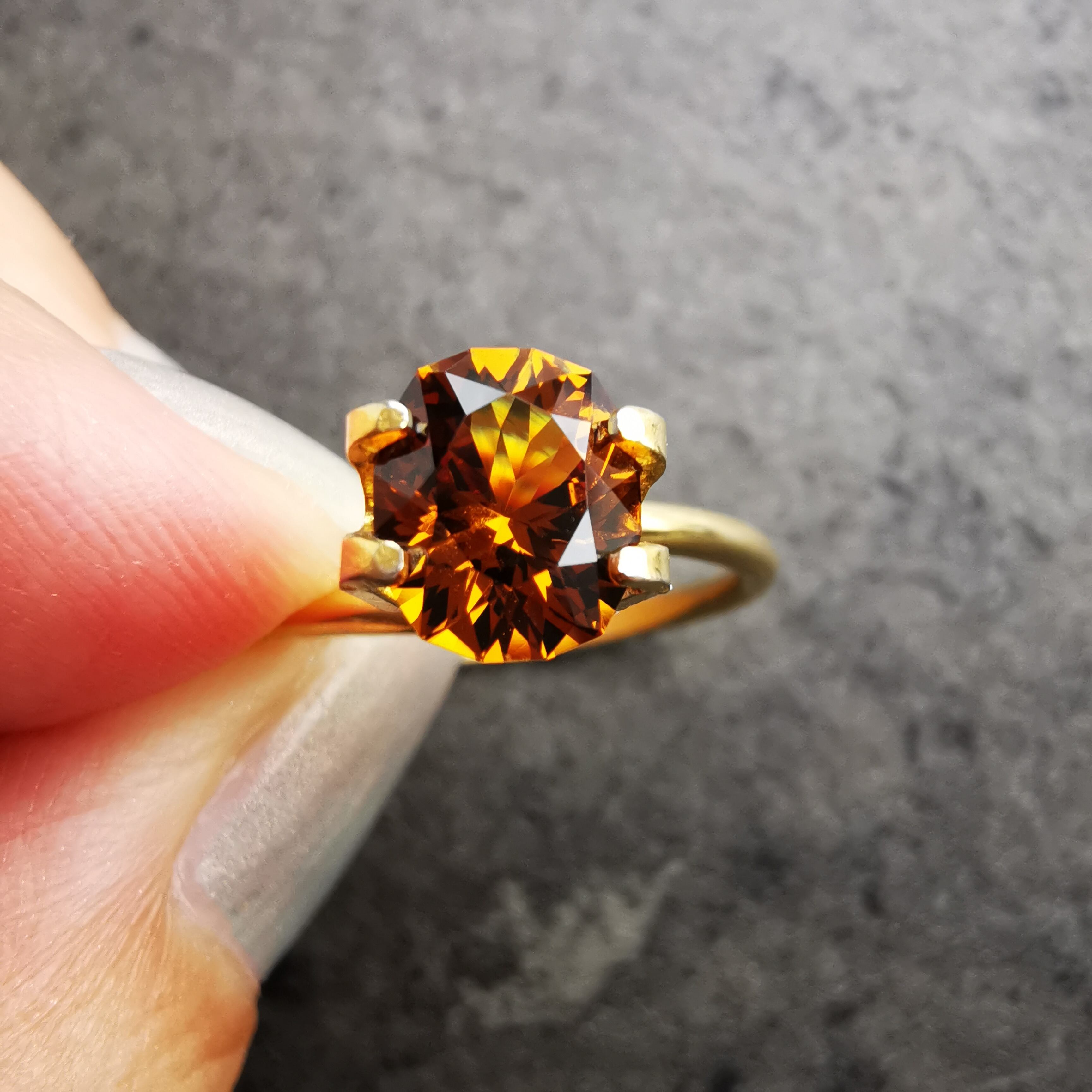単屈折のガーネットは、複屈折のジルコン等に比べると、スッキリ、きっぱりとした輝き方が魅力です。