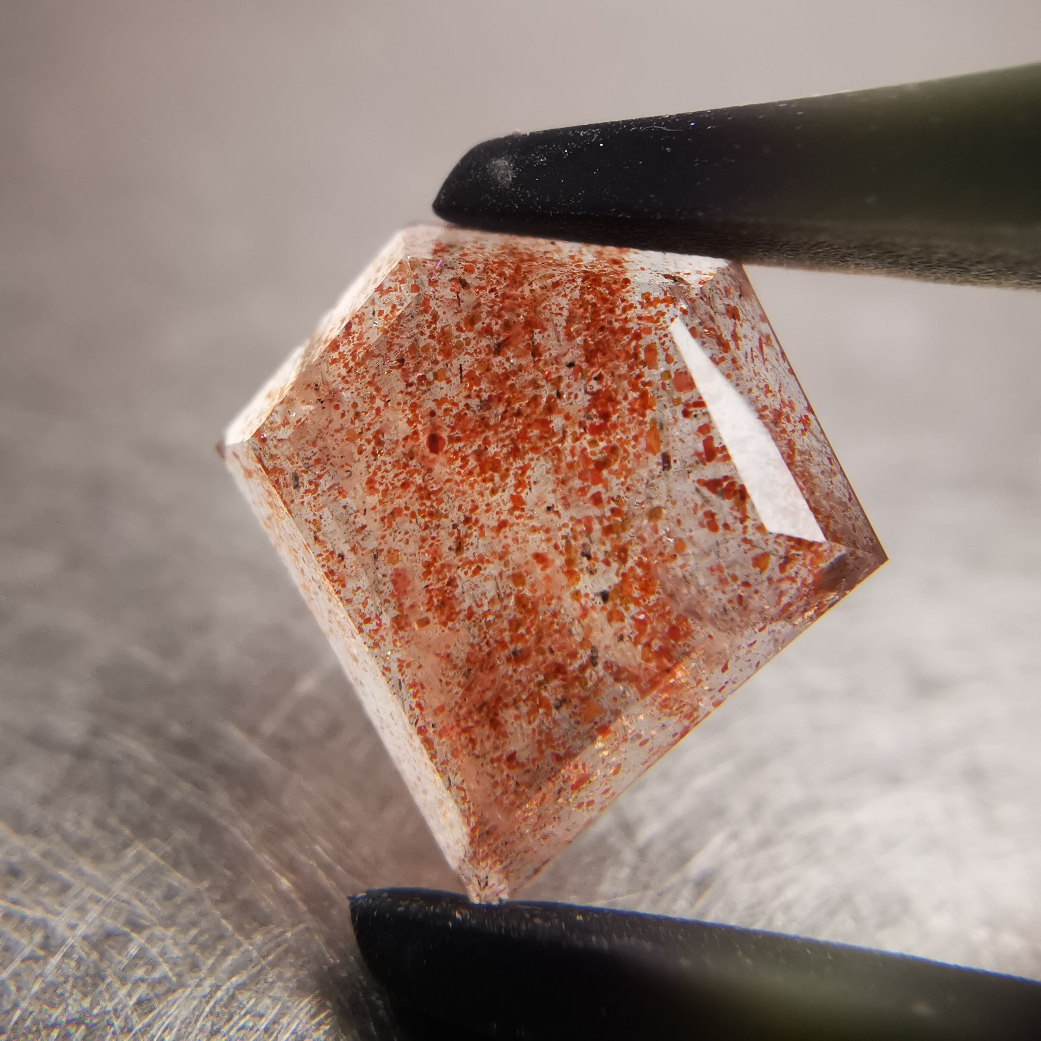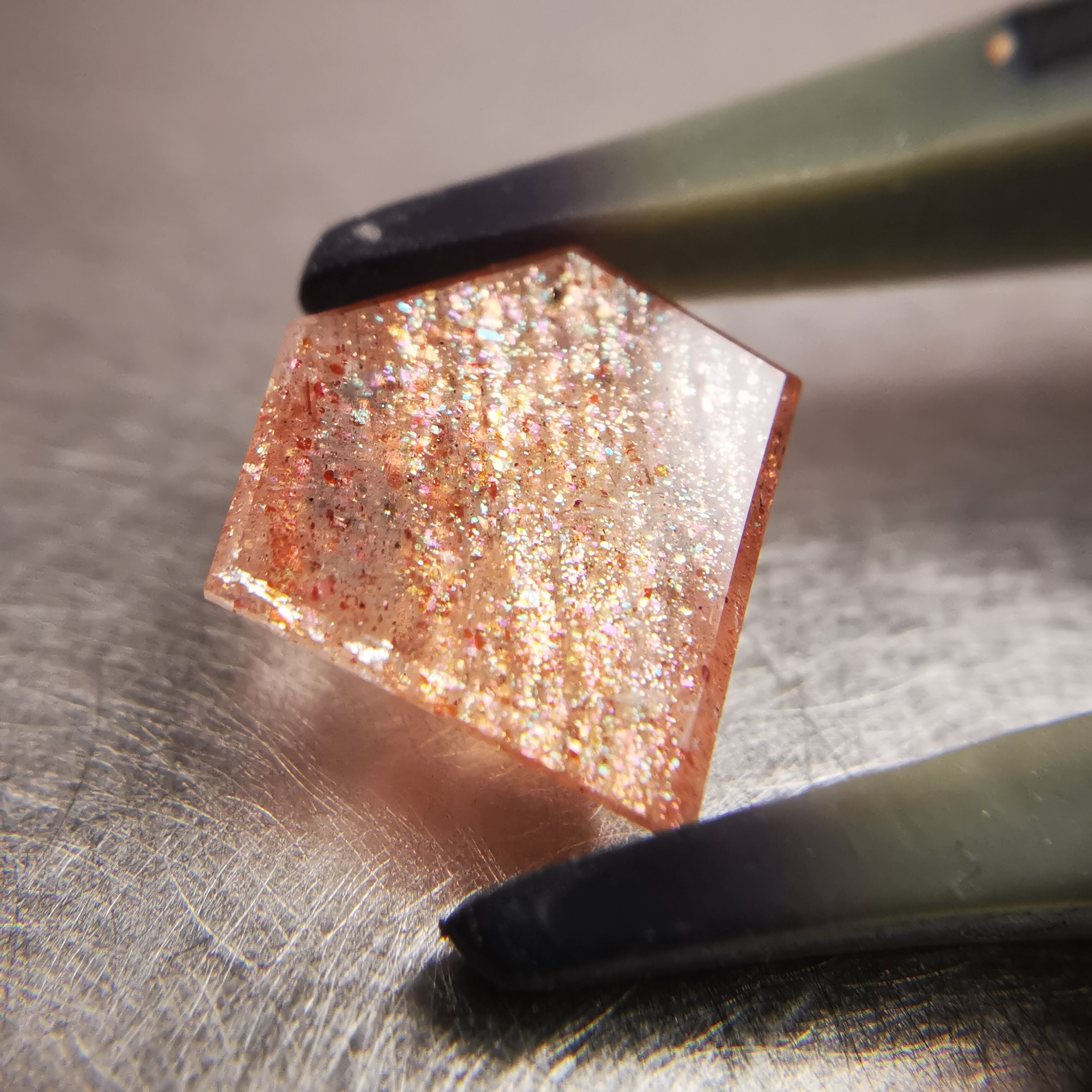 長石グループの中で、キラキラと輝く光学効果、アベンチュレッセンスが現れるものをサンストーンと総称します。