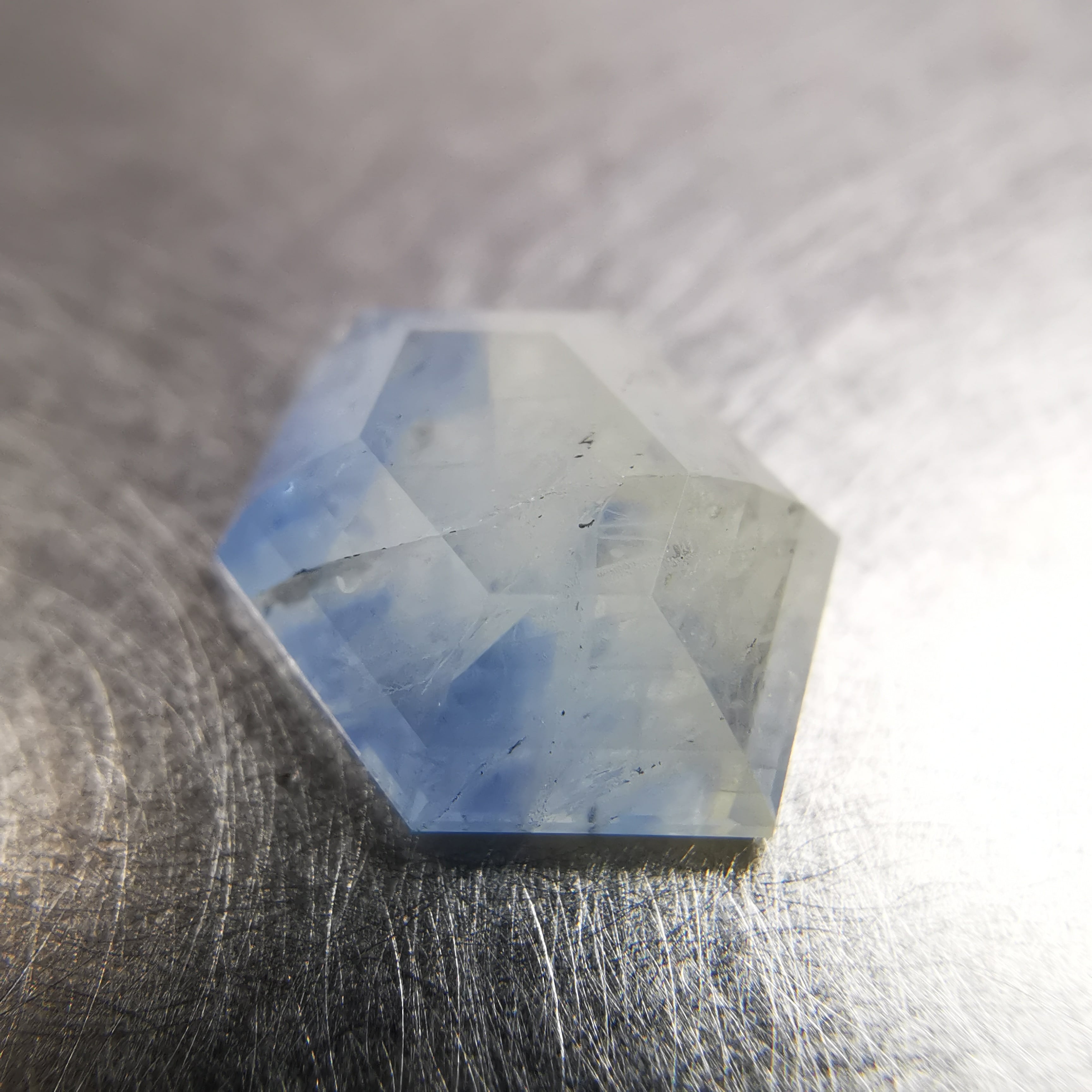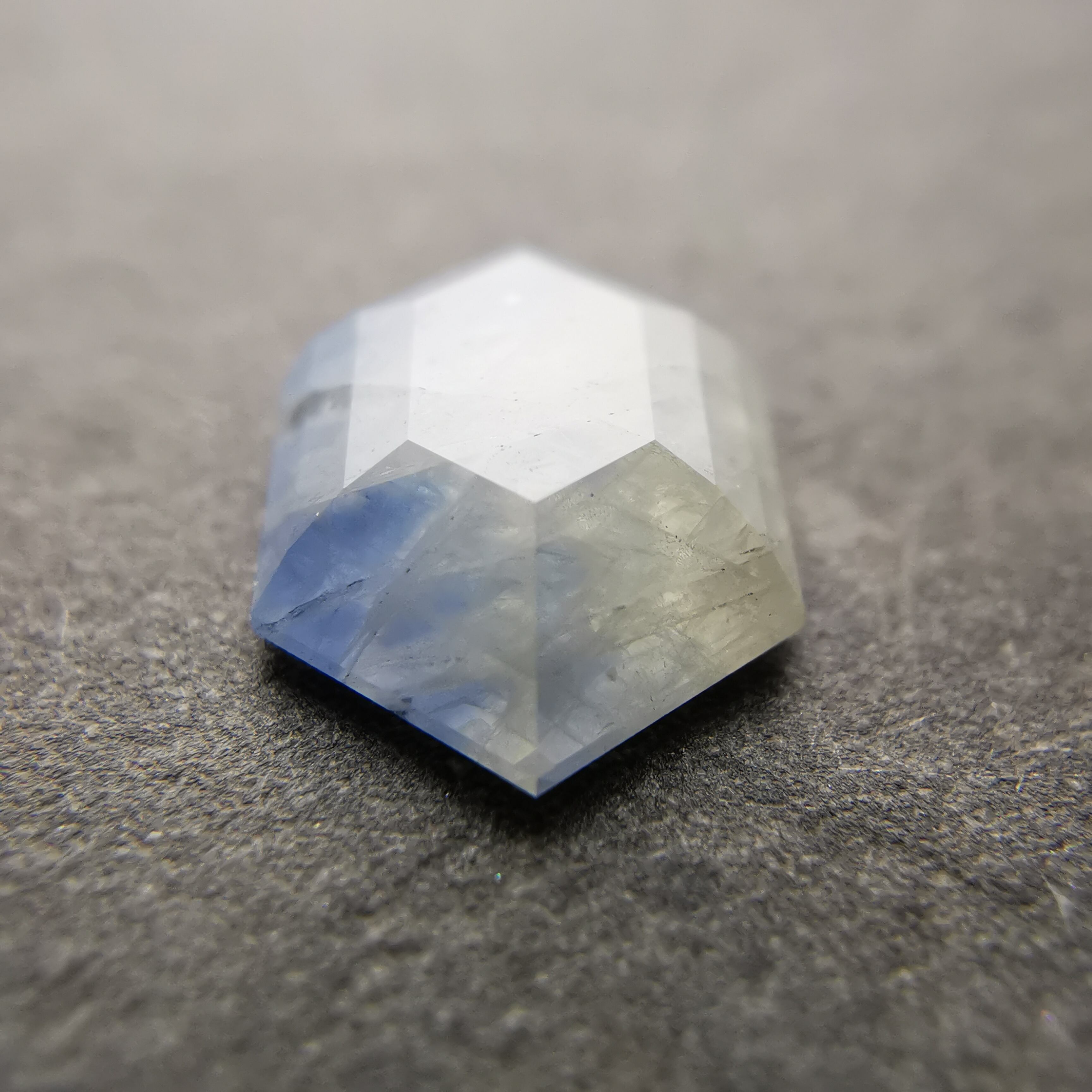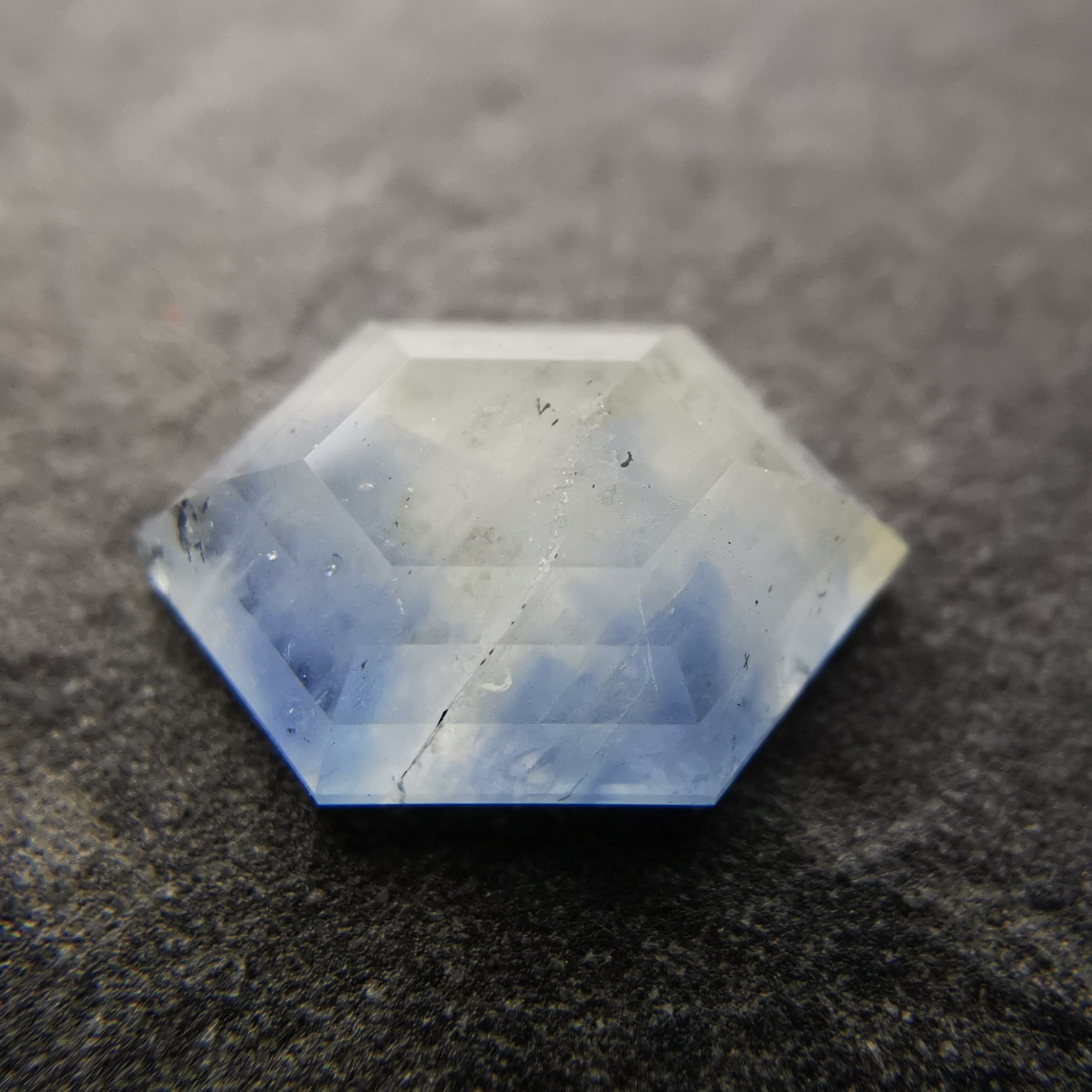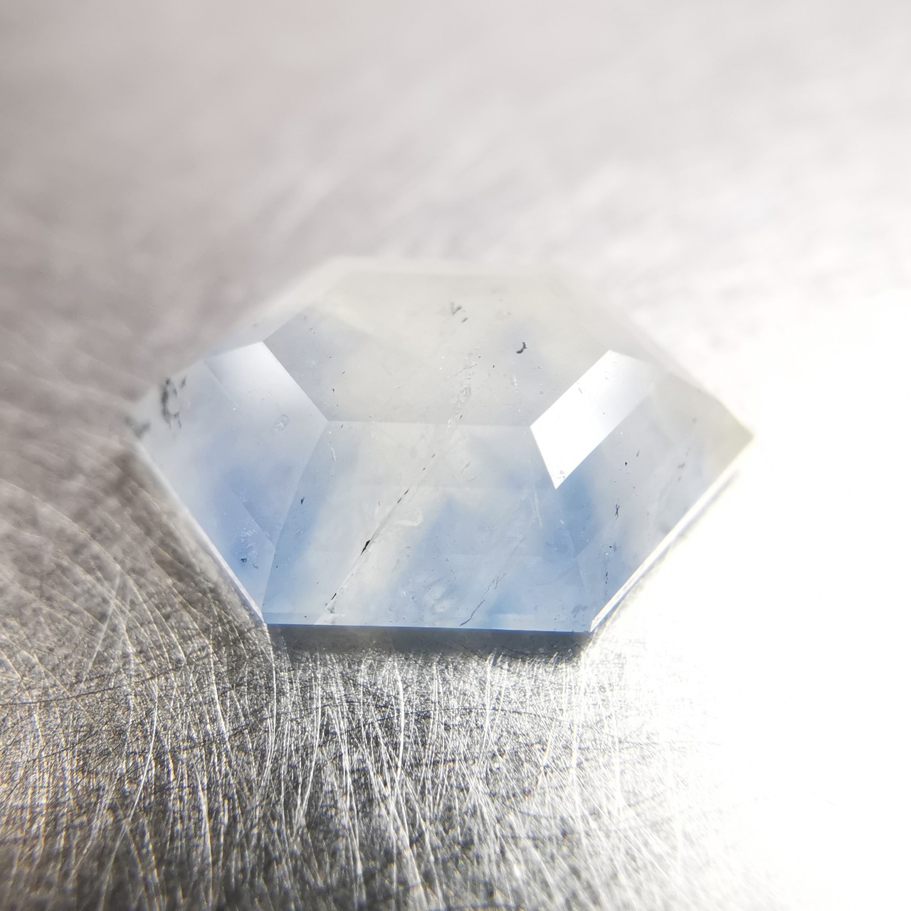 元はオーバルのカボションカットでしたが、縦長の六角形、フラットバックカットにカスタムリカットしました。