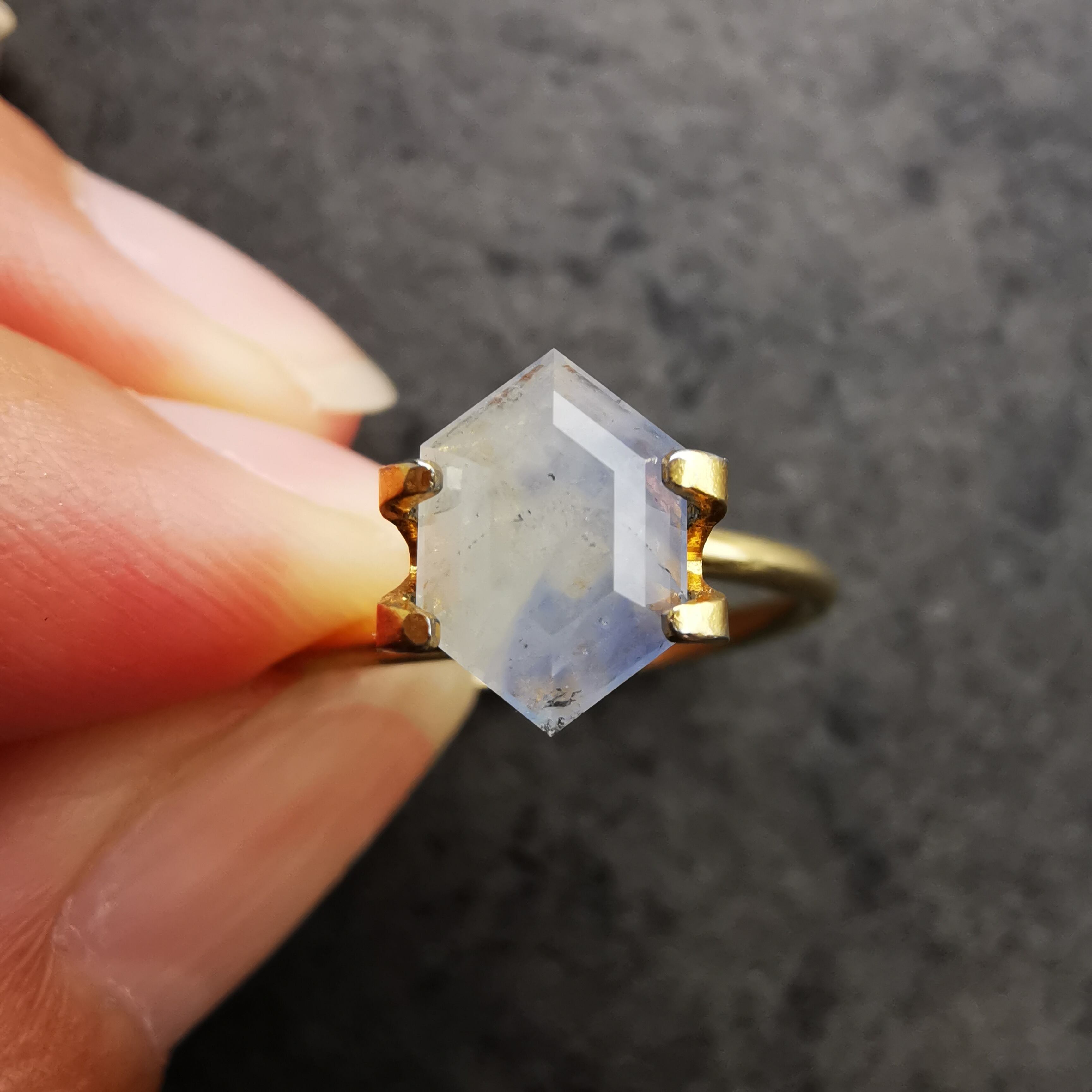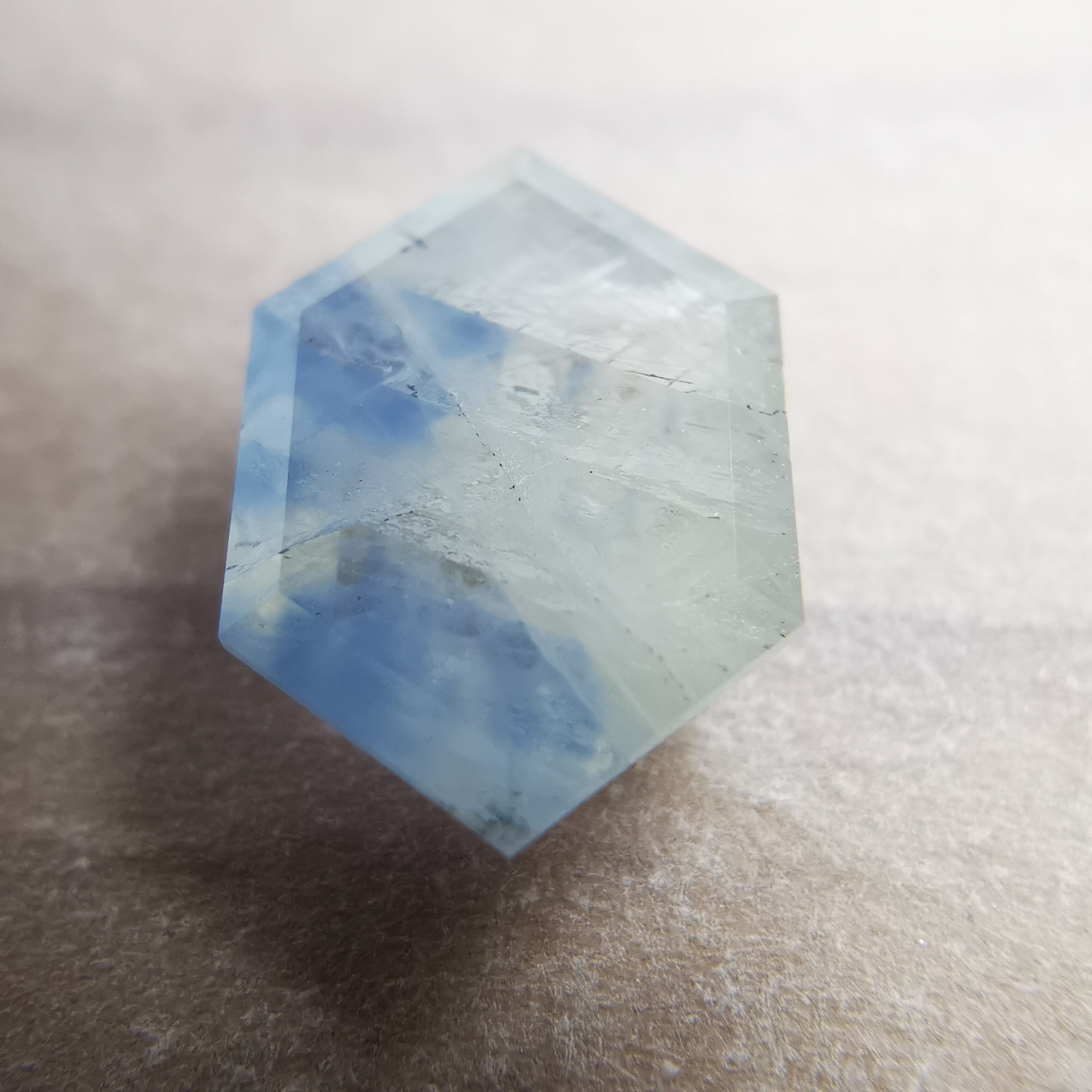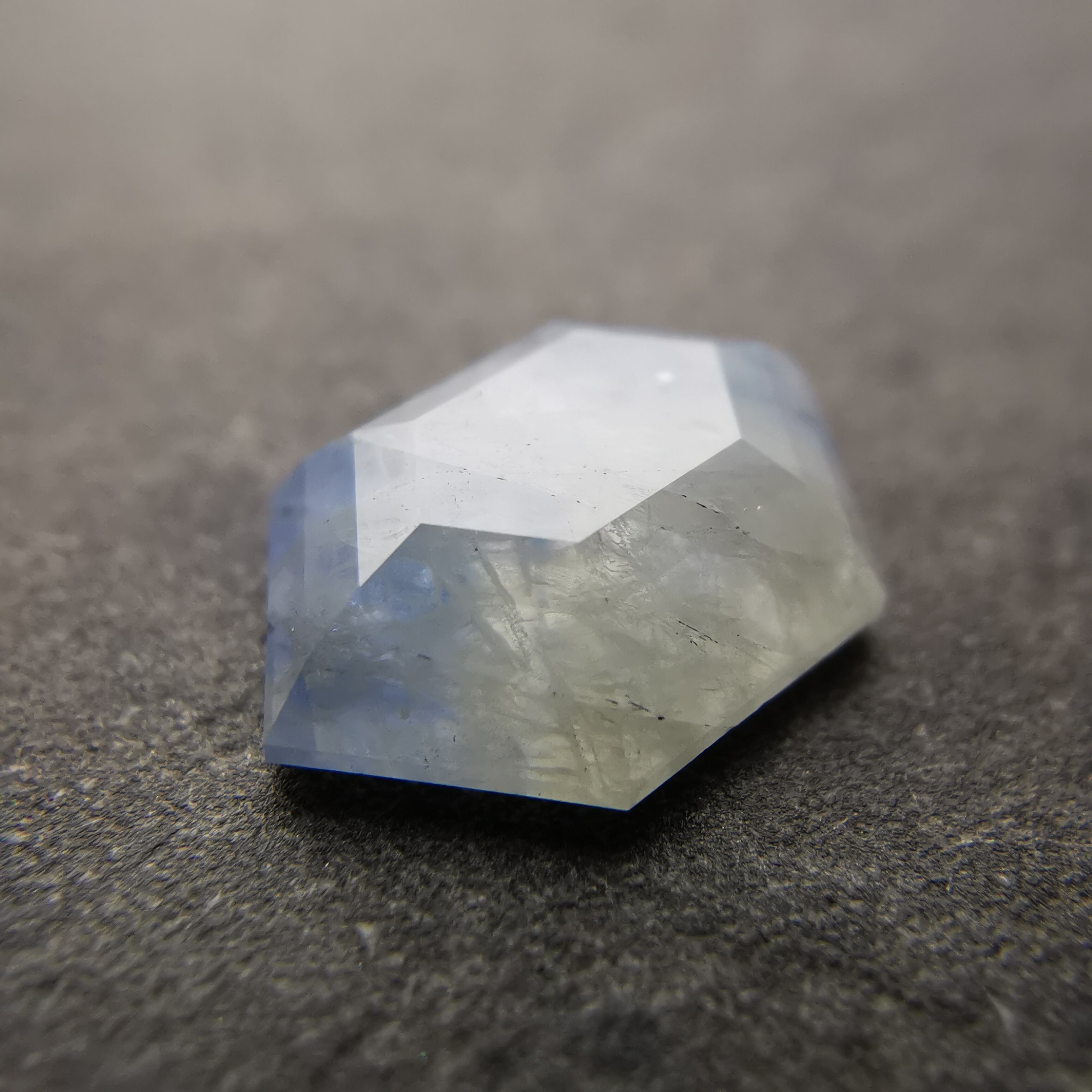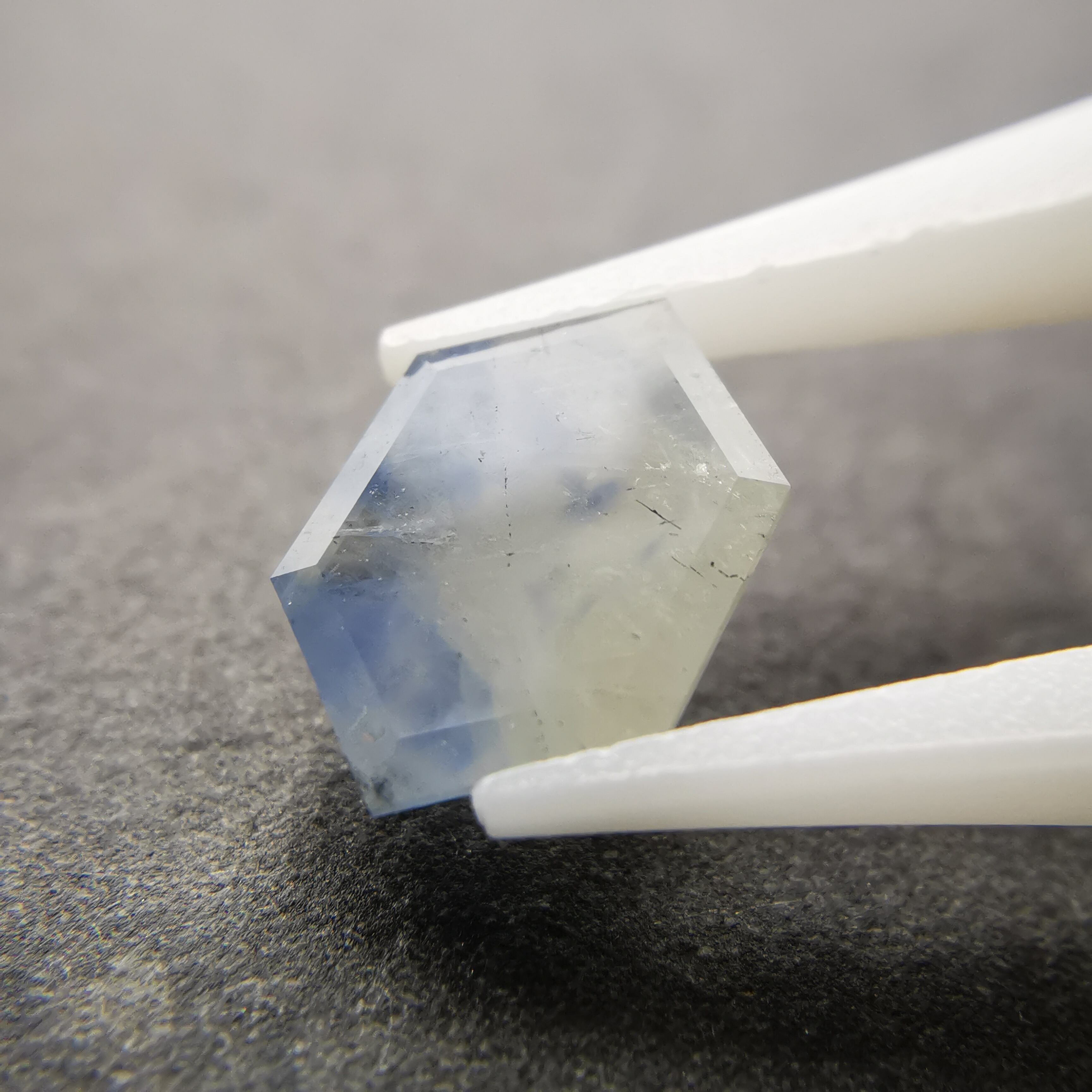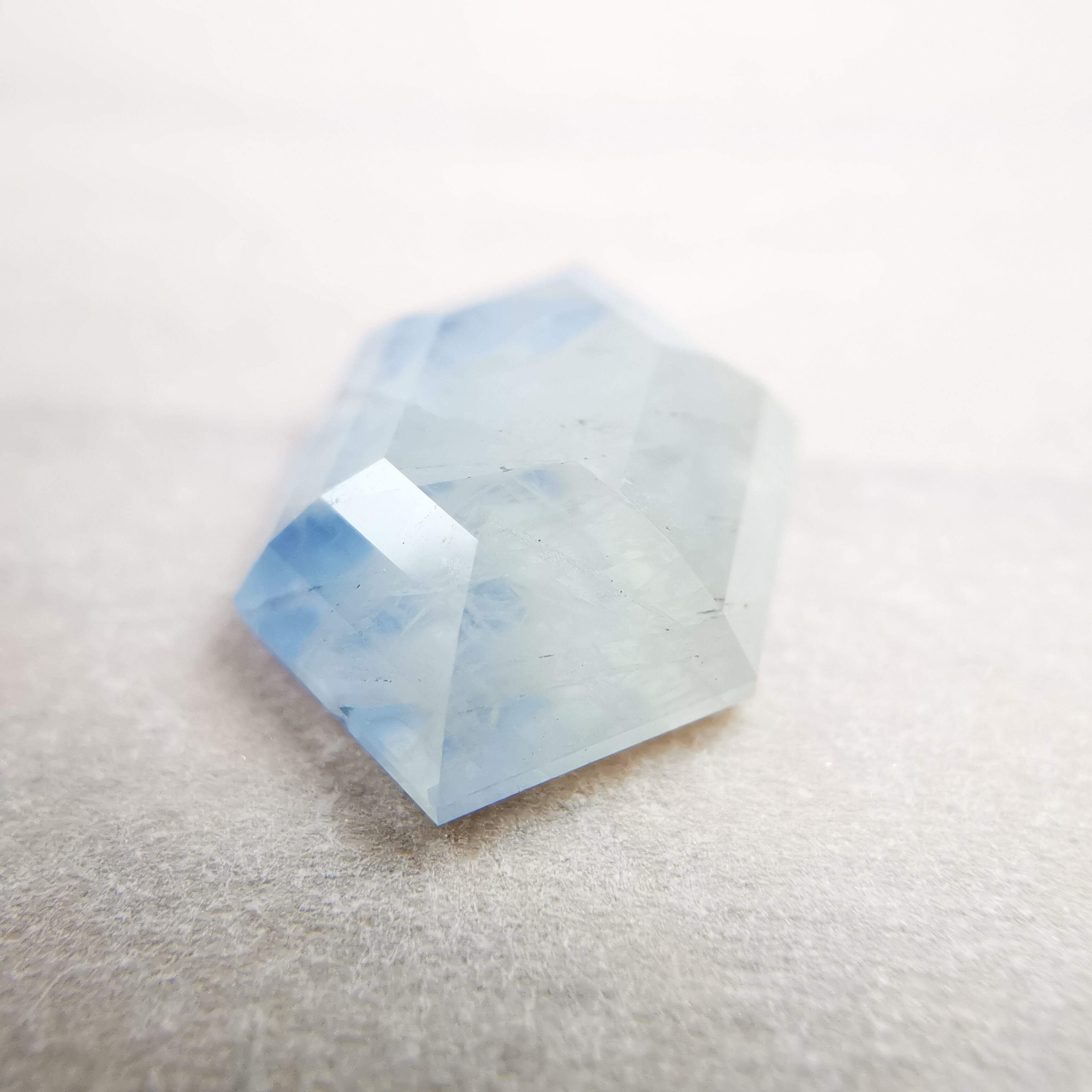 元はオーバルのカボションカットでしたが、縦長の六角形、フラットバックカットにカスタムリカットしました。