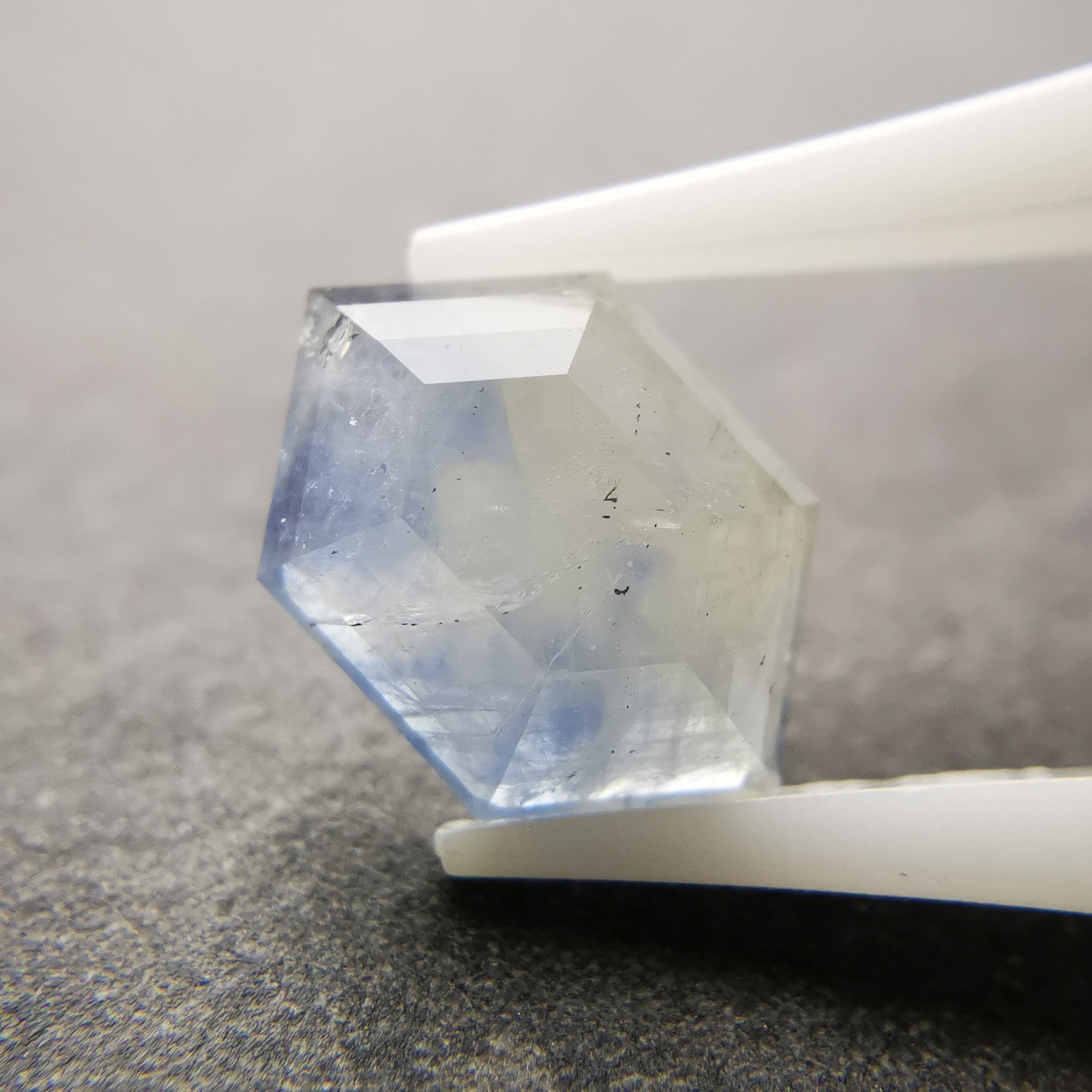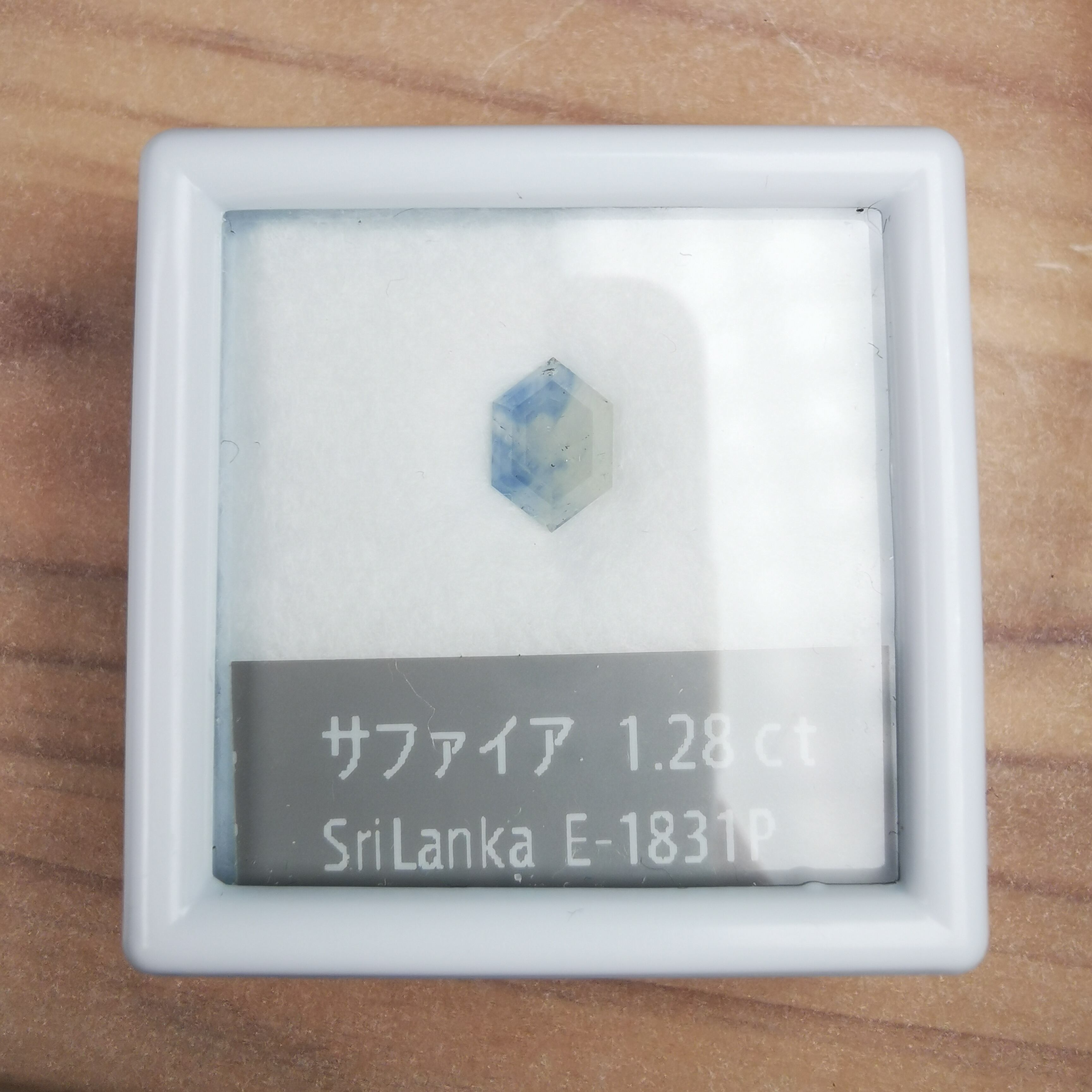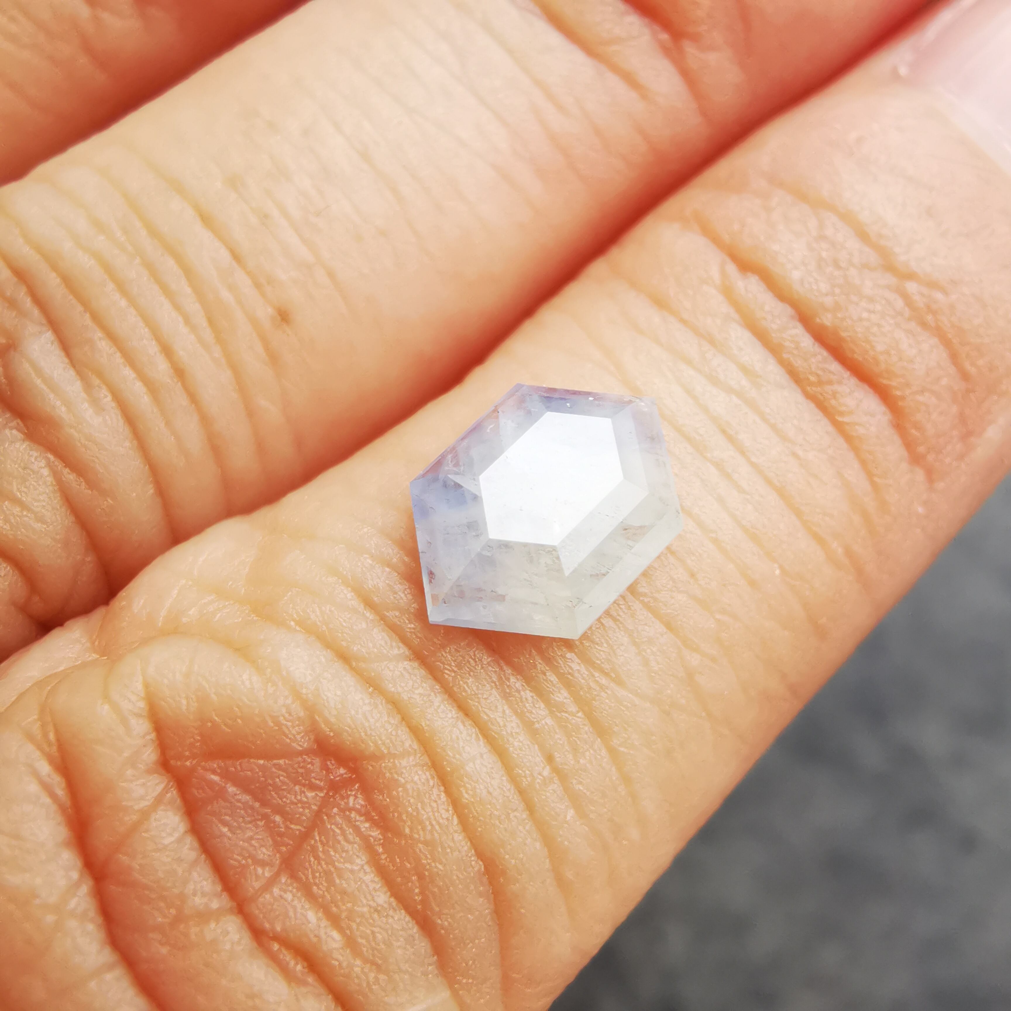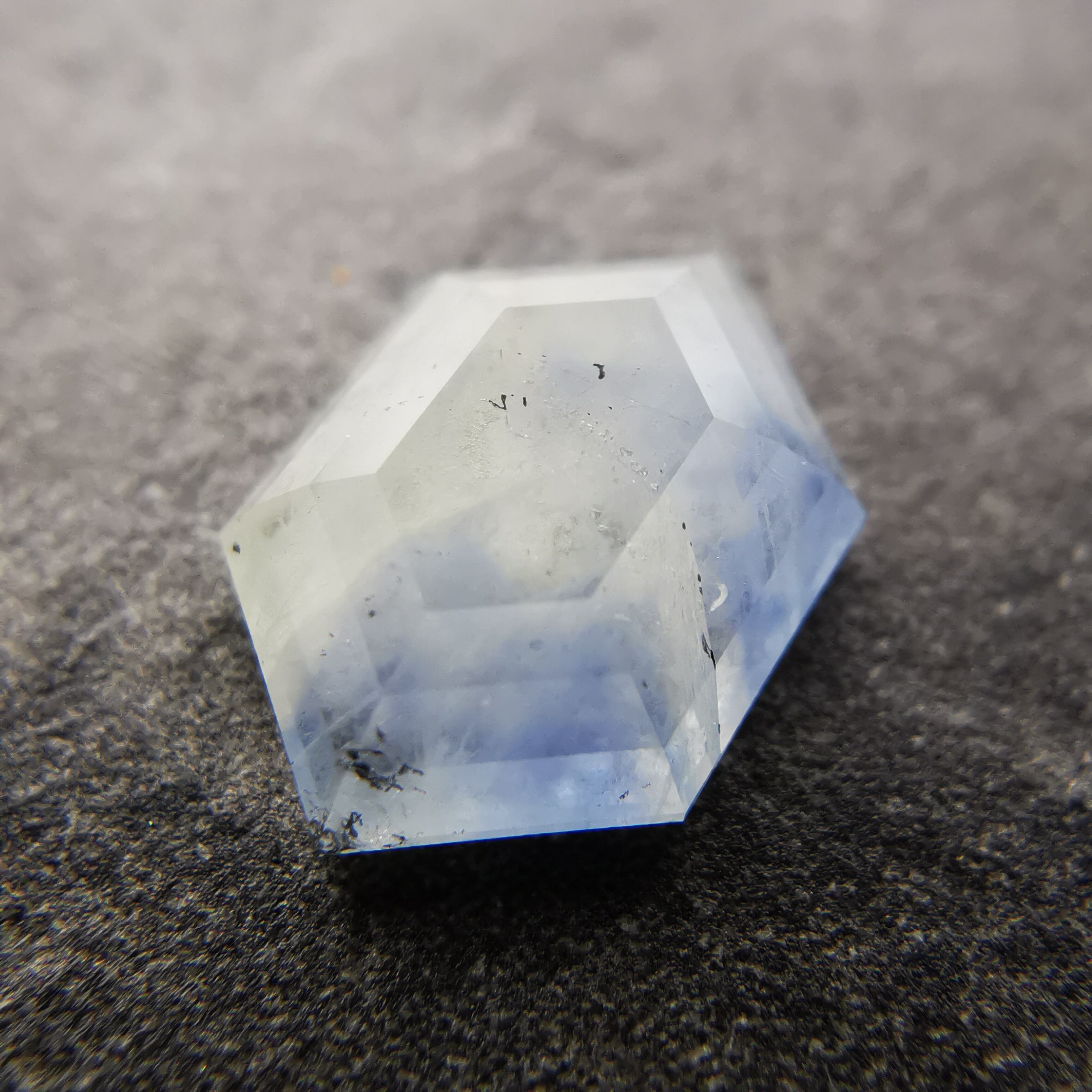 元はオーバルのカボションカットでしたが、縦長の六角形、フラットバックカットにカスタムリカットしました。