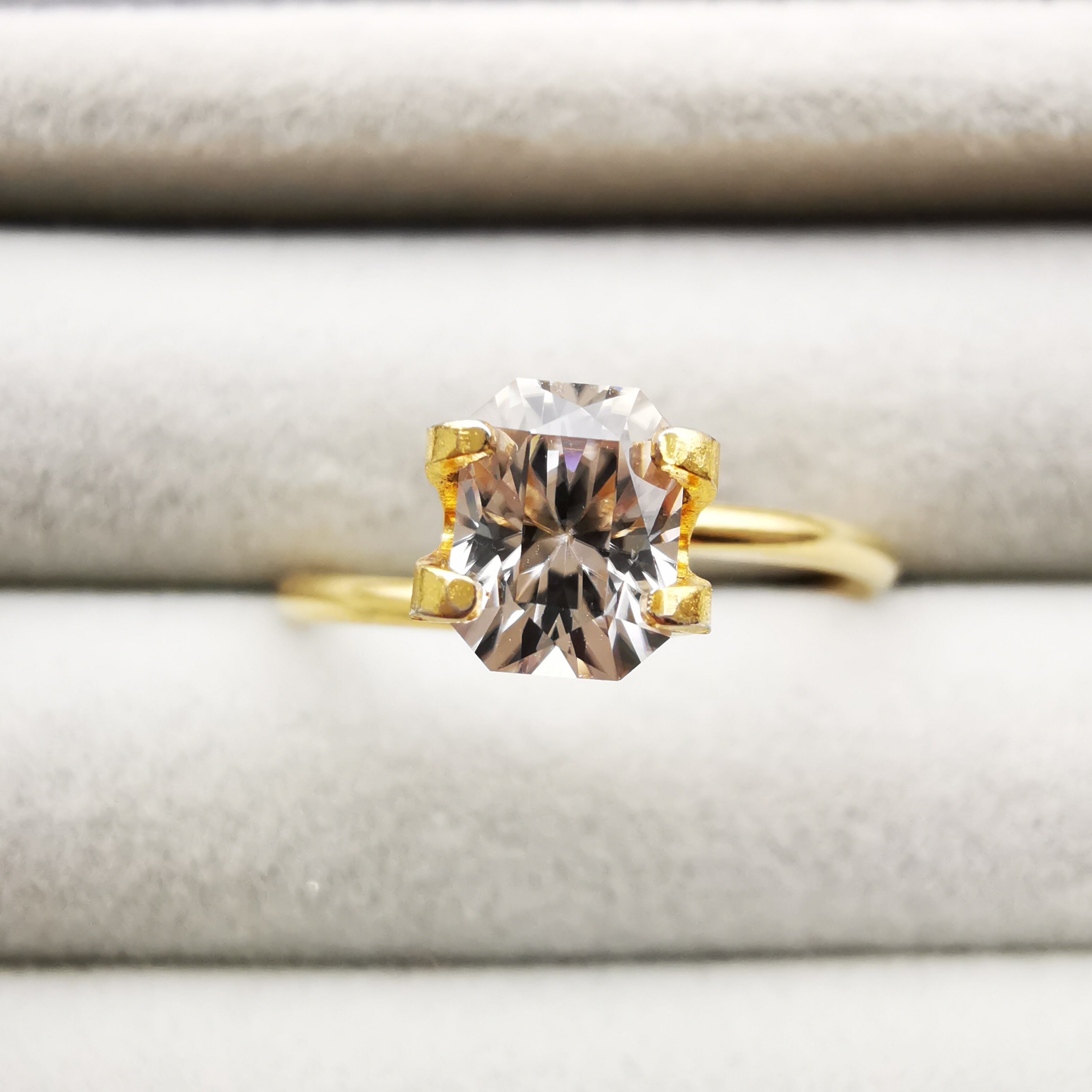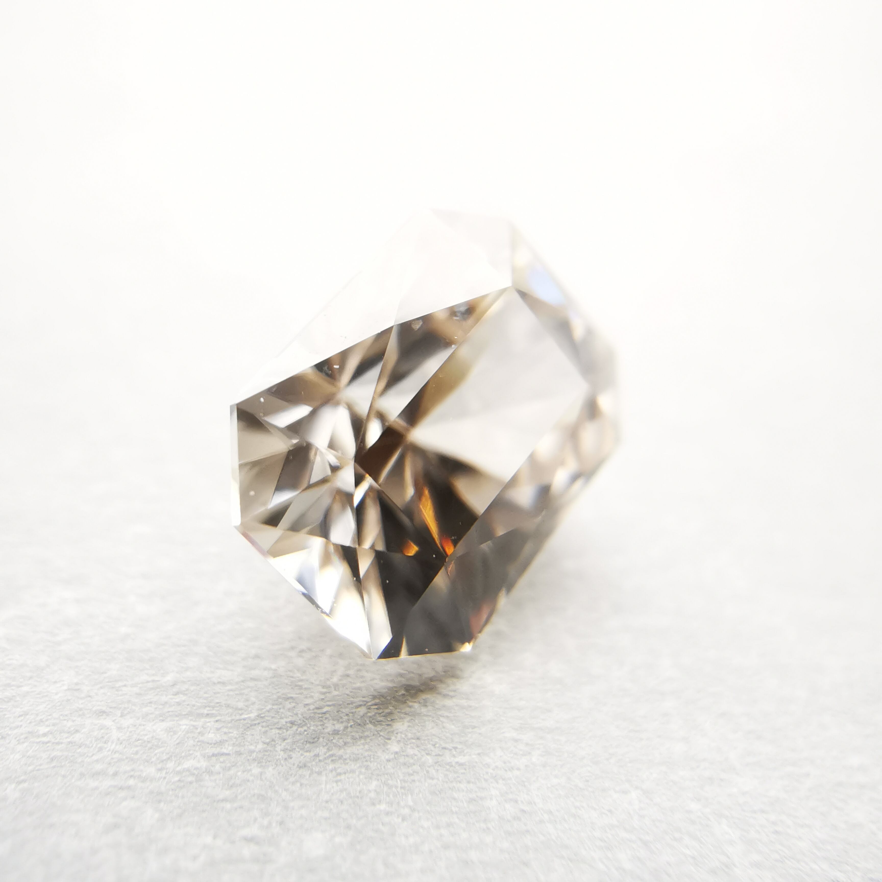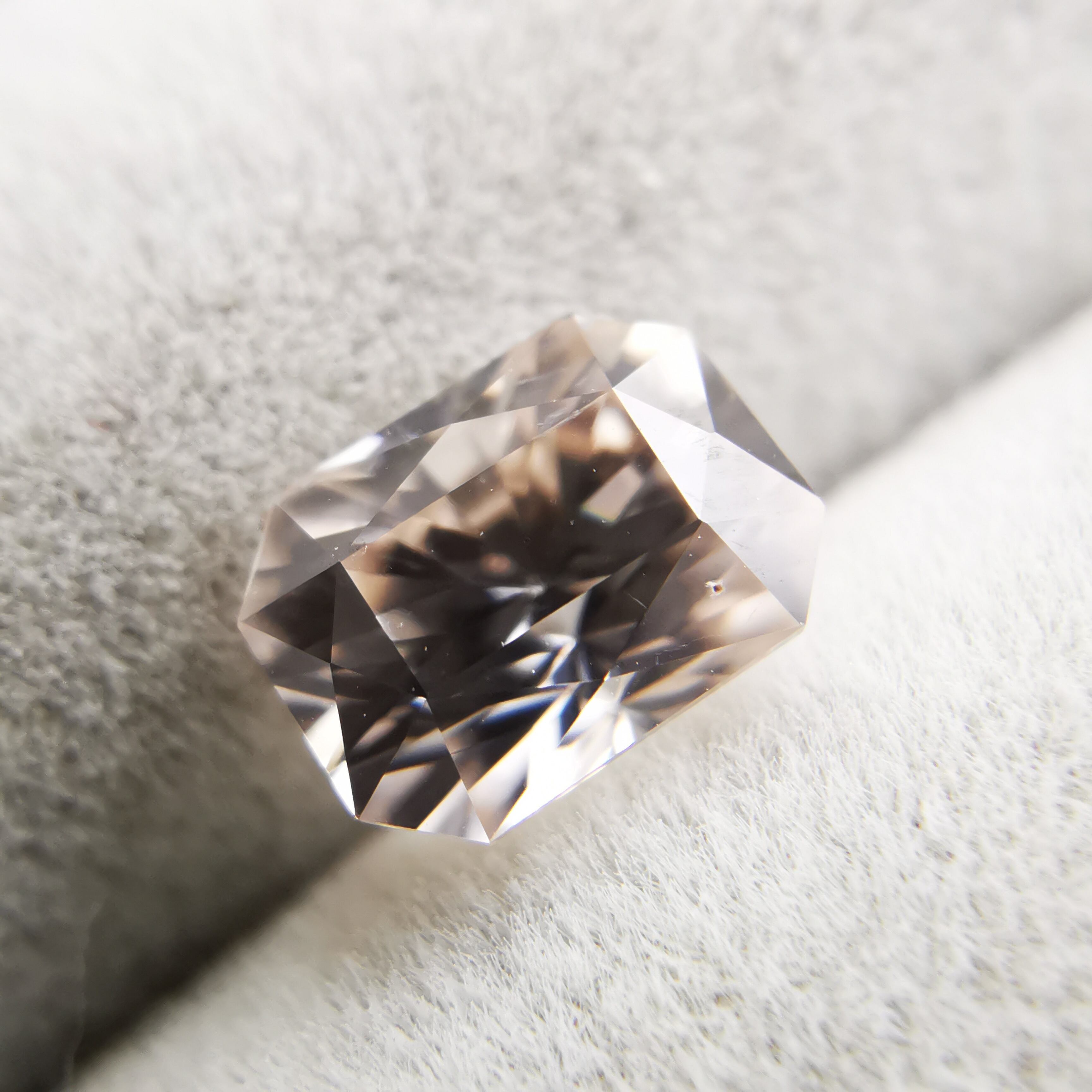 照明の下ではファイアときらめきに目がくらんで石の色がわかりにくいですが、自然光の日陰では、淡く色付くシャンパンカラーを見ることが出来ます。