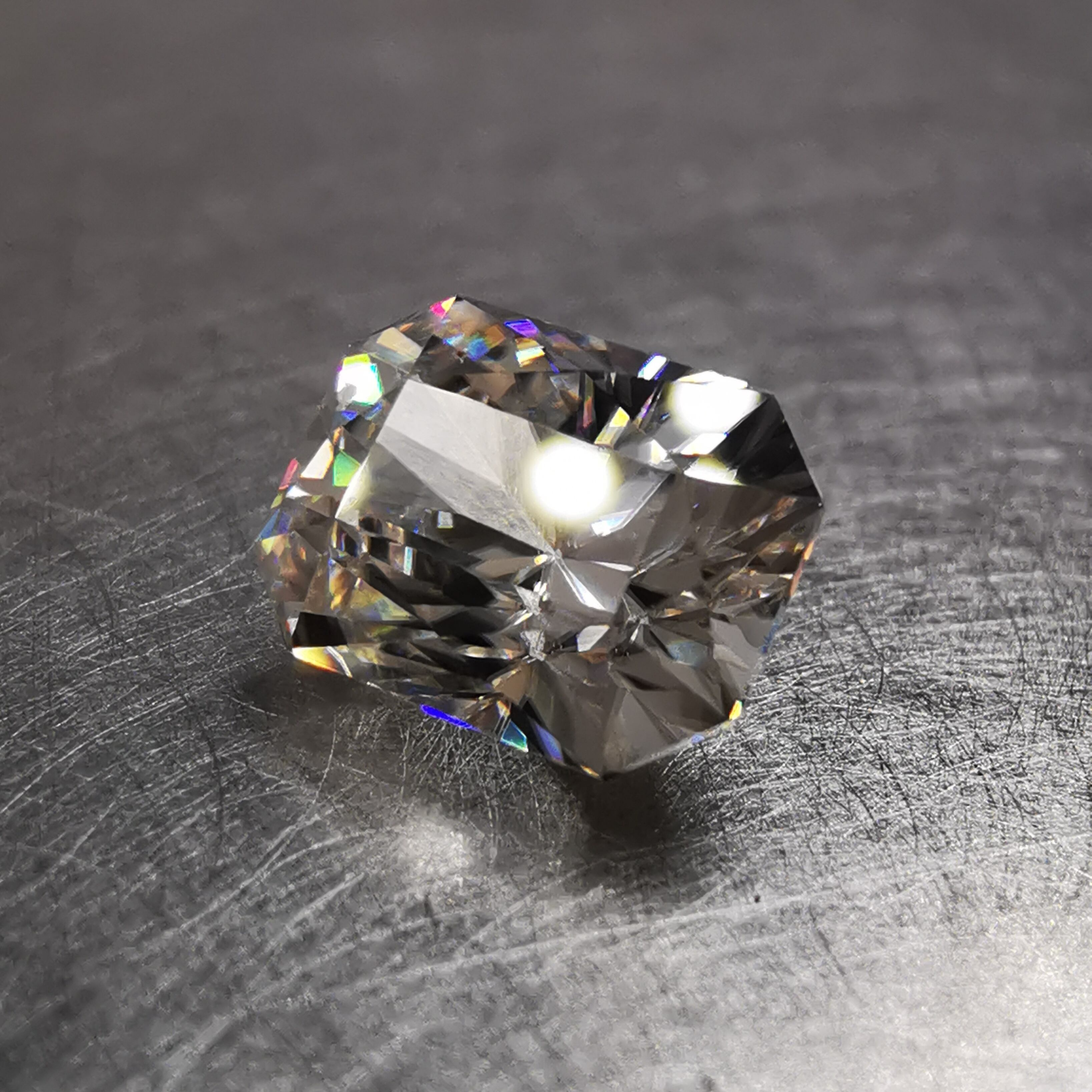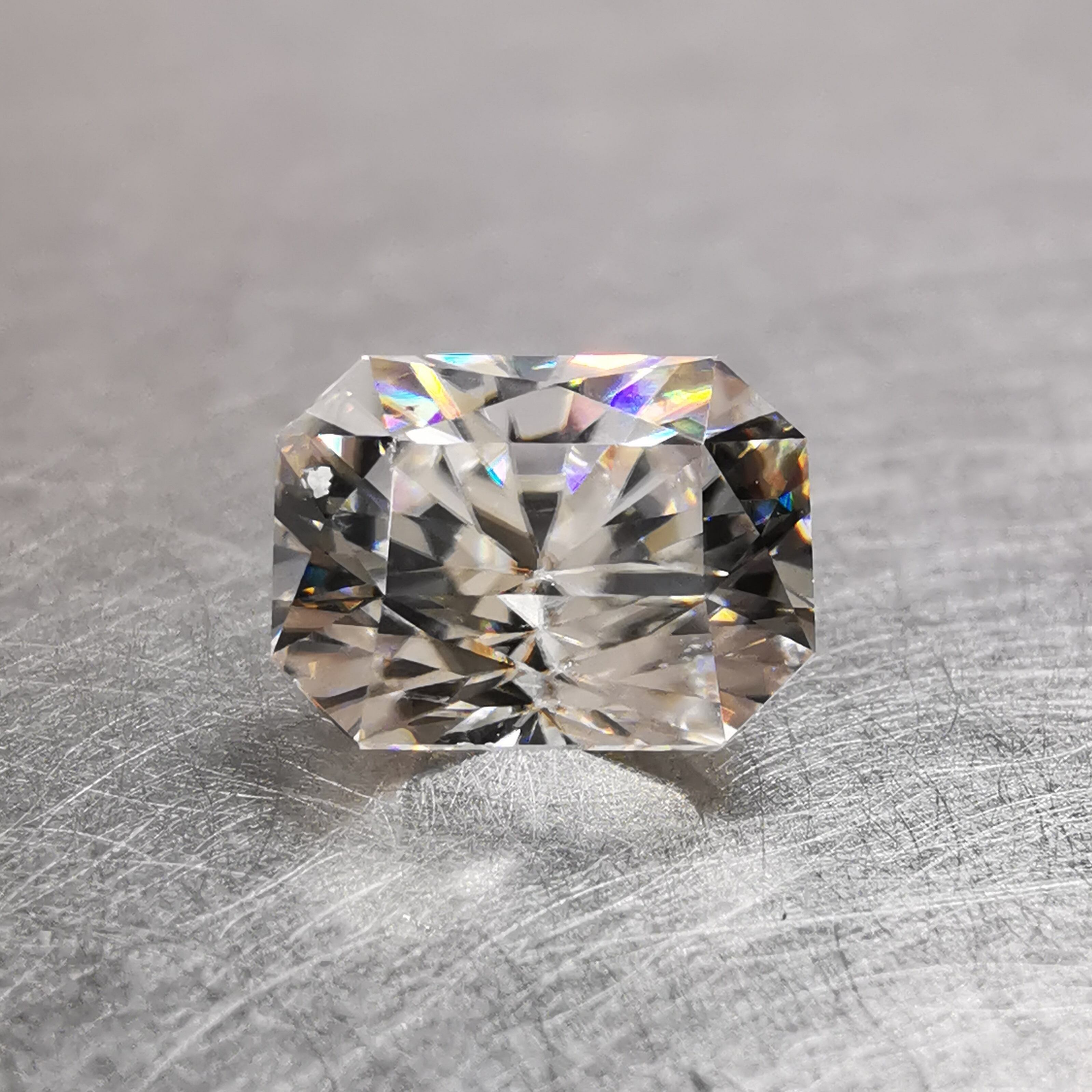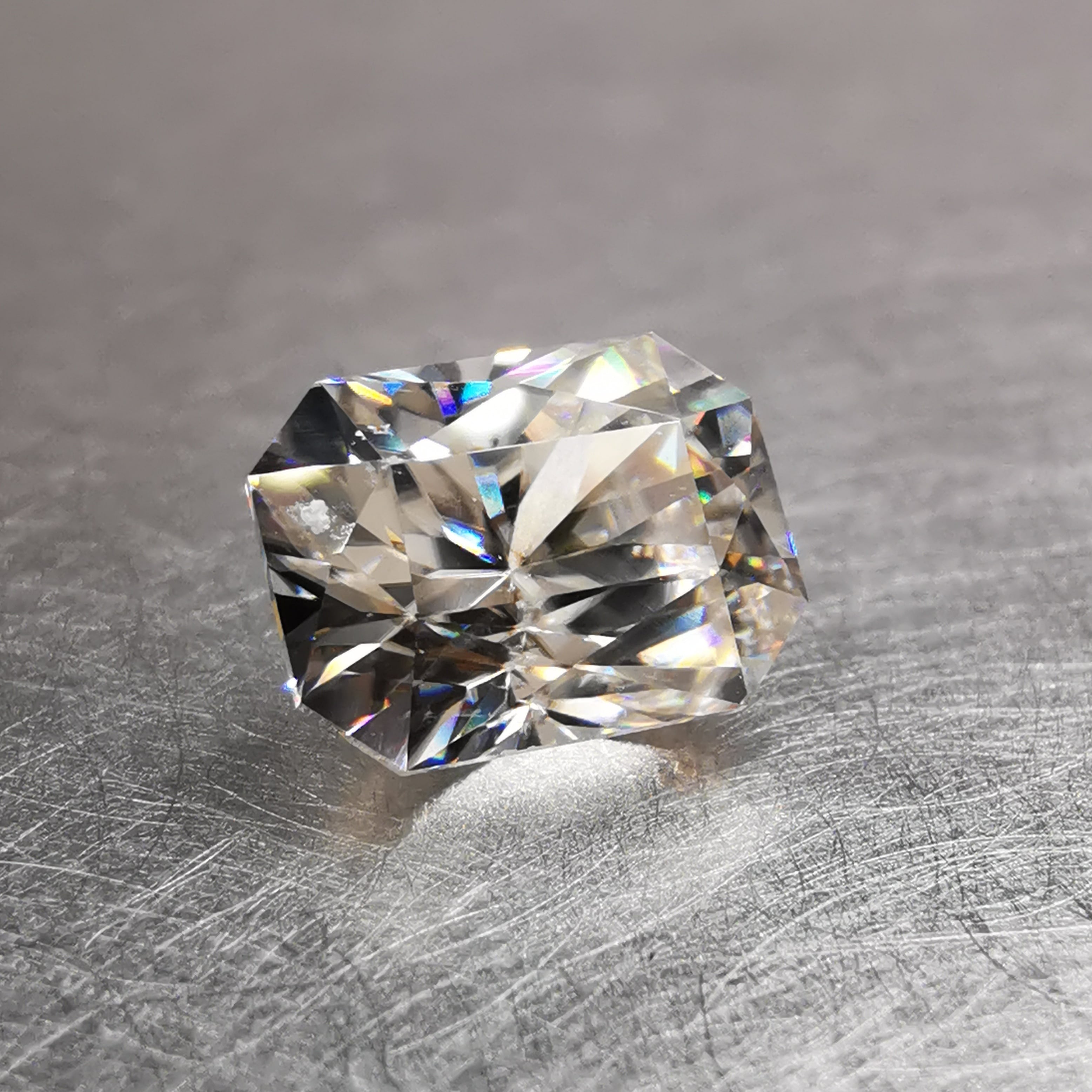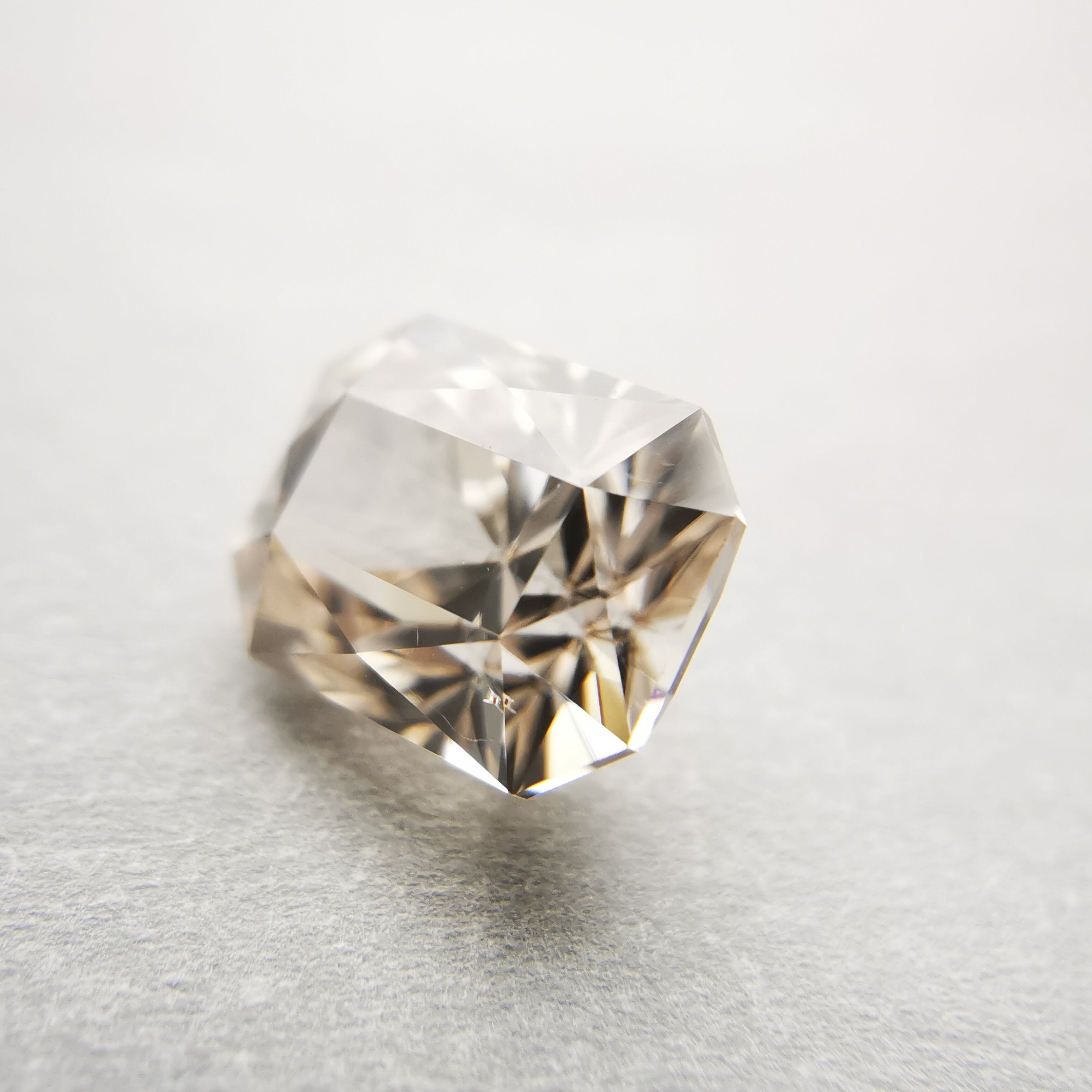 照明の下ではファイアときらめきに目がくらんで石の色がわかりにくいですが、自然光の日陰では、淡く色付くシャンパンカラーを見ることが出来ます。